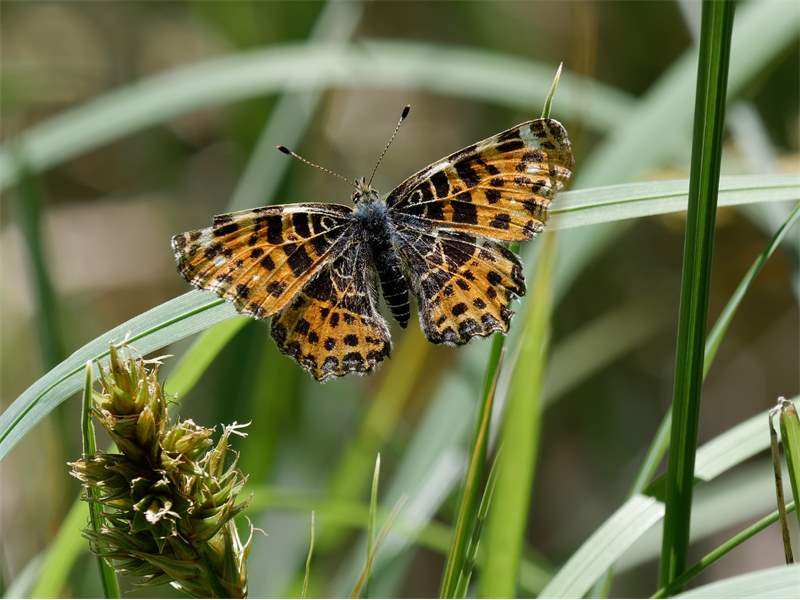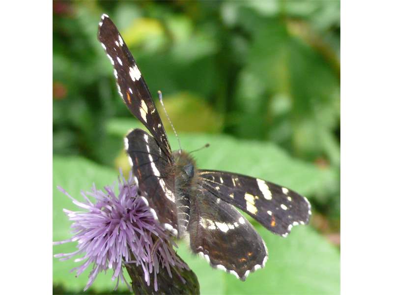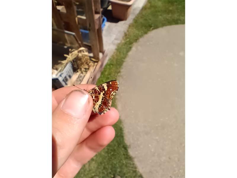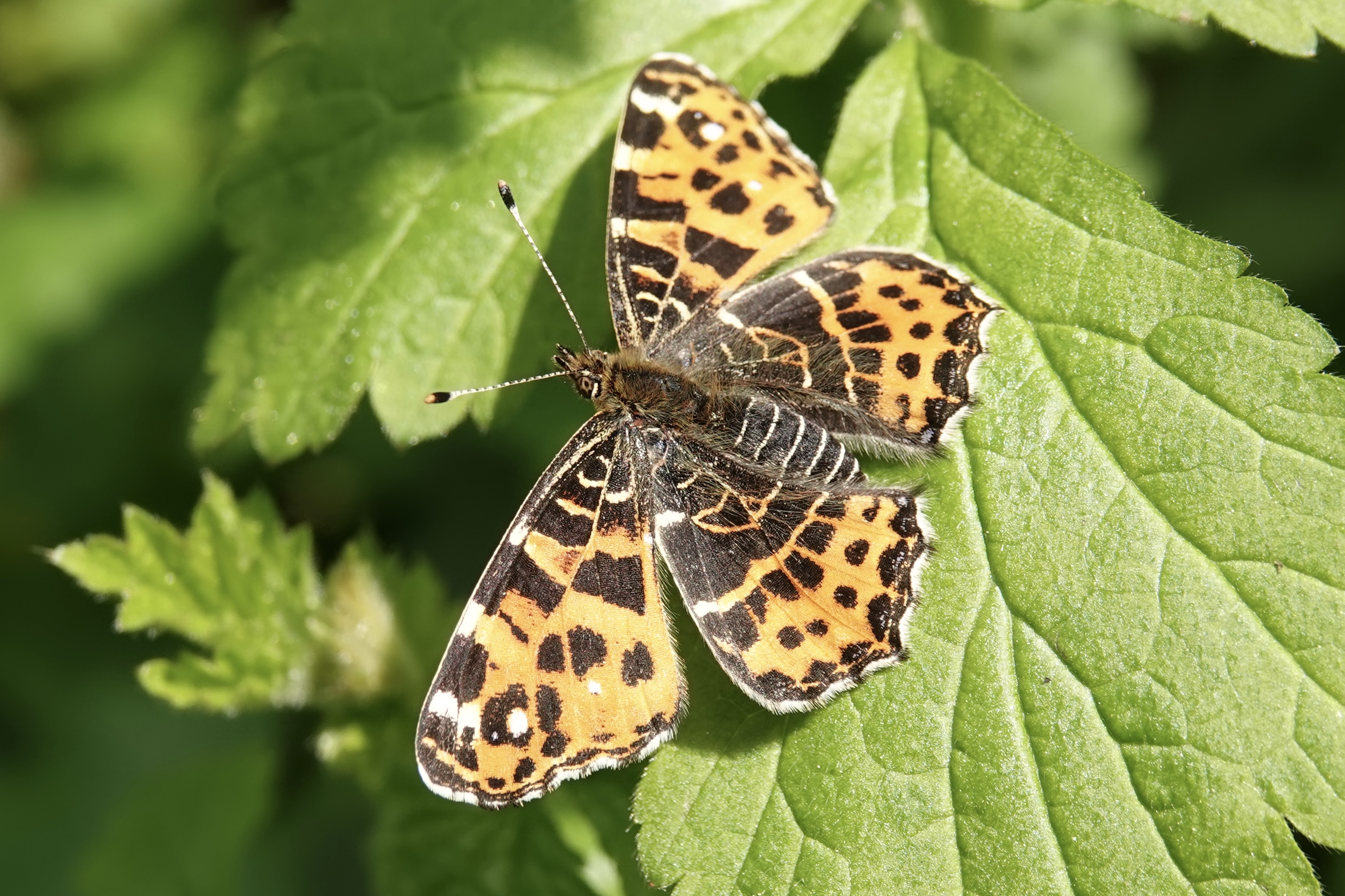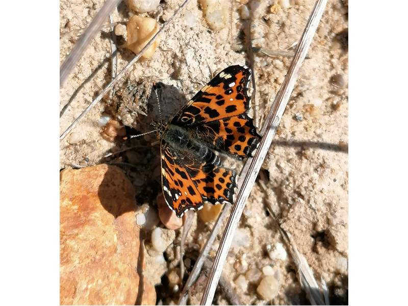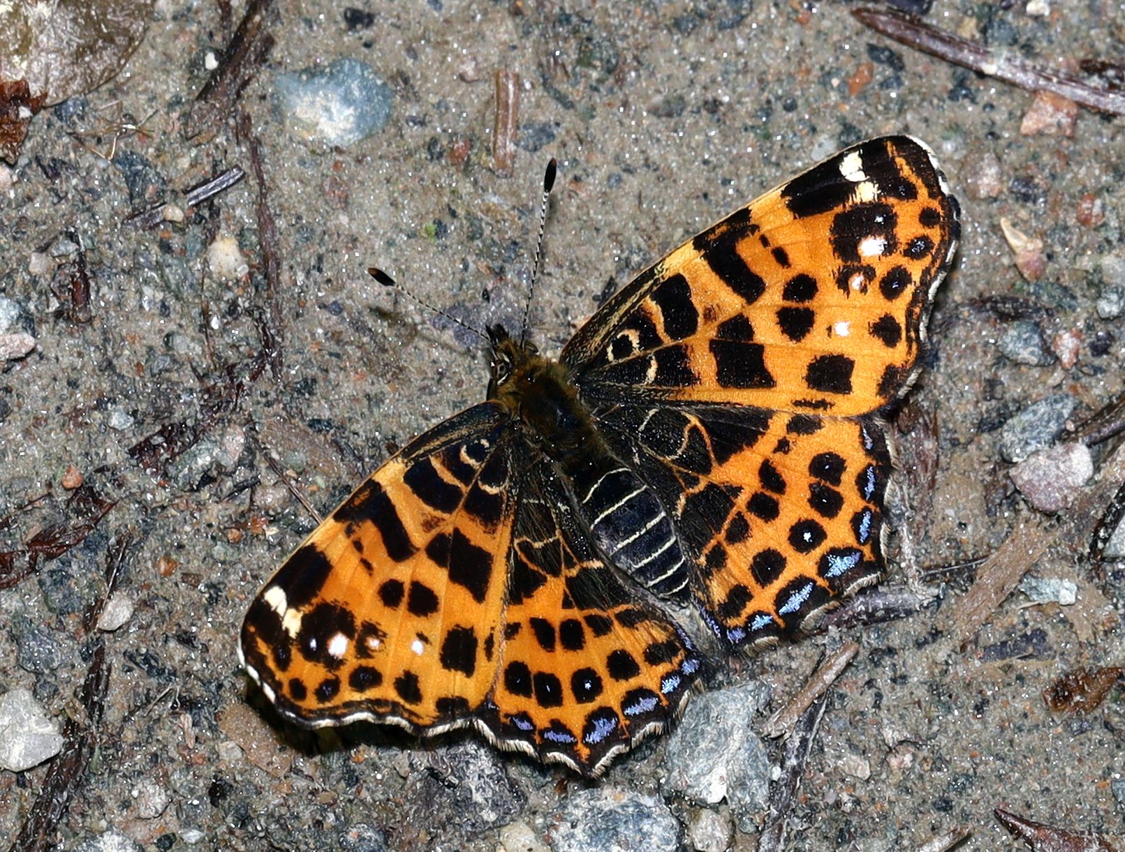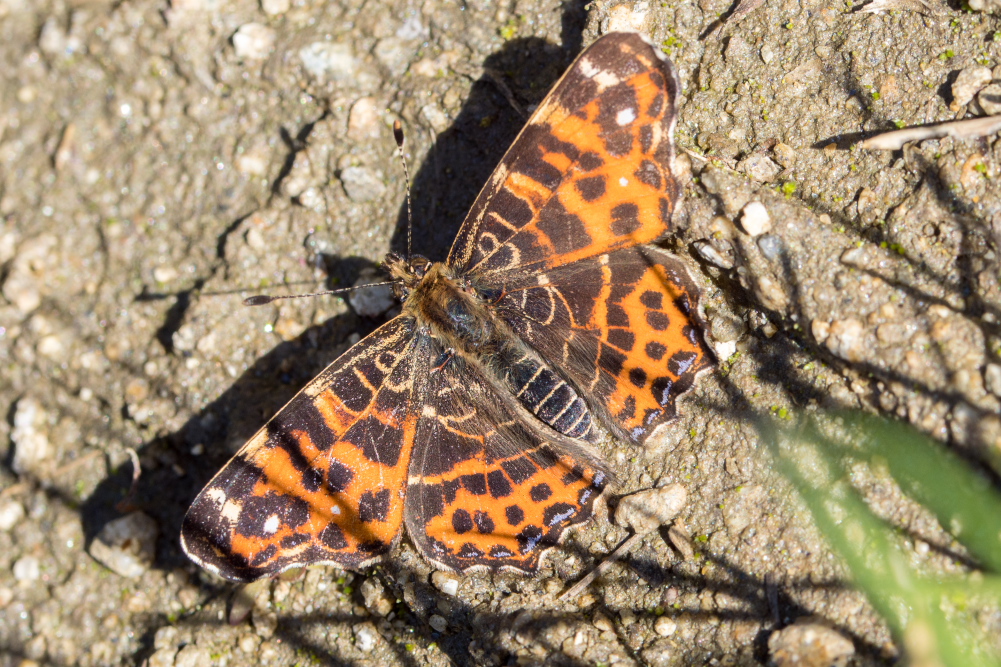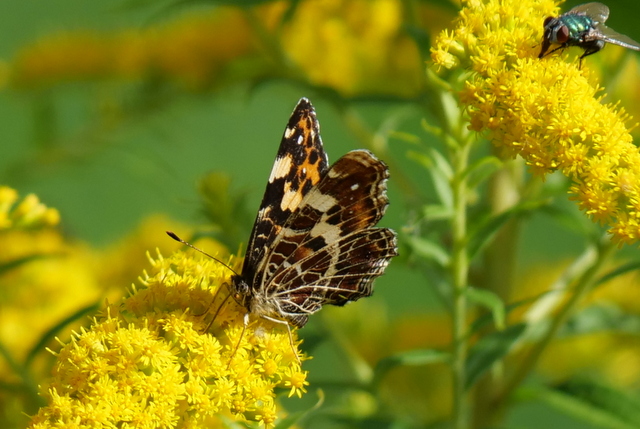 Landkärtchen, Sommergeneration der Schmetterlingsart auf Nektarspender Doldenblüte fotografiert, Falteroberseite im Sichtfeld, Ende Juni 2022, Auwald bei 06254 Horburg-Masslau (Sachsen-Anhalt) (© Heinz Sass)( Bild vergrößern)
