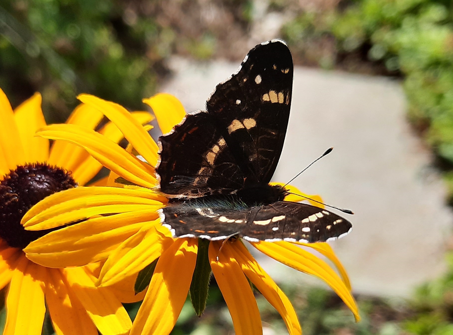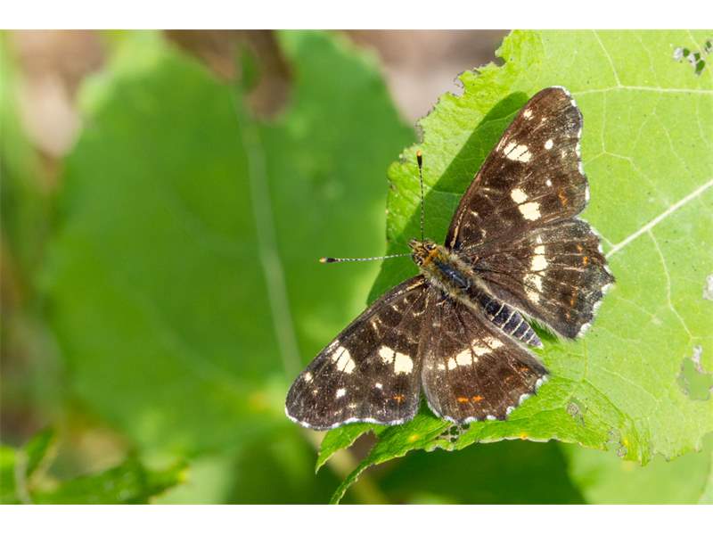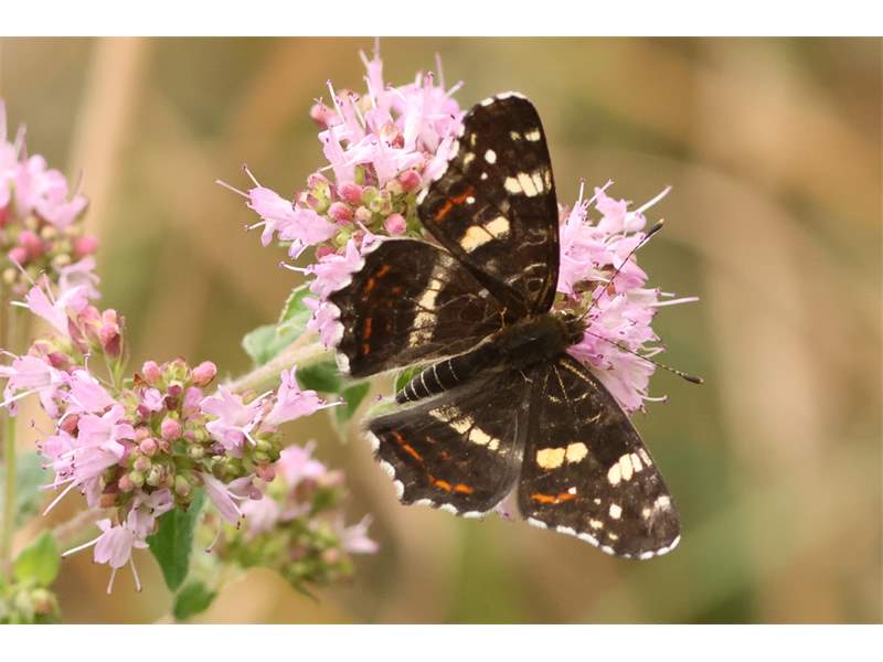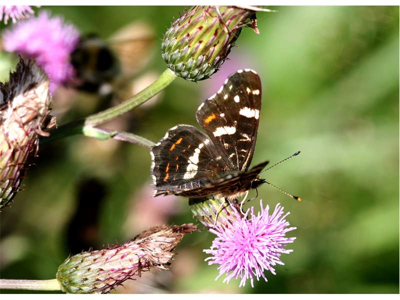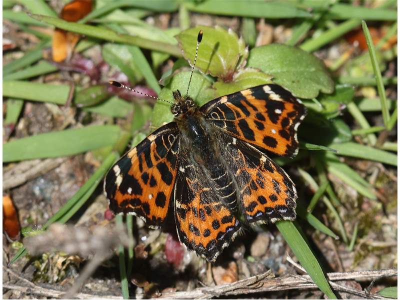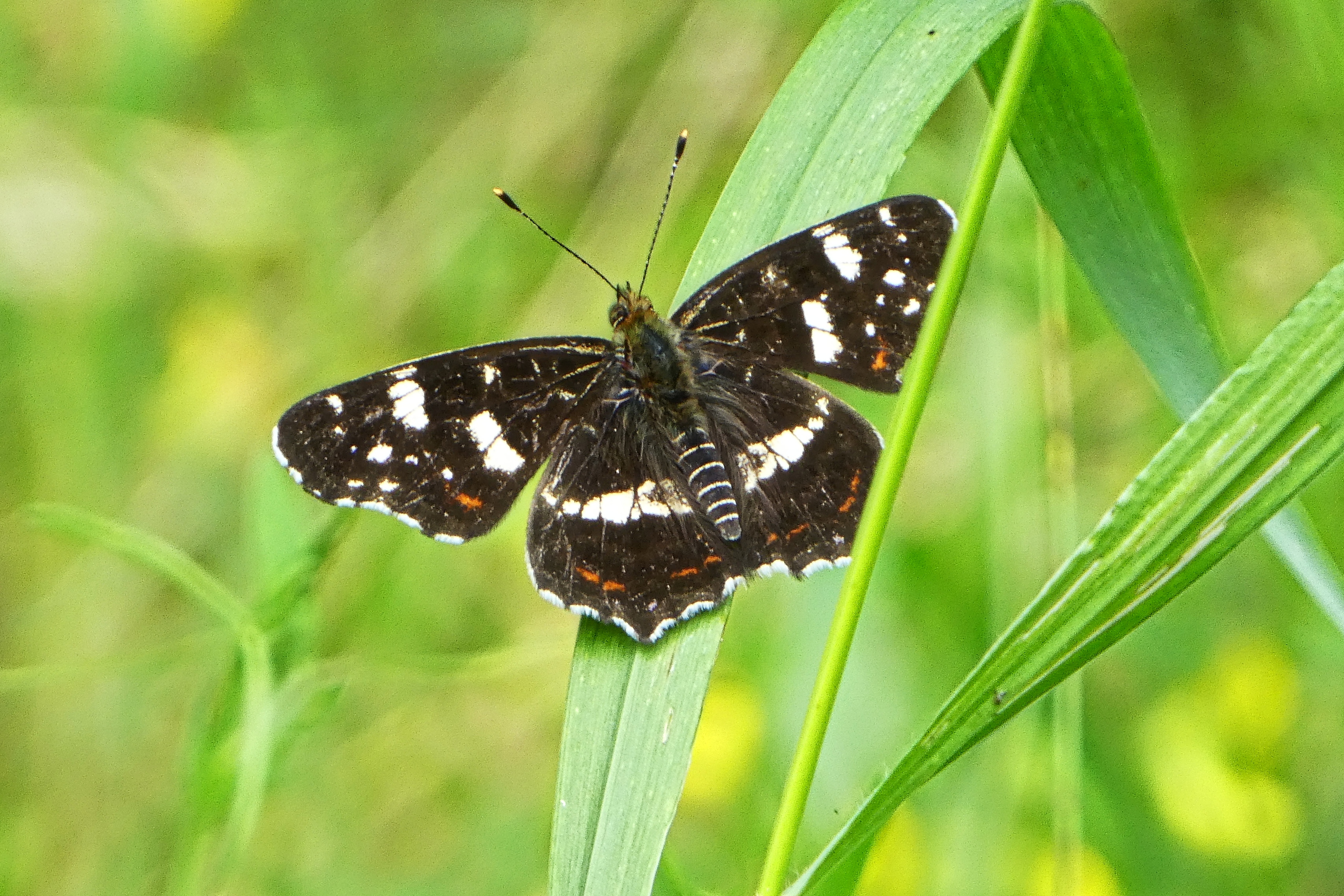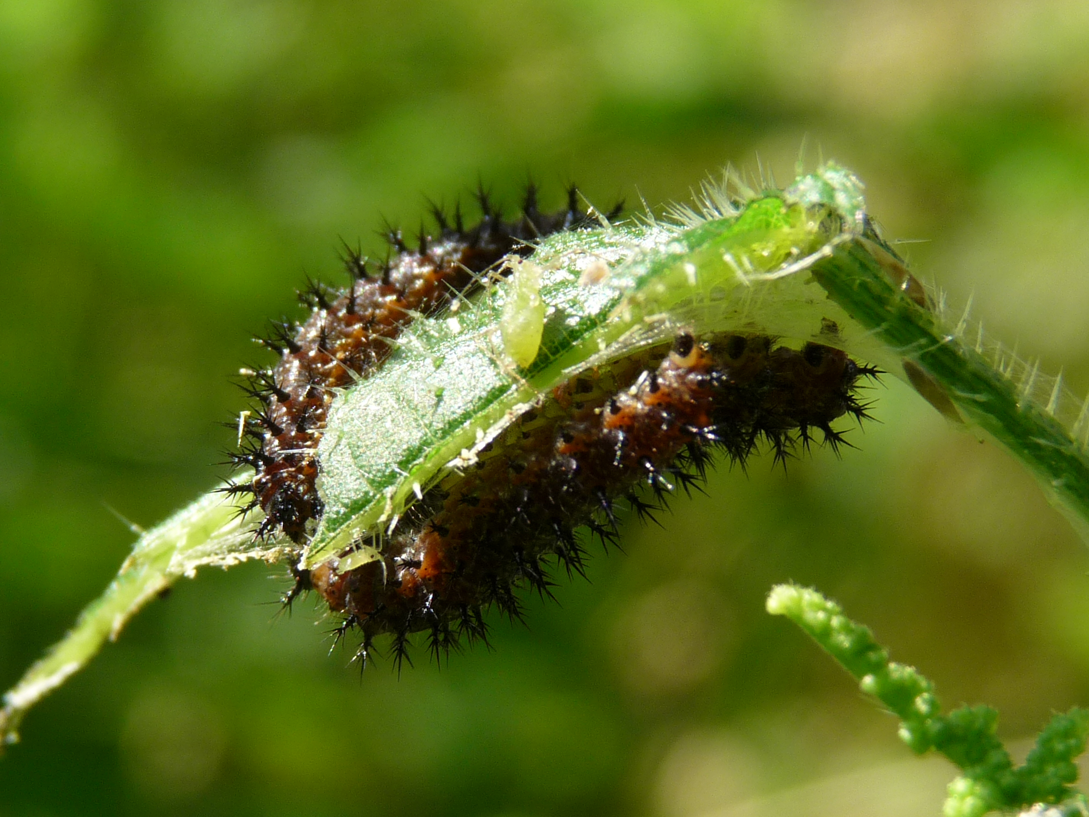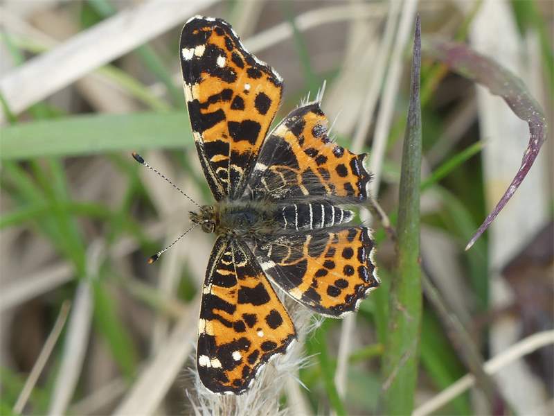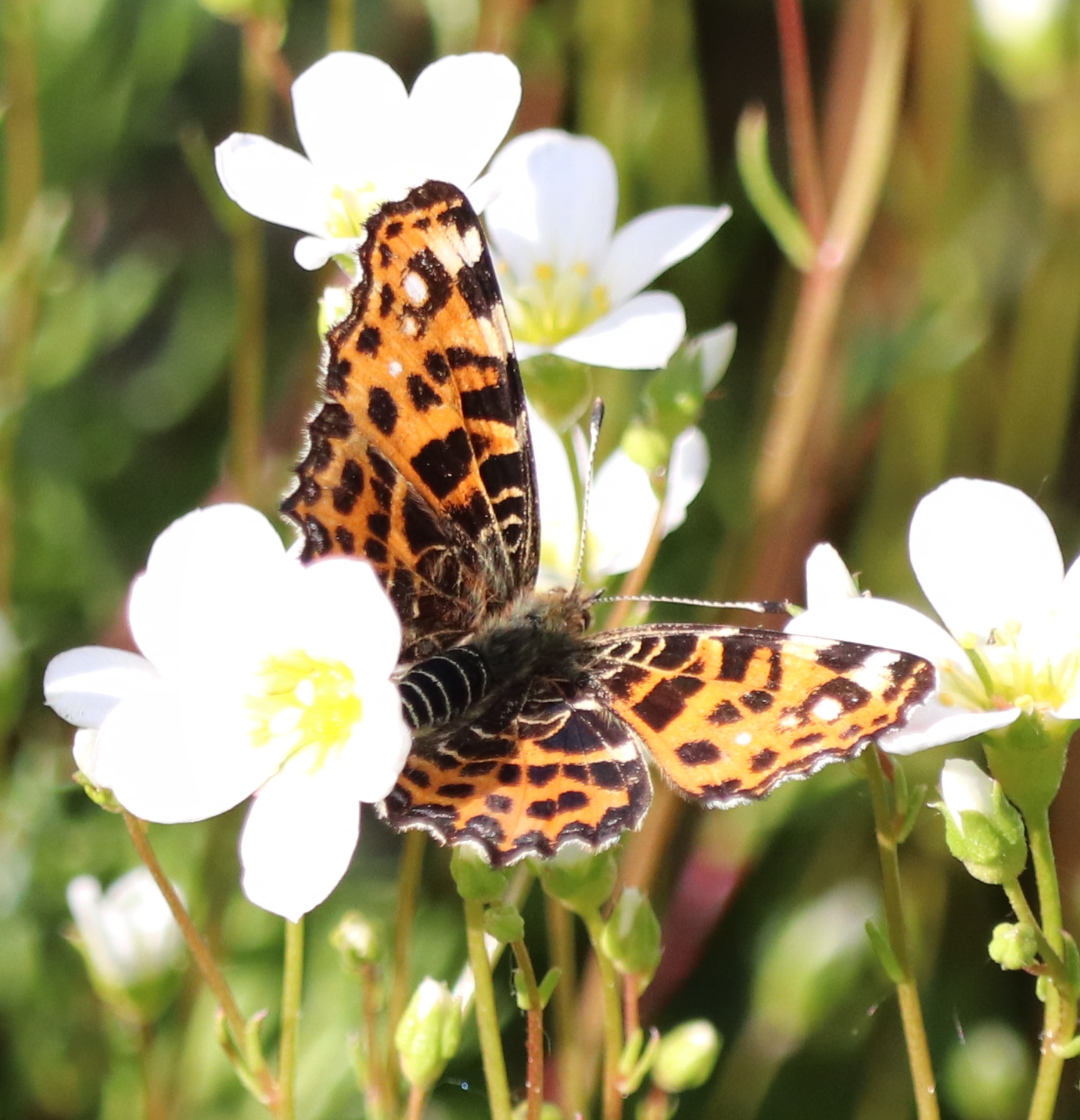 Landkärtchen, Sommergeneration der Schmetterlingsart auf Nektarspender Doldenblüte fotografiert, Falteroberseite im Sichtfeld, Ende Juni 2022, Auwald bei 06254 Horburg-Masslau (Sachsen-Anhalt) (© Heinz Sass)( Bild vergrößern)