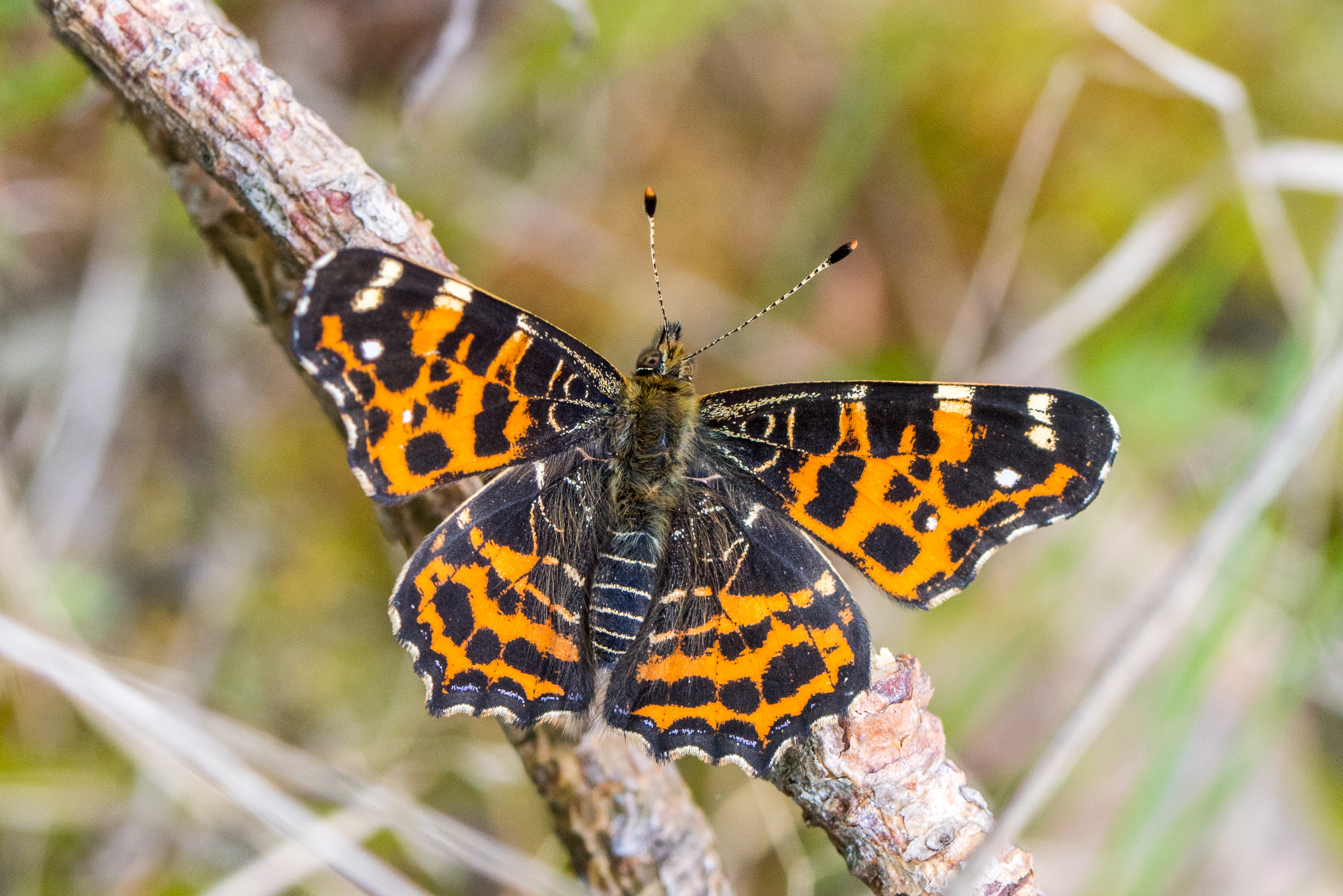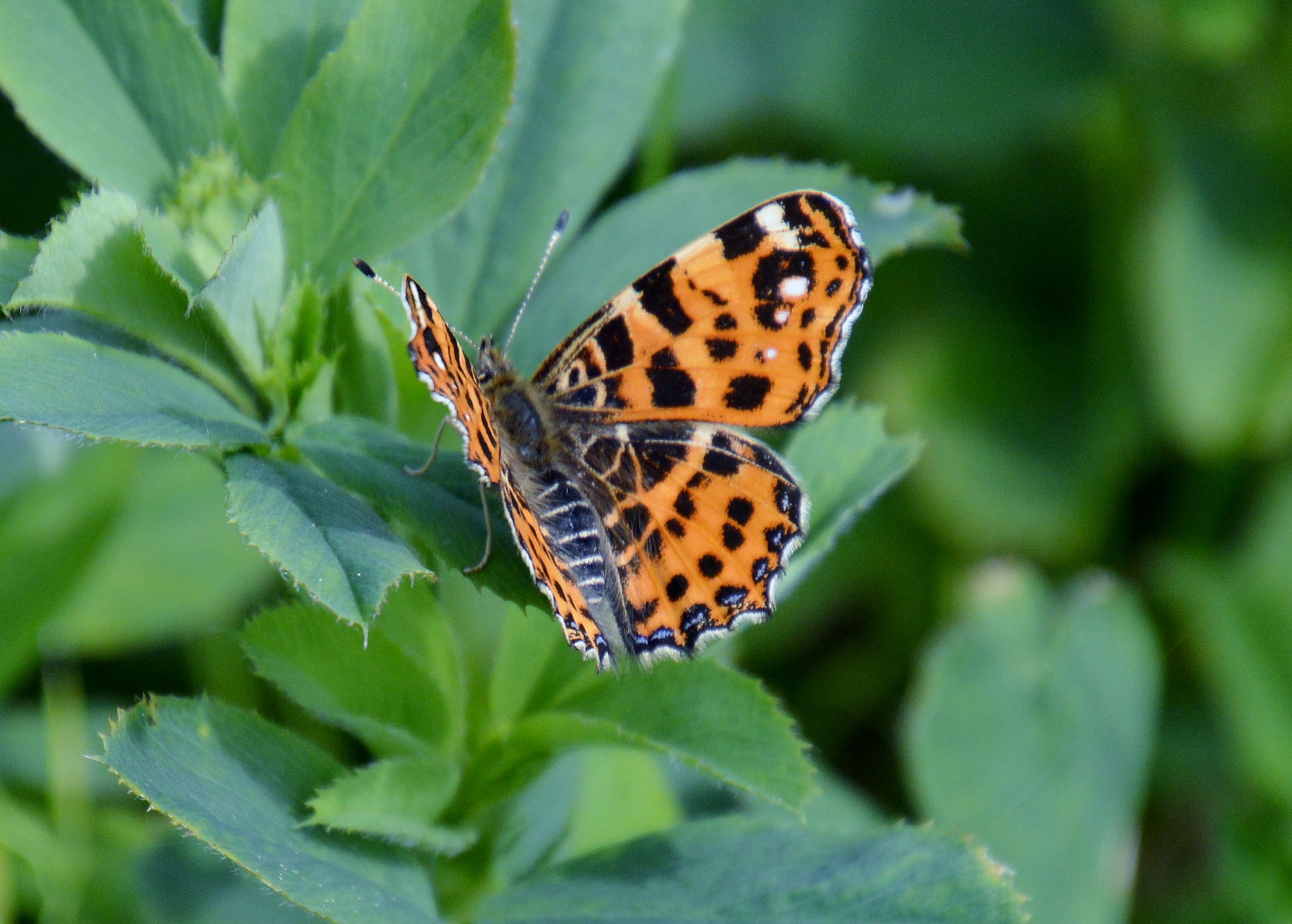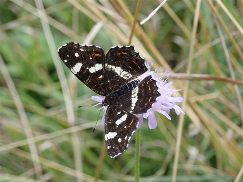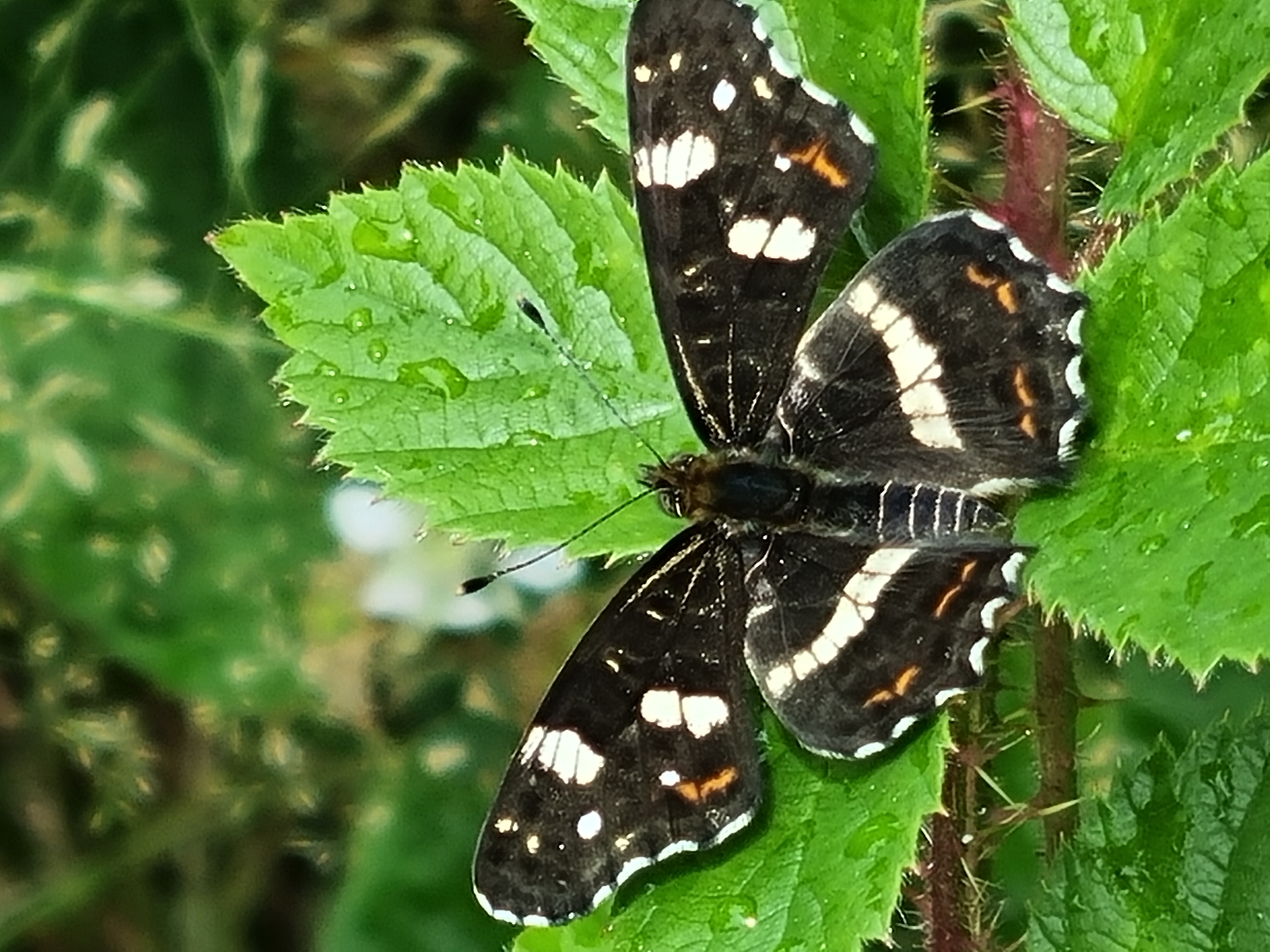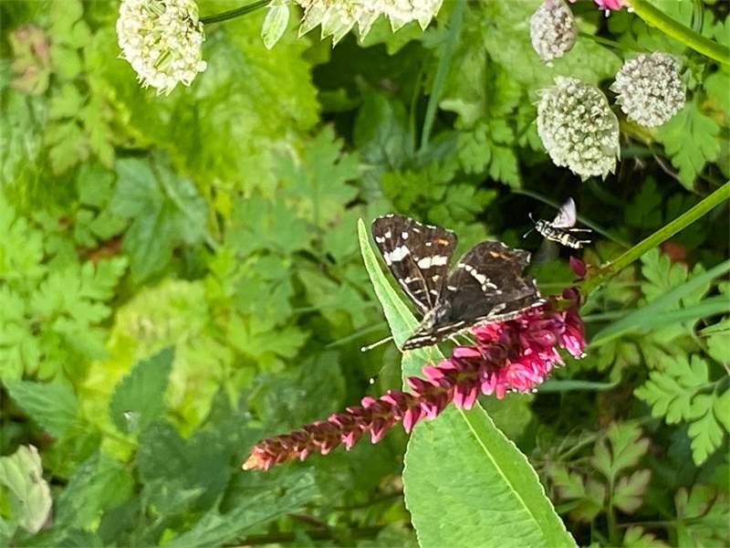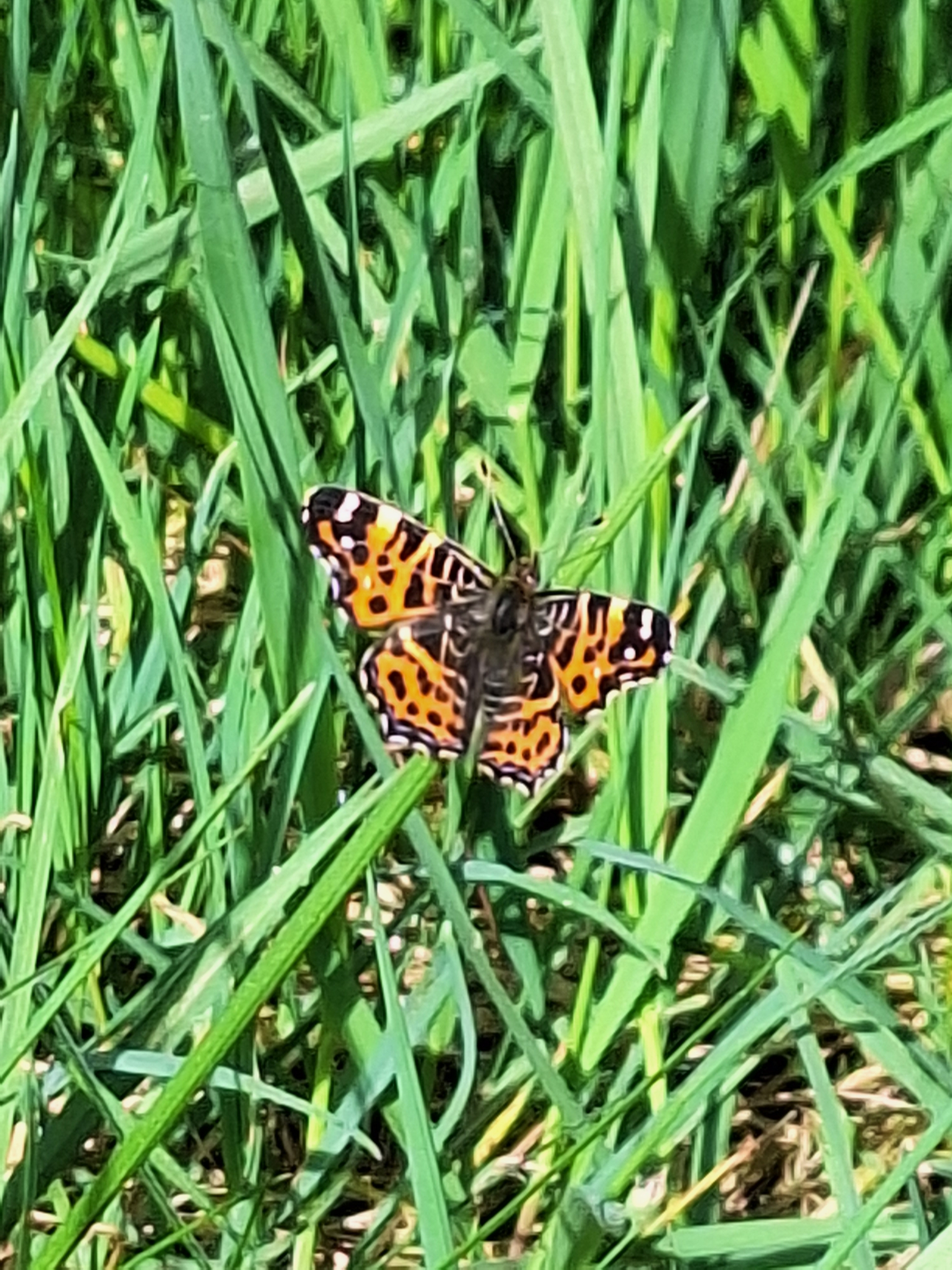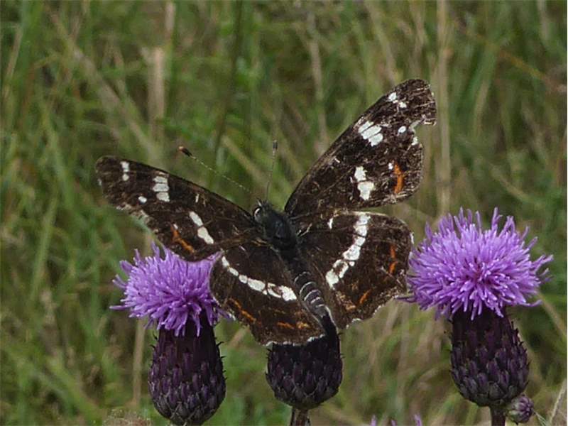 Landkärtchen, Sommergeneration der Schmetterlingsart auf Nektarspender Doldenblüte fotografiert, Falteroberseite im Sichtfeld, Ende Juni 2022, Auwald bei 06254 Horburg-Masslau (Sachsen-Anhalt) (© Heinz Sass)( Bild vergrößern)