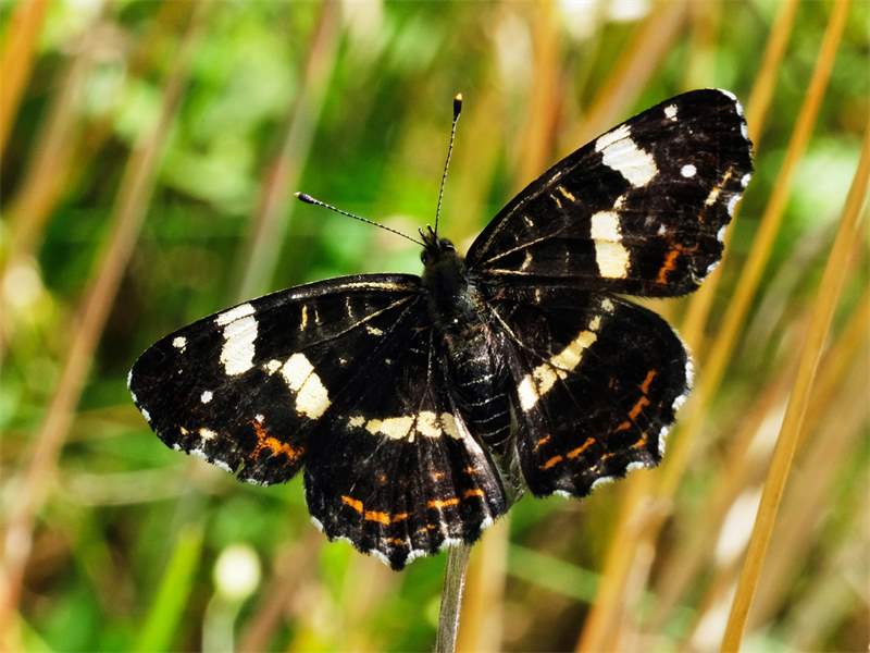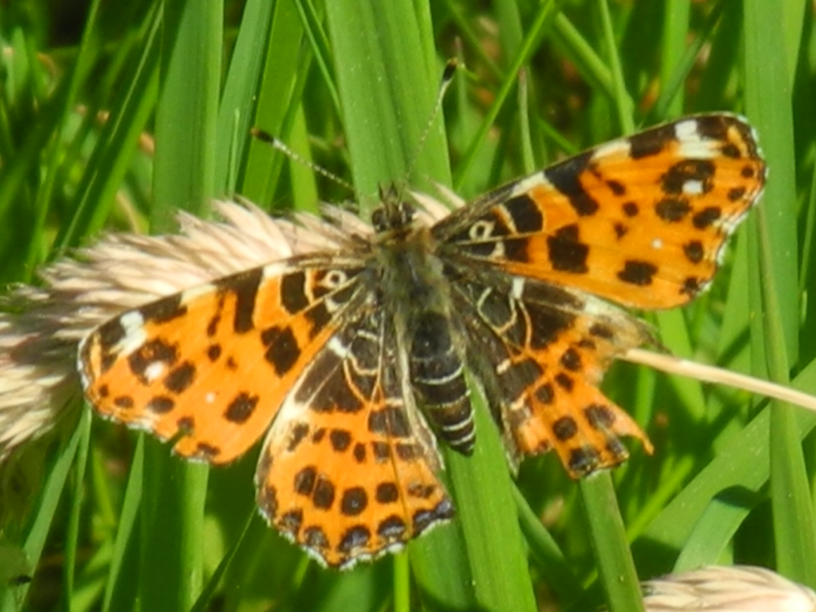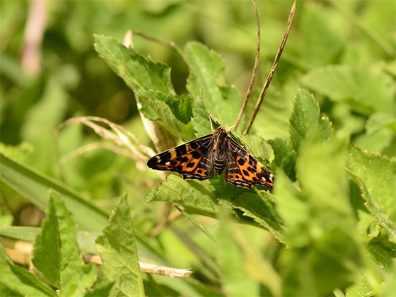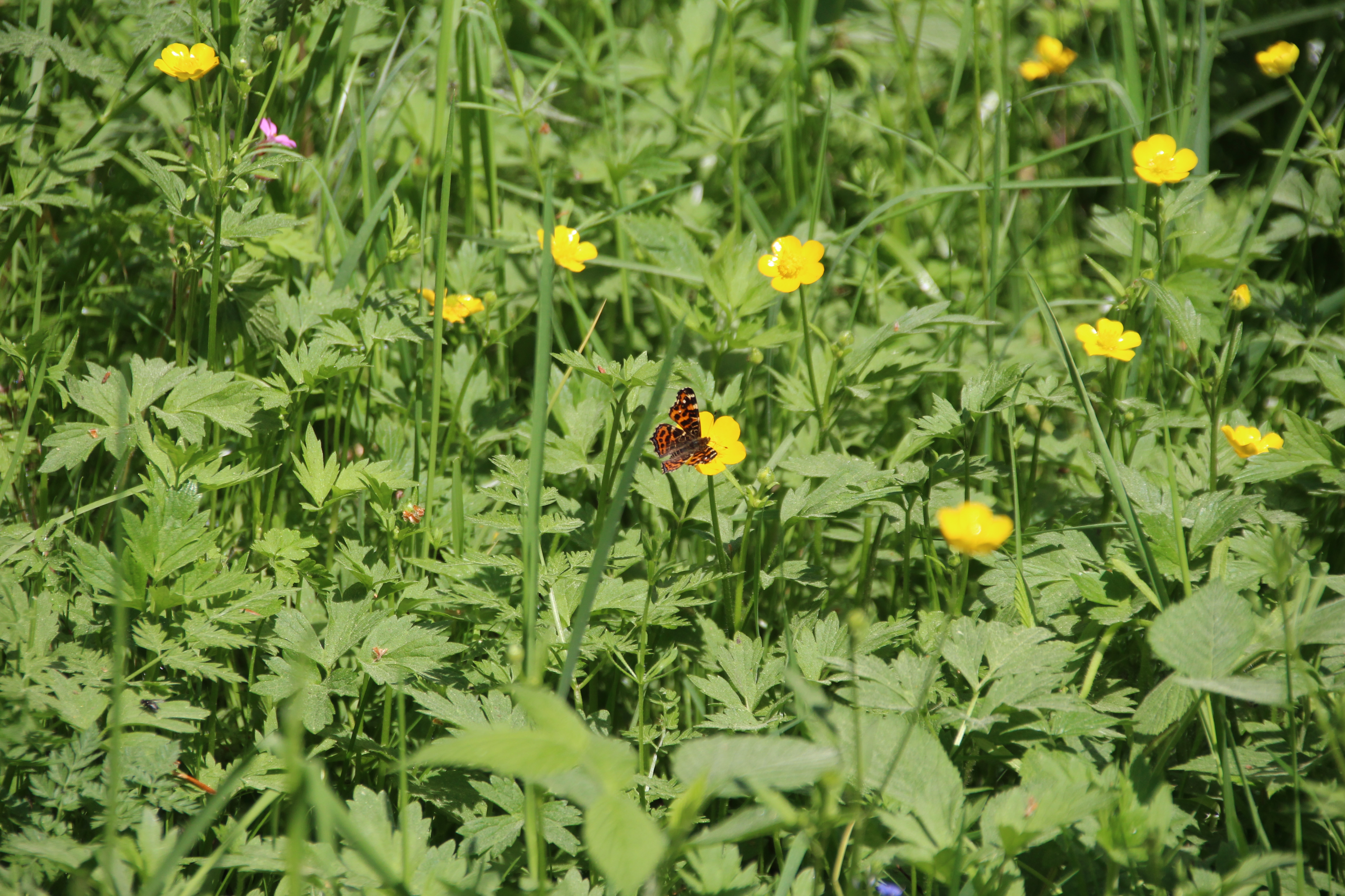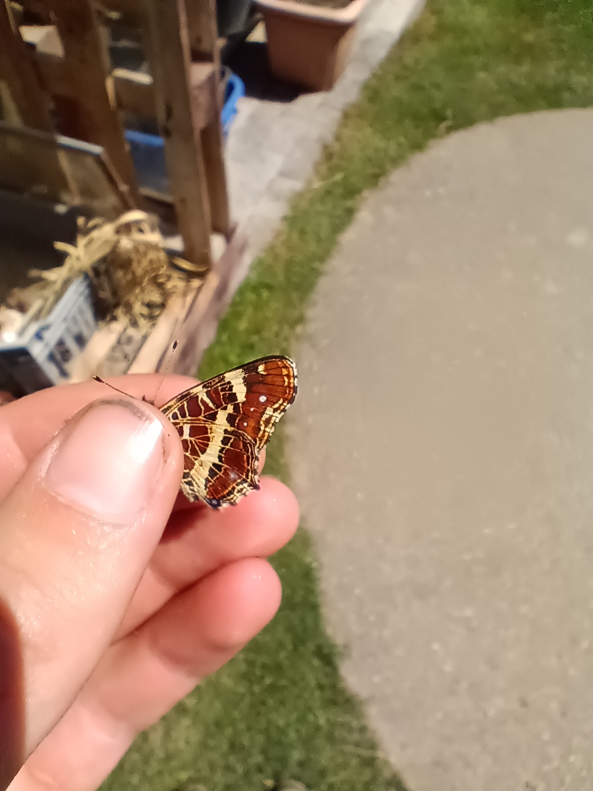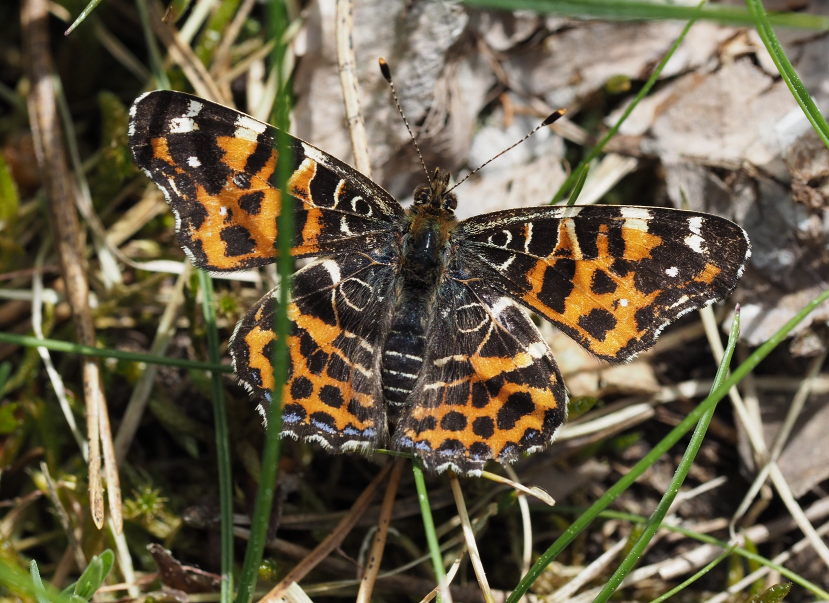 Landkärtchen, Sommergeneration der Schmetterlingsart auf Nektarspender Doldenblüte fotografiert, Falteroberseite im Sichtfeld, Ende Juni 2022, Auwald bei 06254 Horburg-Masslau (Sachsen-Anhalt) (© Heinz Sass)( Bild vergrößern)