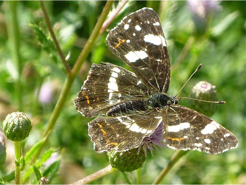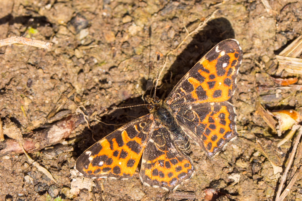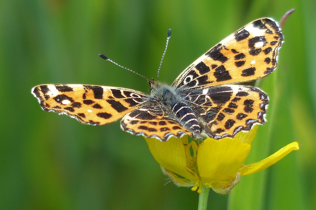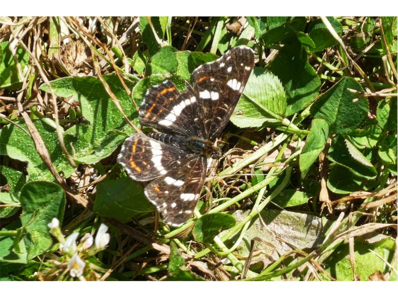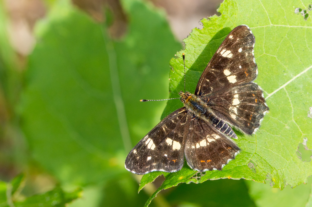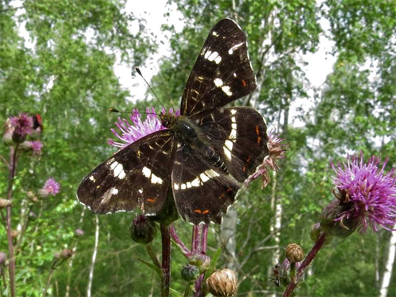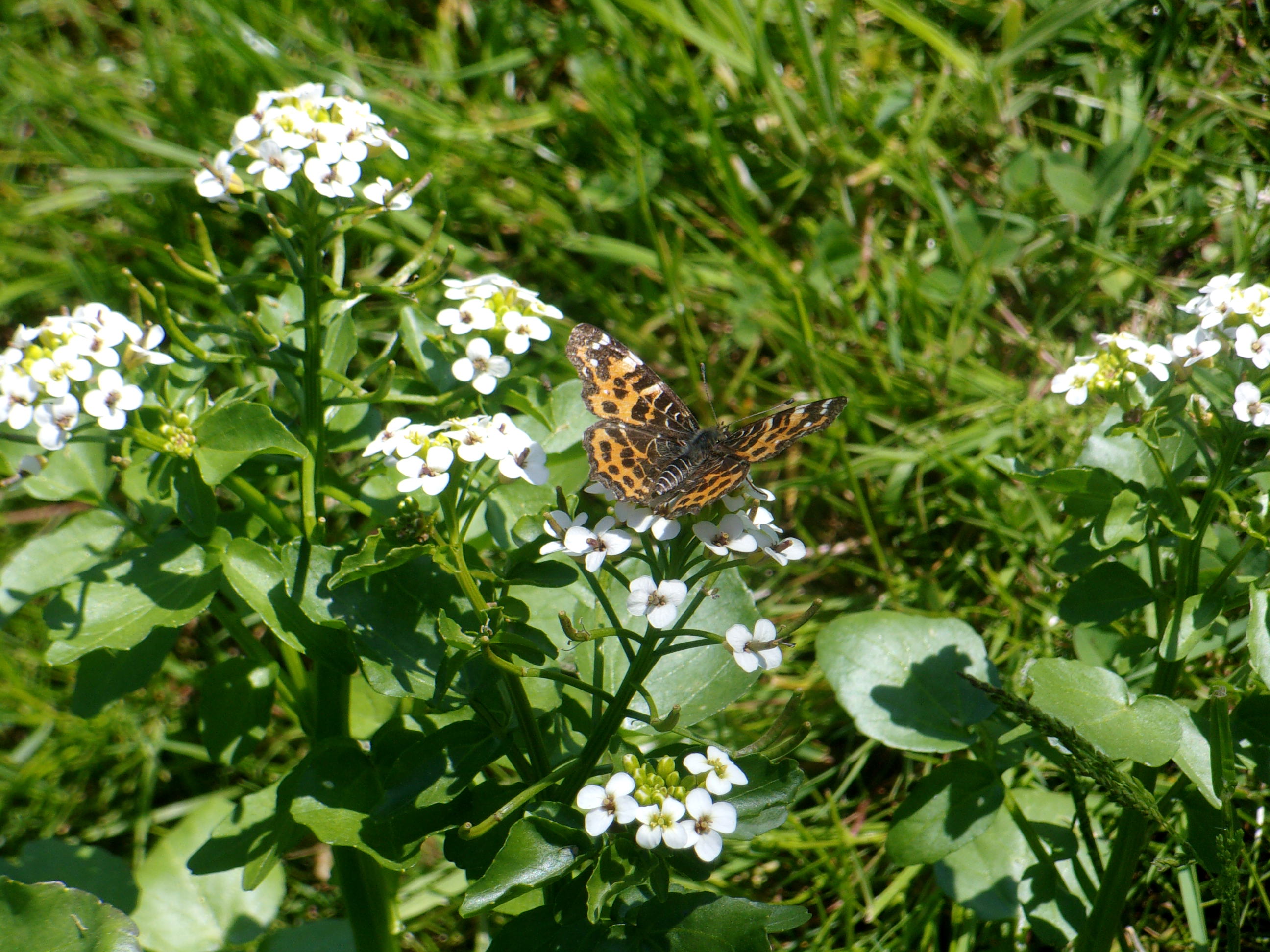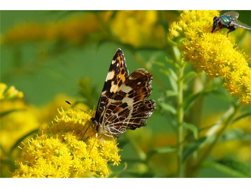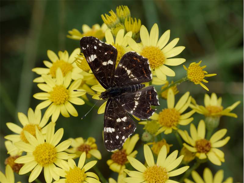 Landkärtchen, Sommergeneration der Schmetterlingsart auf Nektarspender Doldenblüte fotografiert, Falteroberseite im Sichtfeld, Ende Juni 2022, Auwald bei 06254 Horburg-Masslau (Sachsen-Anhalt) (© Heinz Sass)( Bild vergrößern)