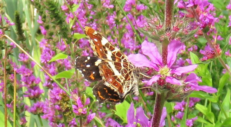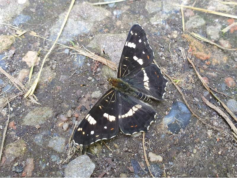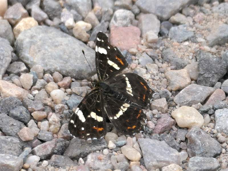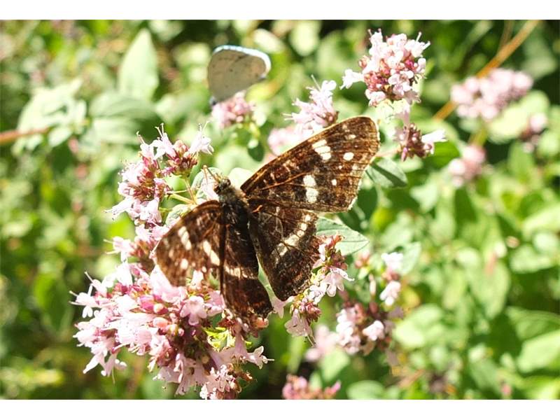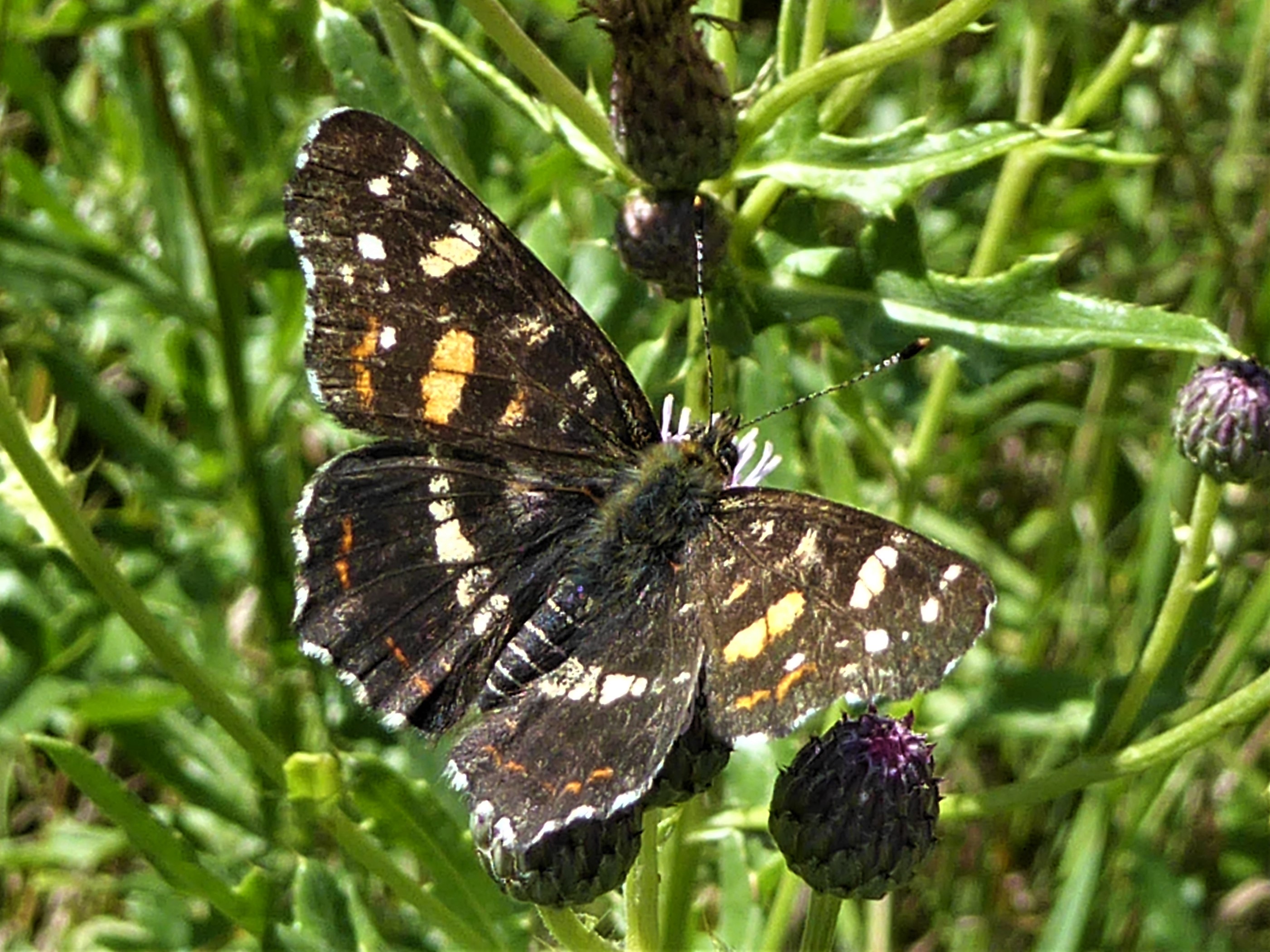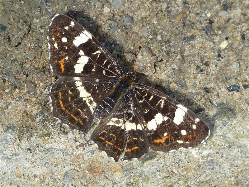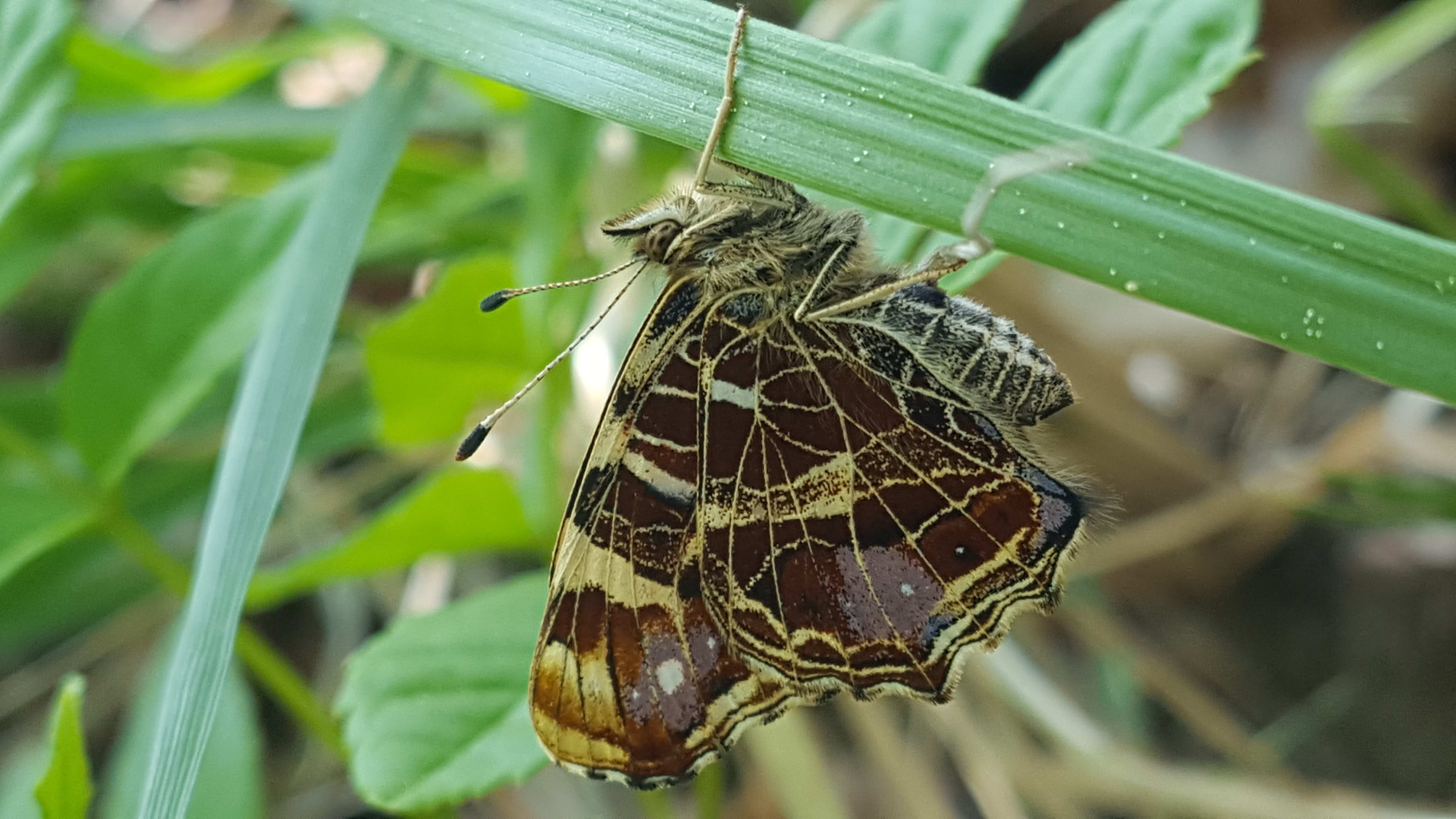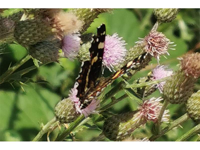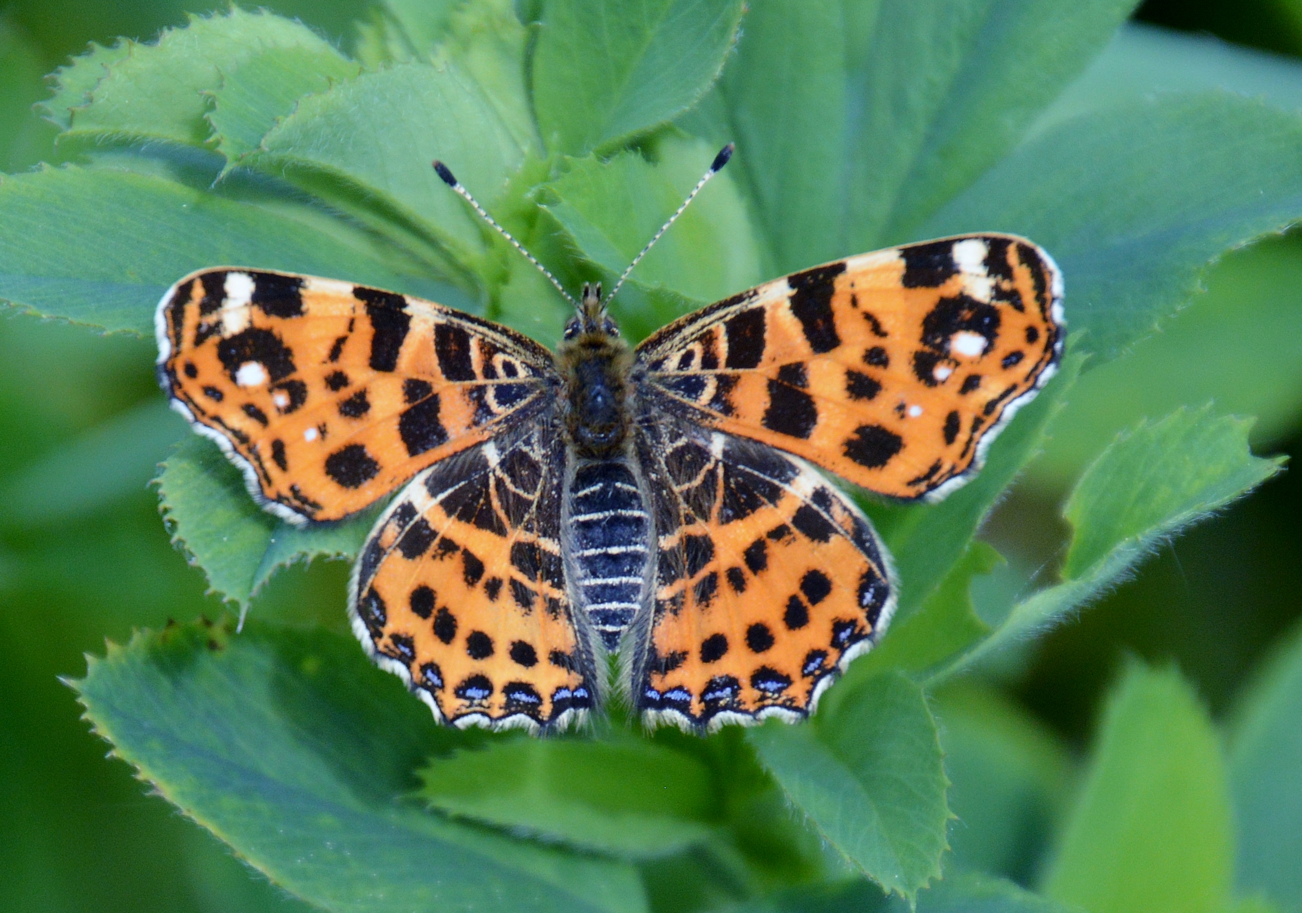 Landkärtchen, Sommergeneration der Schmetterlingsart auf Nektarspender Doldenblüte fotografiert, Falteroberseite im Sichtfeld, Ende Juni 2022, Auwald bei 06254 Horburg-Masslau (Sachsen-Anhalt) (© Heinz Sass)( Bild vergrößern)
