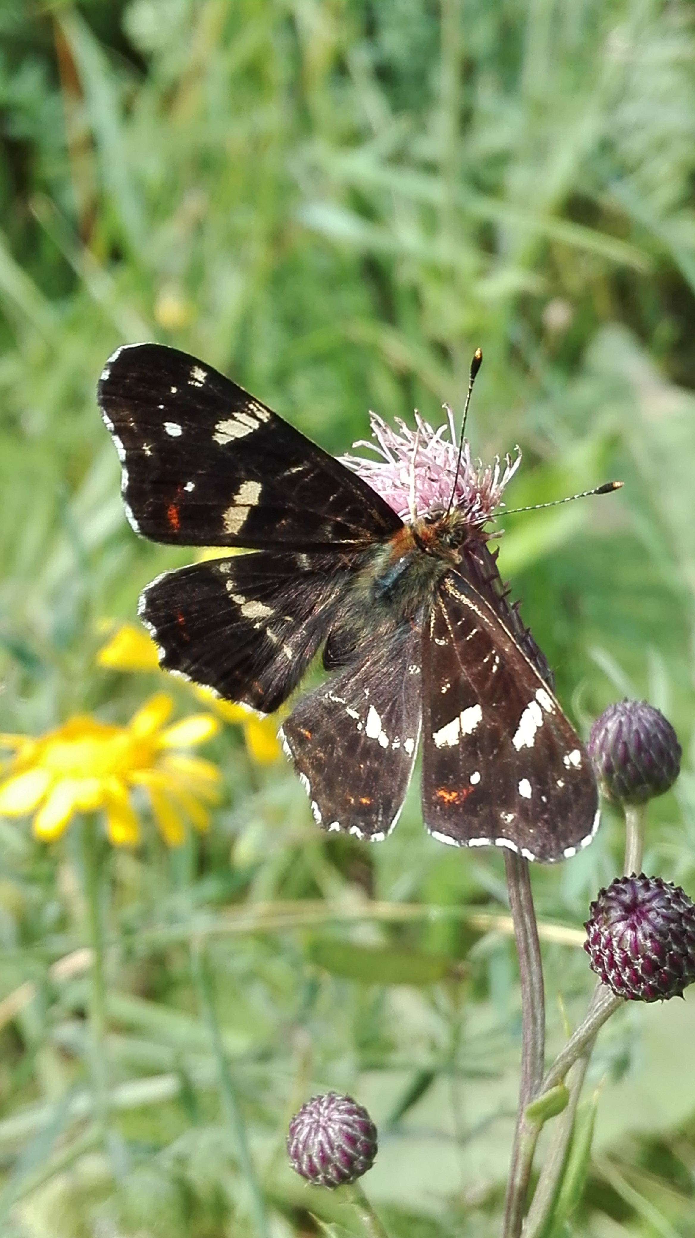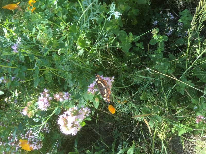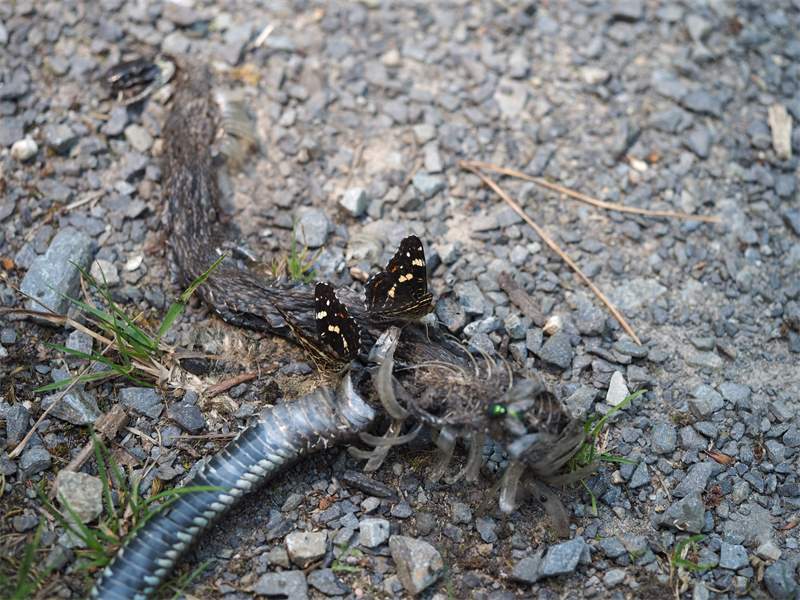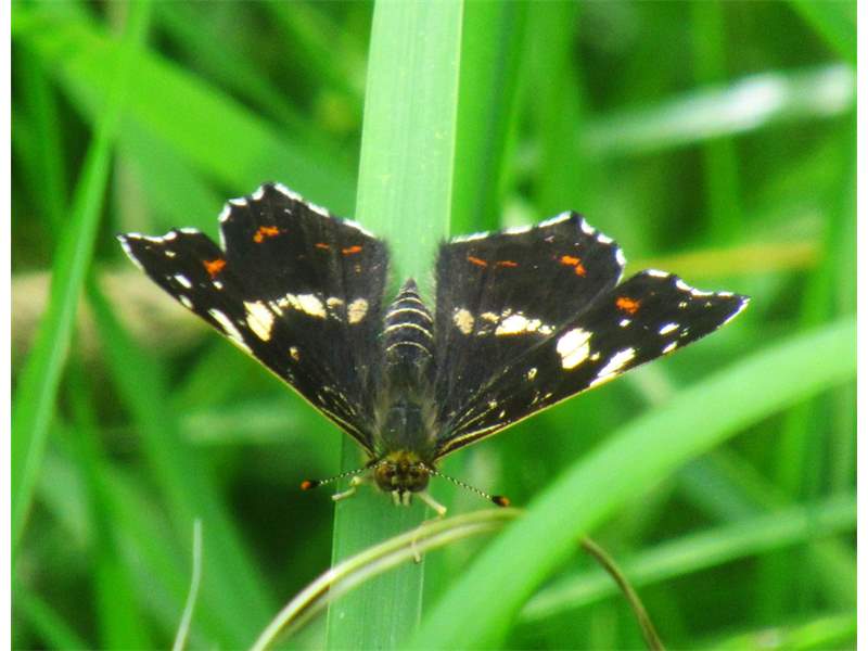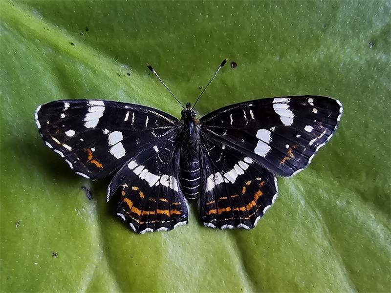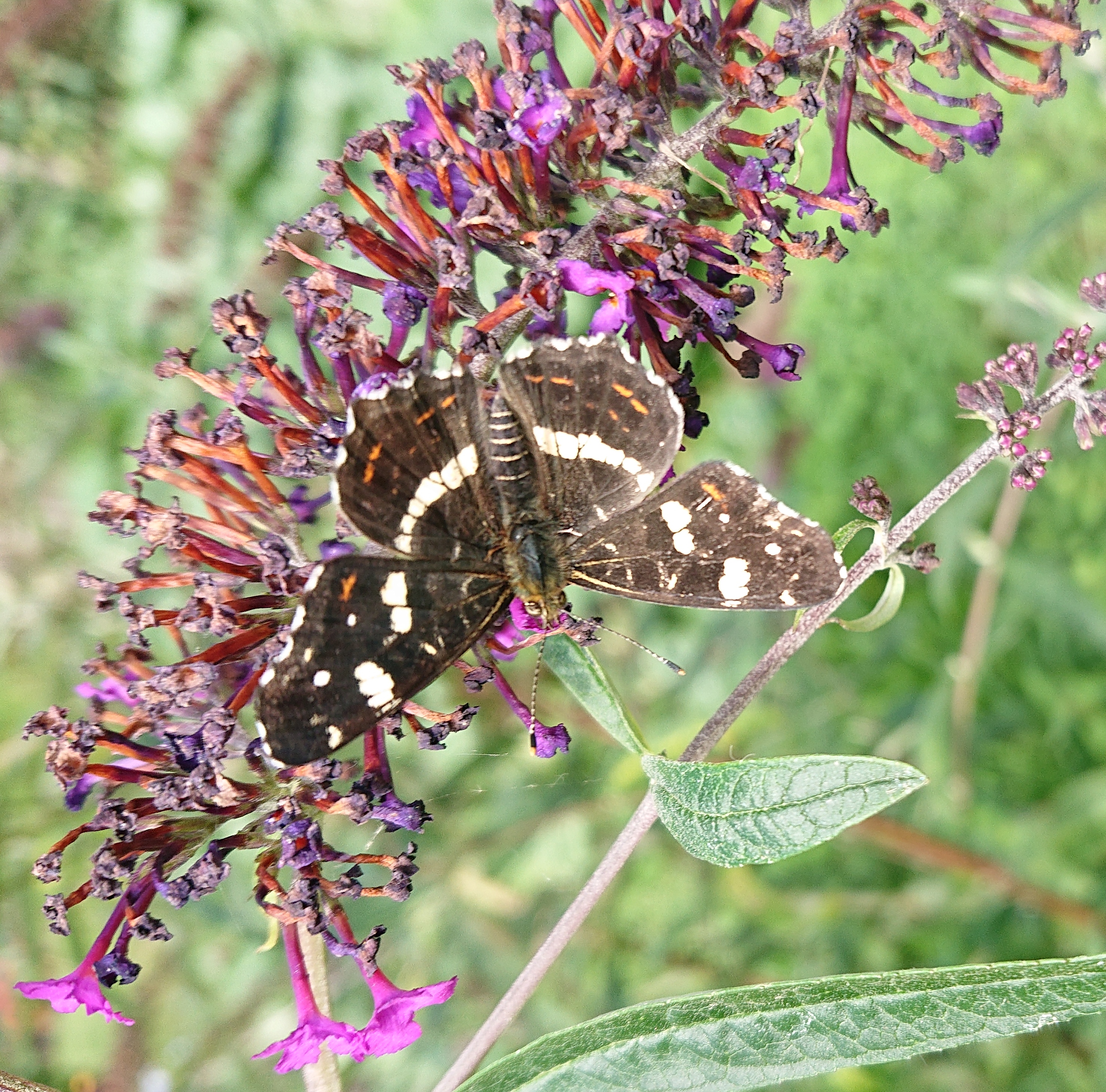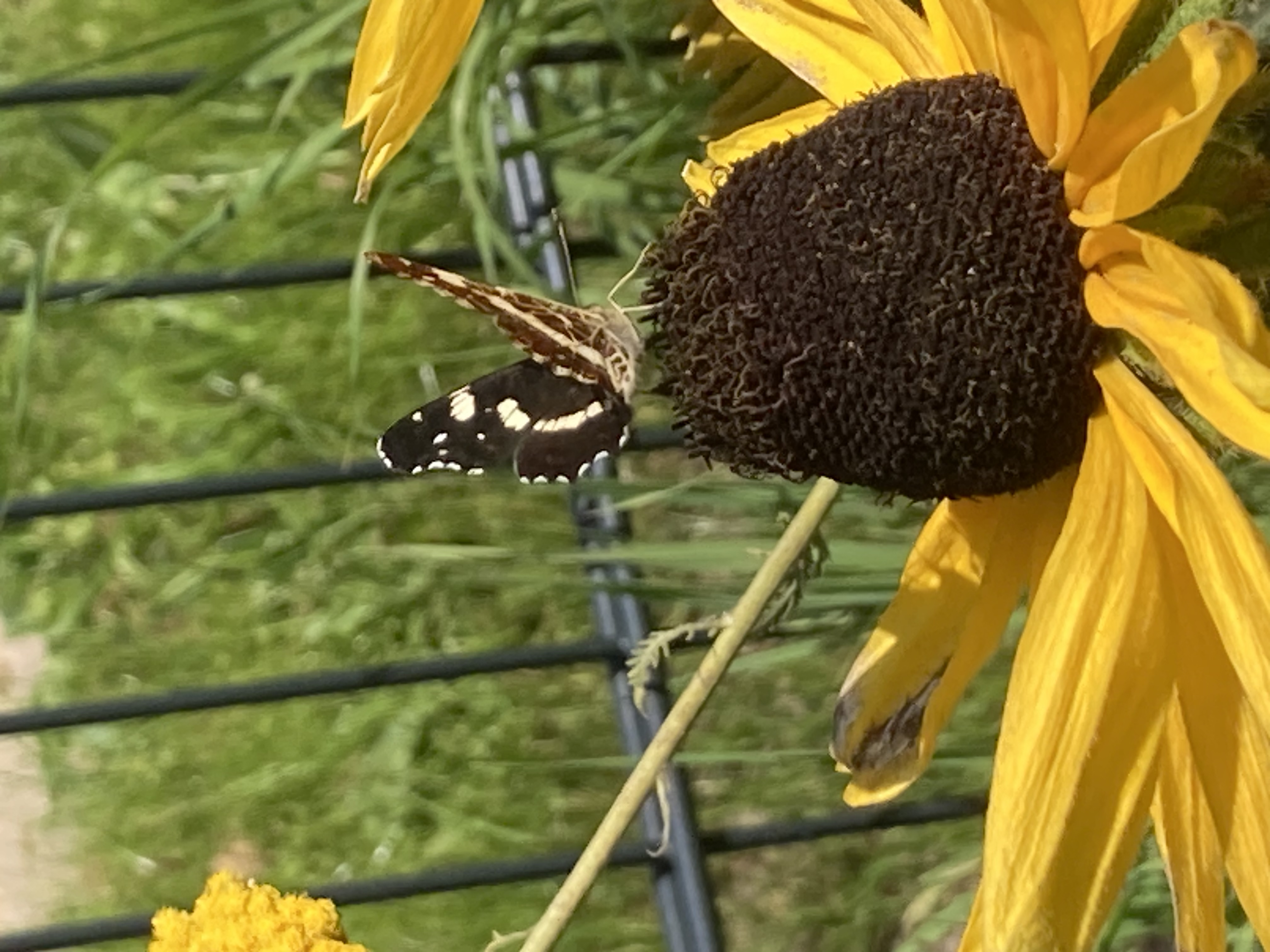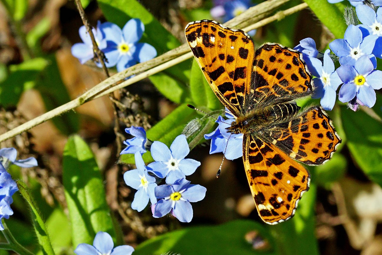Landkärtchen, Sommergeneration der Schmetterlingsart auf Nektarspender Doldenblüte fotografiert, Falteroberseite im Sichtfeld, Ende Juni 2022, Auwald bei 06254 Horburg-Masslau (Sachsen-Anhalt) (© Heinz Sass)( Bild vergrößern)