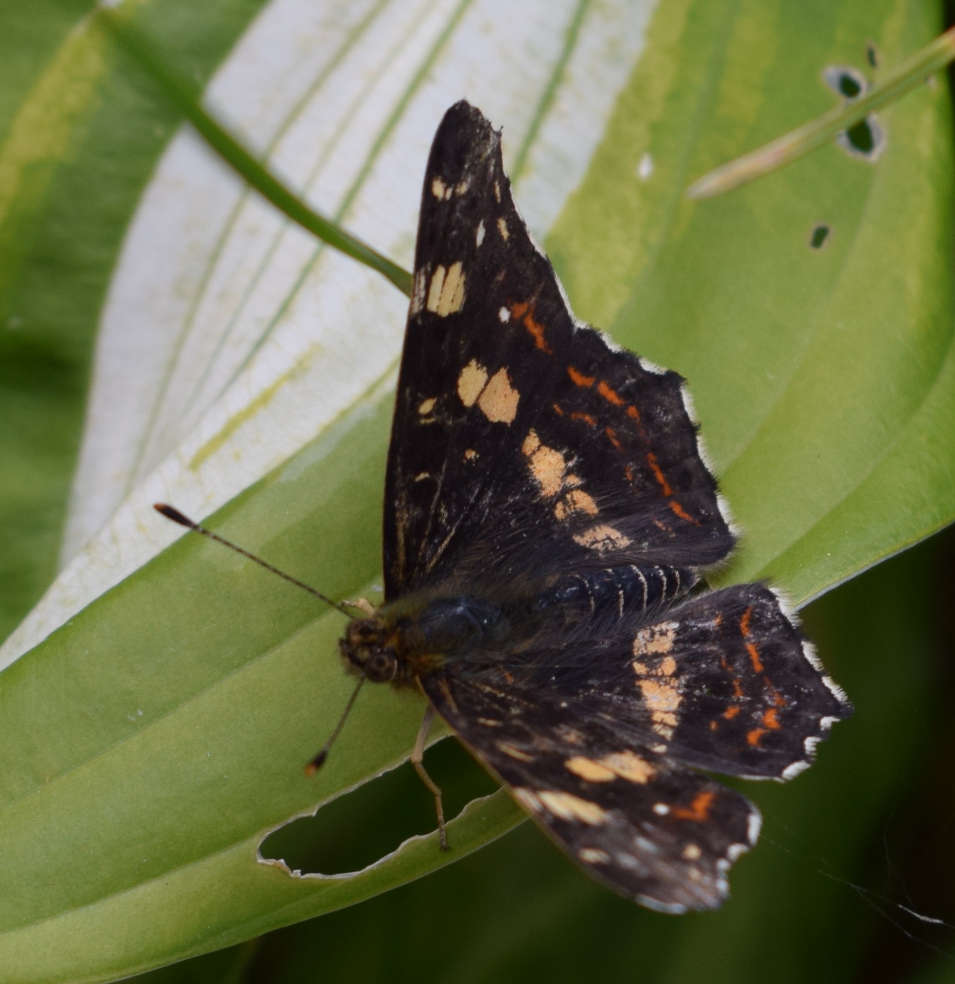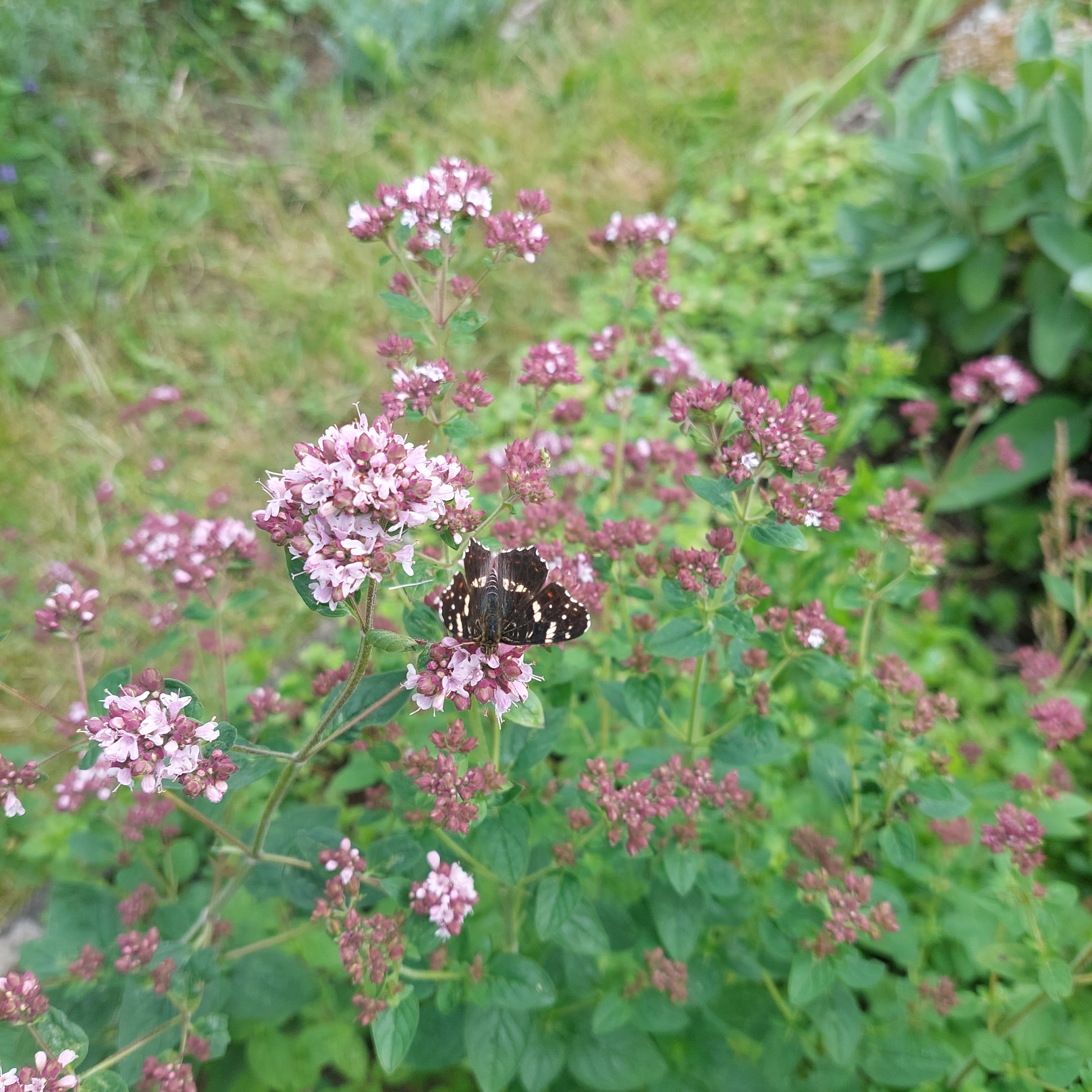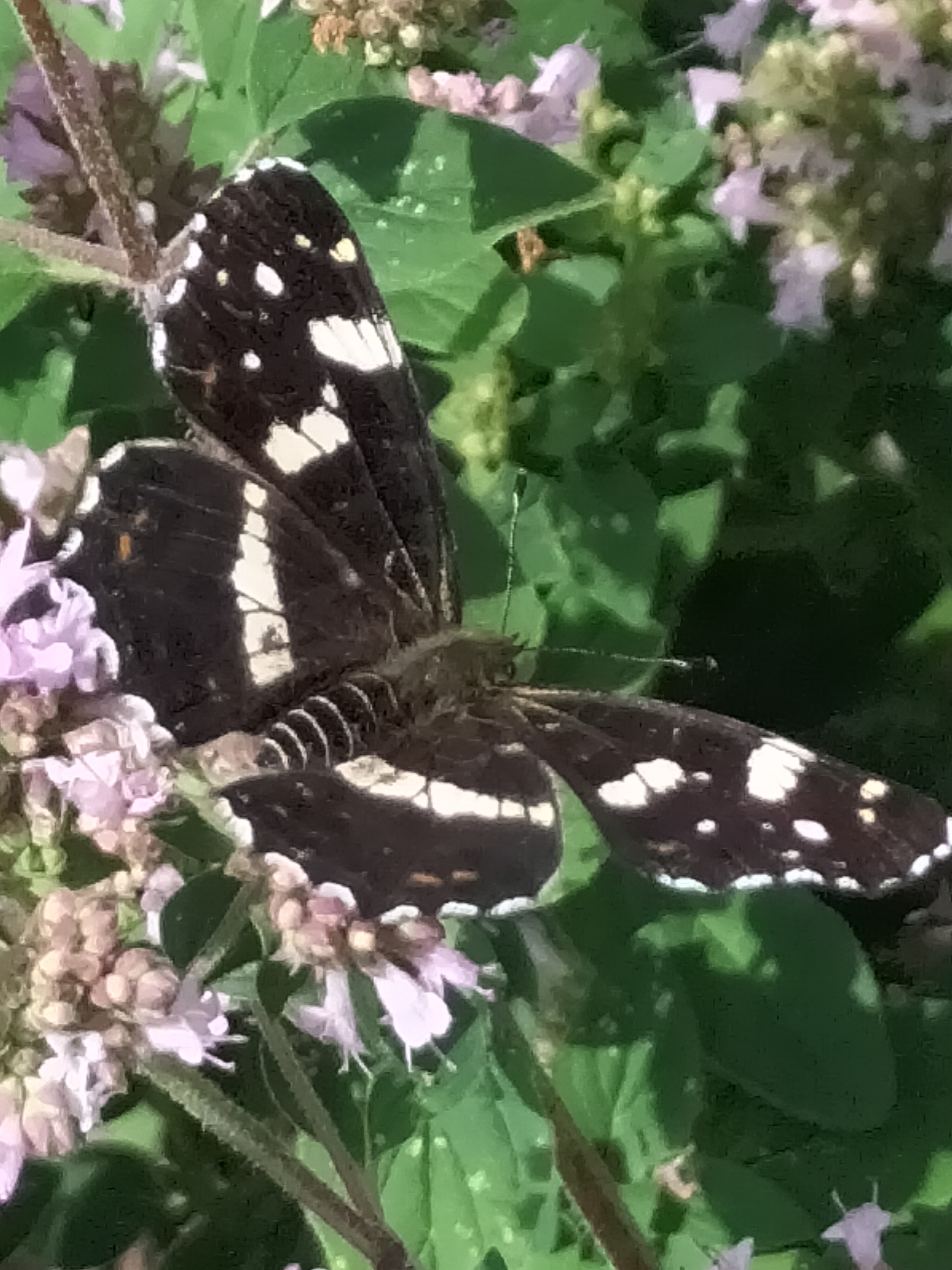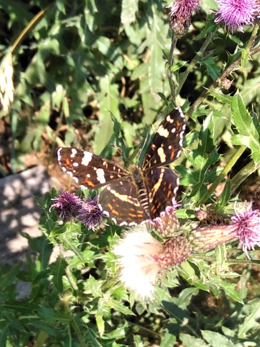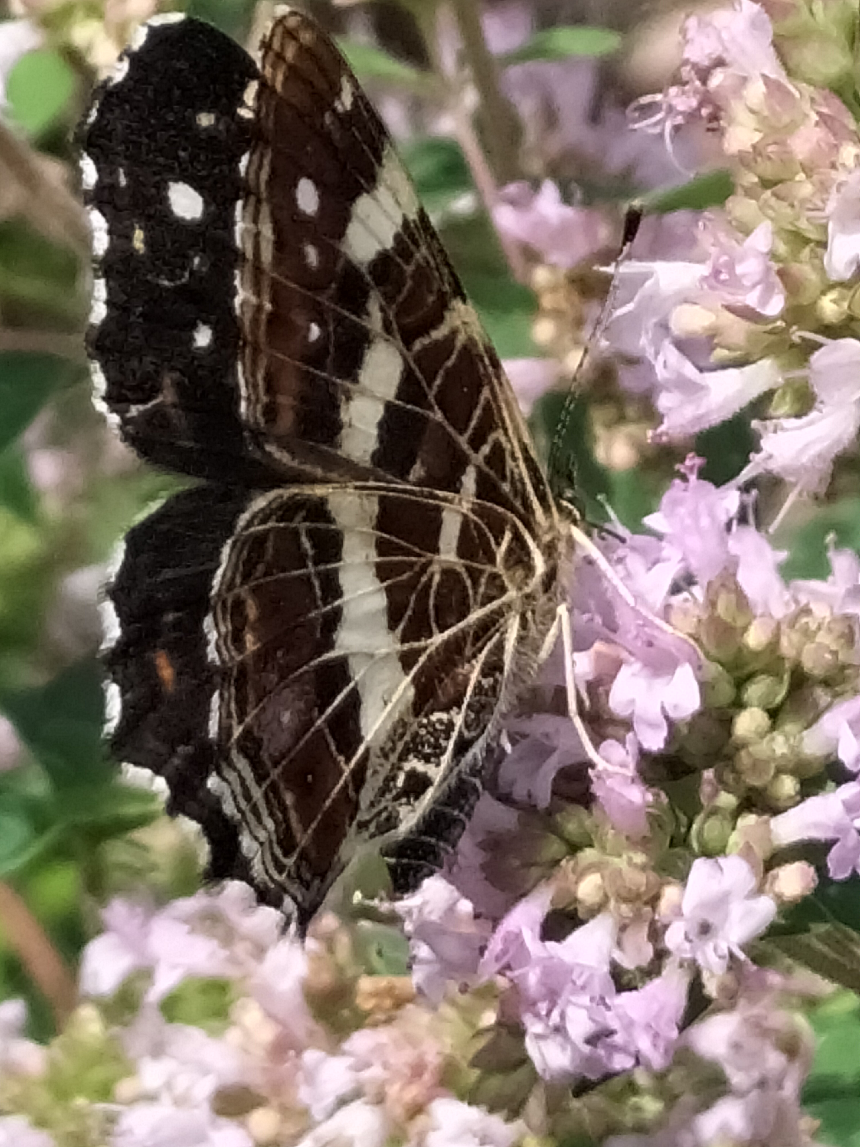 Landkärtchen, Sommergeneration der Schmetterlingsart auf Nektarspender Doldenblüte fotografiert, Falteroberseite im Sichtfeld, Ende Juni 2022, Auwald bei 06254 Horburg-Masslau (Sachsen-Anhalt)