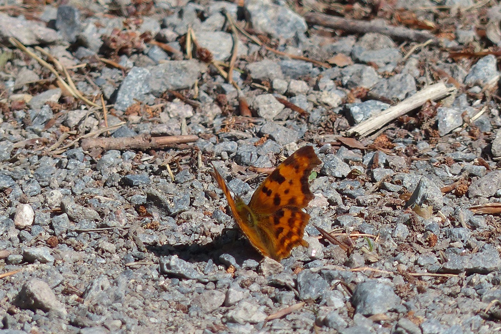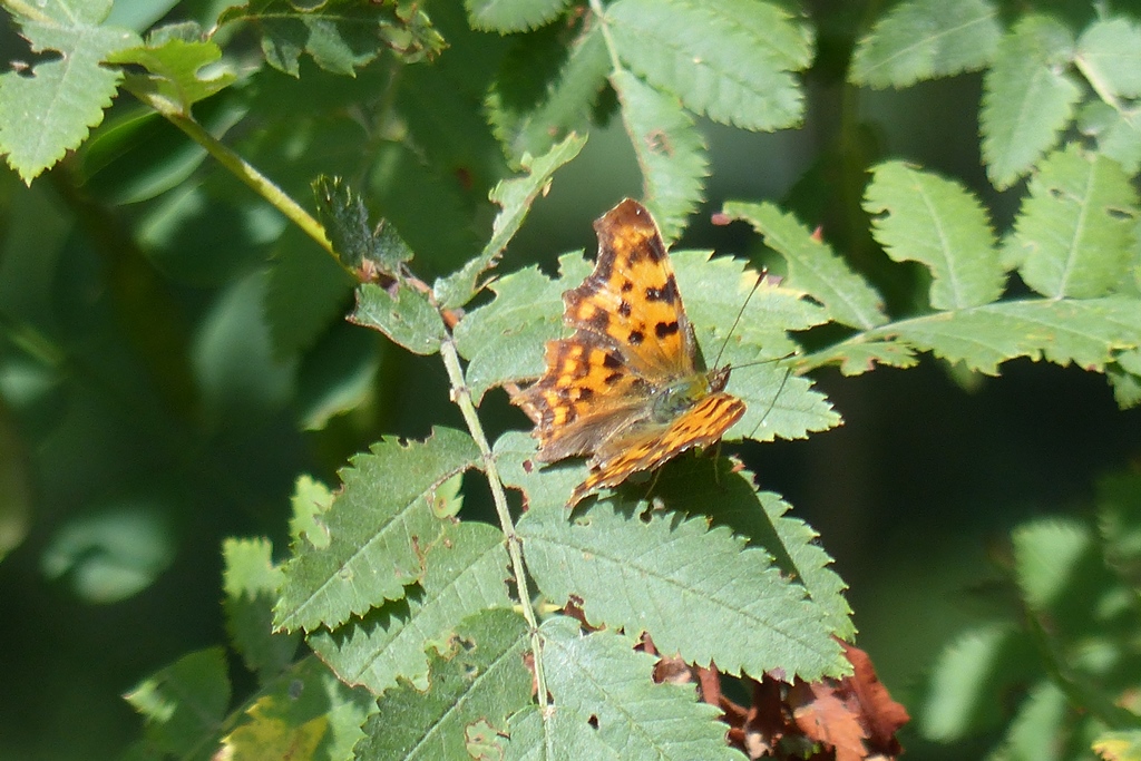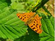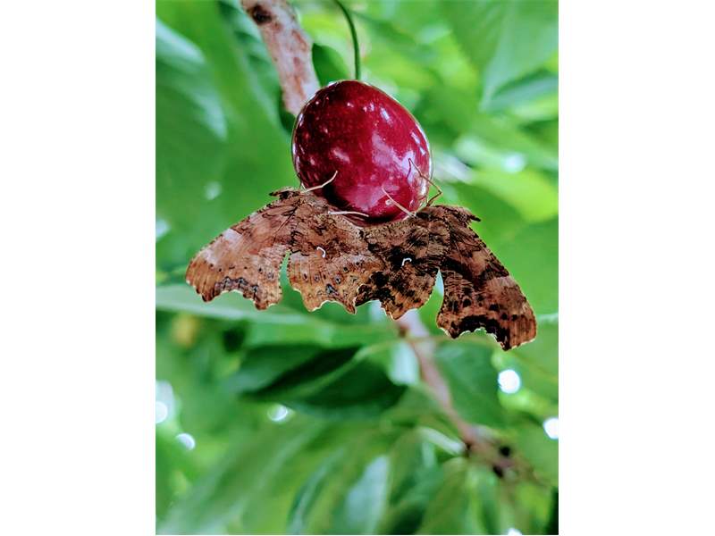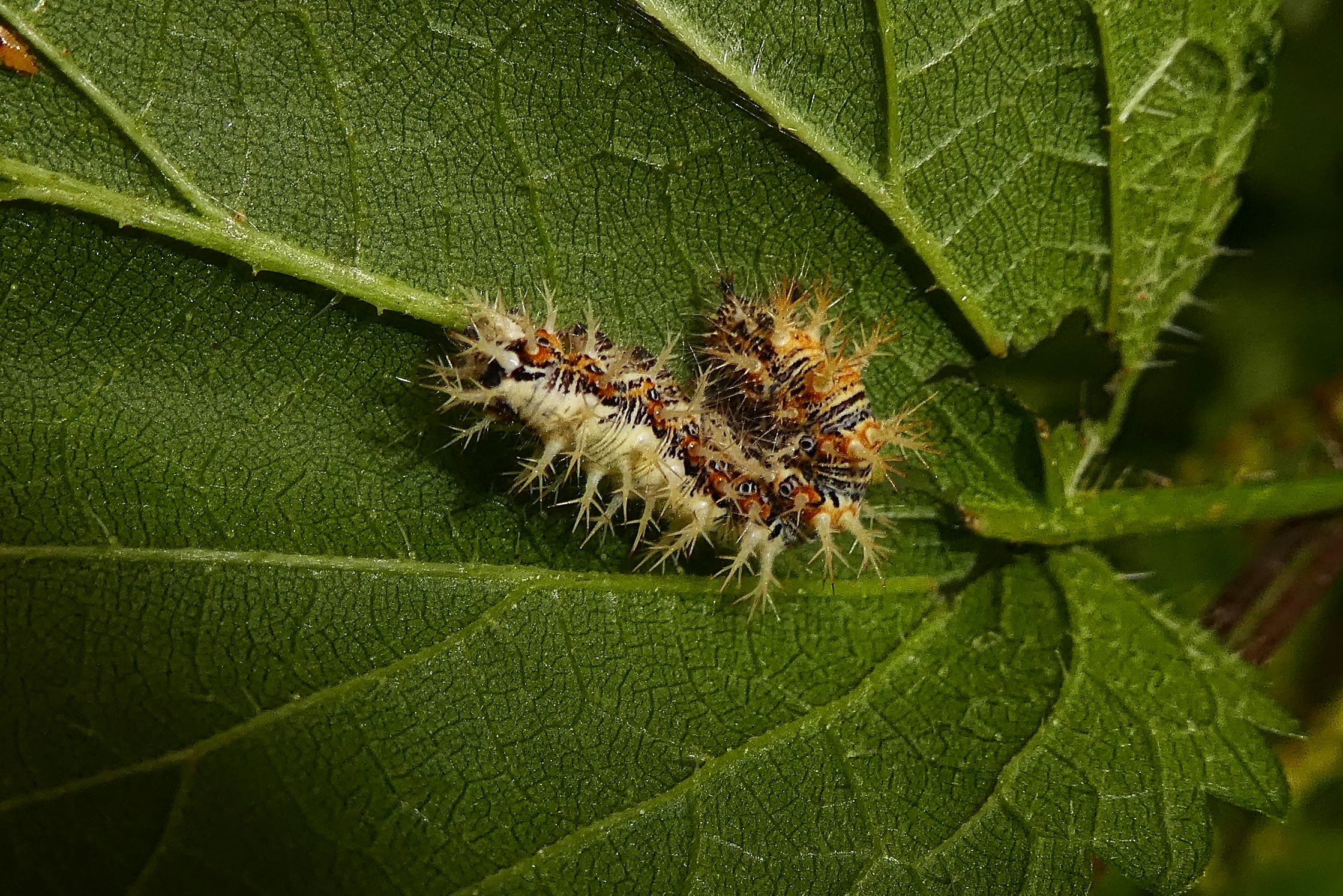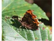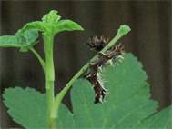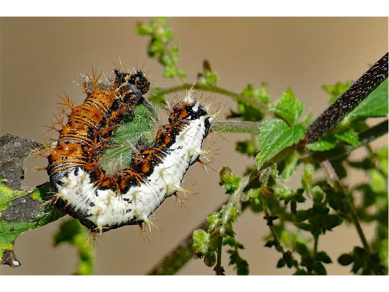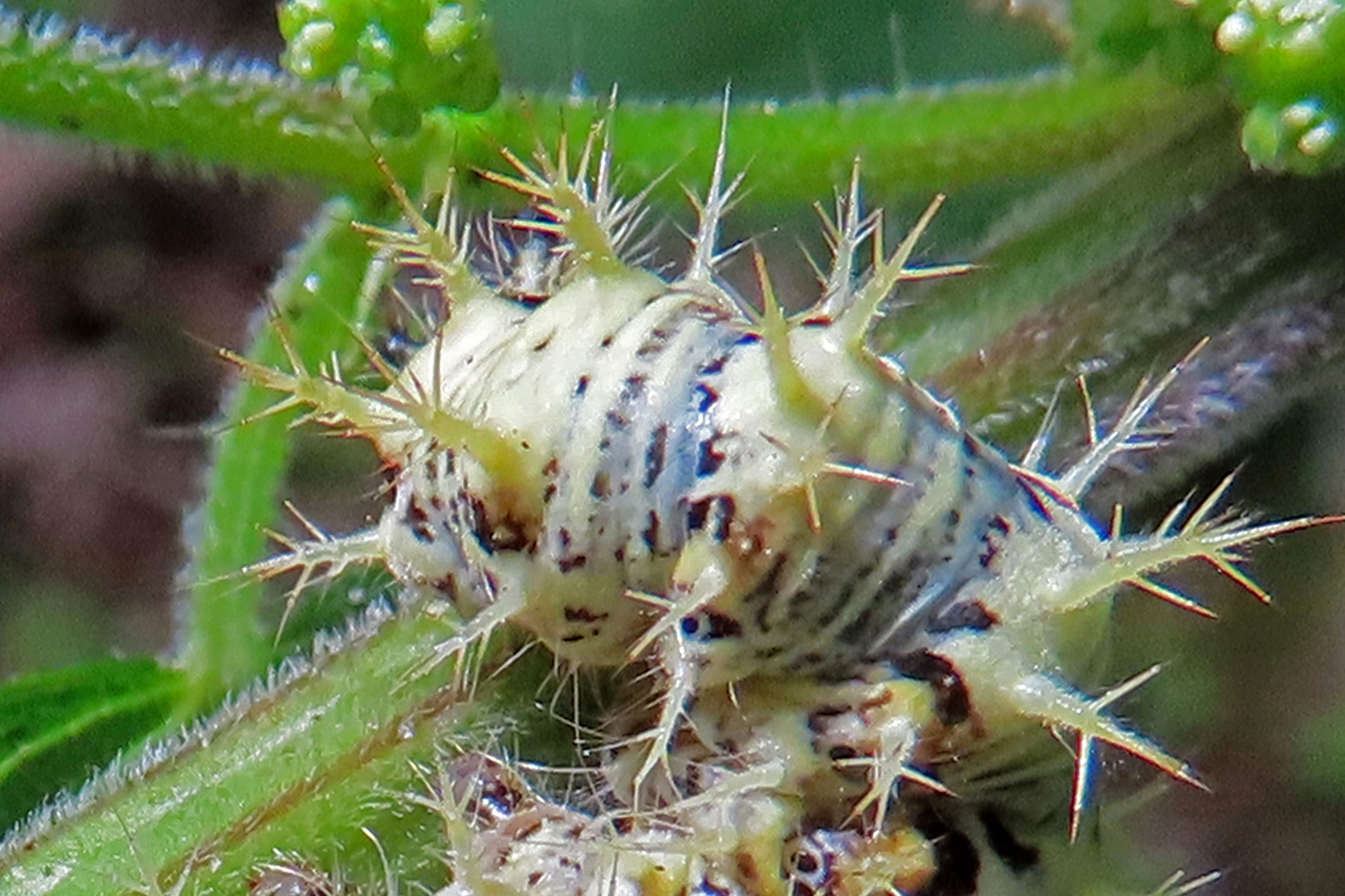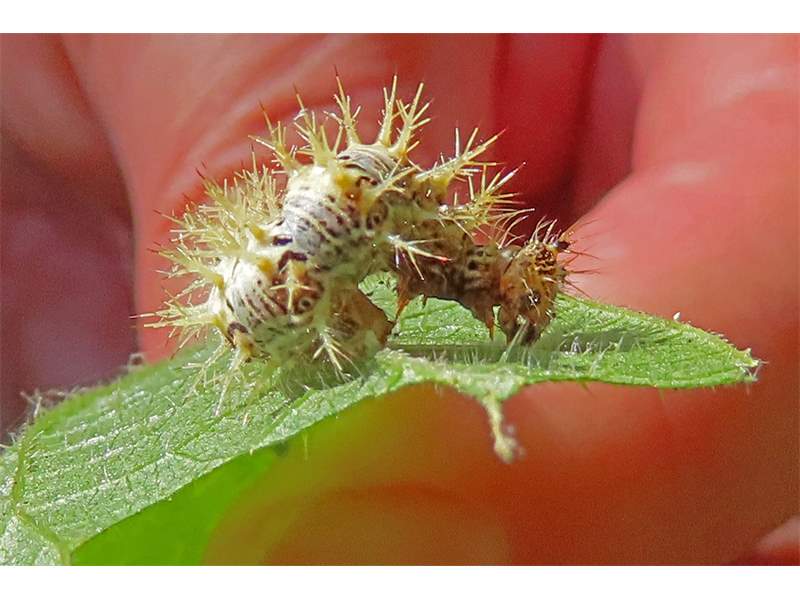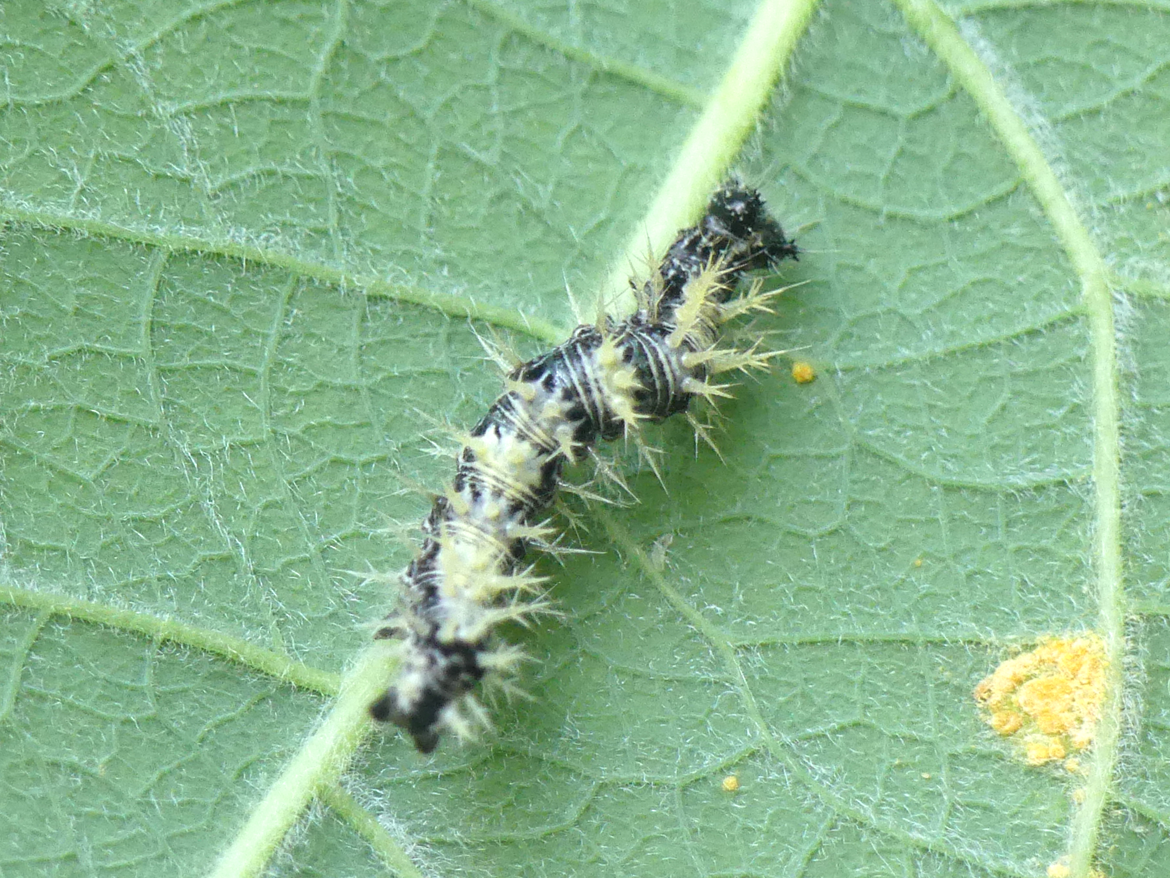 C-Falter (Polygonia c-album (Linnaeus, 1758)), Puppe an Flatterulme, Großer Garten Dresden, 24. Mai 2019 (© Lucas Langer)( Bild vergrößern)