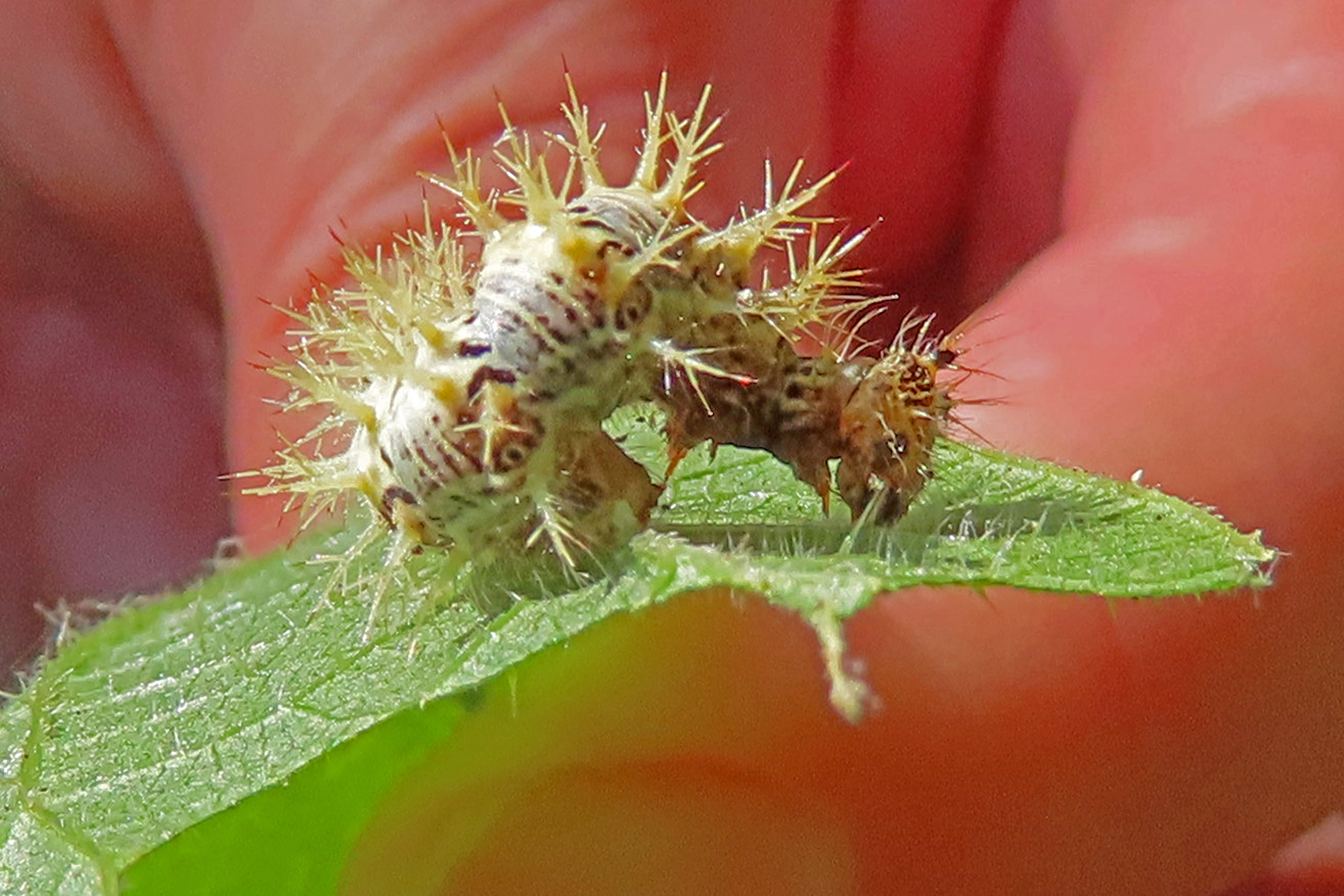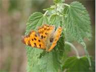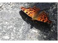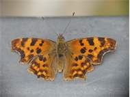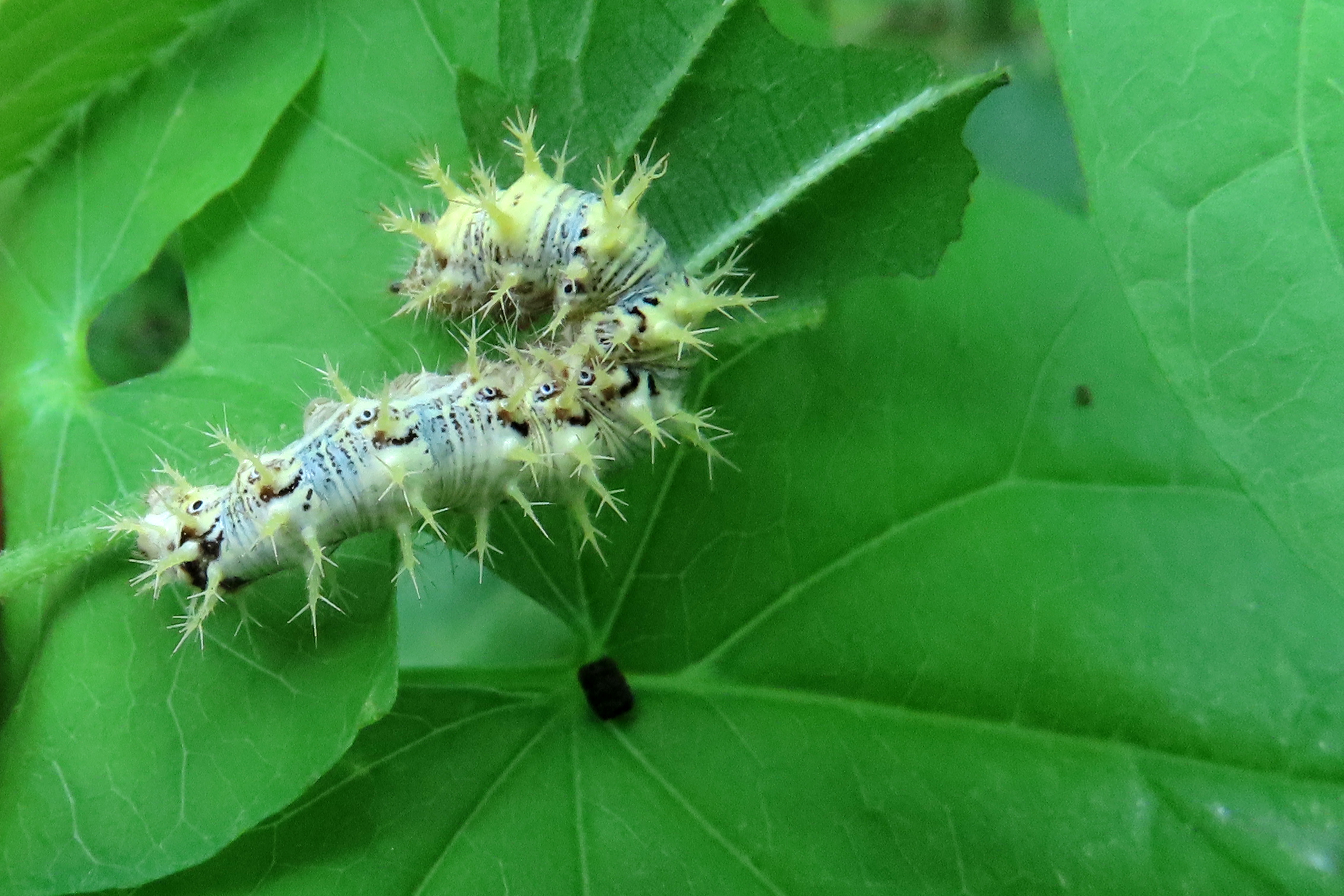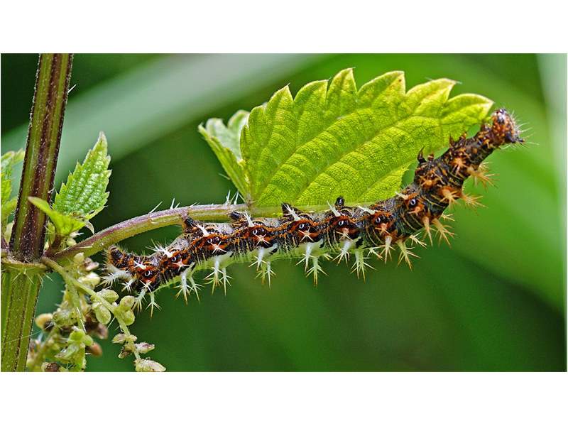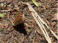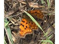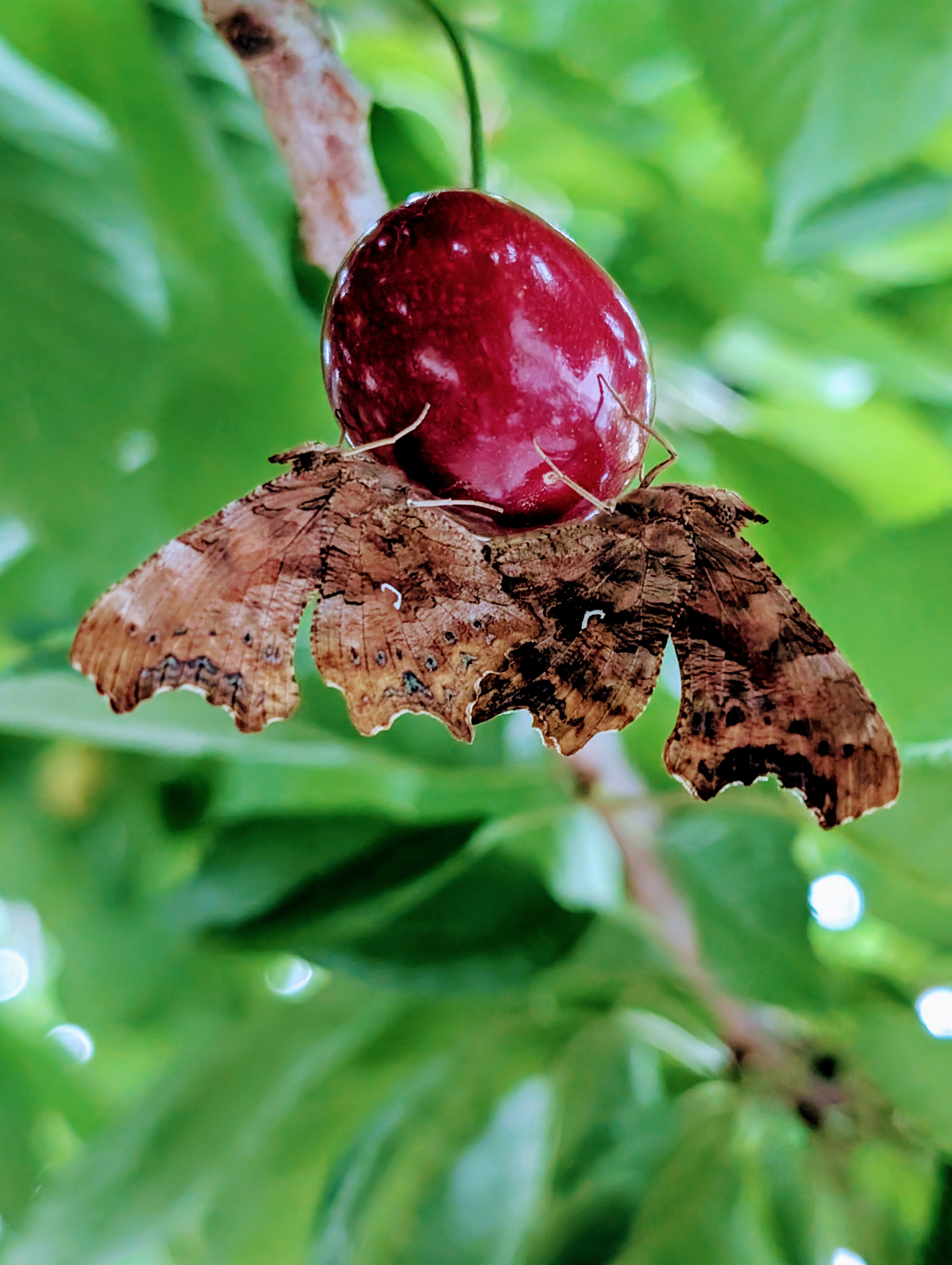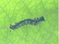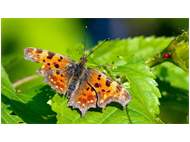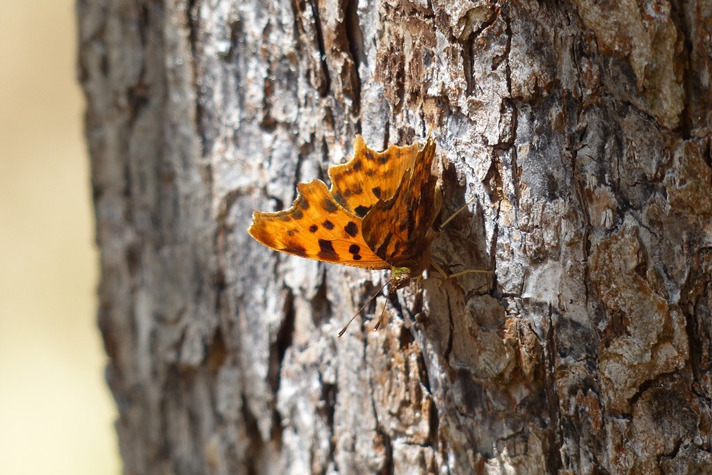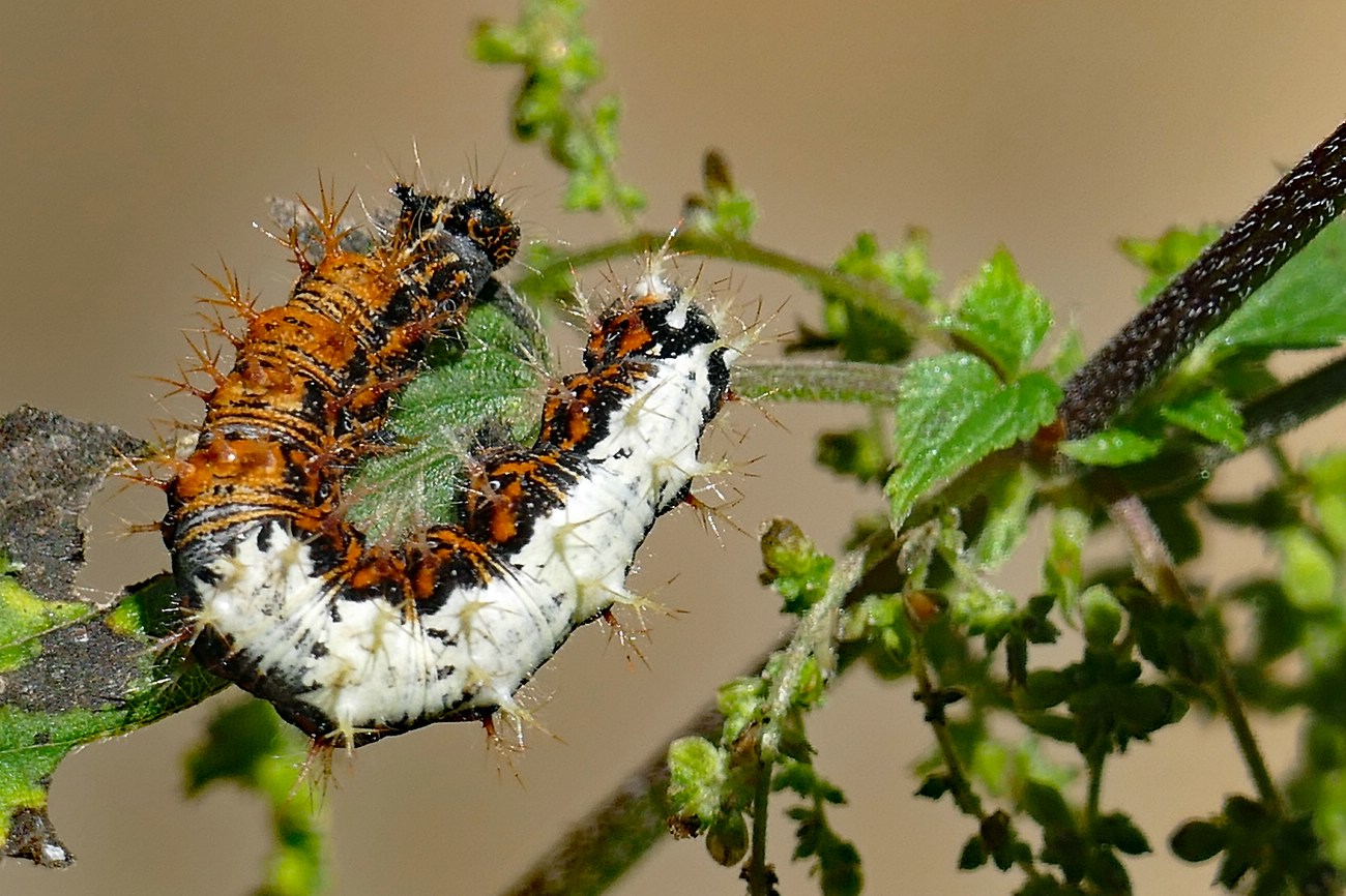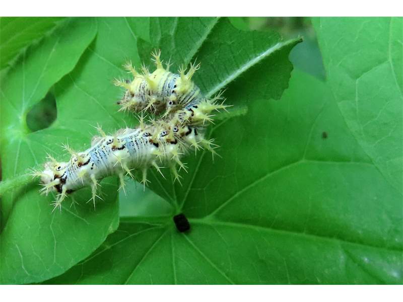 C-Falter (Polygonia c-album (Linnaeus, 1758)), Puppe an Flatterulme, Großer Garten Dresden, 24. Mai 2019 (© Lucas Langer)( Bild vergrößern)