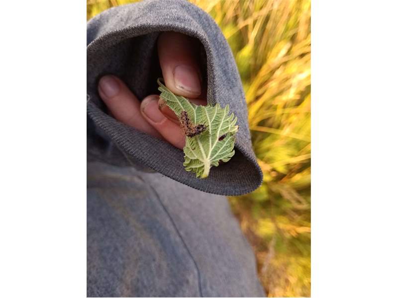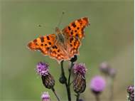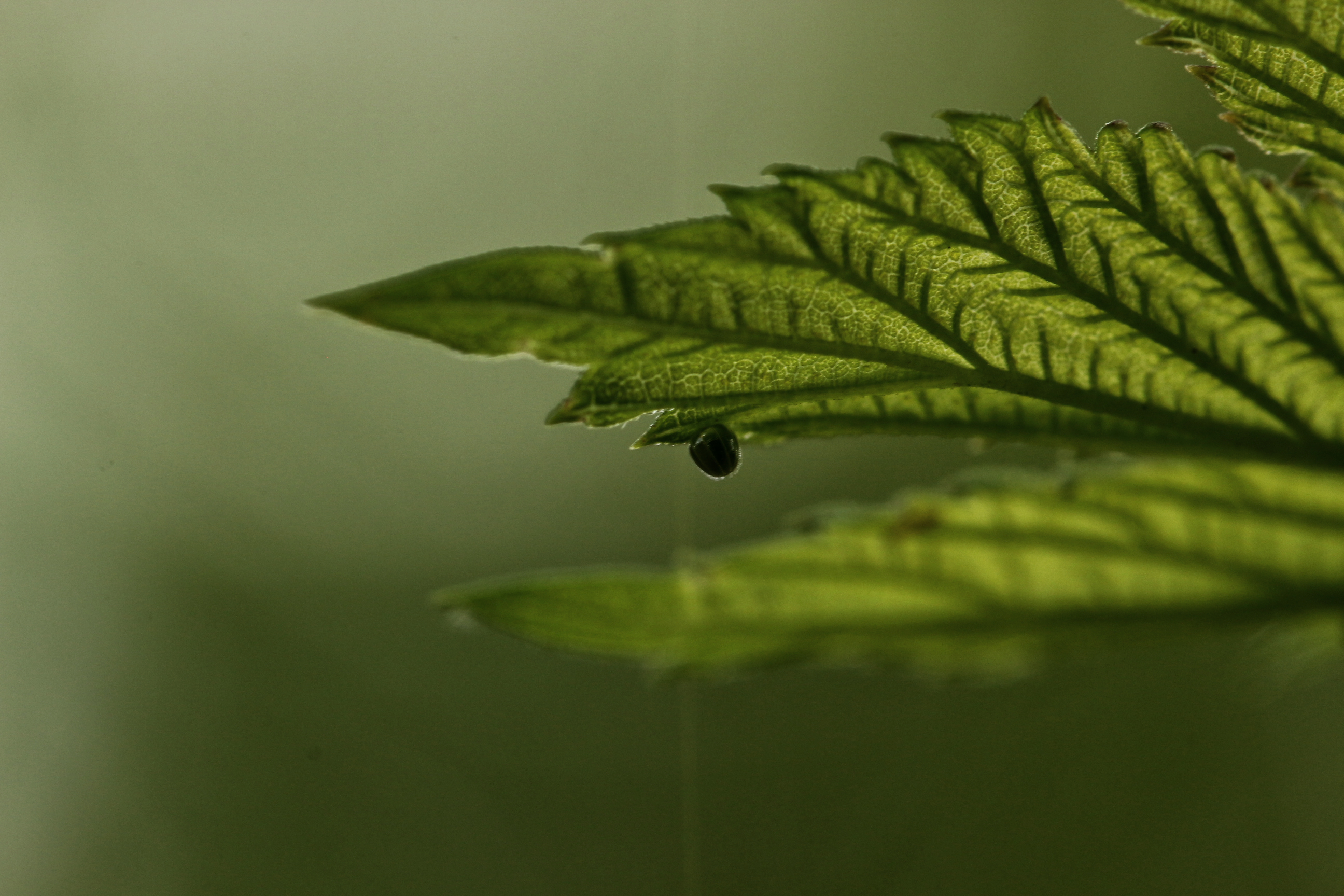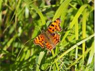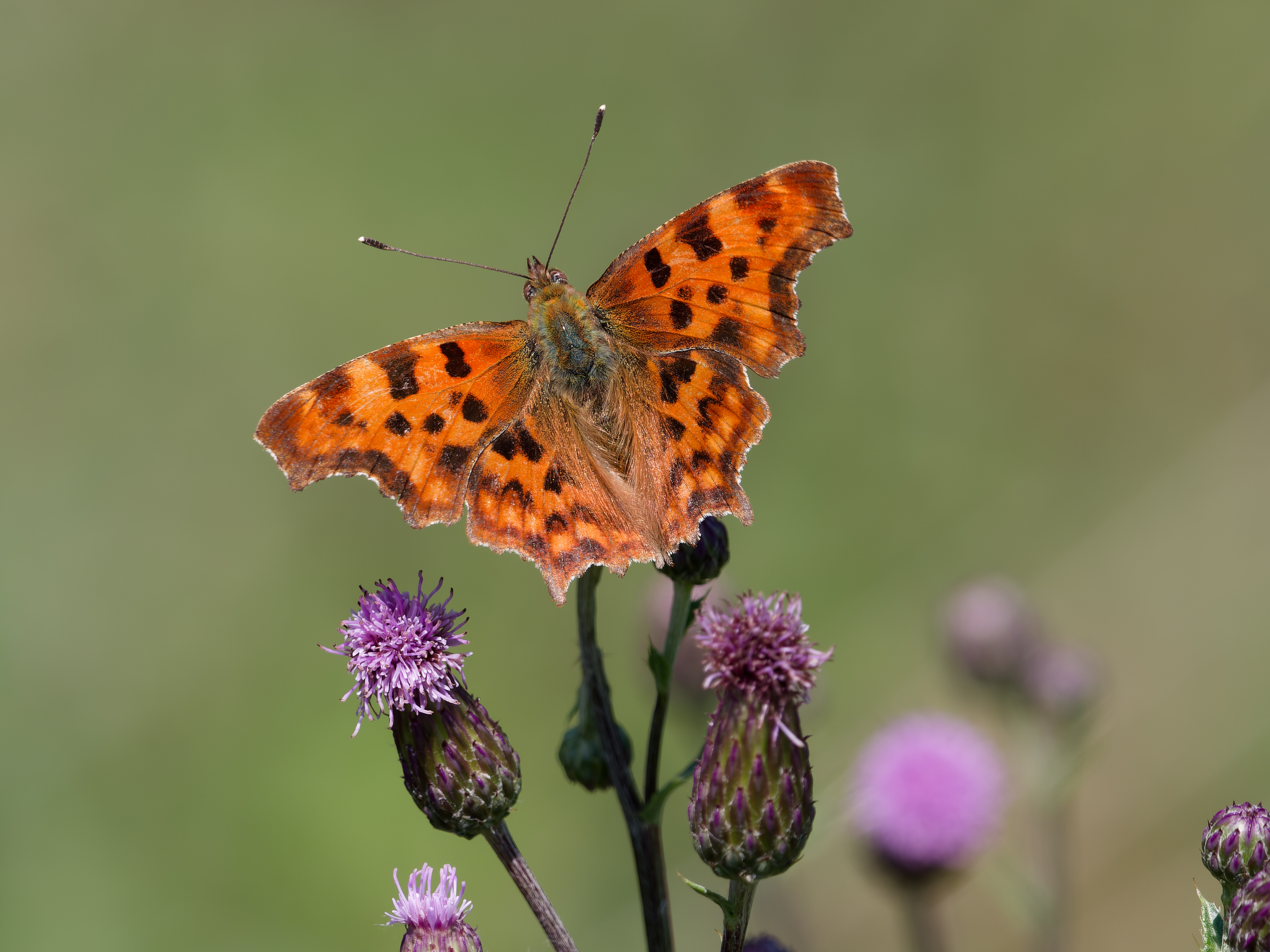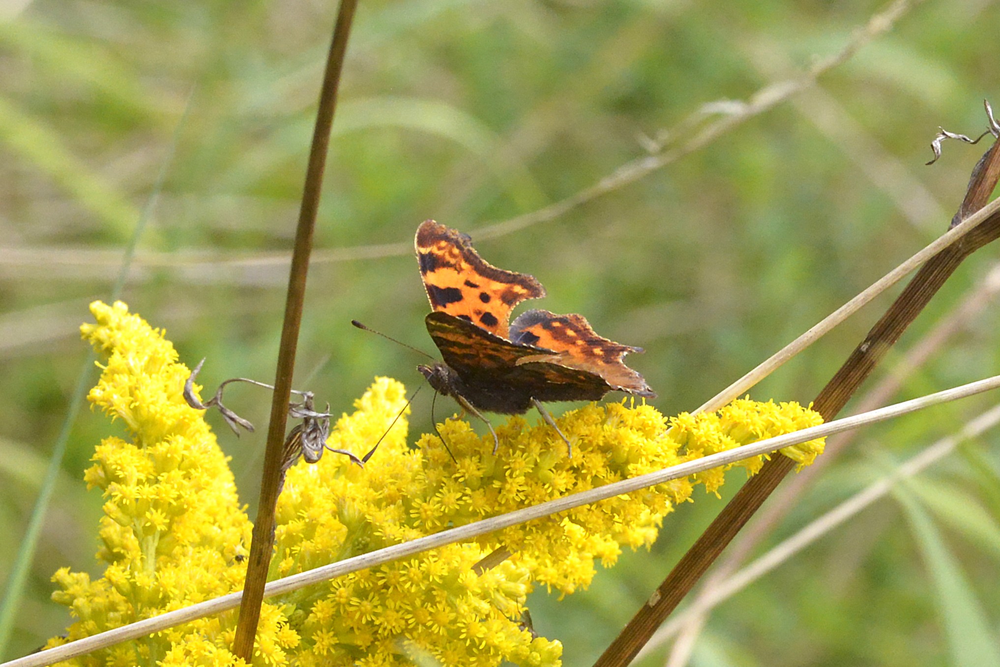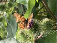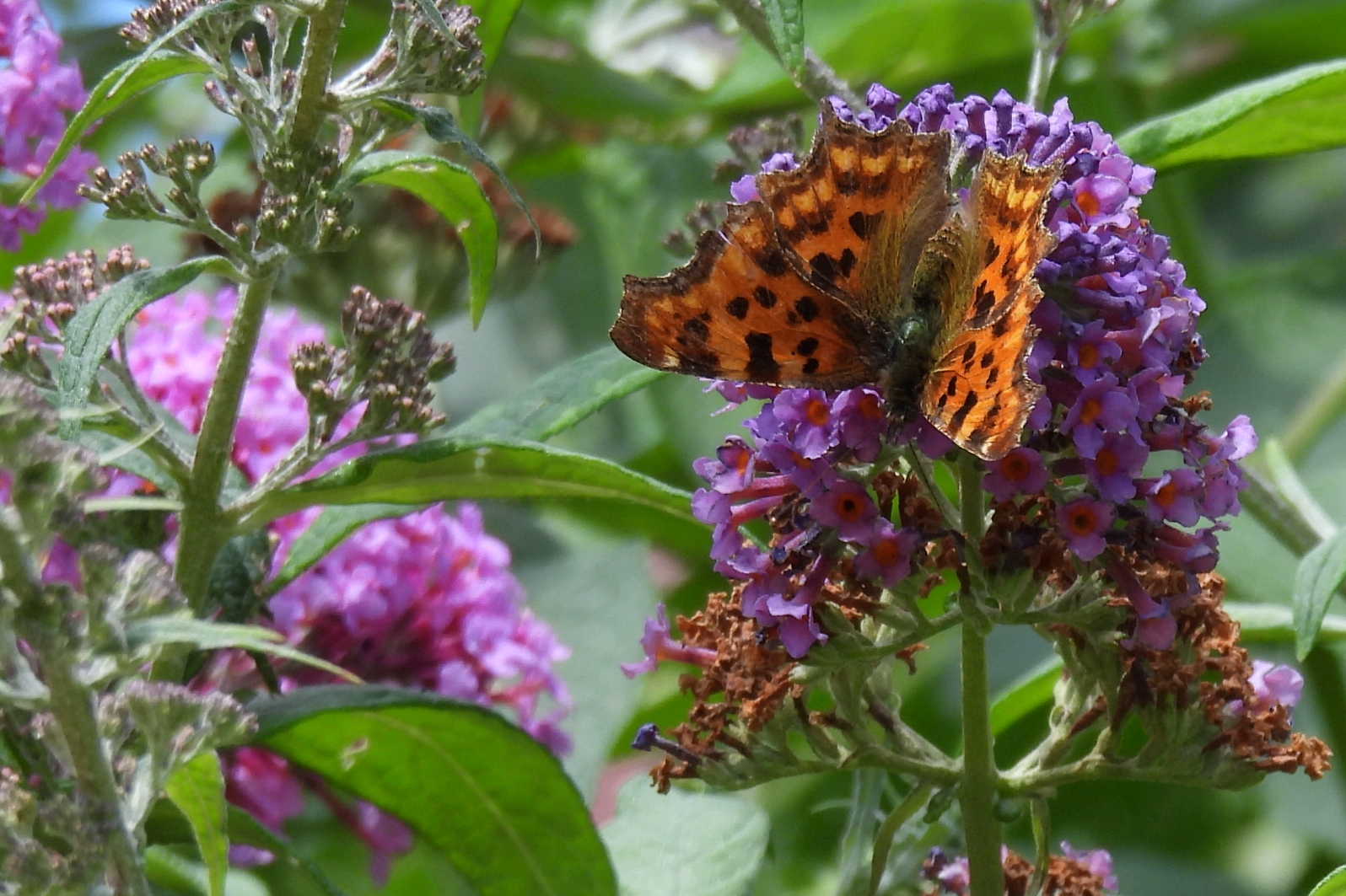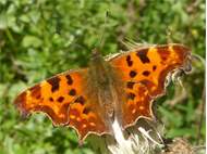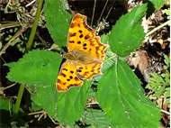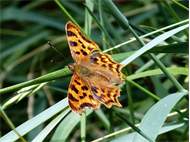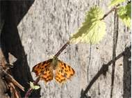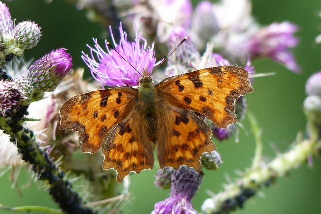 C-Falter (Polygonia c-album (Linnaeus, 1758)), Puppe an Flatterulme, Großer Garten Dresden, 24. Mai 2019 (© Lucas Langer)( Bild vergrößern)