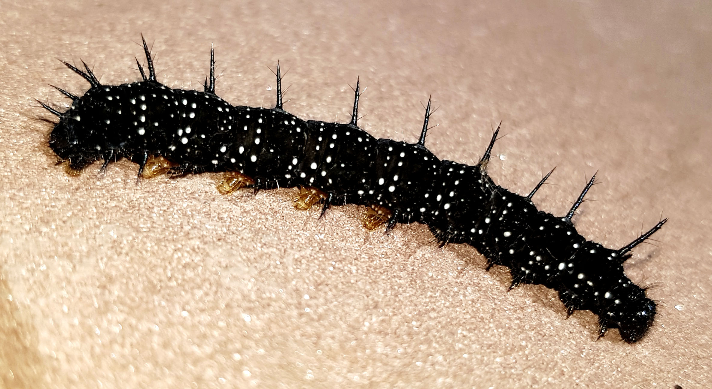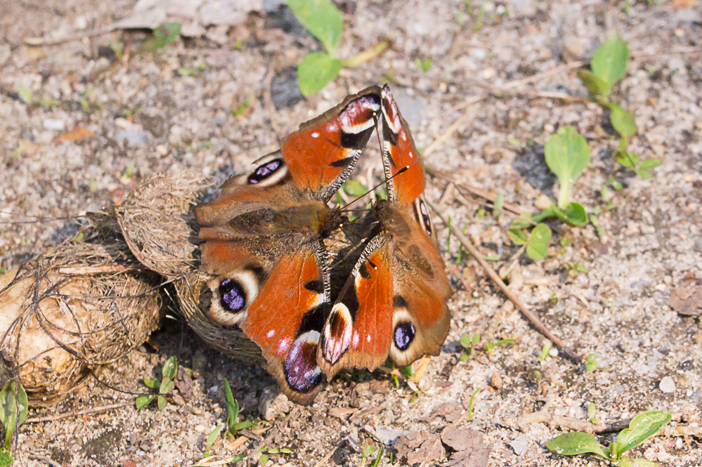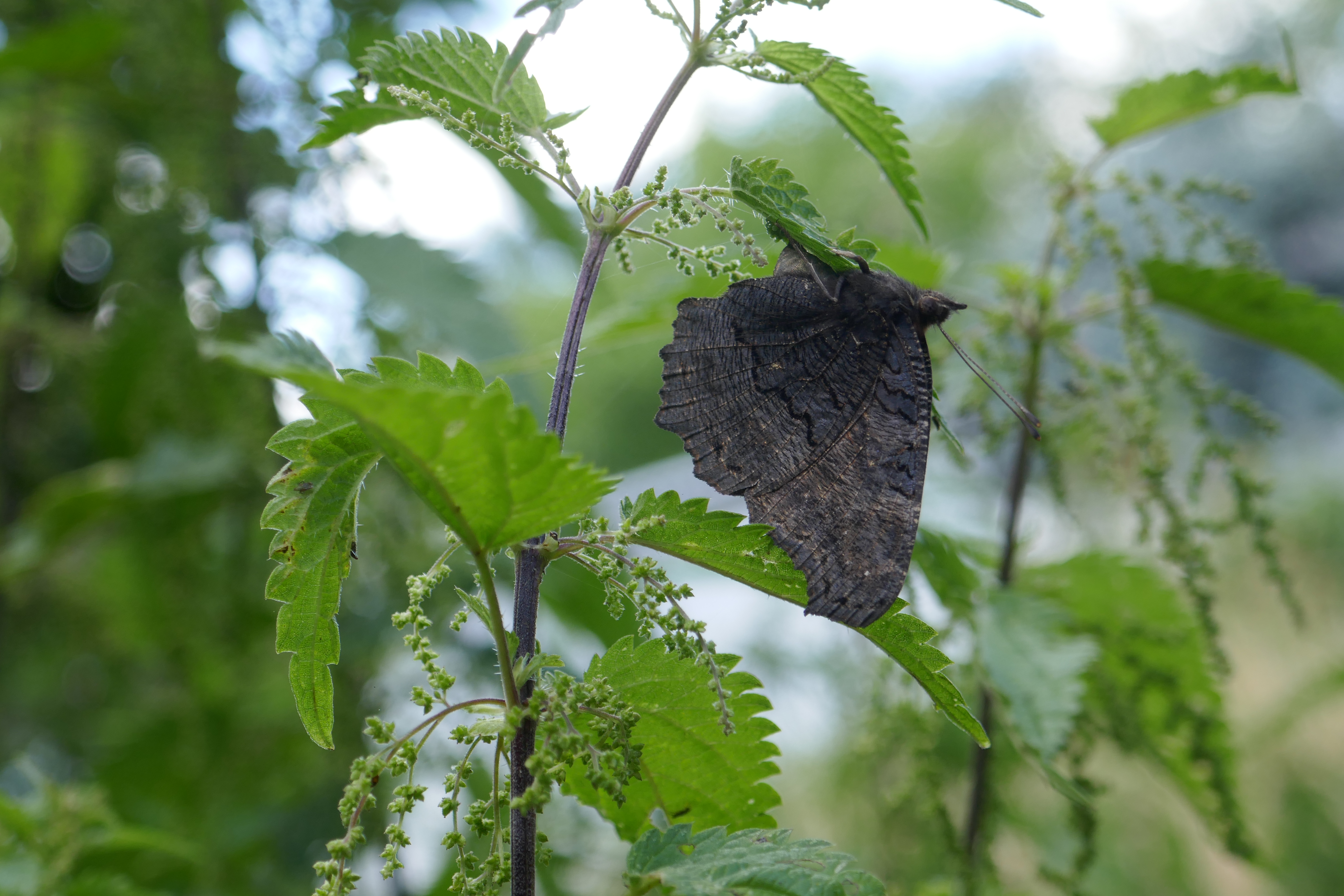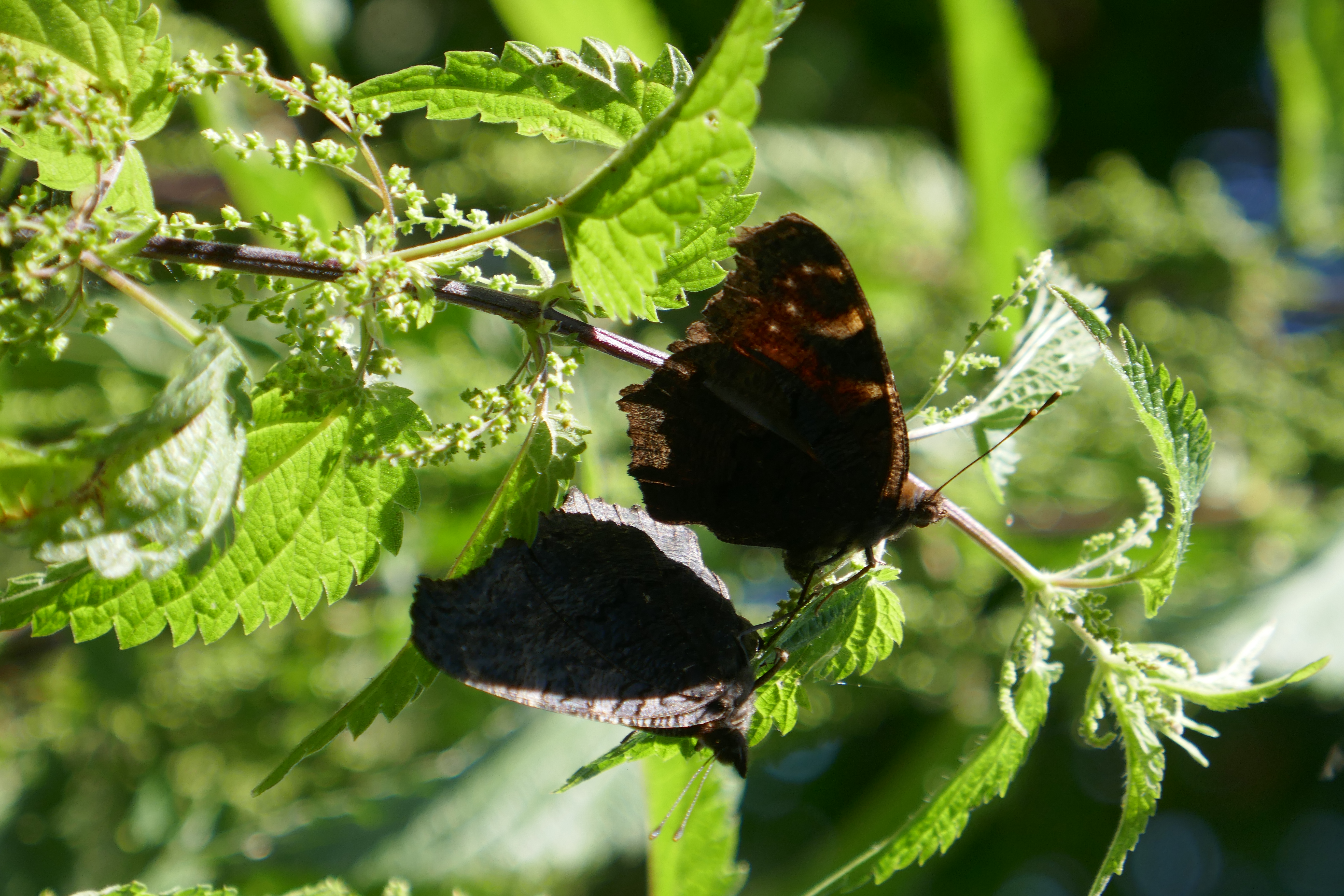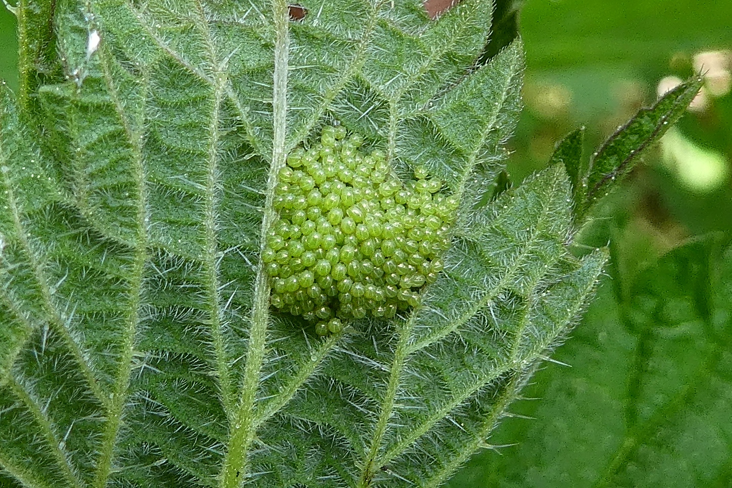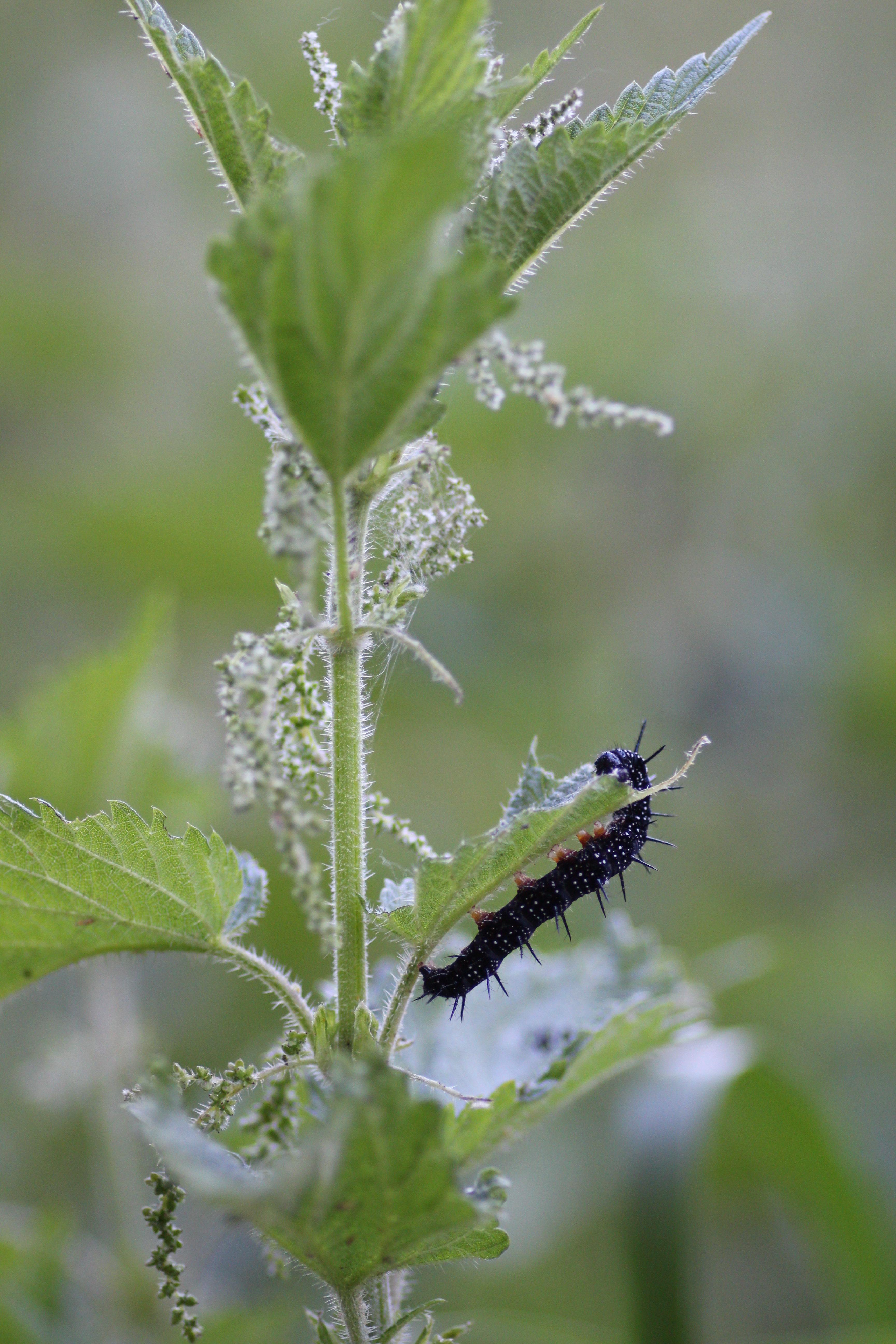 Tagpfauenauge (Aglais io (Linnaeus, 1758)), Larven in verschiedenen Entwicklungsstadien, bei Taubenheim, August 2016.