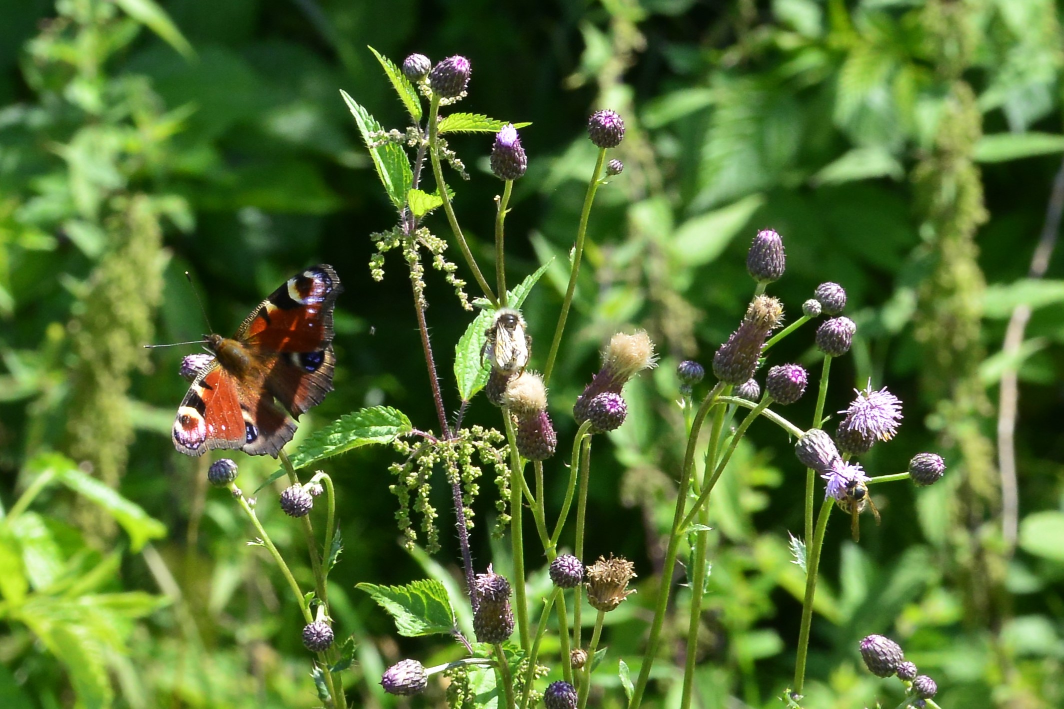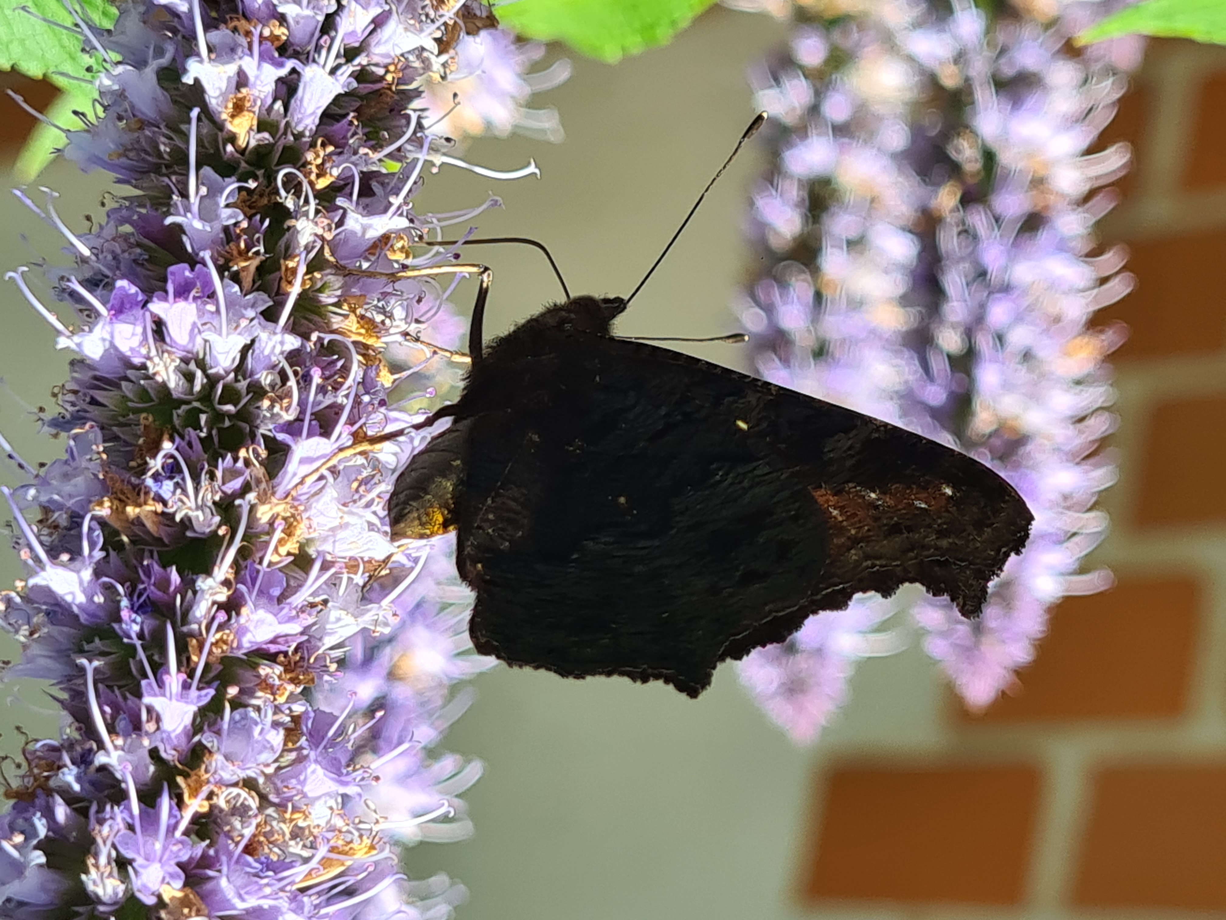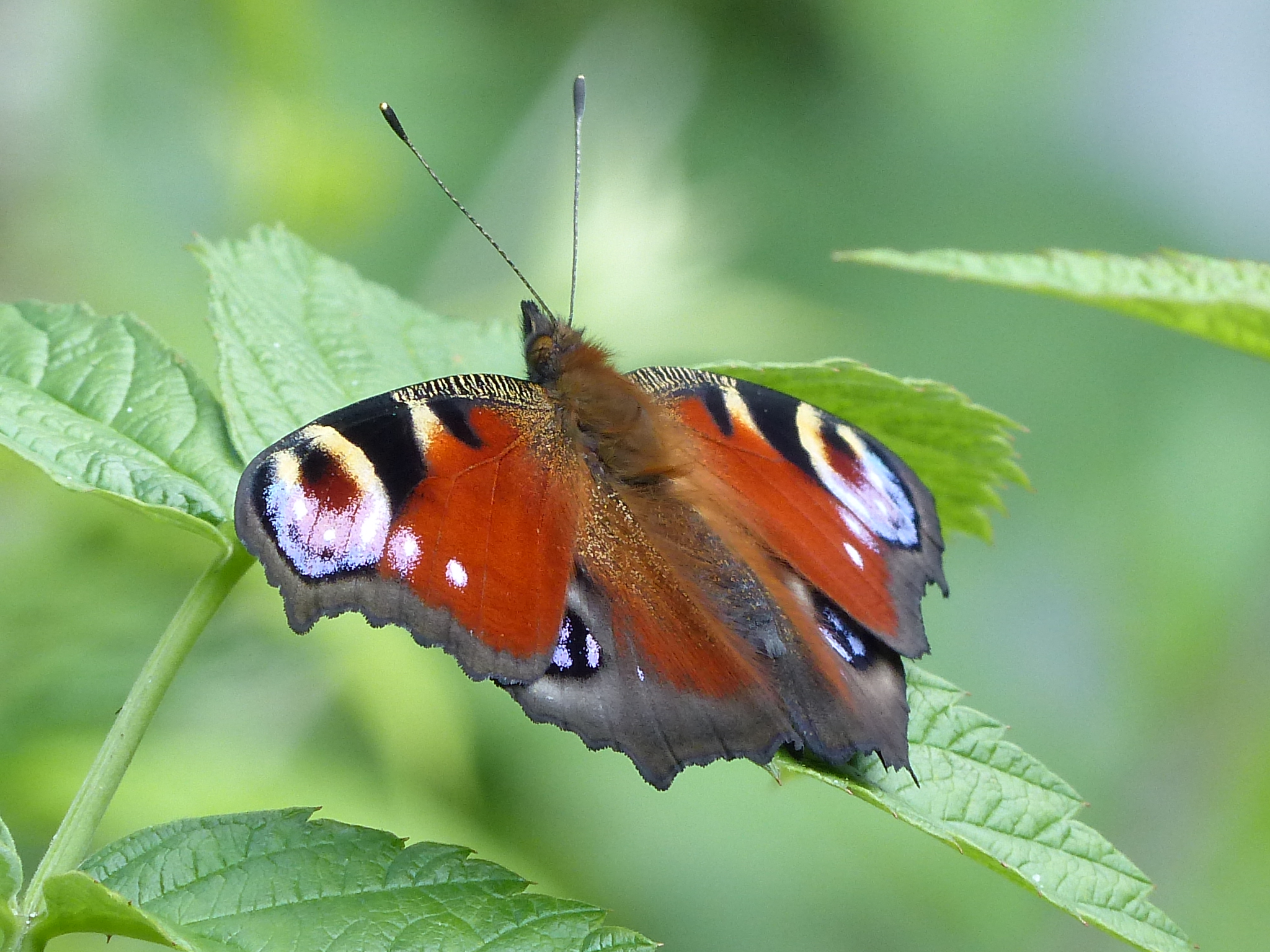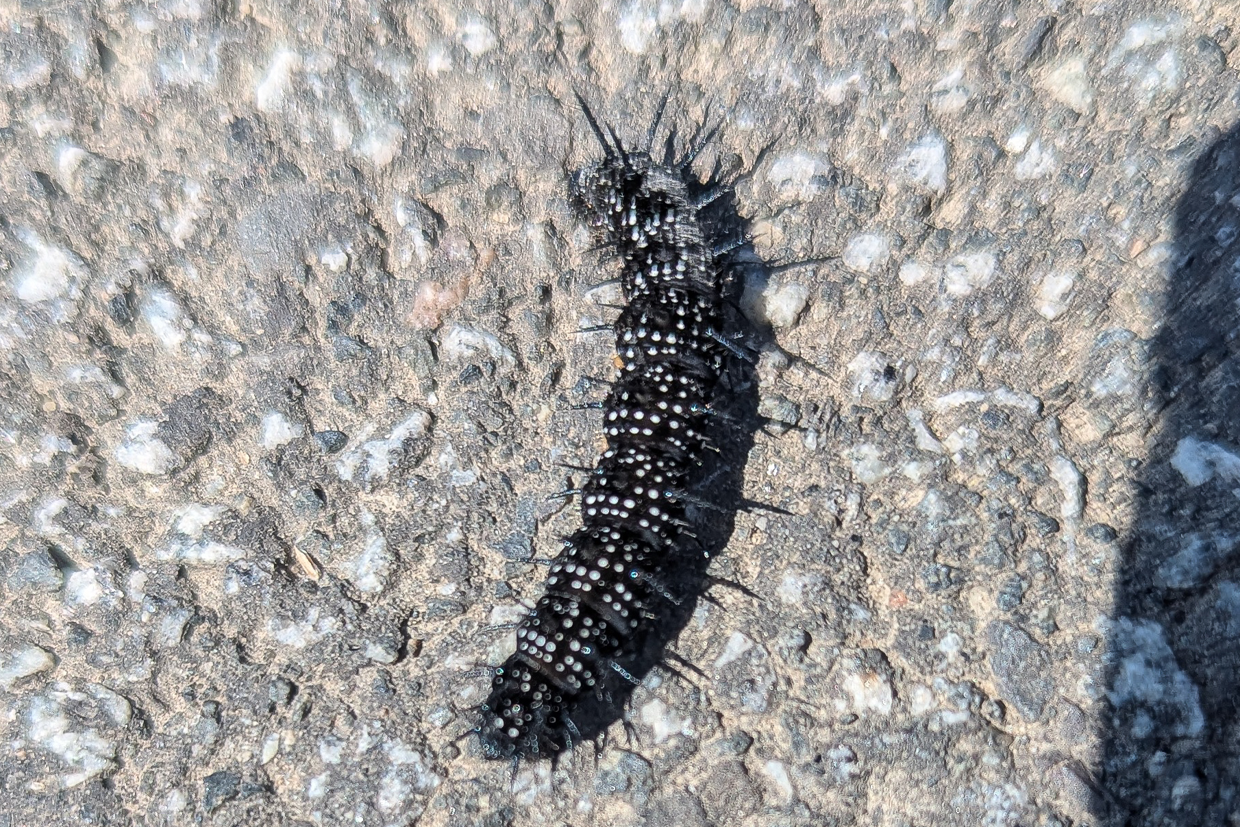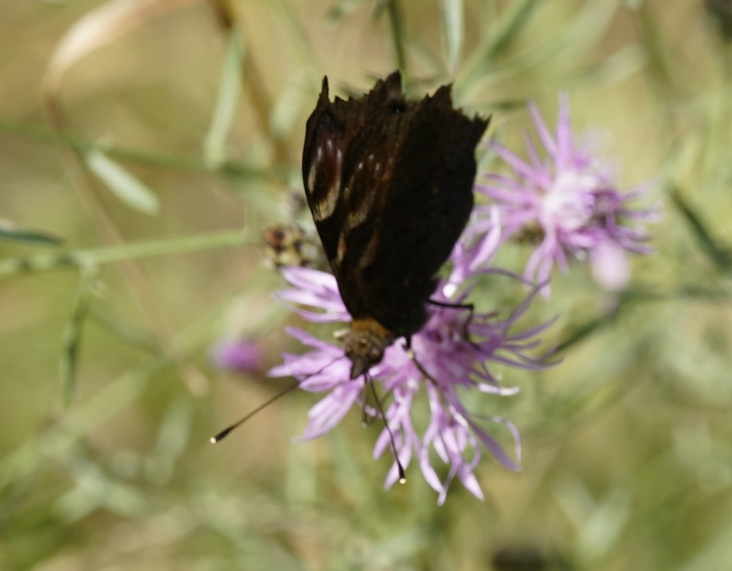 Tagpfauenauge (Aglais io (Linnaeus, 1758)), Larven in verschiedenen Entwicklungsstadien, bei Taubenheim, August 2016.