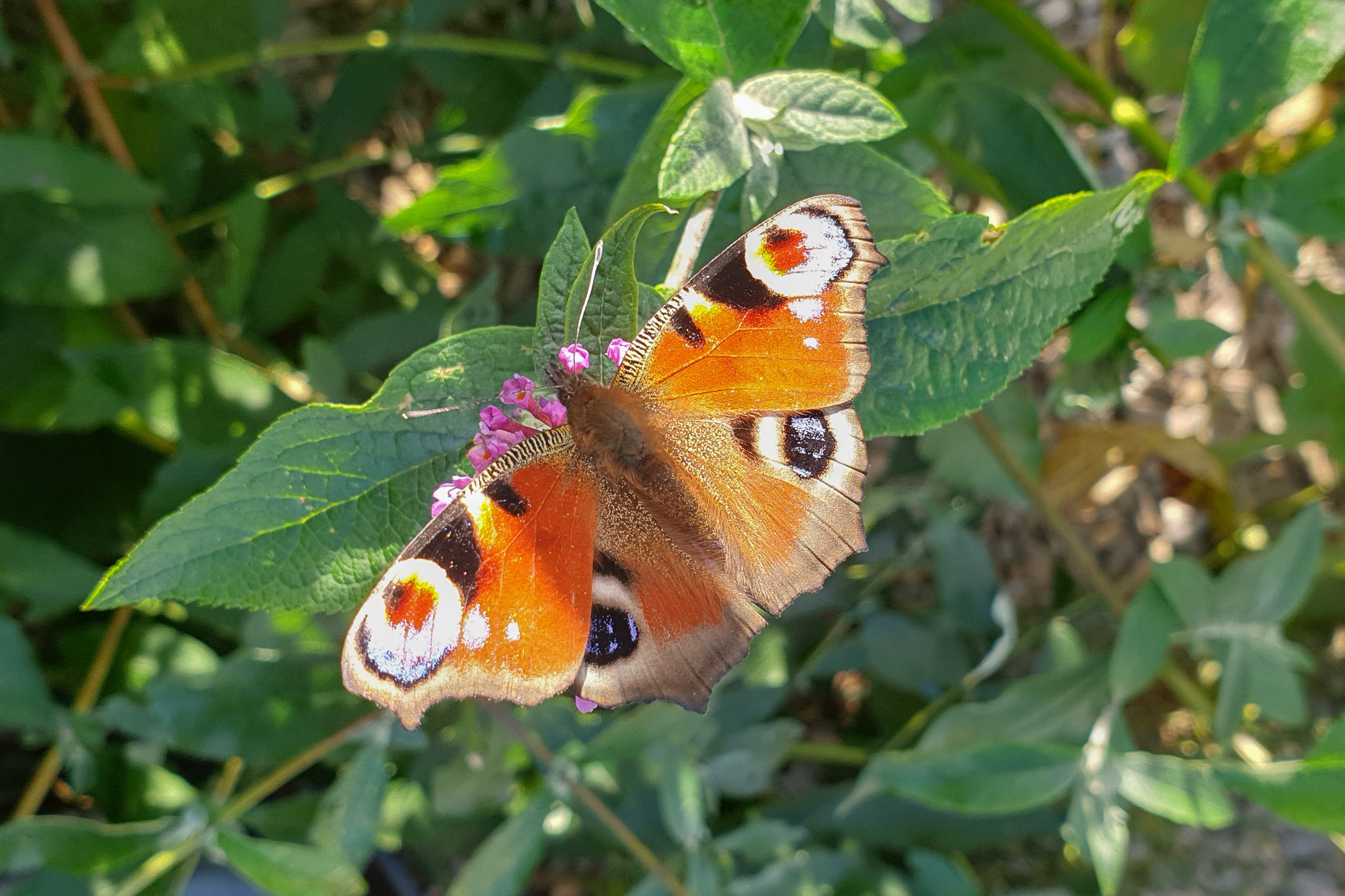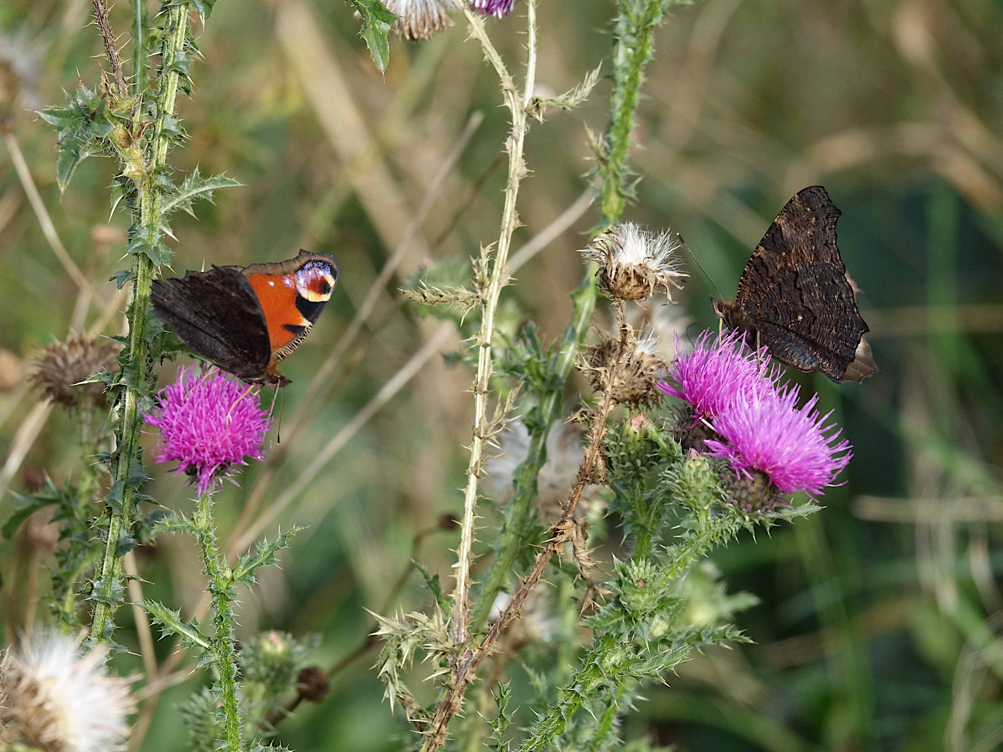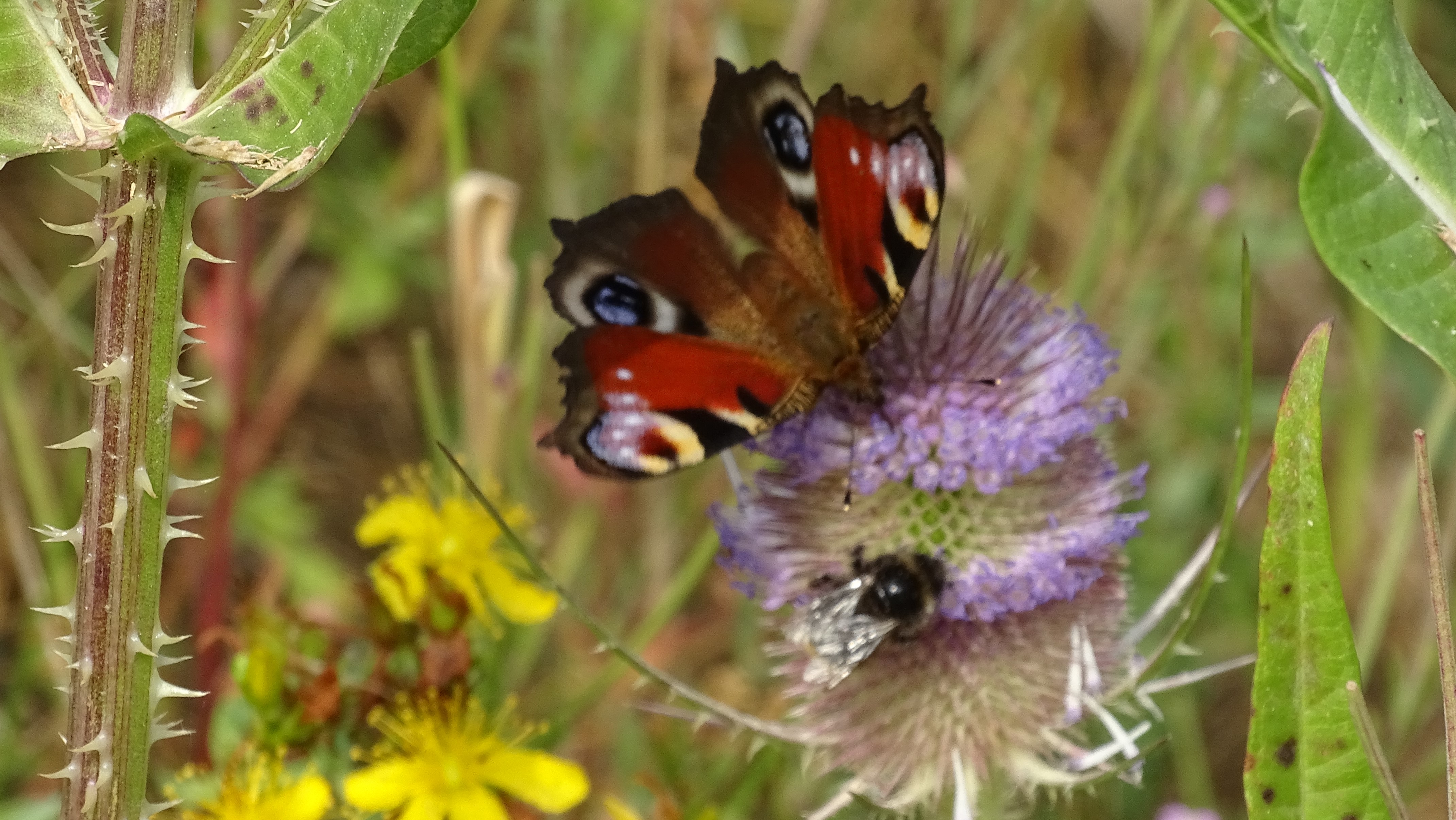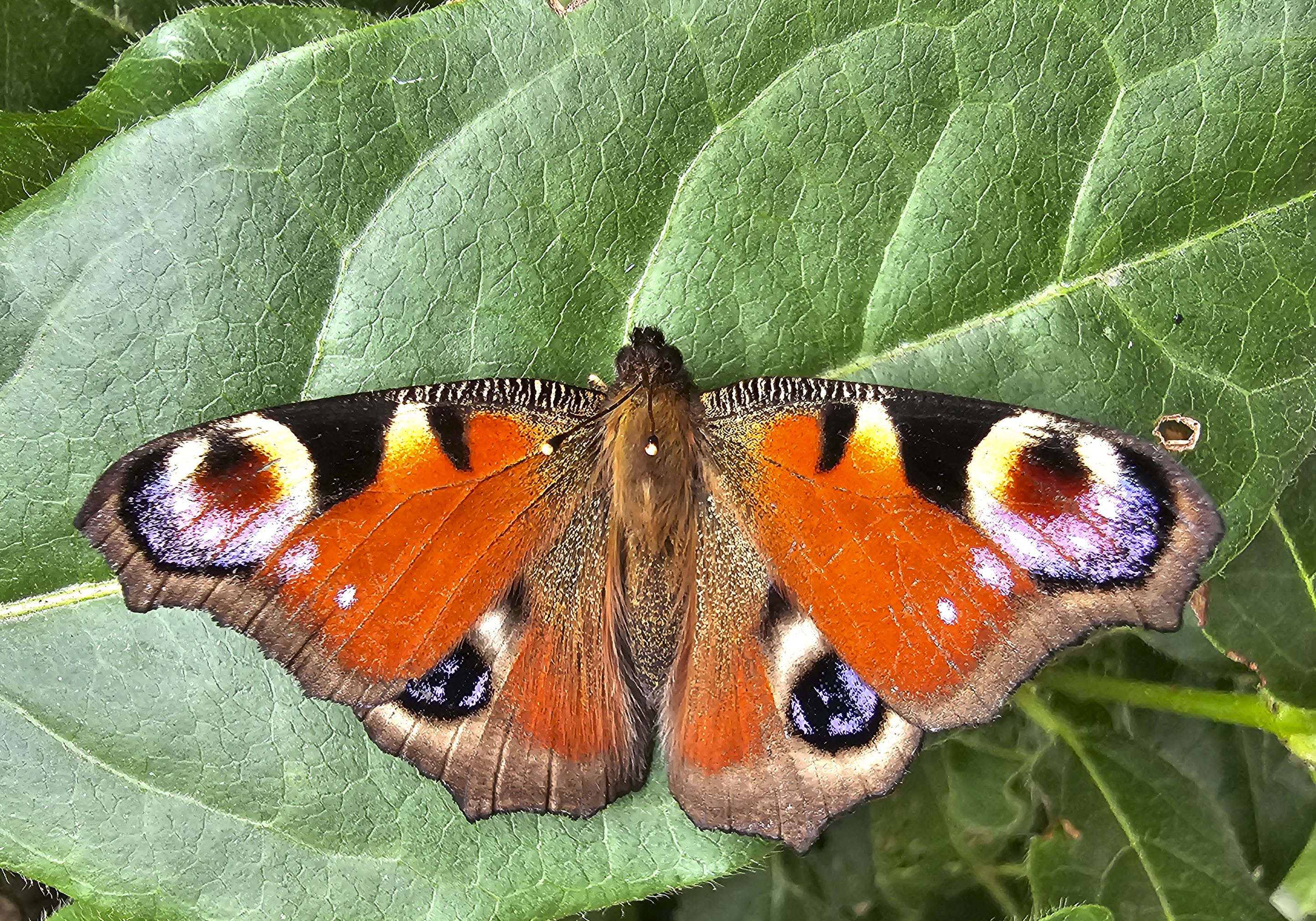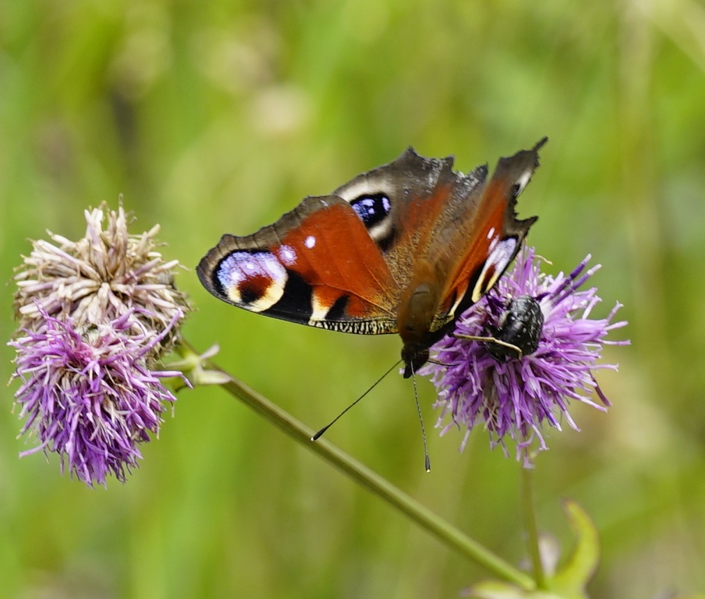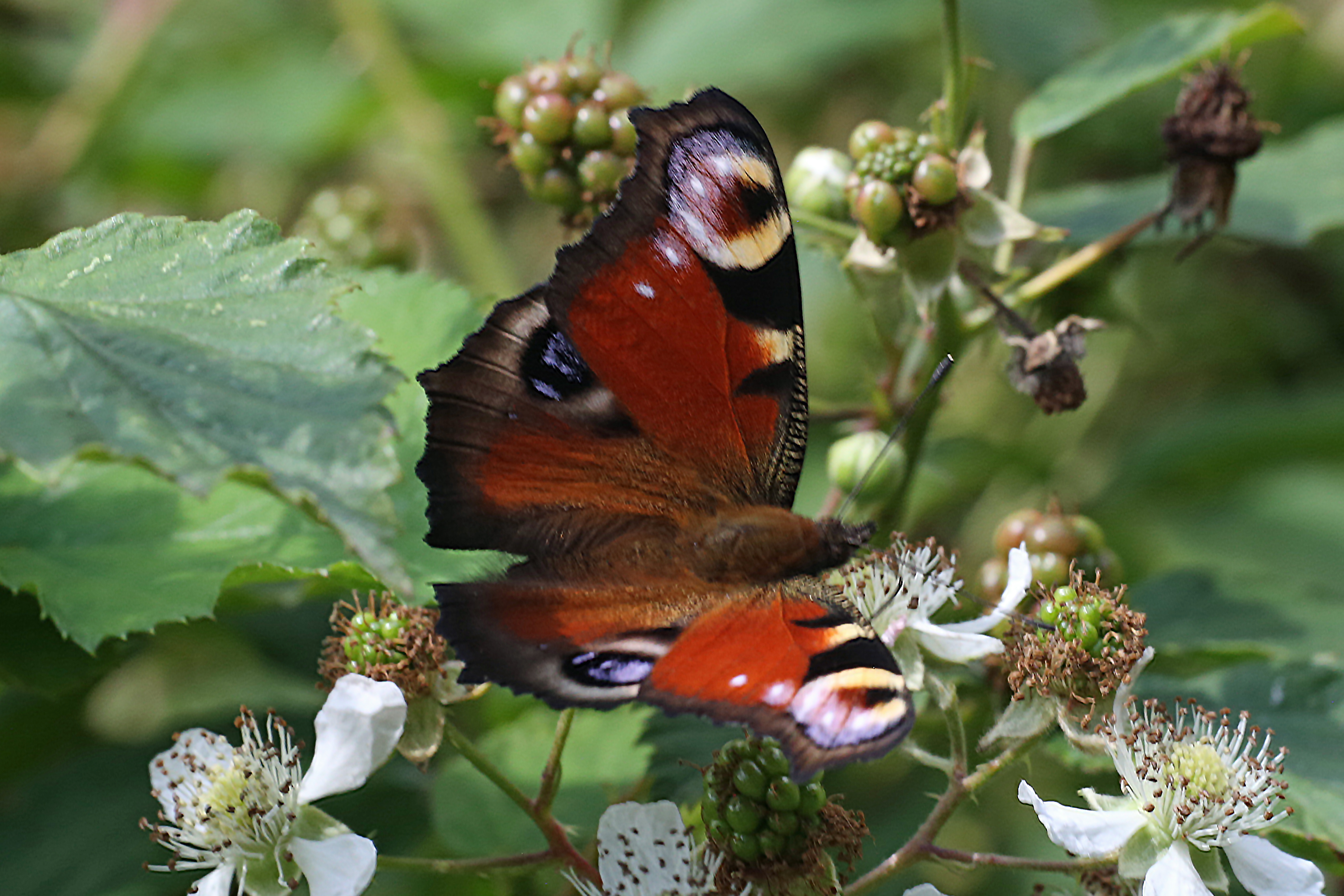 Tagpfauenauge (Aglais io (Linnaeus, 1758)), Larven in verschiedenen Entwicklungsstadien, bei Taubenheim, August 2016.