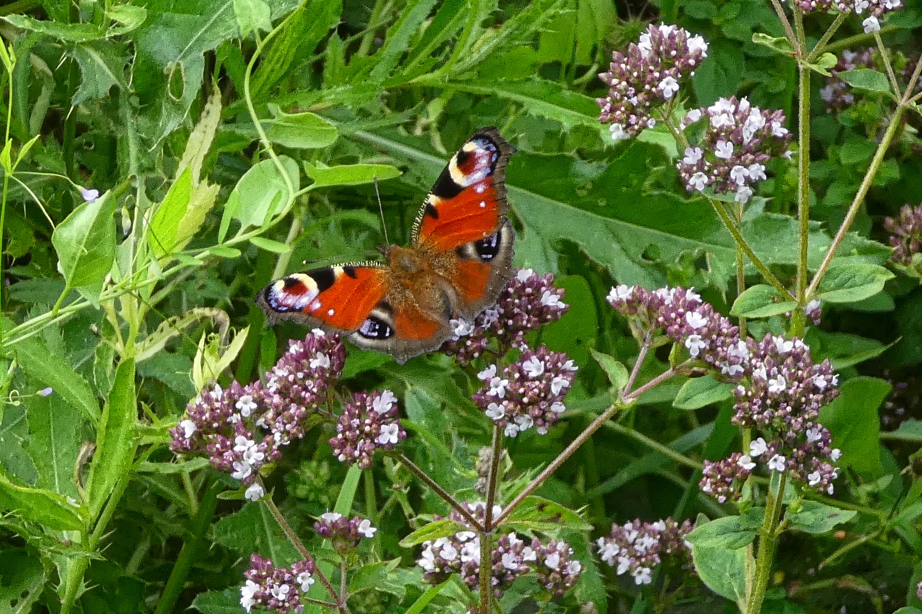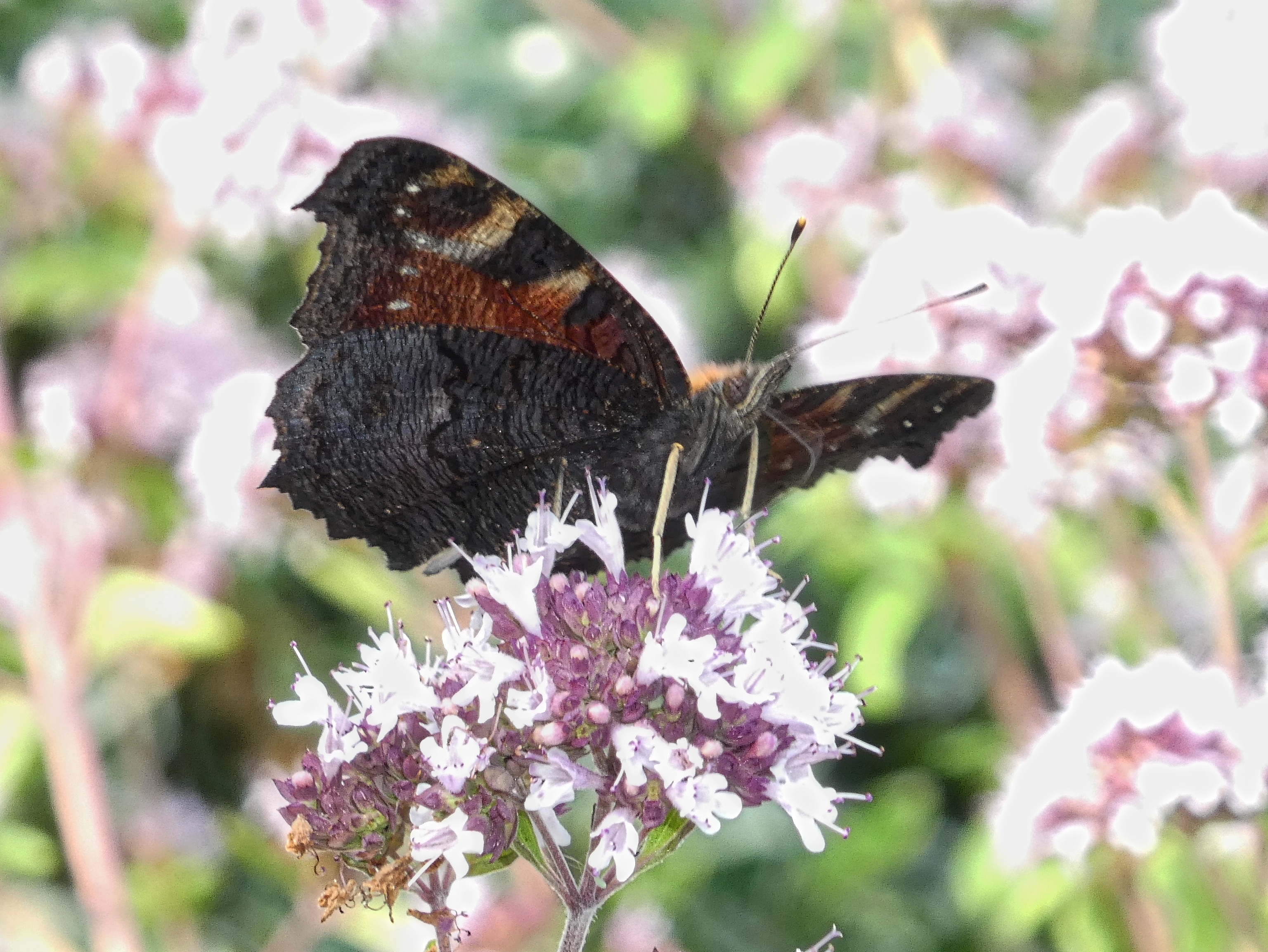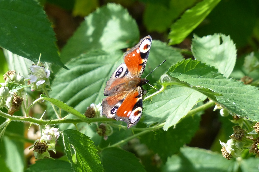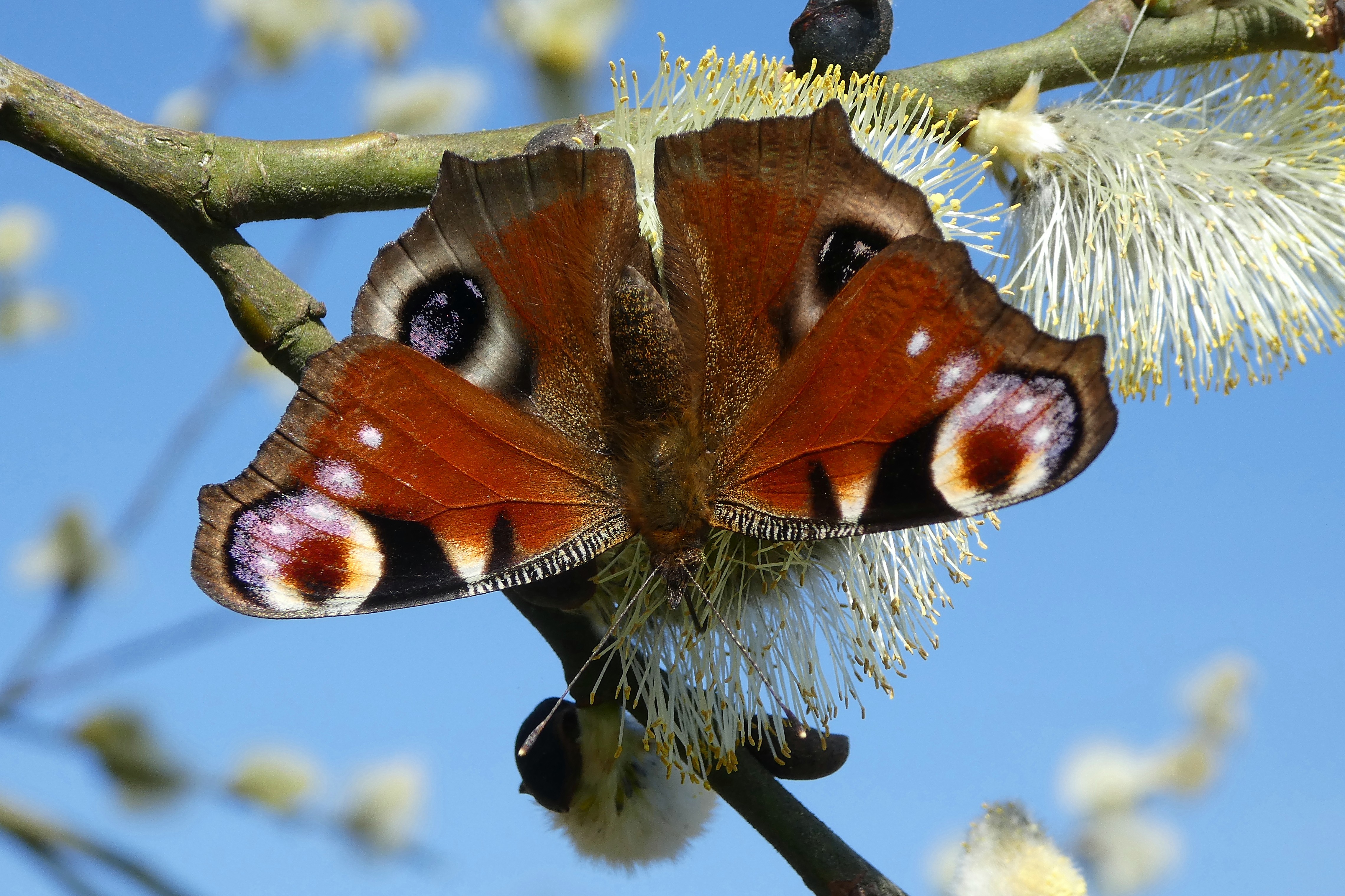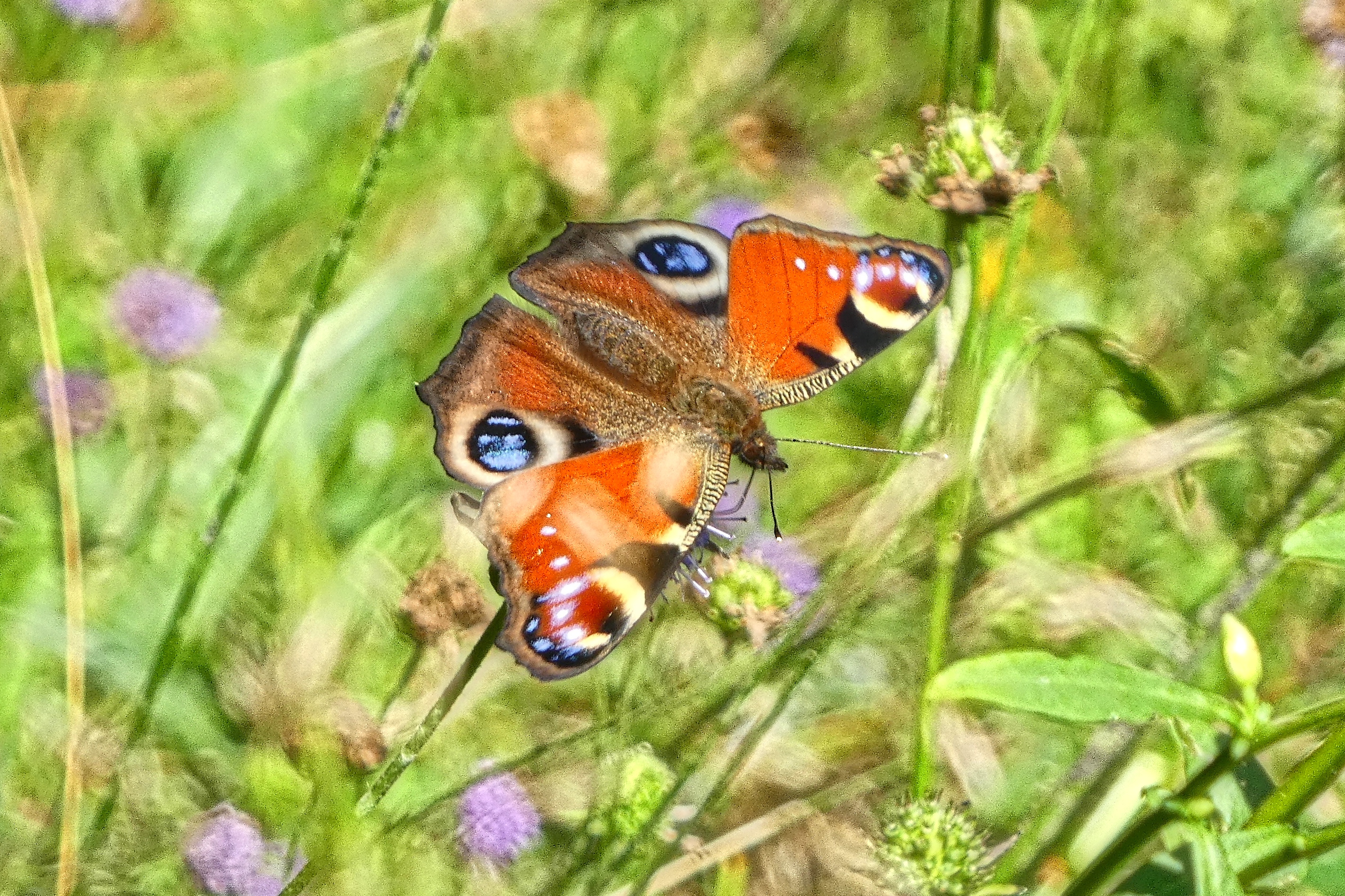 Tagpfauenauge (Aglais io (Linnaeus, 1758)), Larven in verschiedenen Entwicklungsstadien, bei Taubenheim, August 2016.