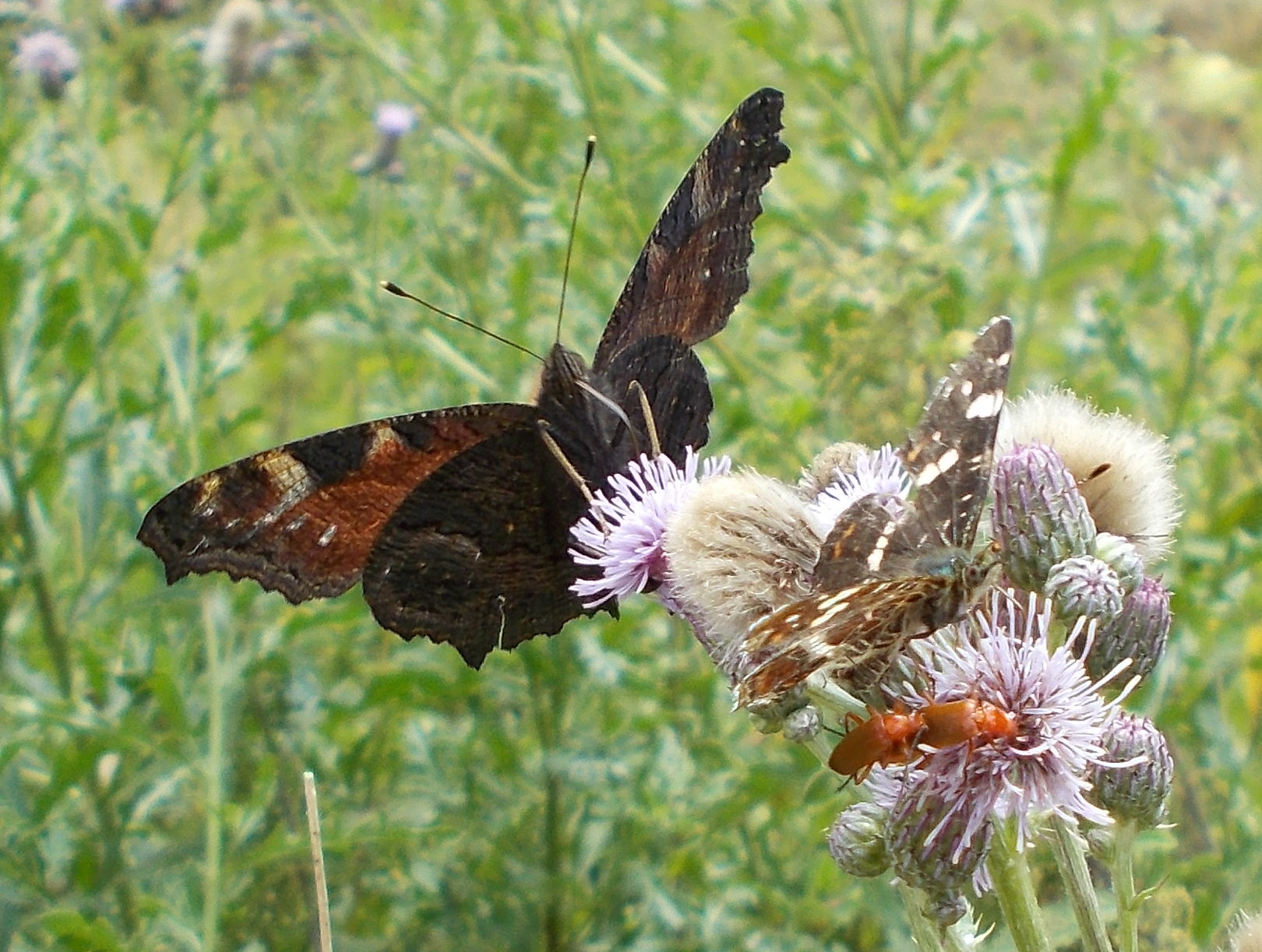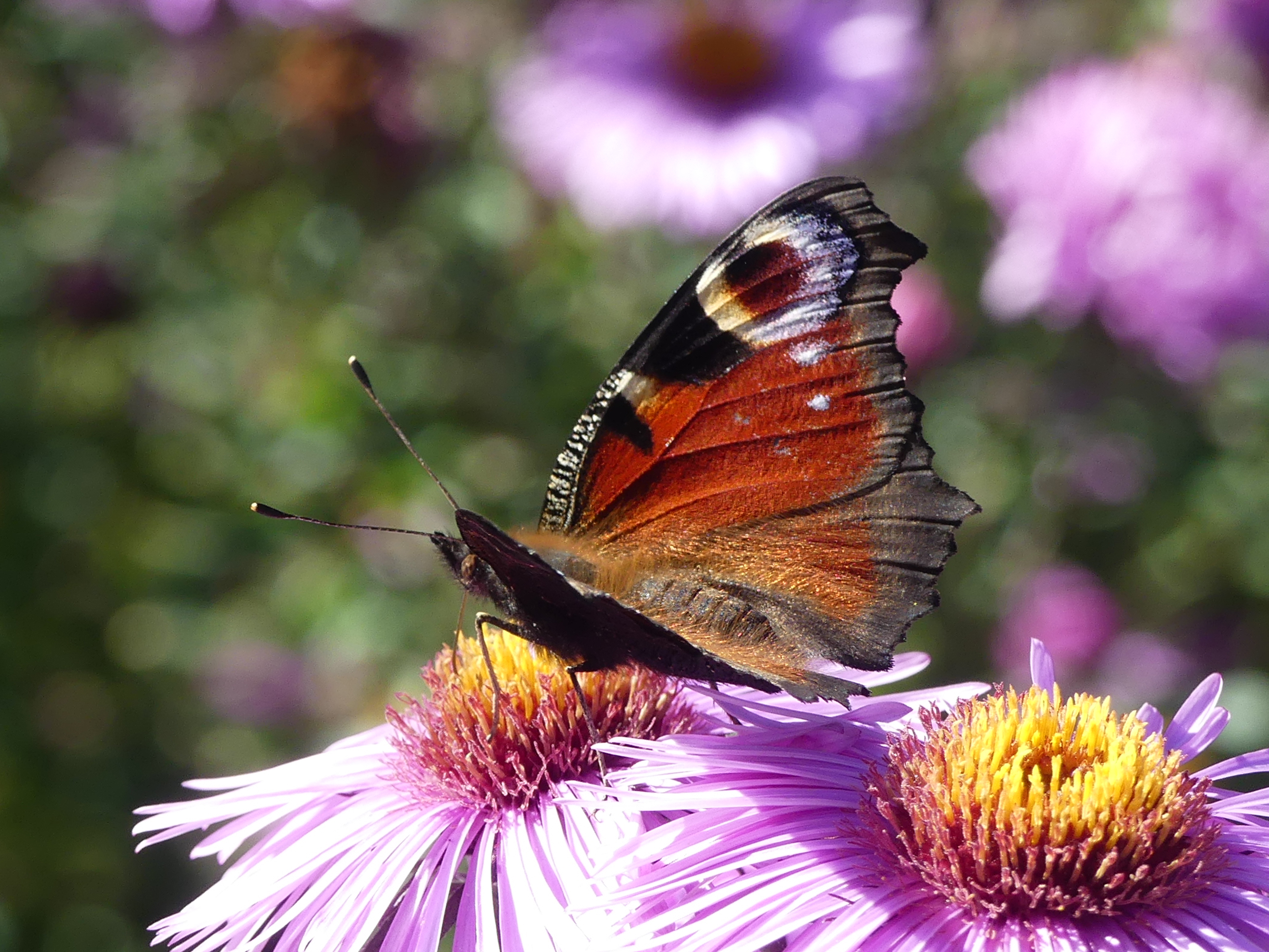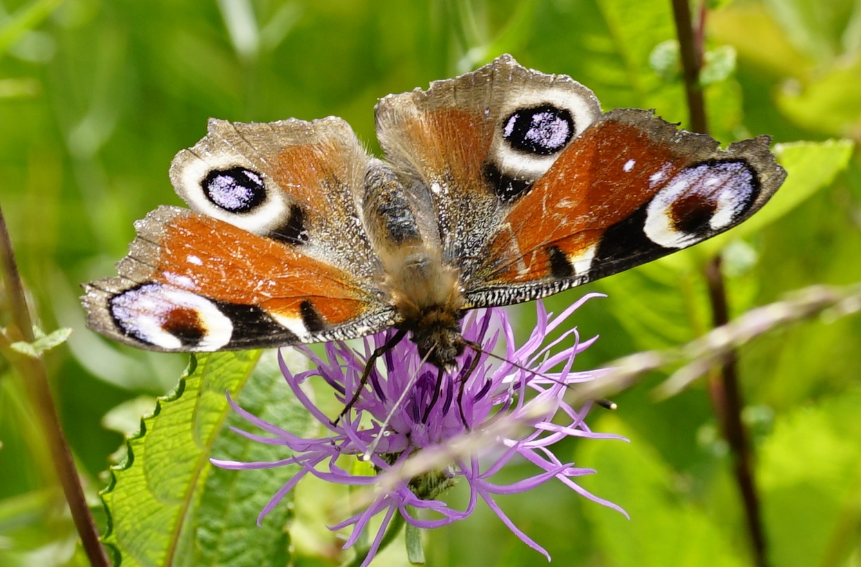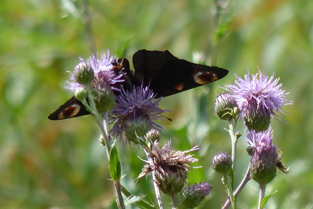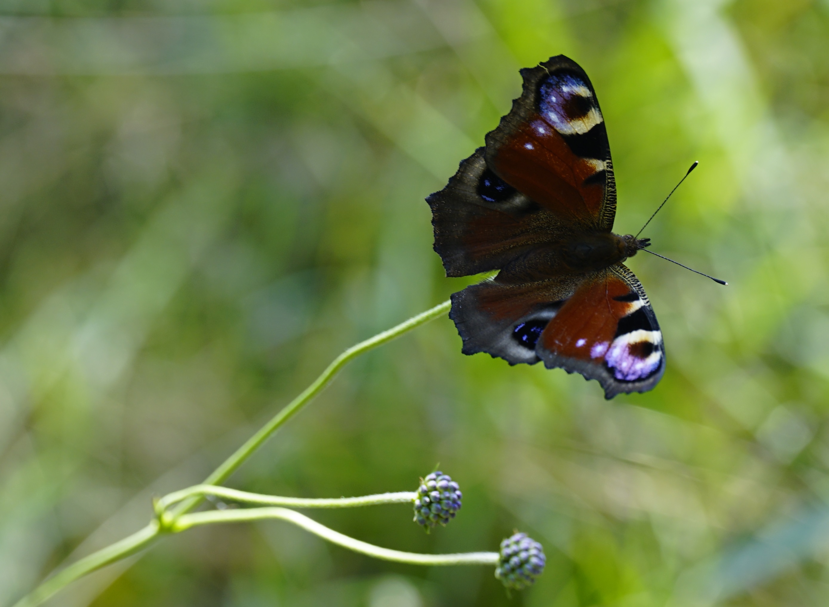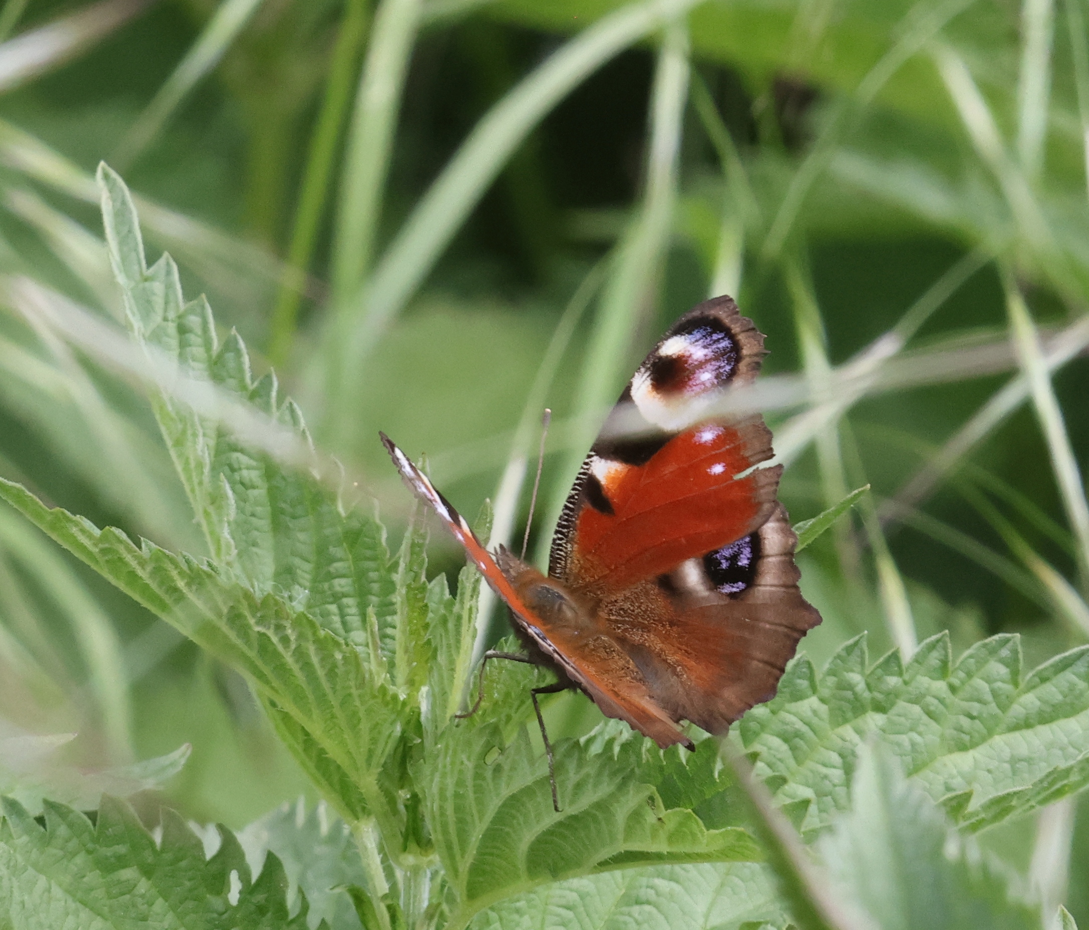 Tagpfauenauge (Aglais io (Linnaeus, 1758)), Larven in verschiedenen Entwicklungsstadien, bei Taubenheim, August 2016.