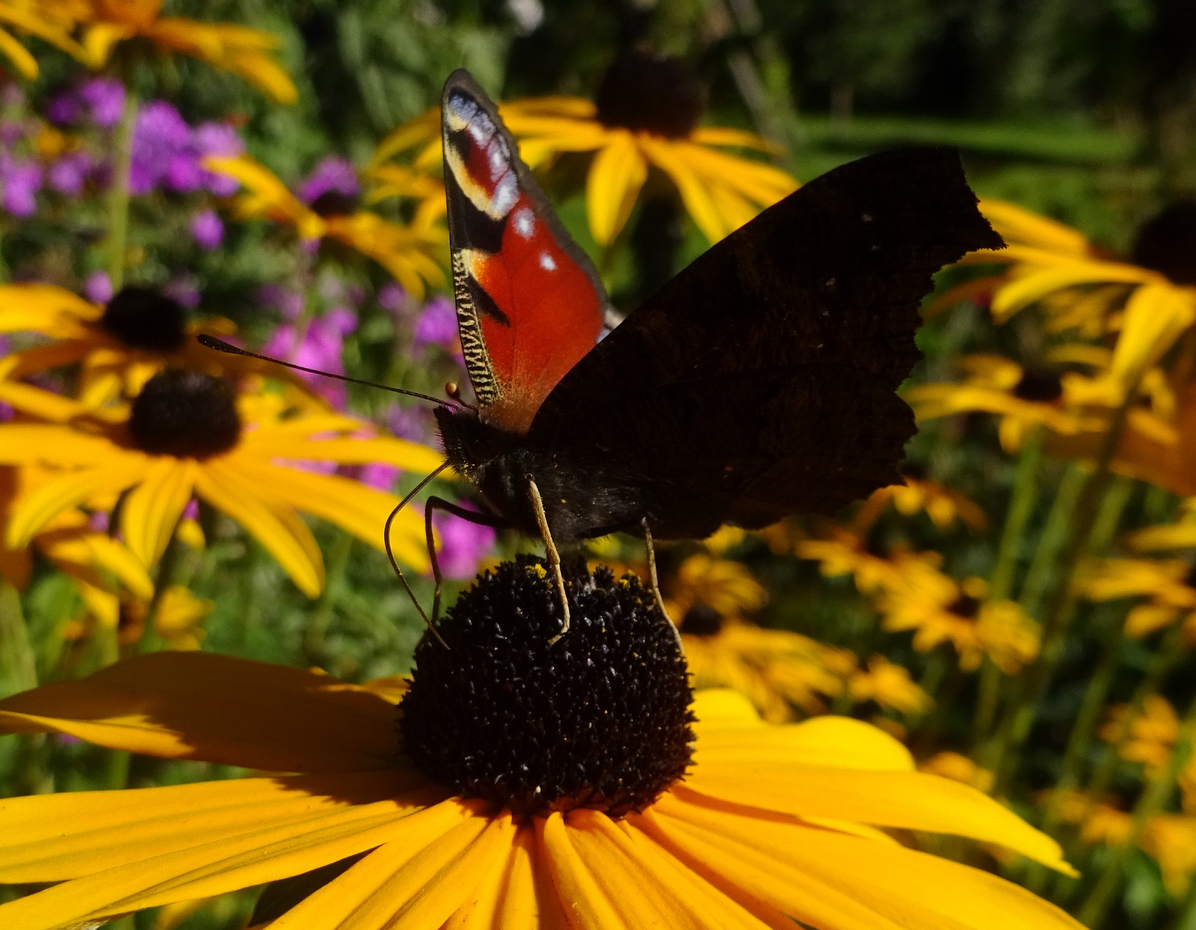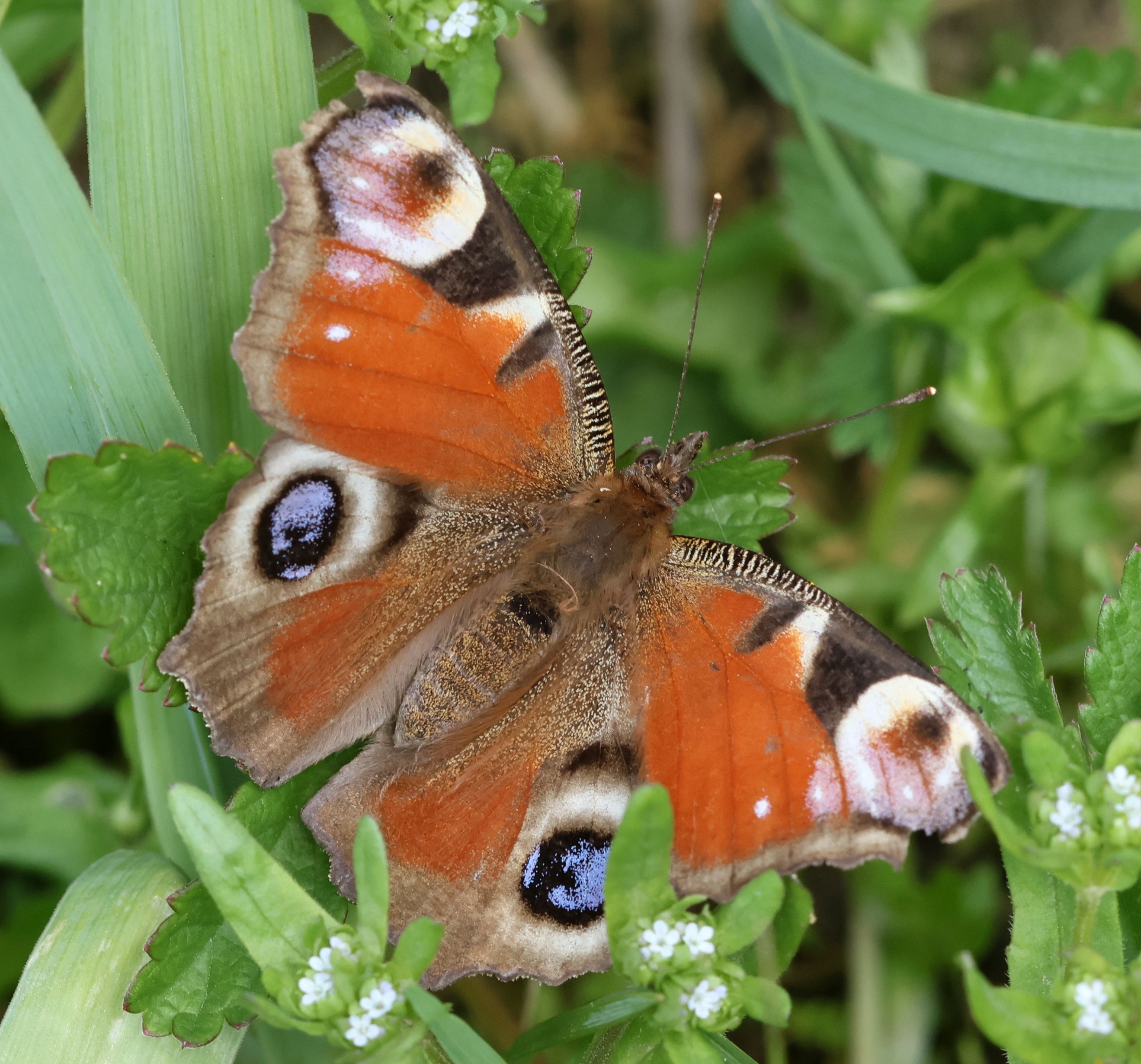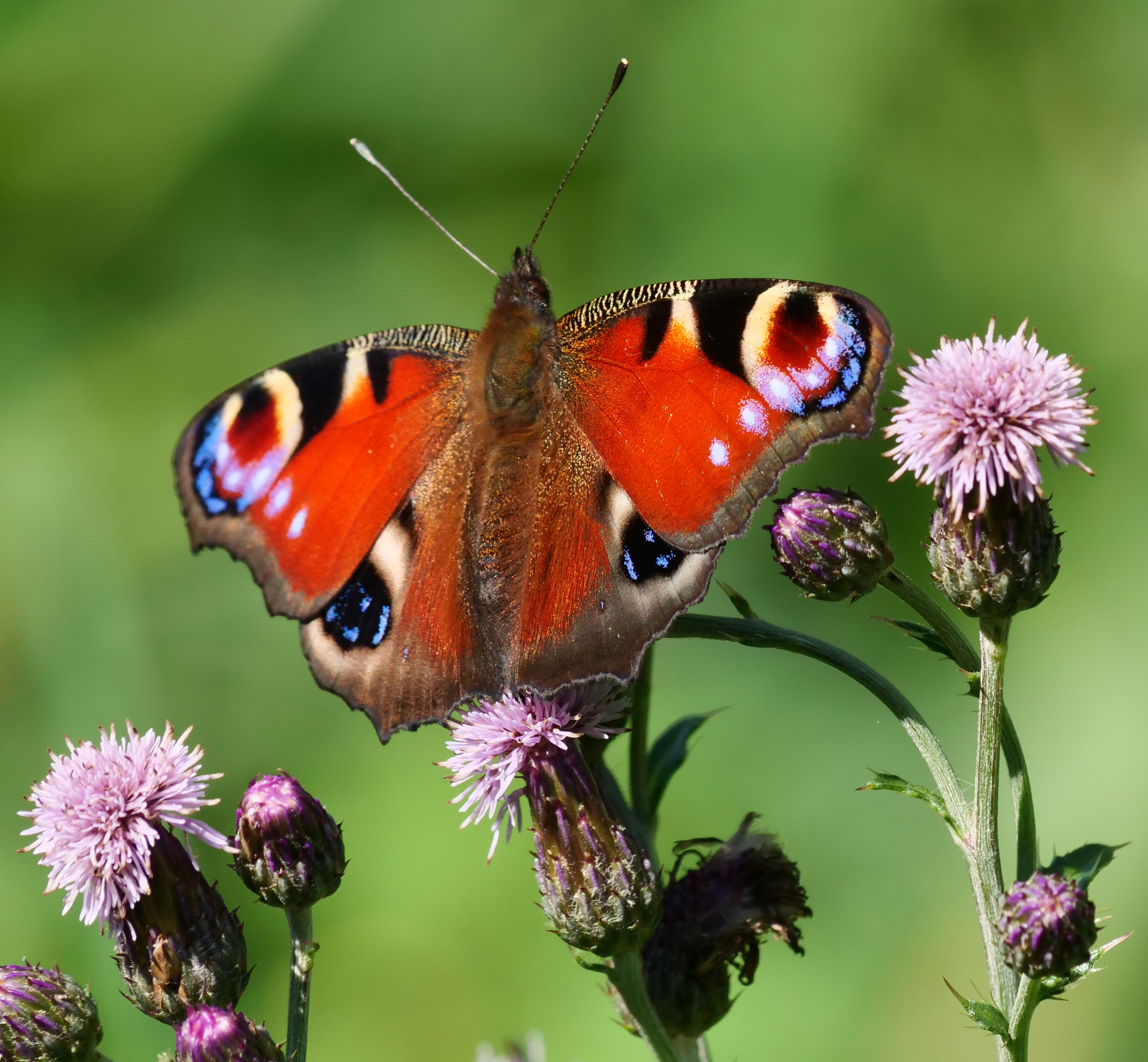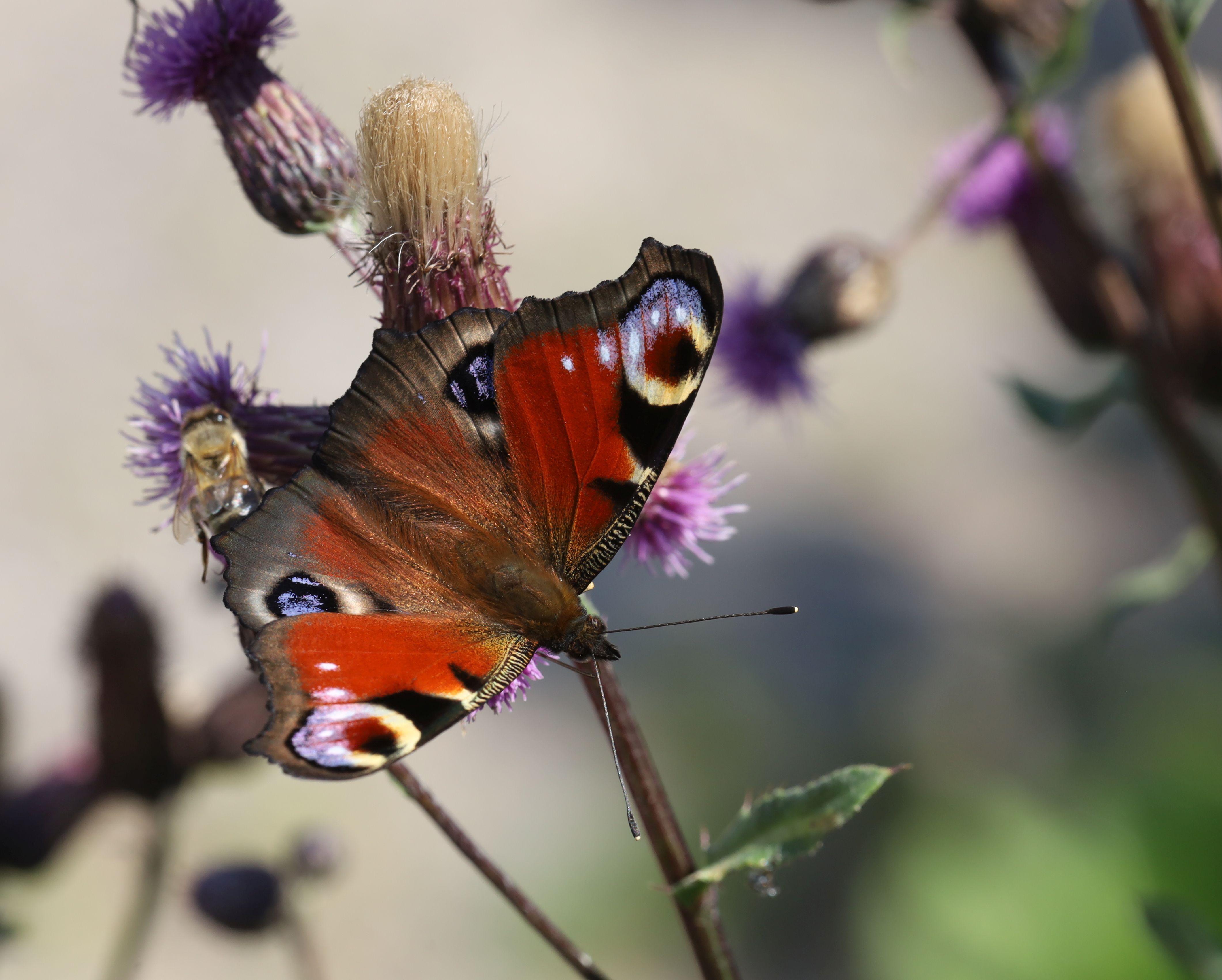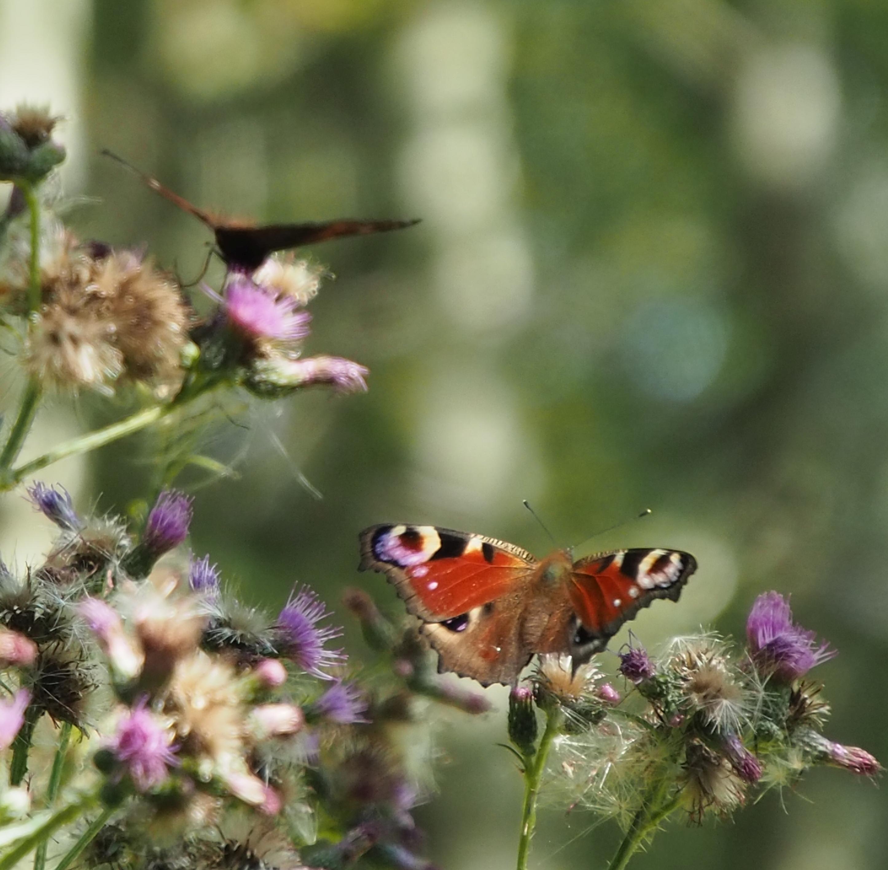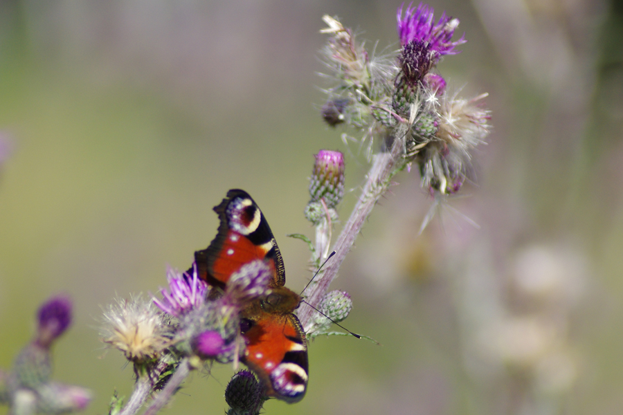 Tagpfauenauge (Aglais io (Linnaeus, 1758)), Larven in verschiedenen Entwicklungsstadien, bei Taubenheim, August 2016.