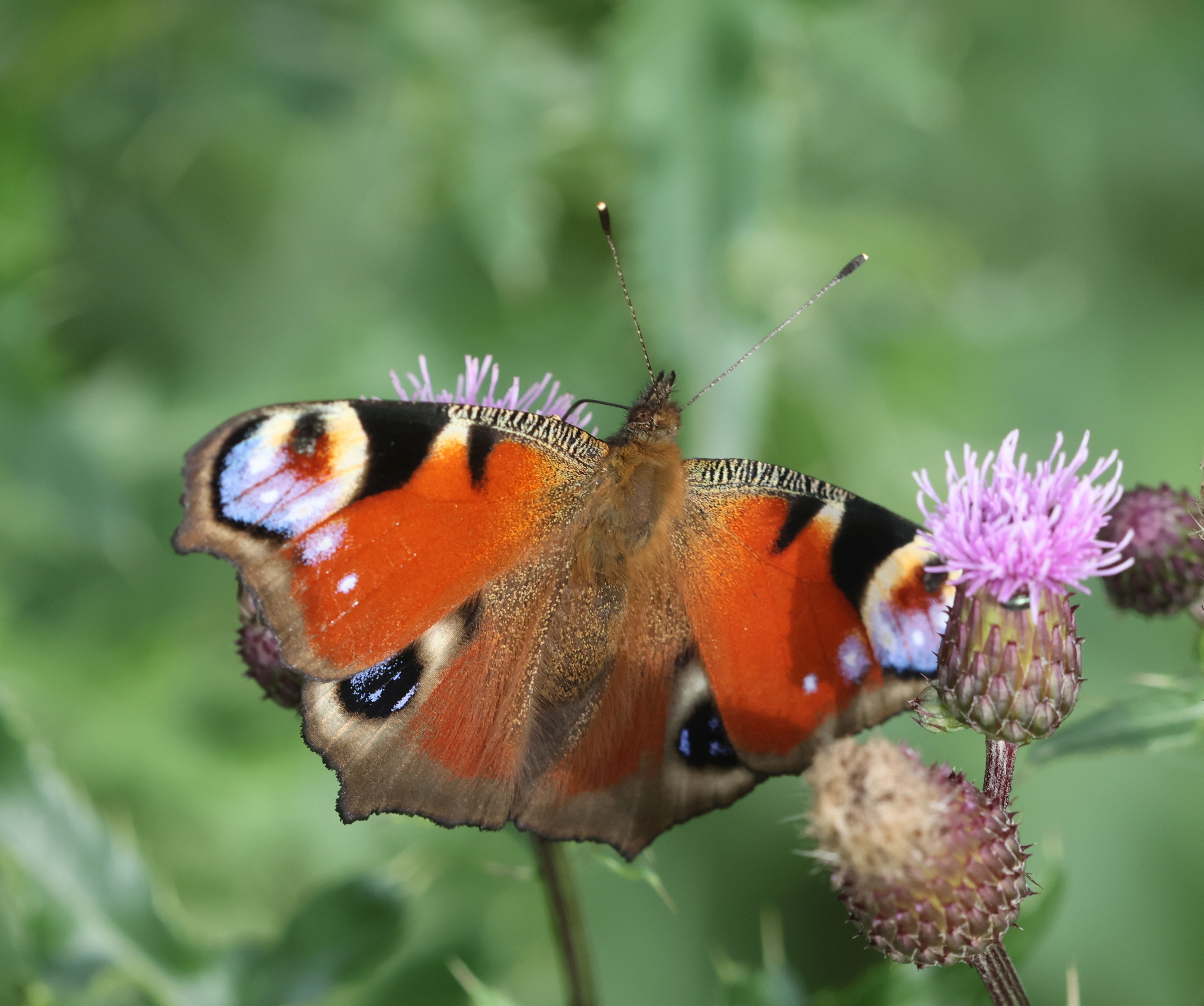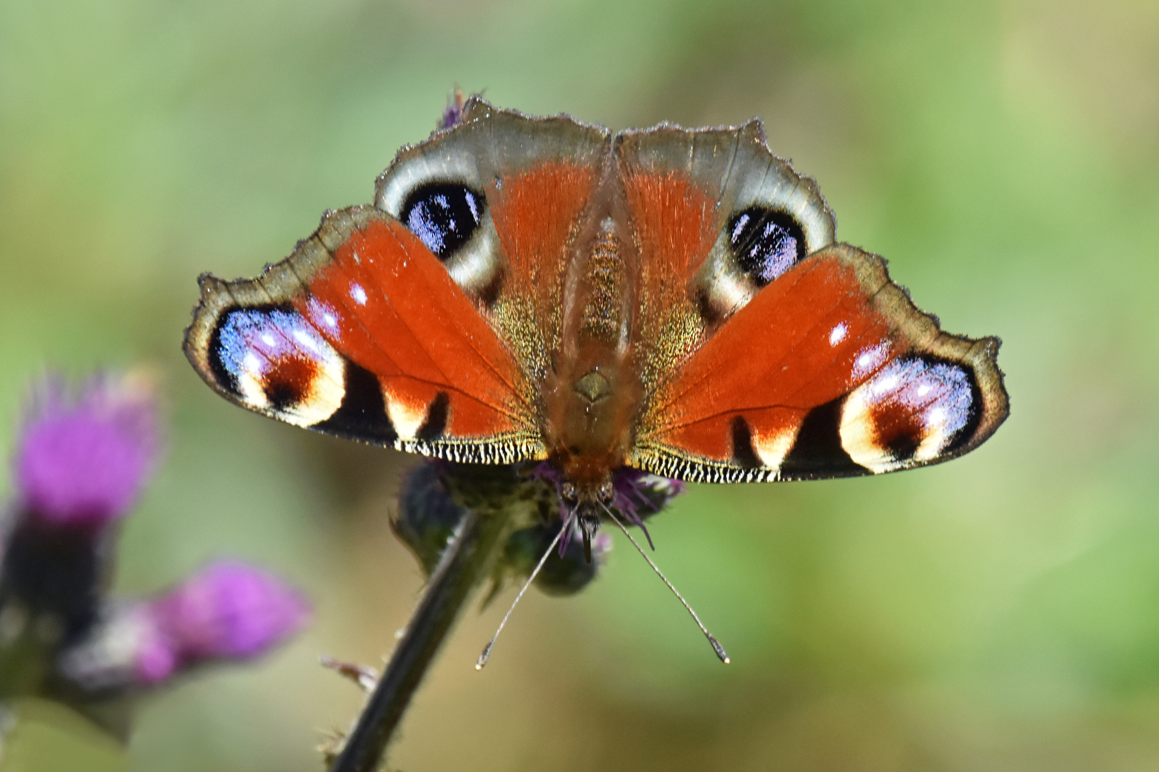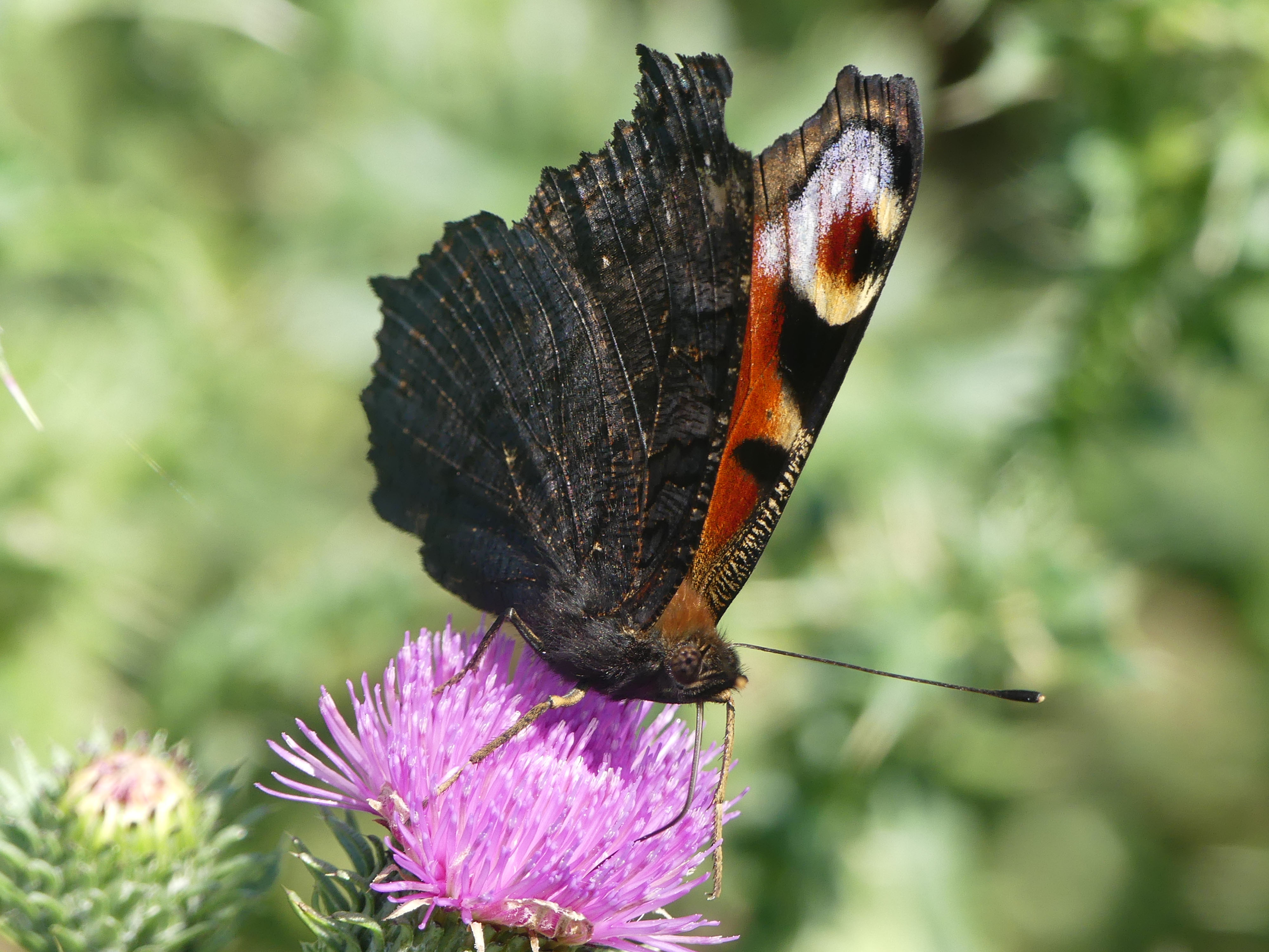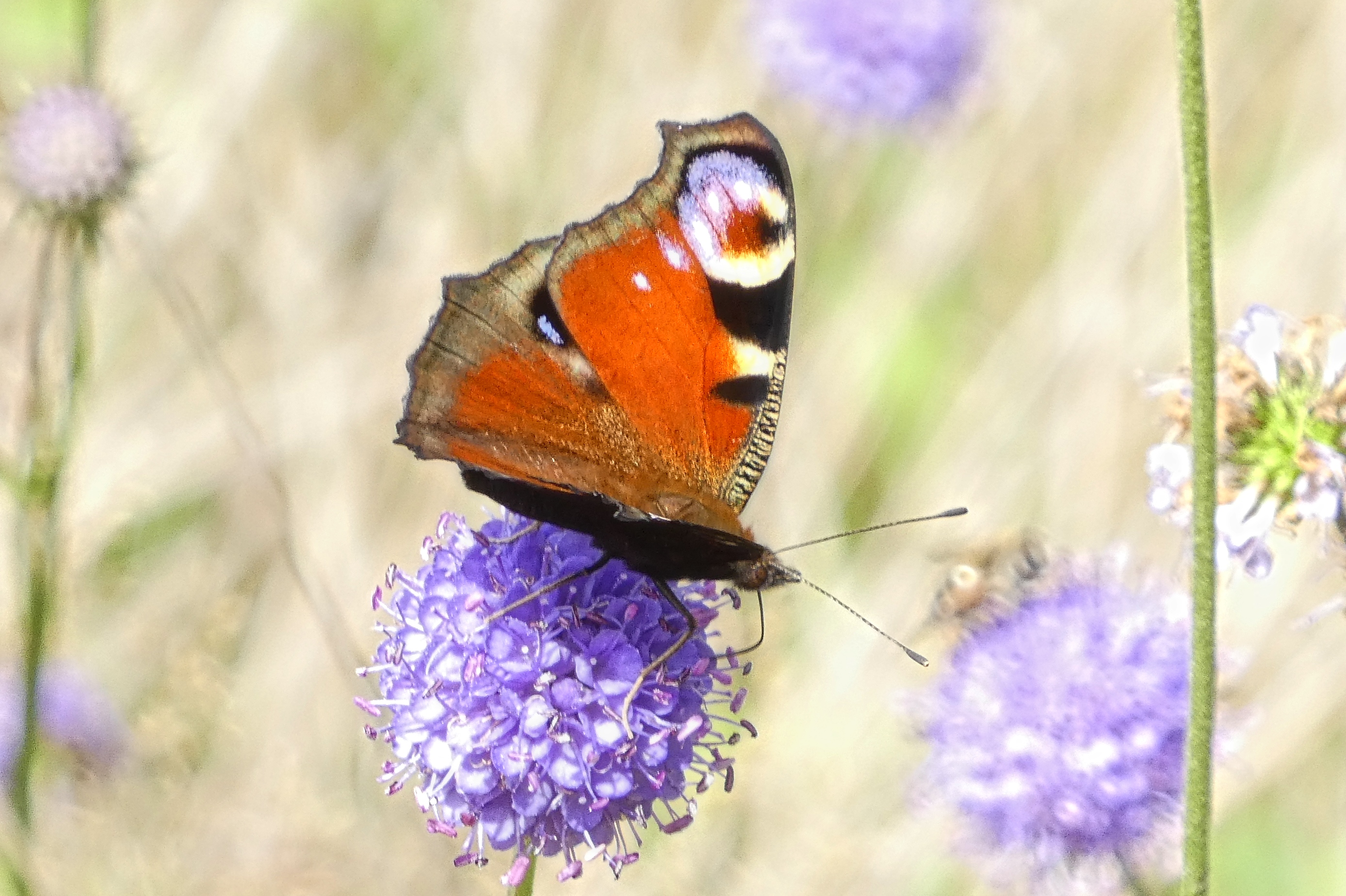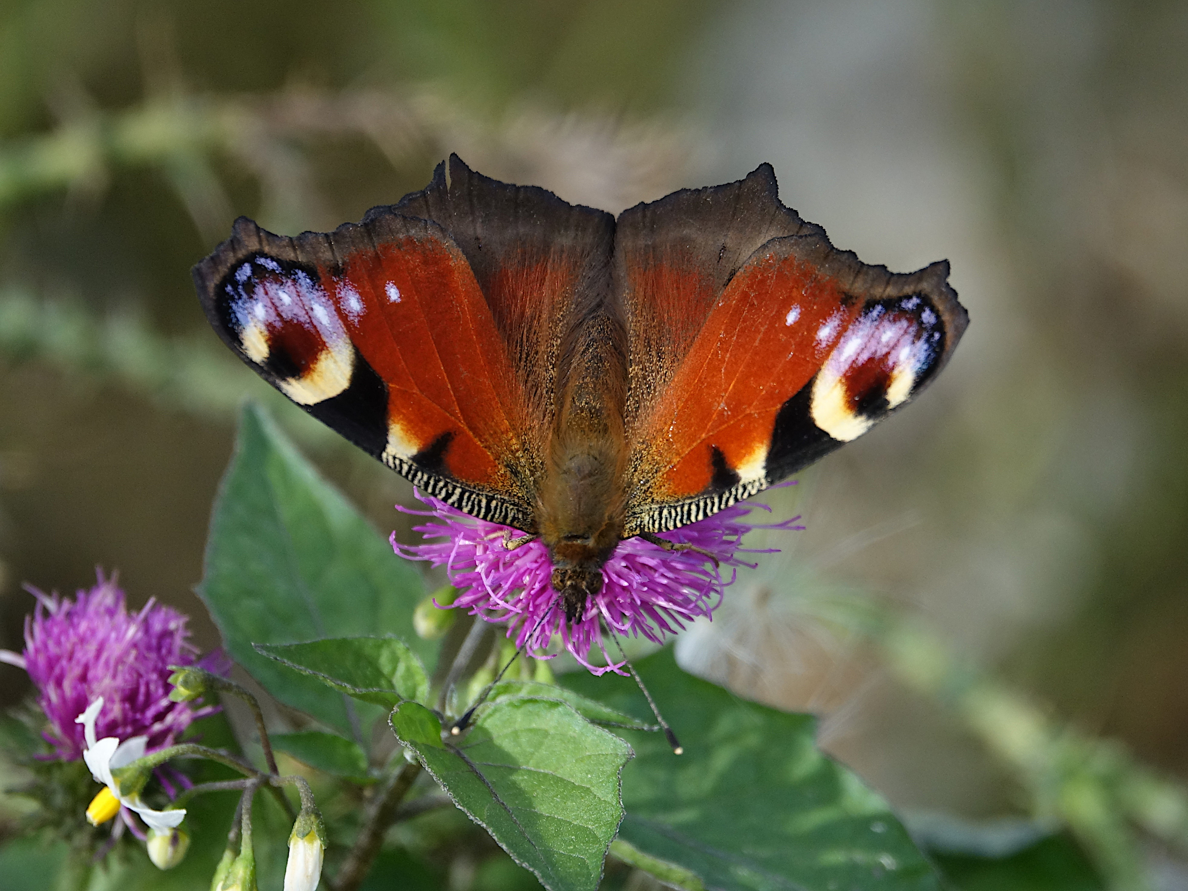 Tagpfauenauge (Aglais io (Linnaeus, 1758)), Larven in verschiedenen Entwicklungsstadien, bei Taubenheim, August 2016.