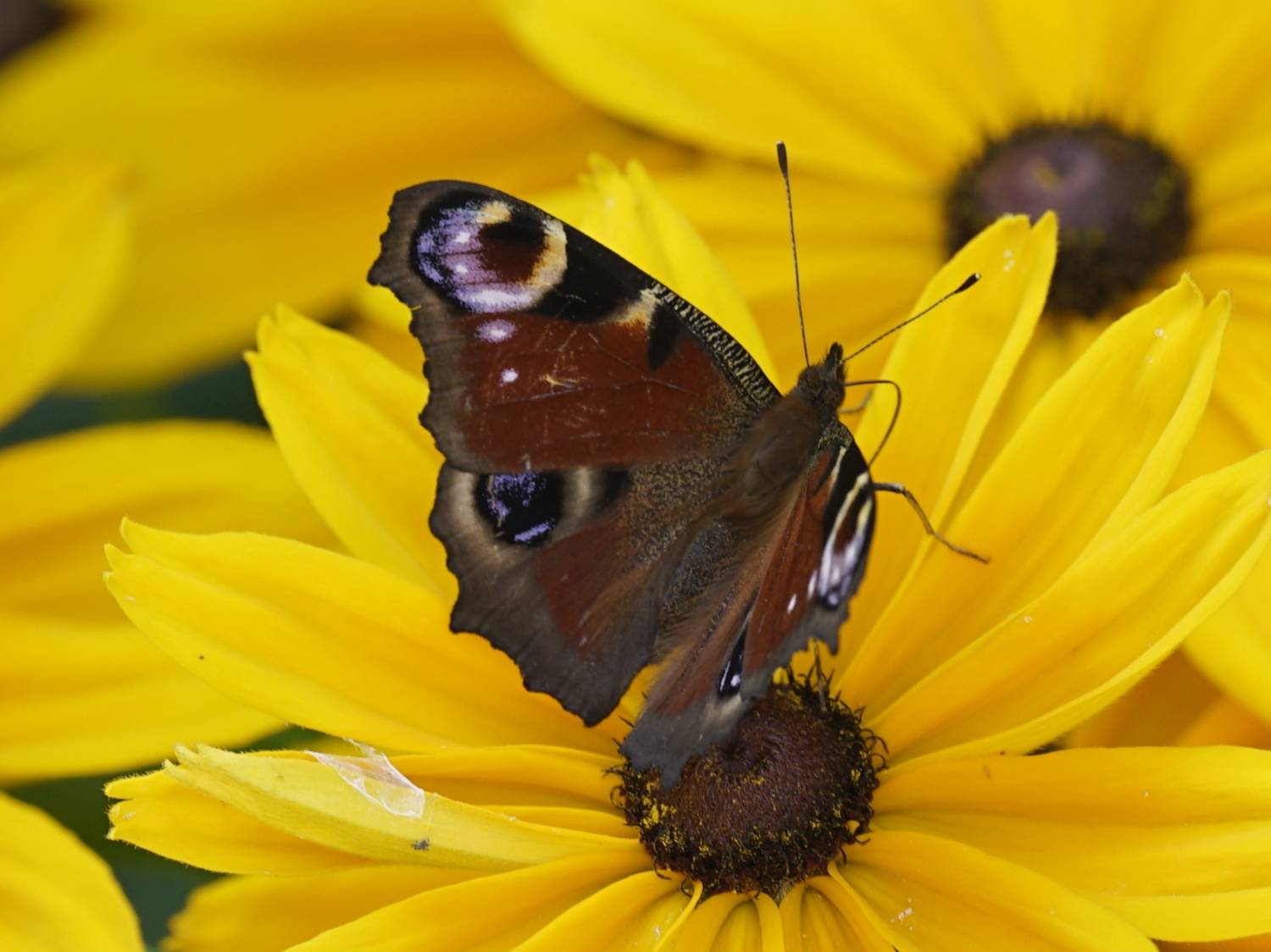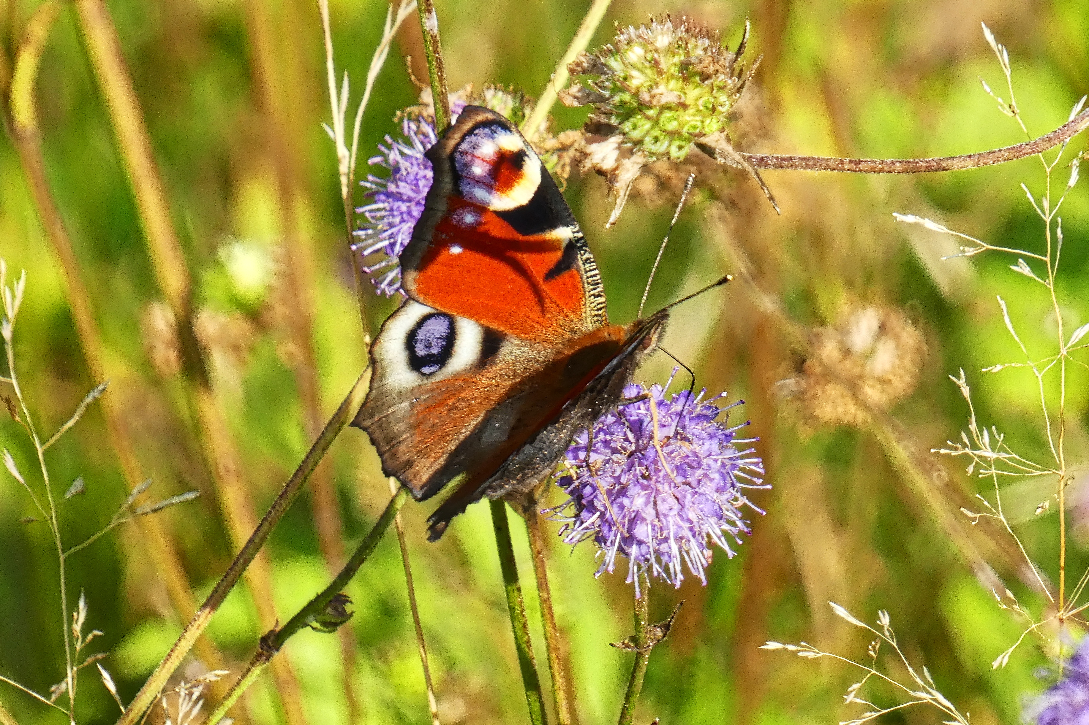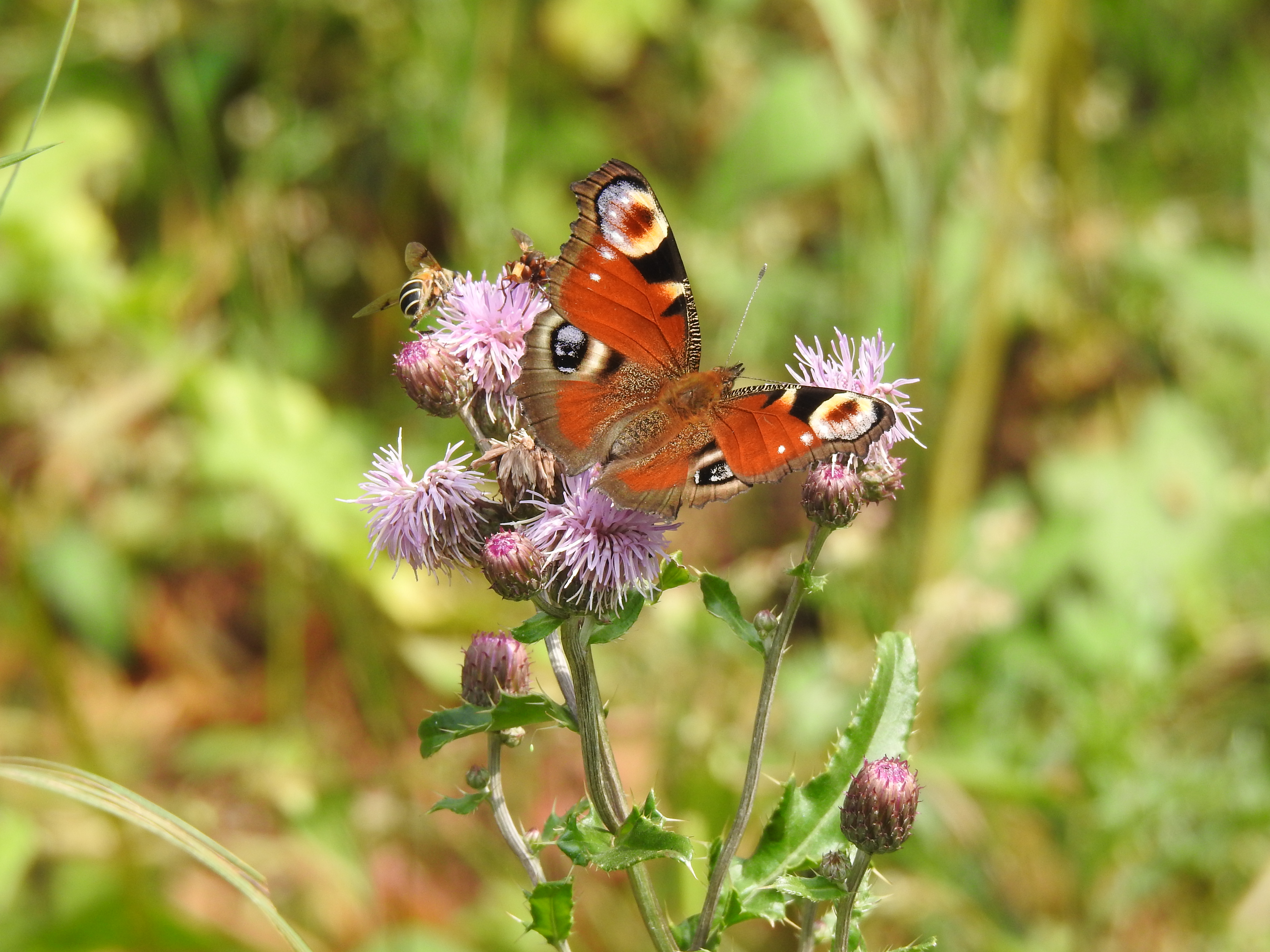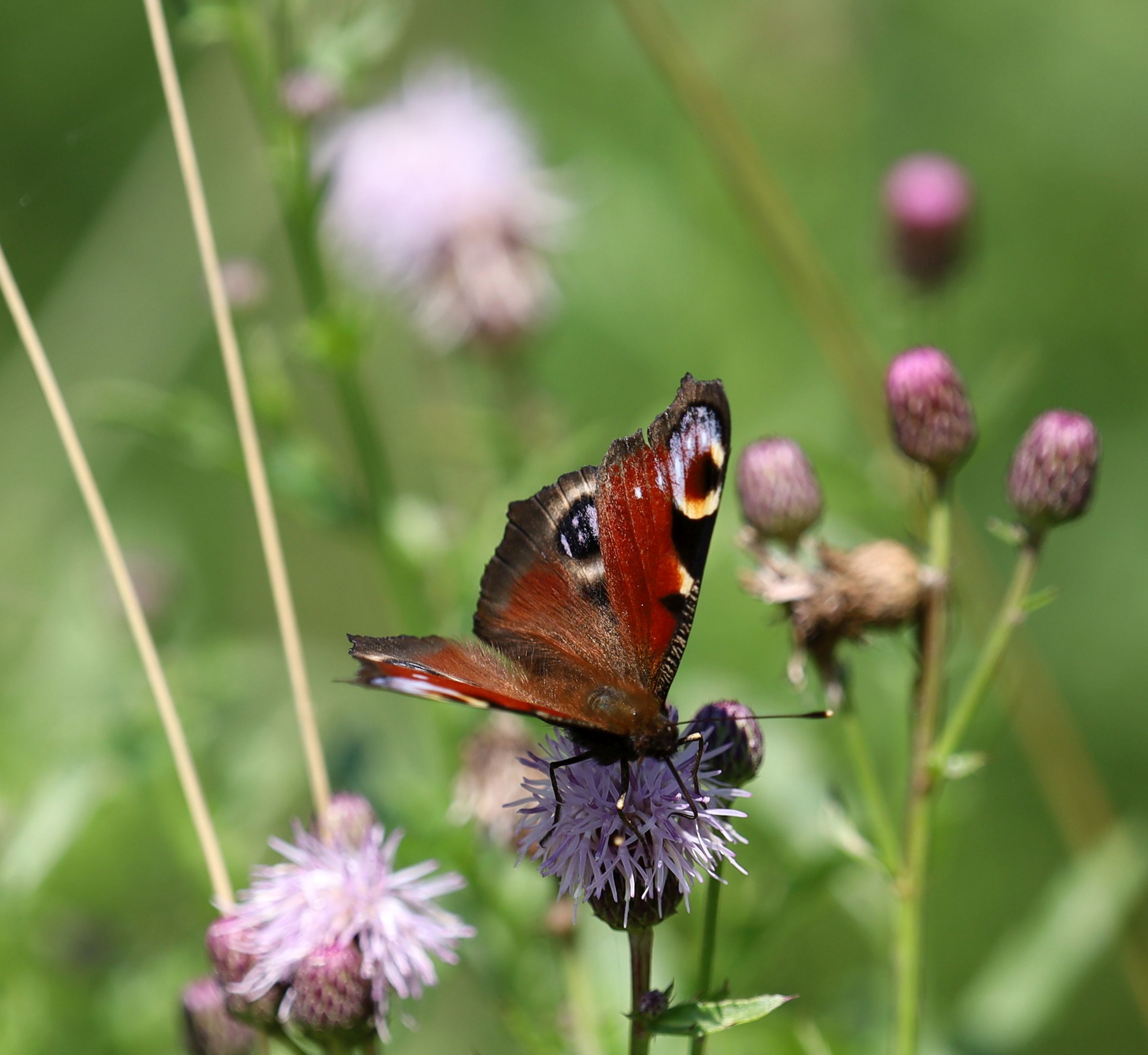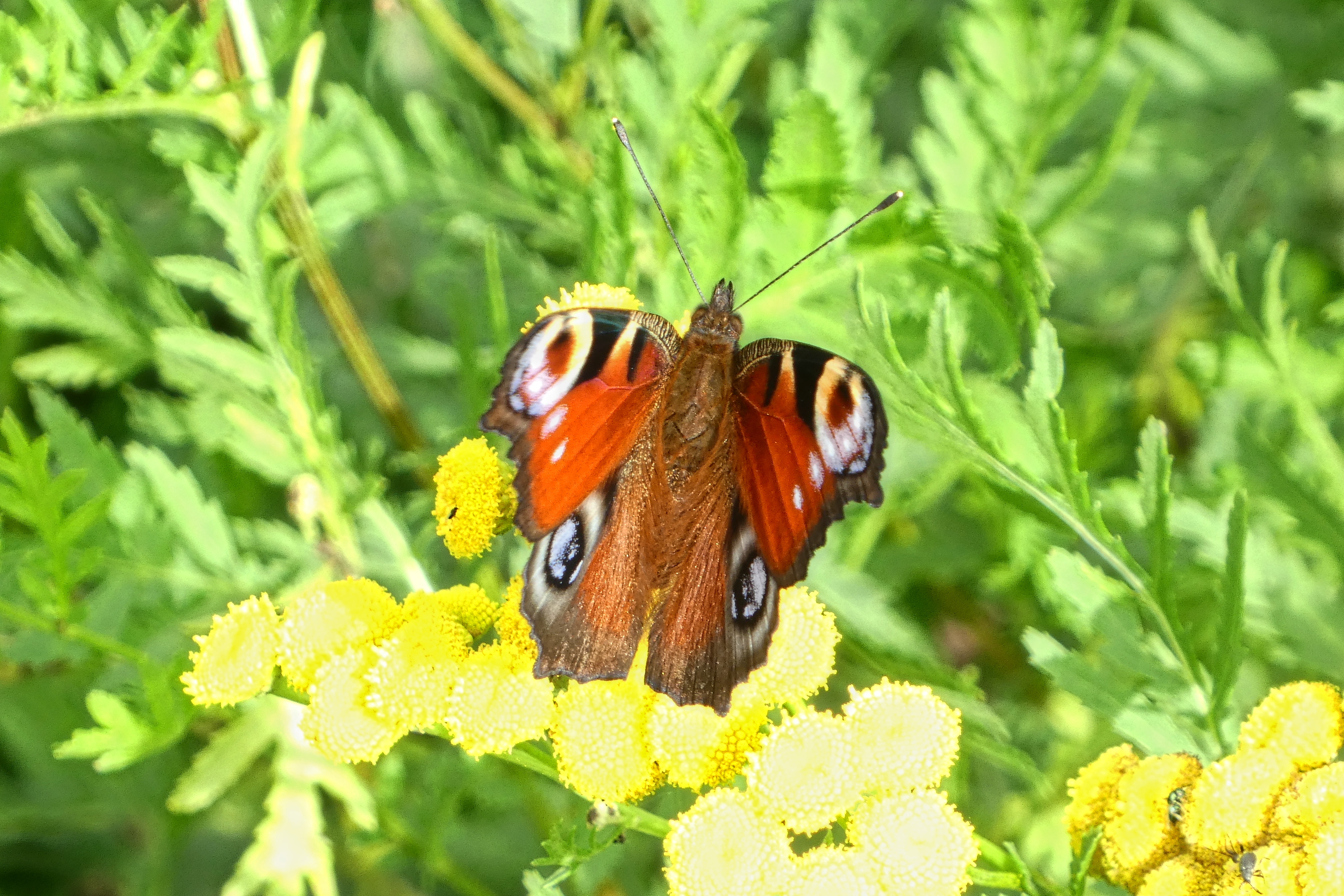Tagpfauenauge (Aglais io (Linnaeus, 1758)), Larven in verschiedenen Entwicklungsstadien, bei Taubenheim, August 2016.