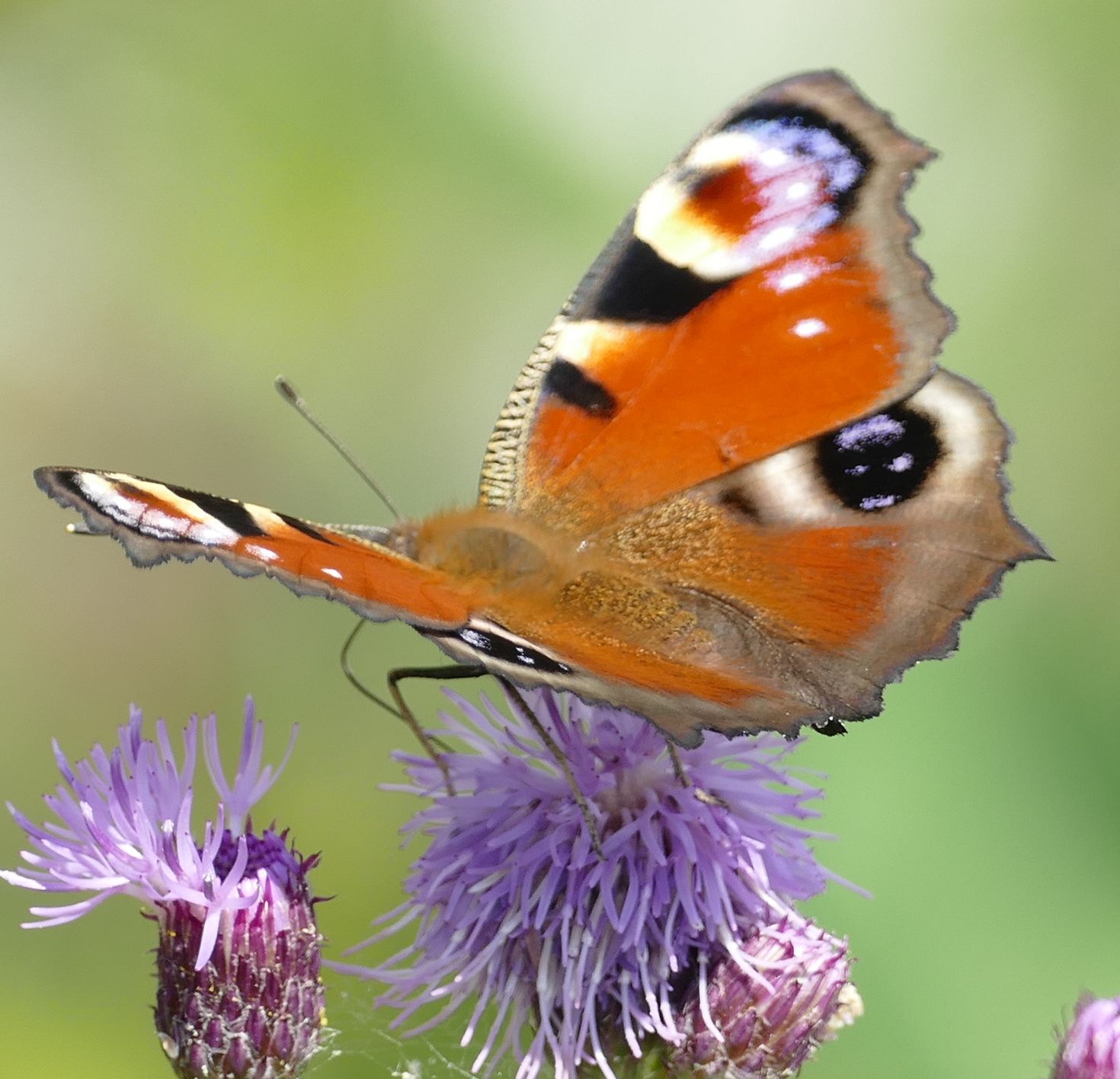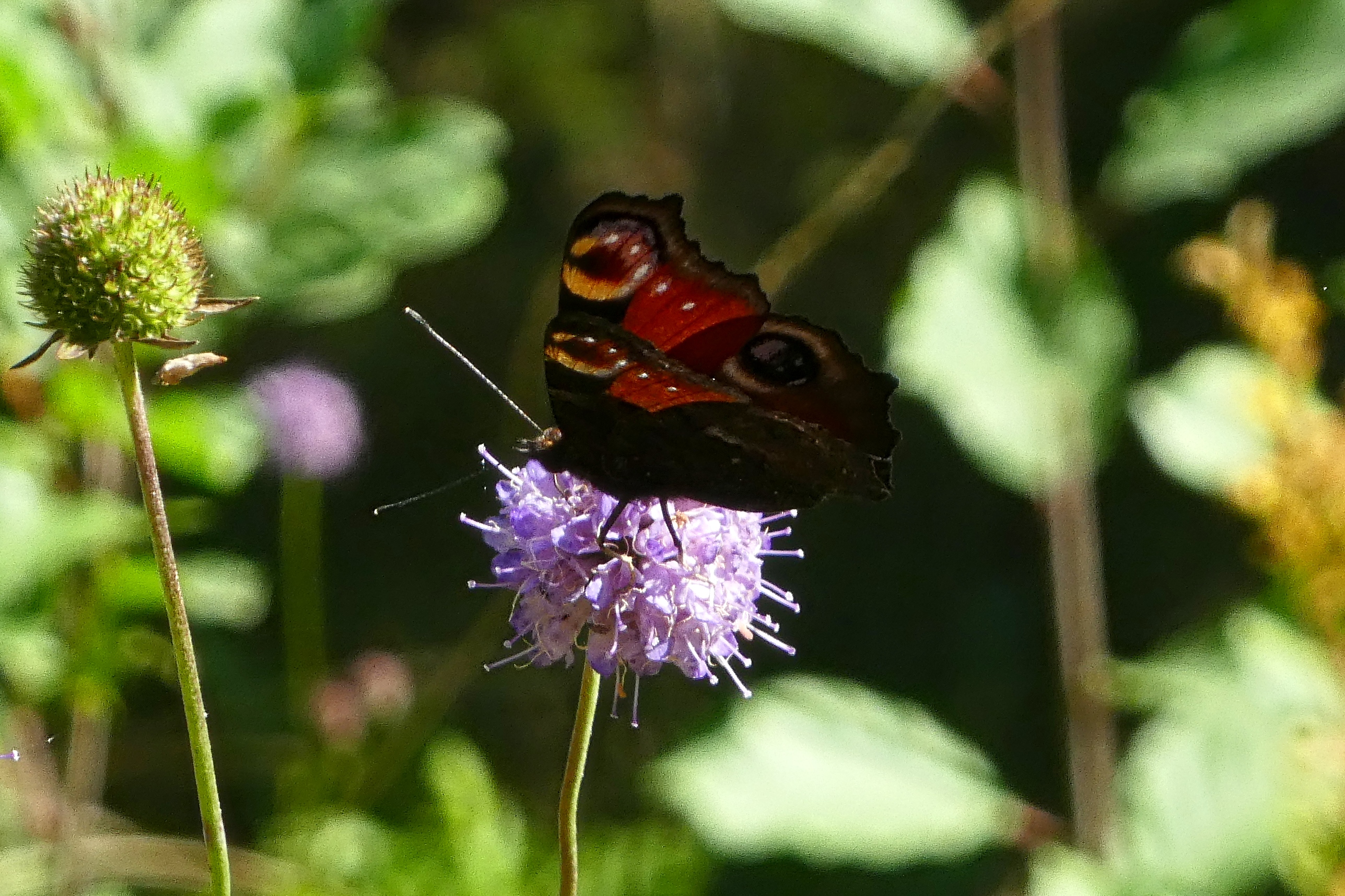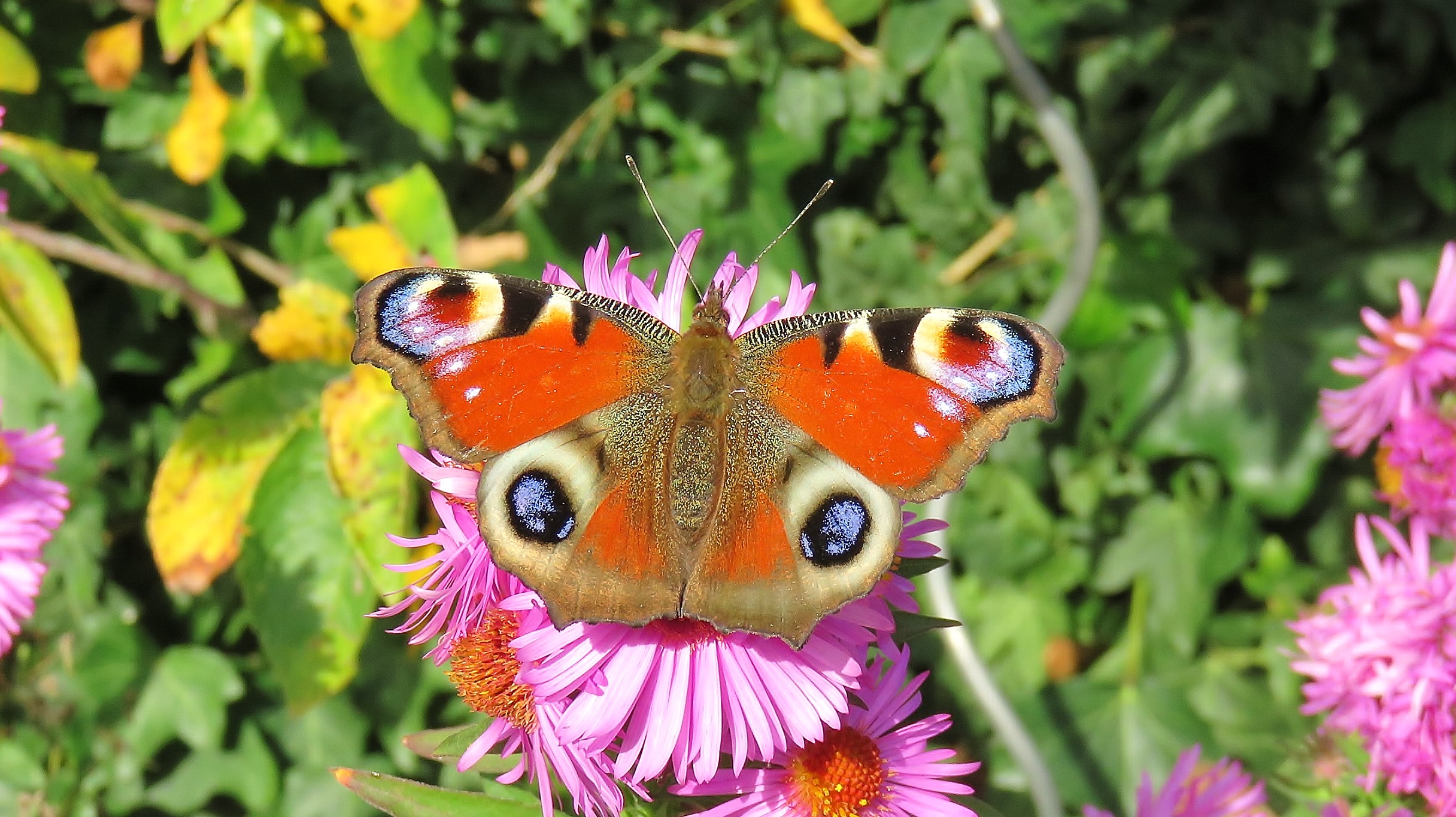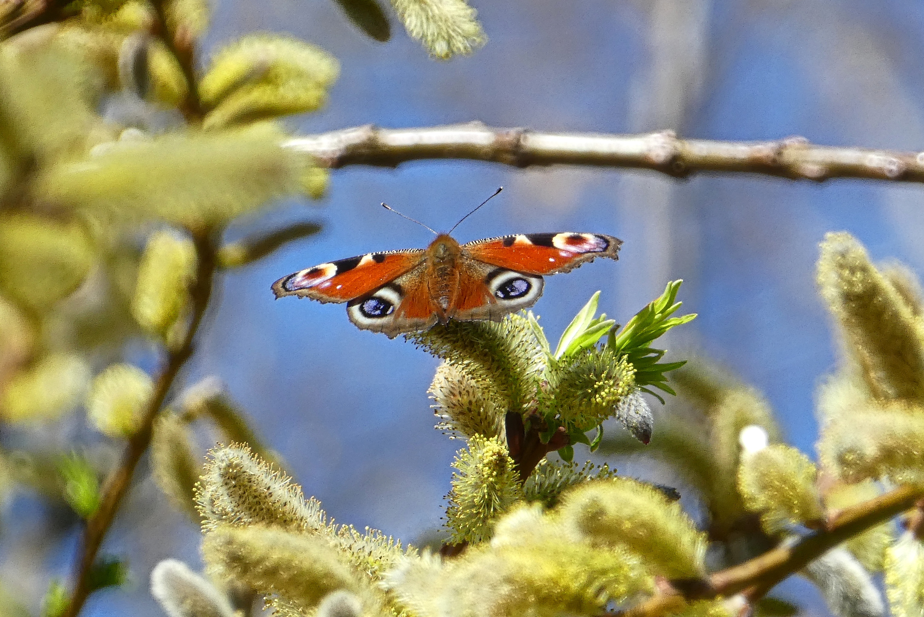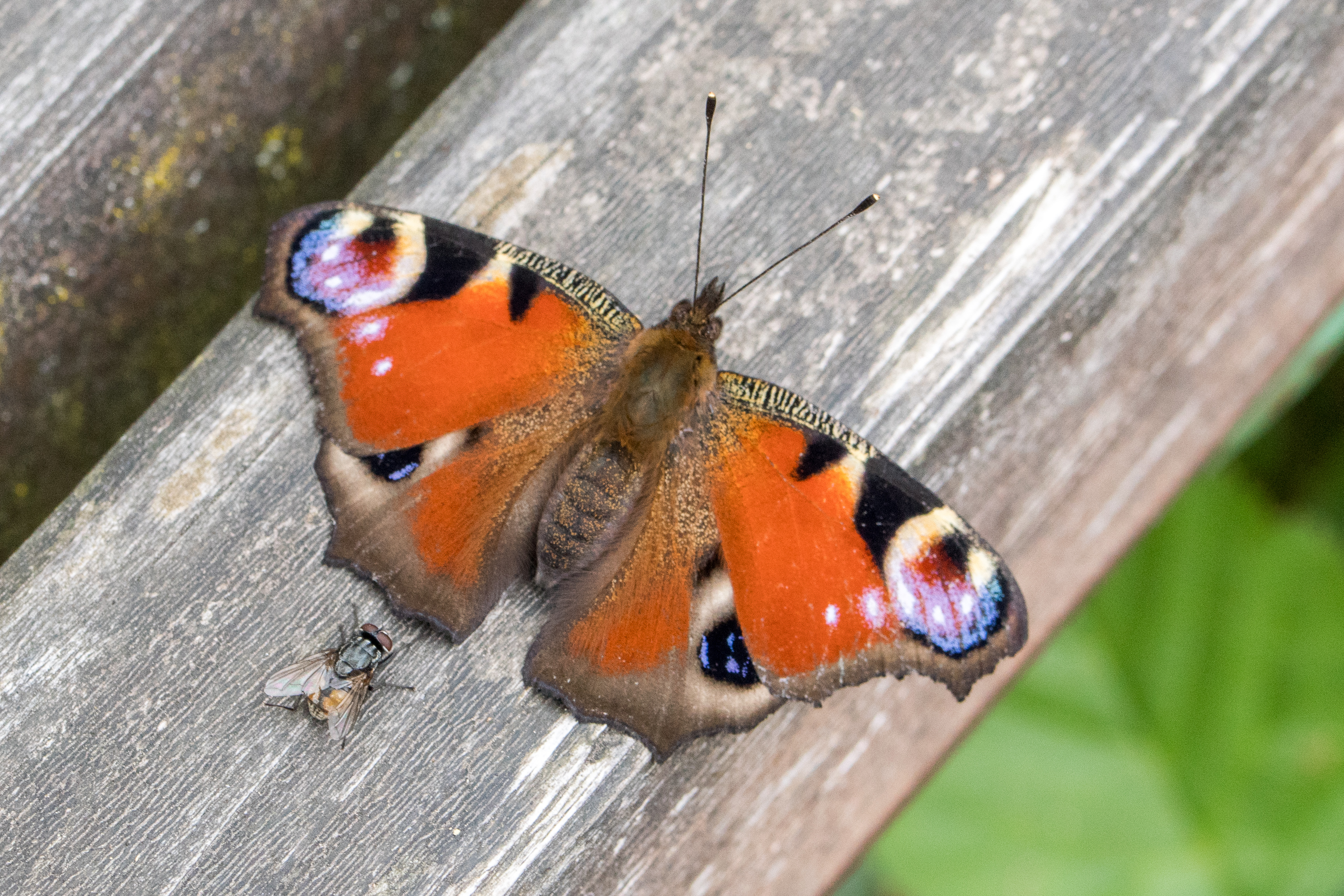 Tagpfauenauge (Aglais io (Linnaeus, 1758)), Larven in verschiedenen Entwicklungsstadien, bei Taubenheim, August 2016.