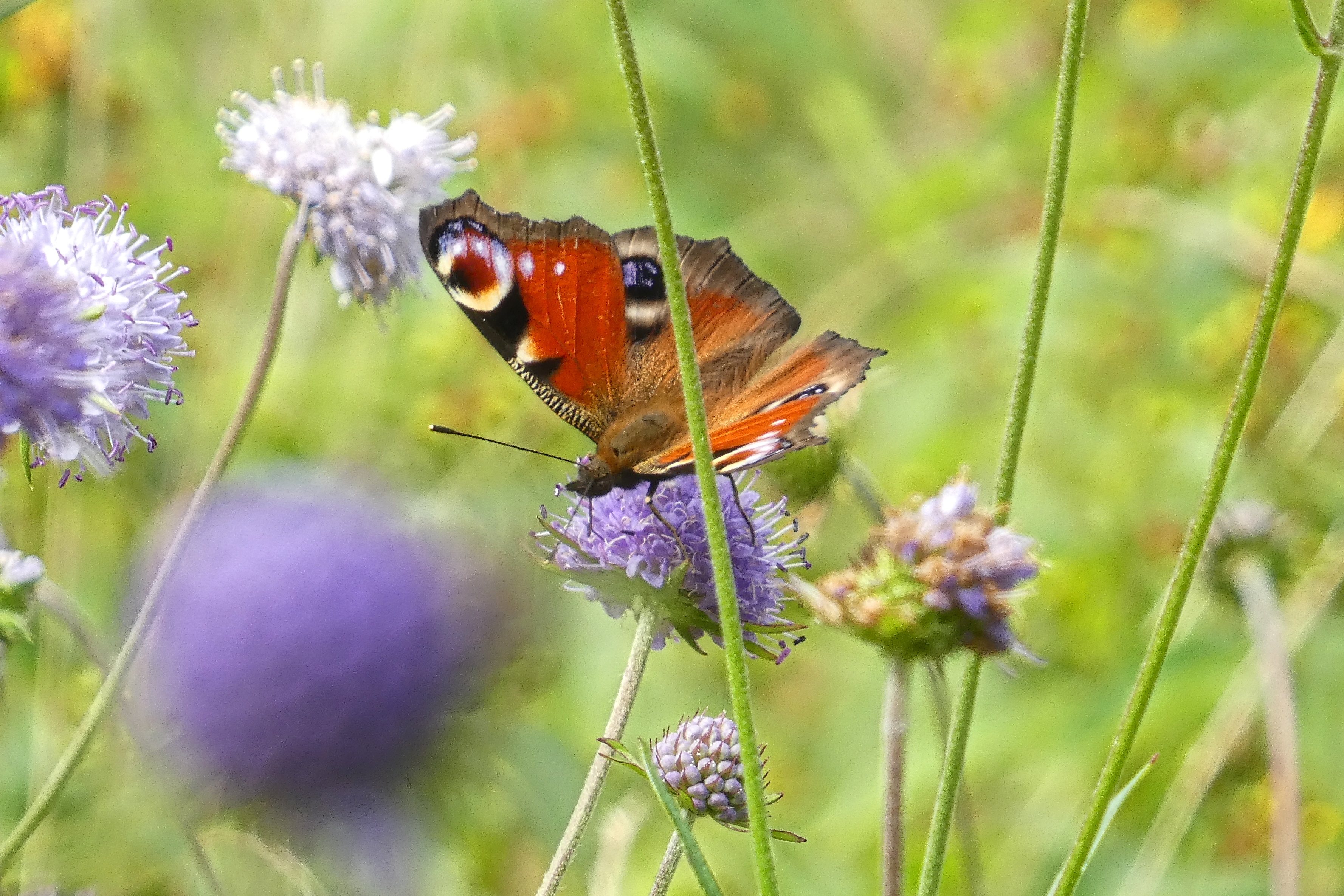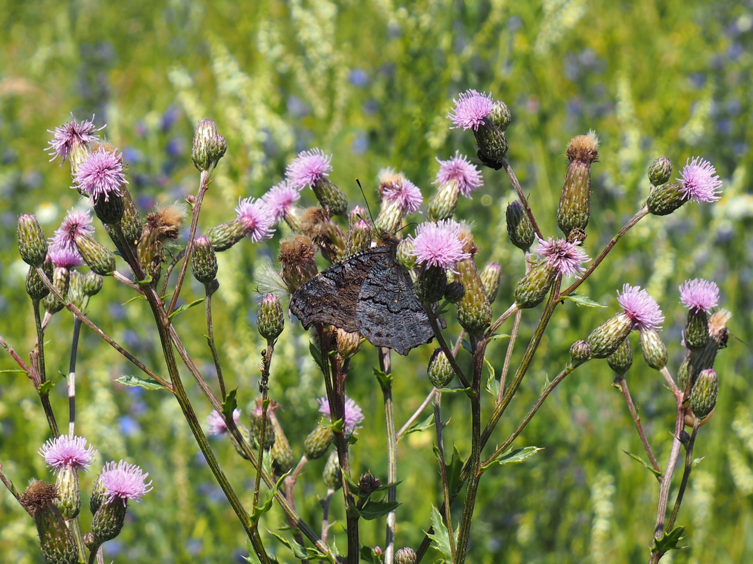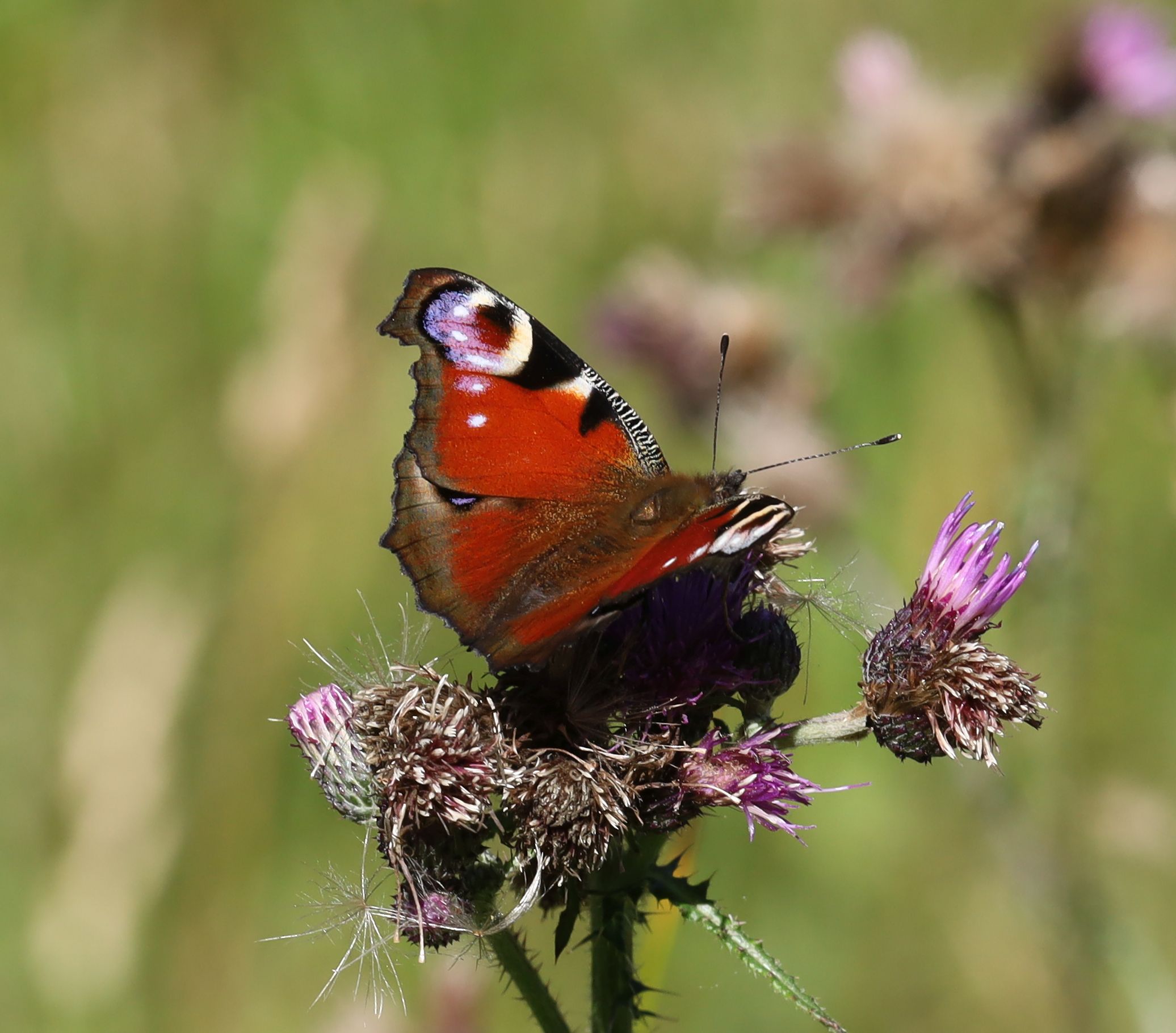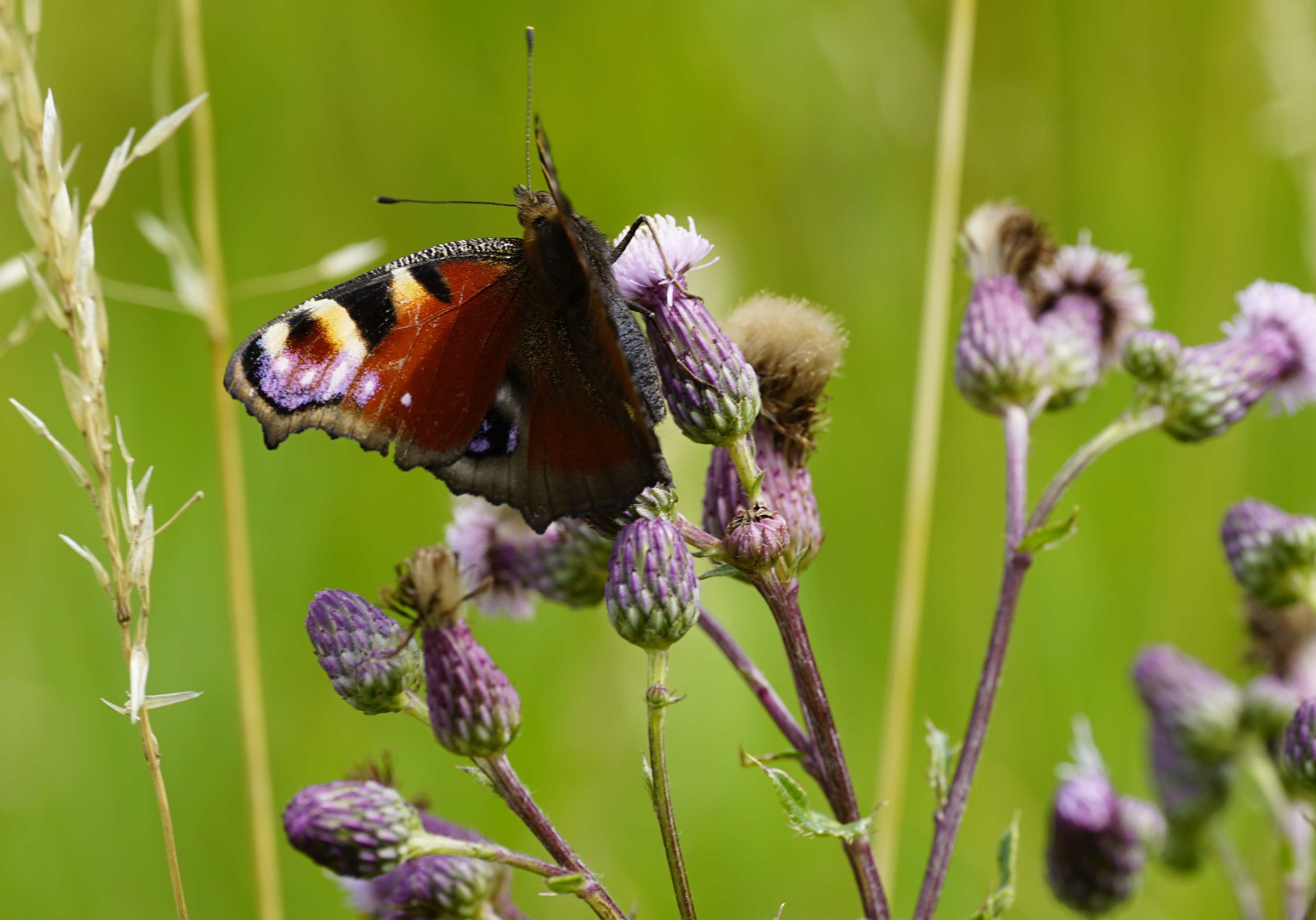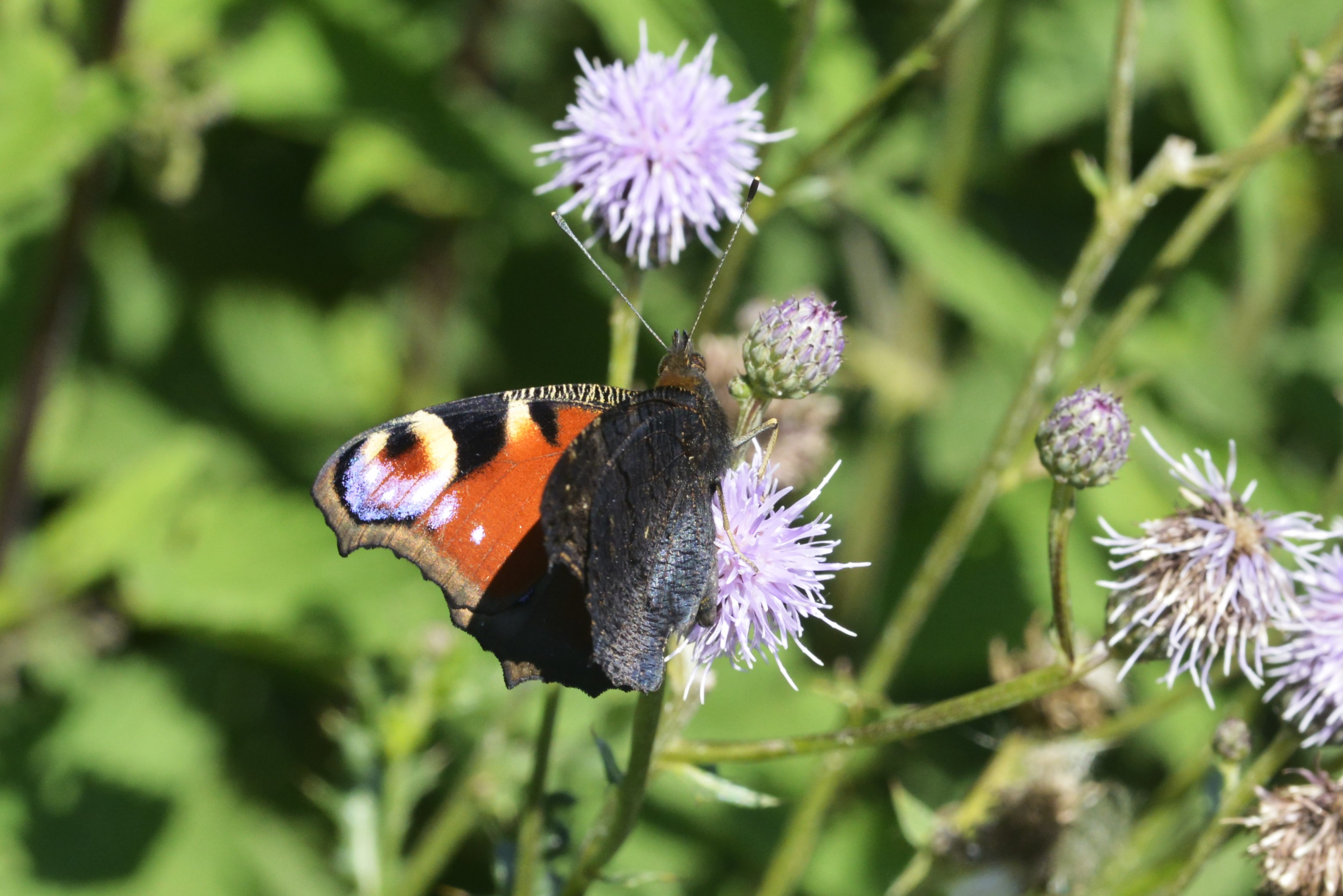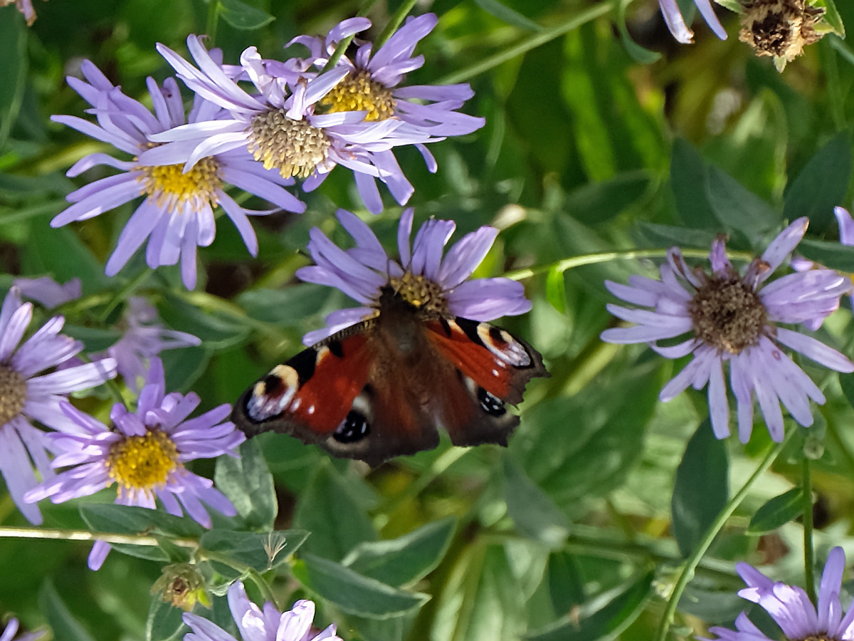 Tagpfauenauge (Aglais io (Linnaeus, 1758)), Larven in verschiedenen Entwicklungsstadien, bei Taubenheim, August 2016.