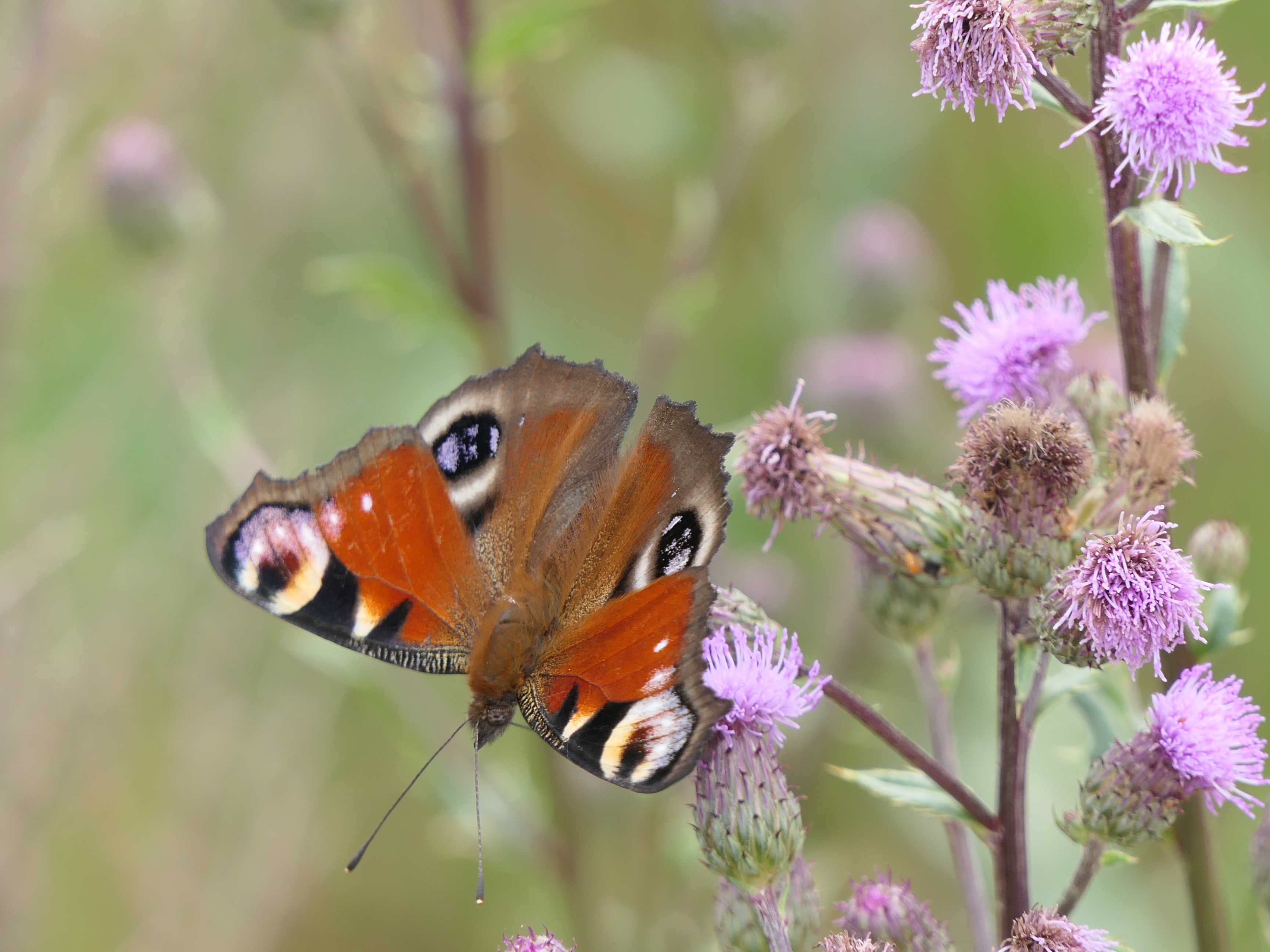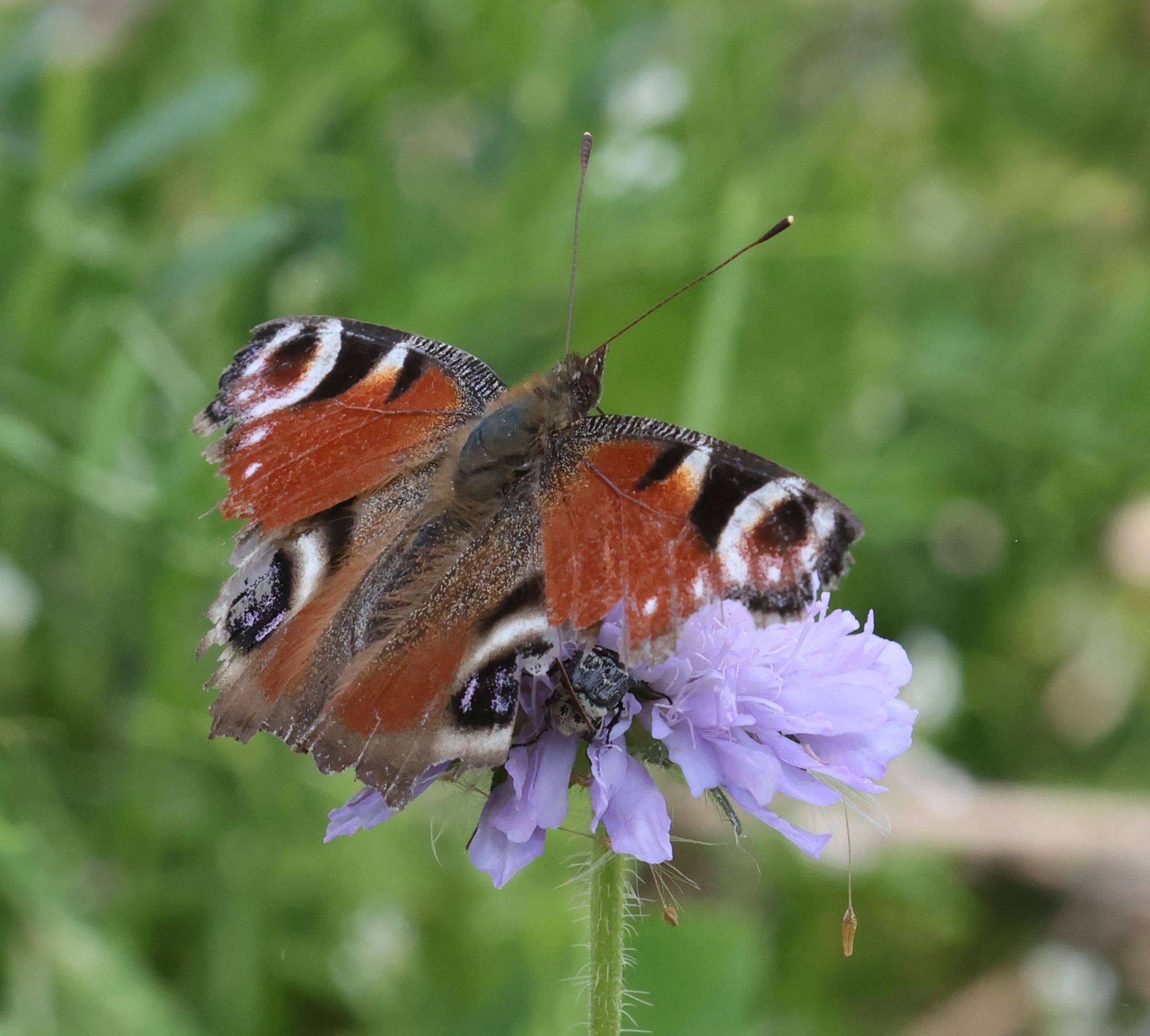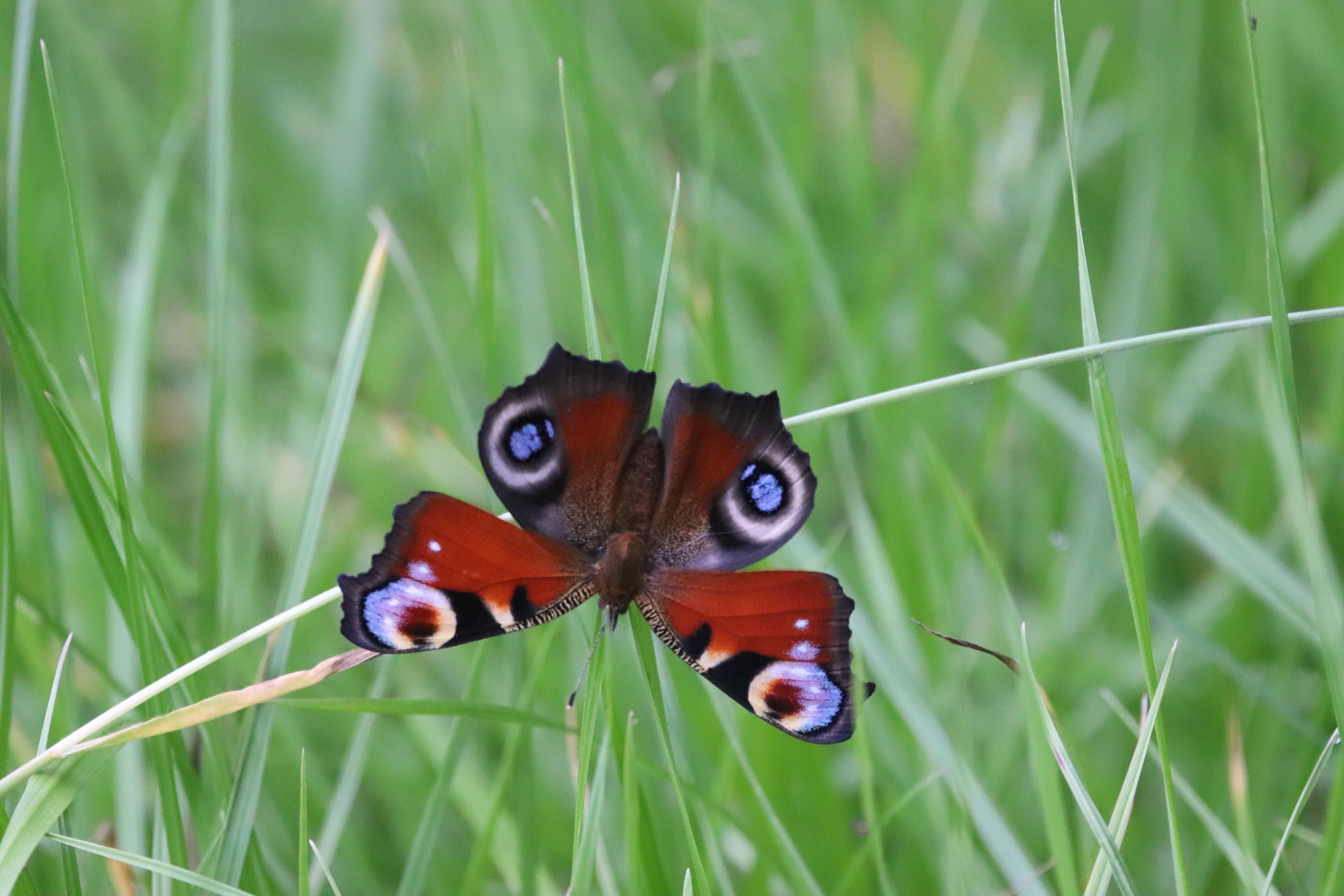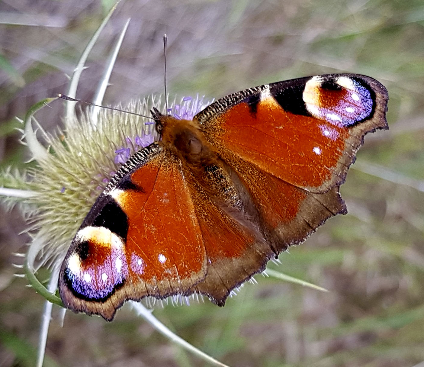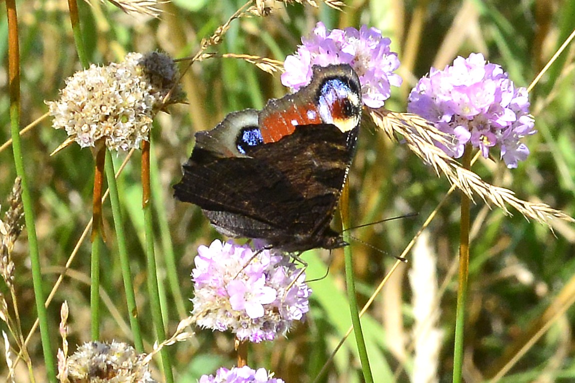 Tagpfauenauge (Aglais io (Linnaeus, 1758)), Larven in verschiedenen Entwicklungsstadien, bei Taubenheim, August 2016.