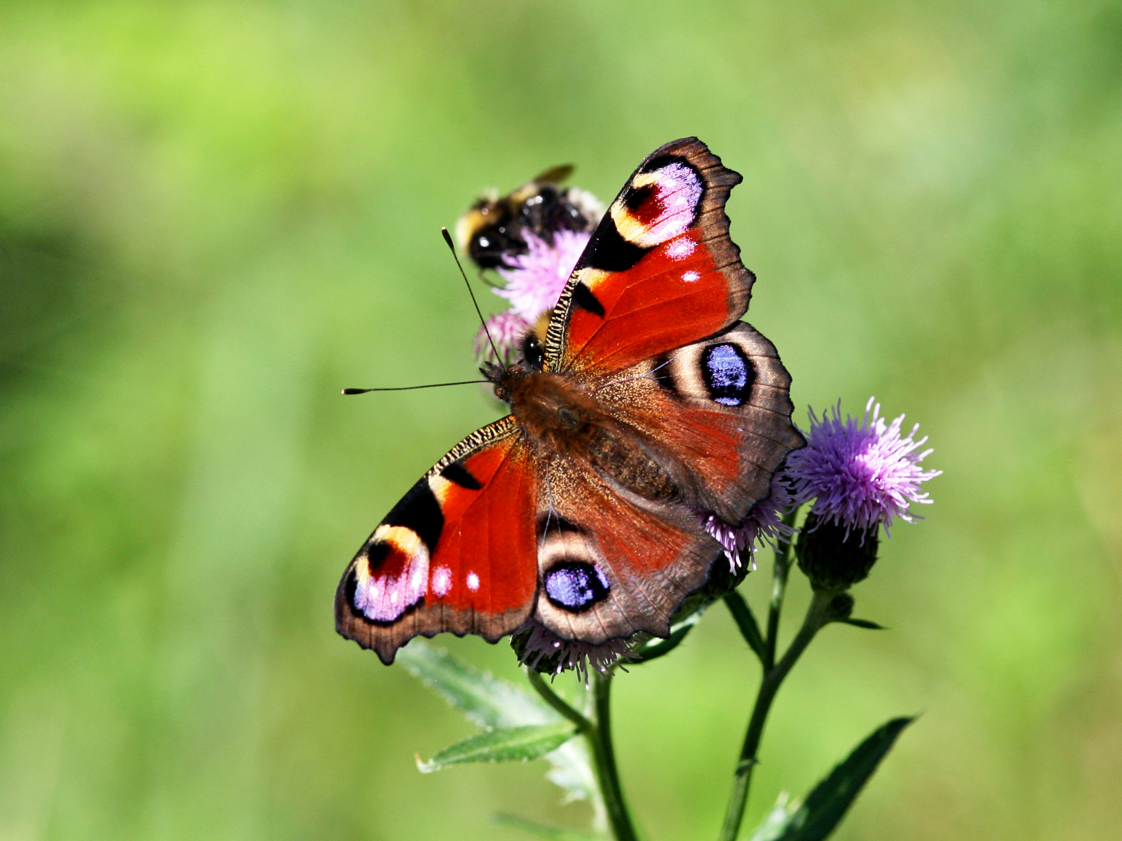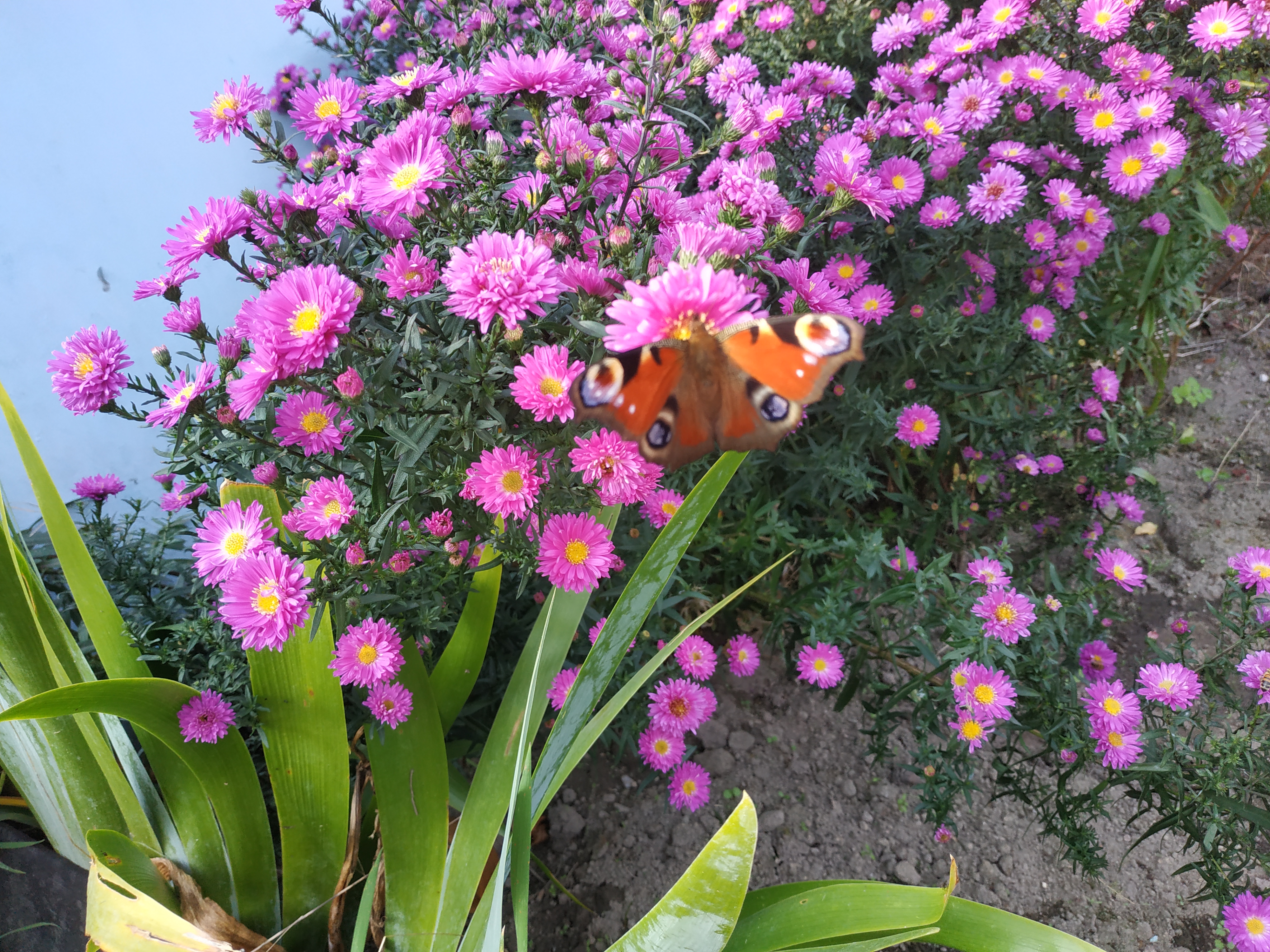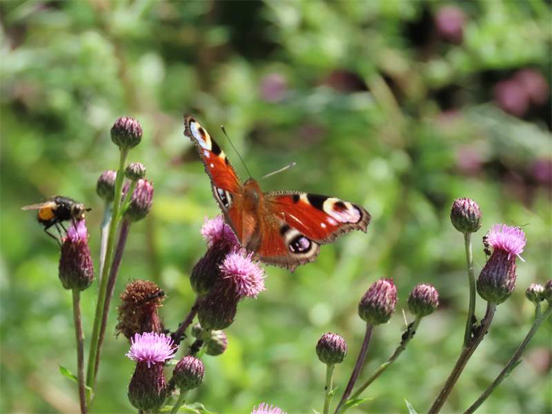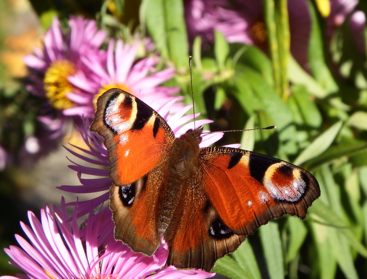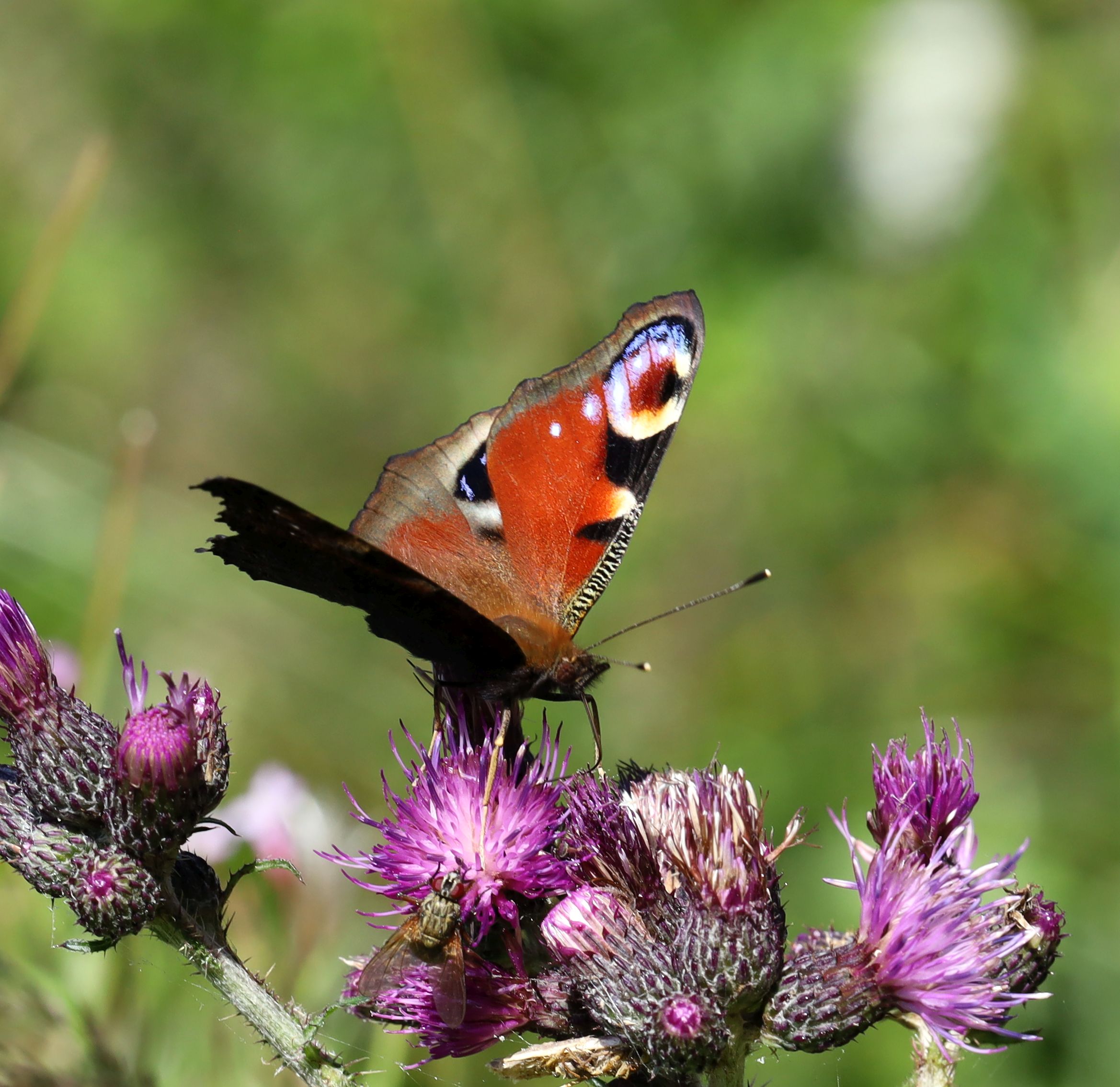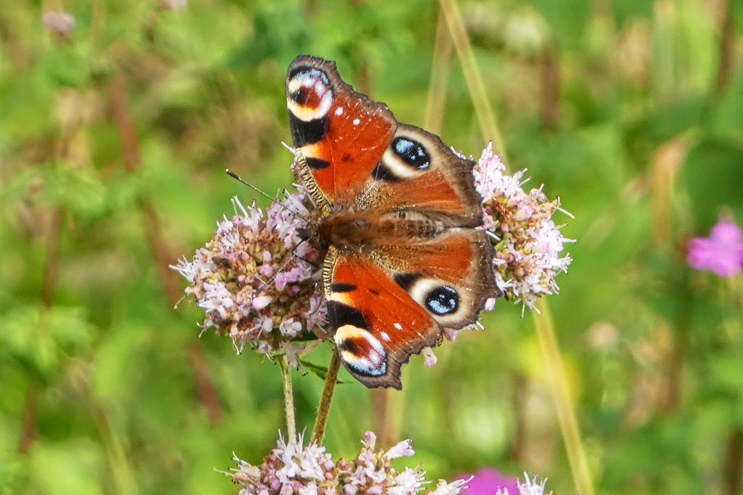 Tagpfauenauge (Aglais io (Linnaeus, 1758)), Larven in verschiedenen Entwicklungsstadien, bei Taubenheim, August 2016.