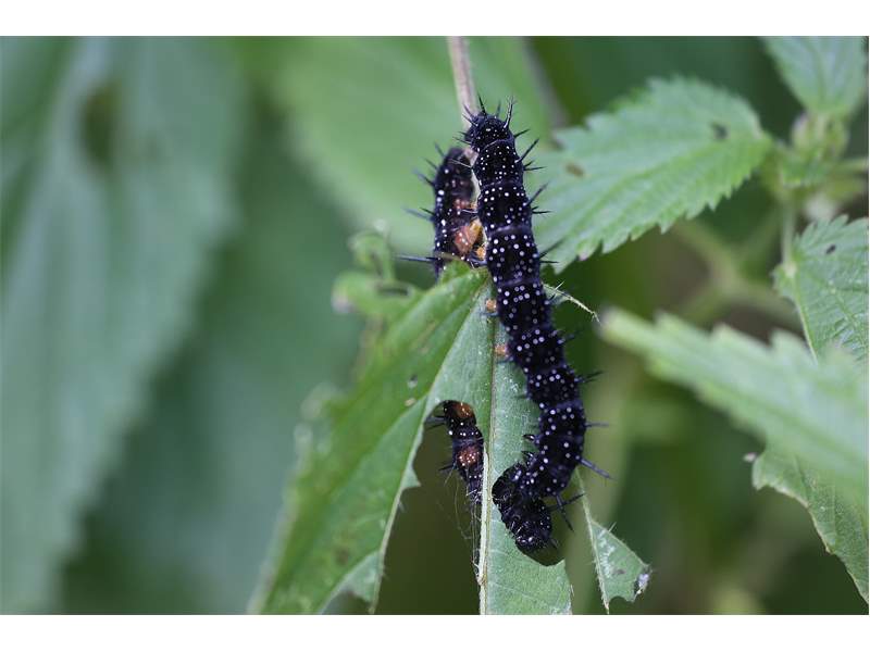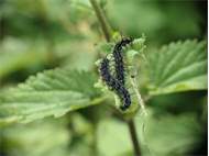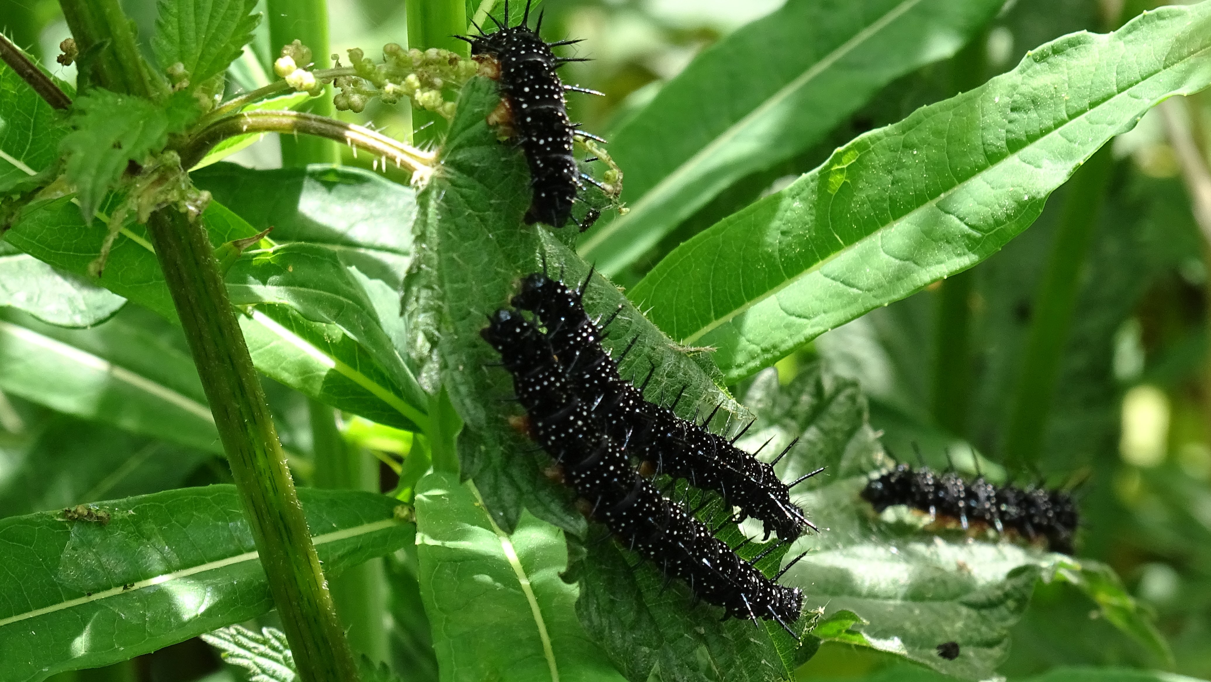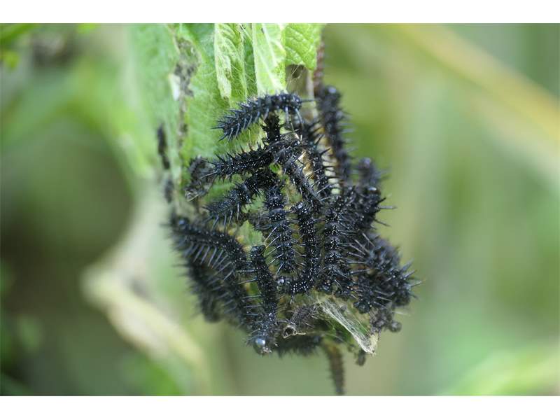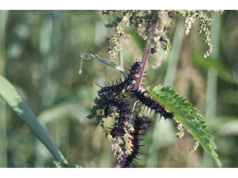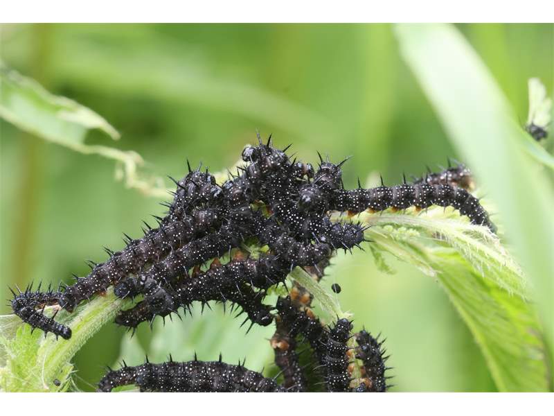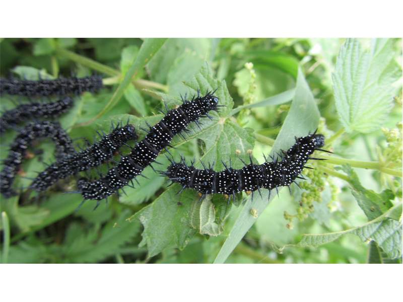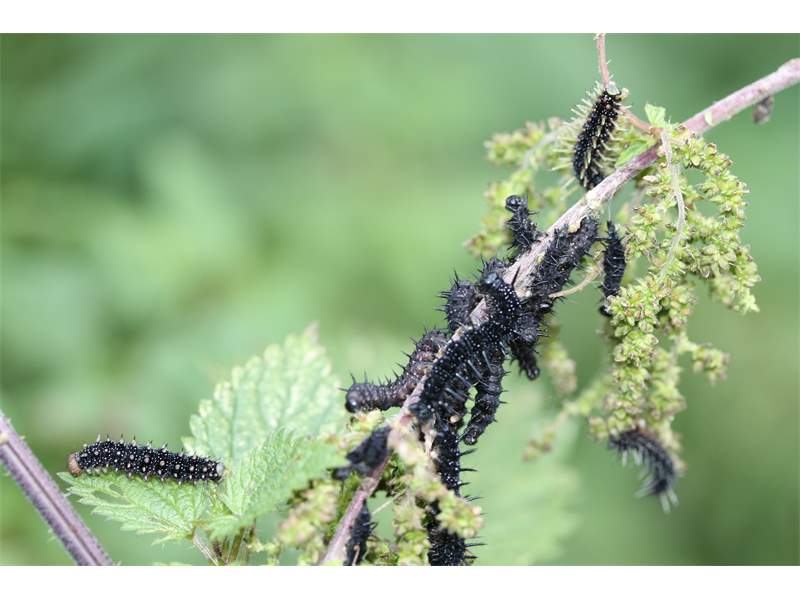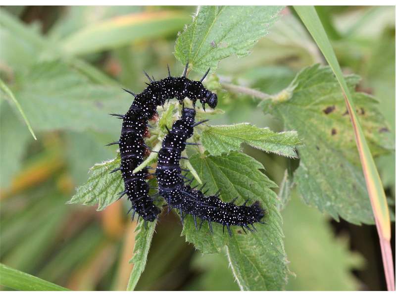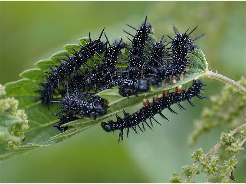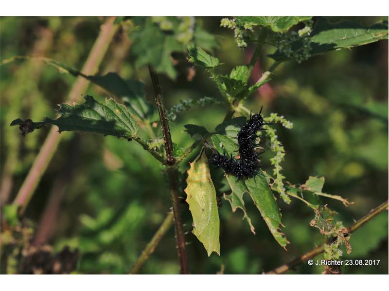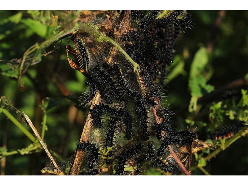 Tagpfauenauge (Aglais io (Linnaeus, 1758)), Larven in verschiedenen Entwicklungsstadien, bei Taubenheim, August 2016. (© Udo Lemke )( Bild vergrößern)