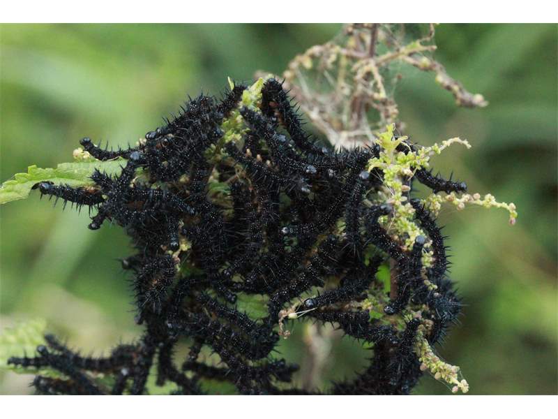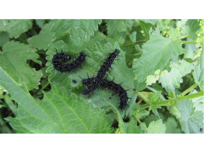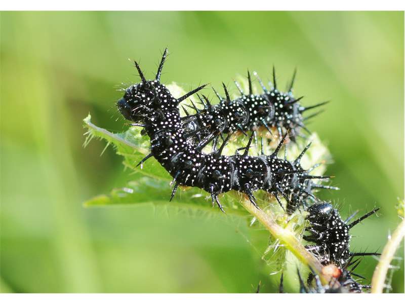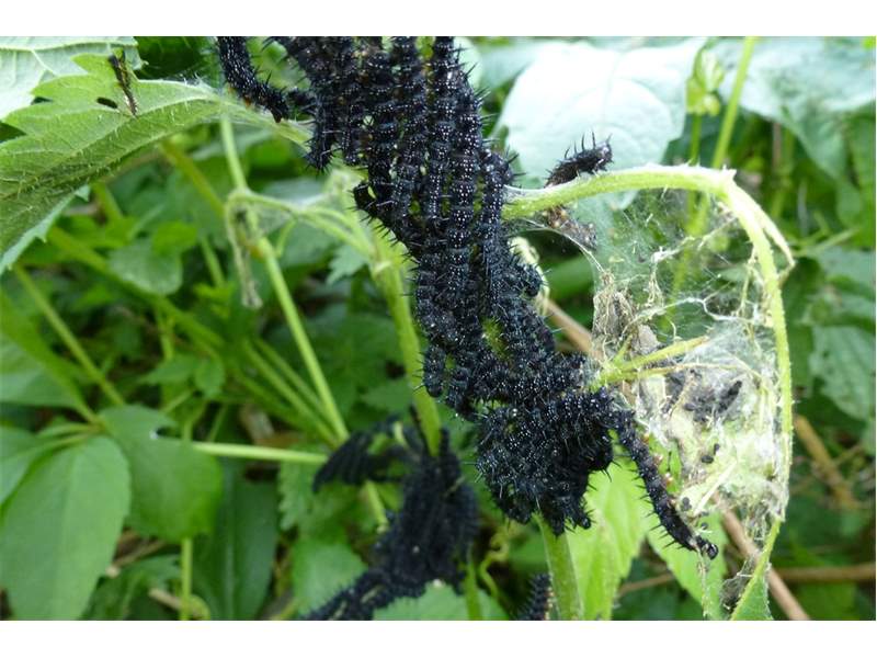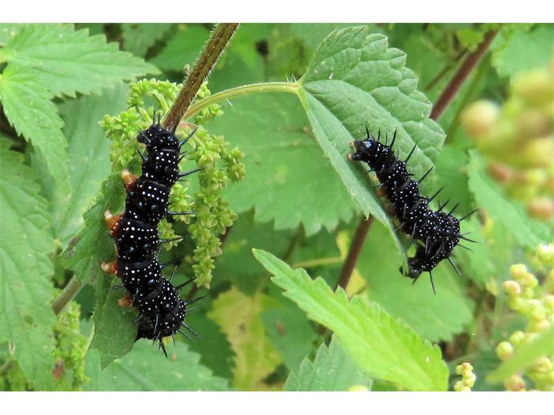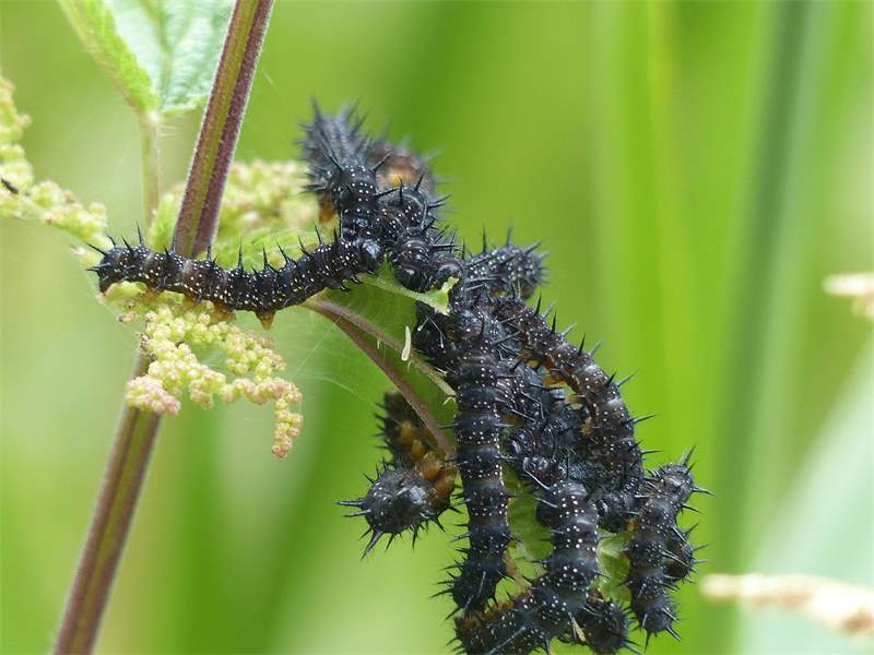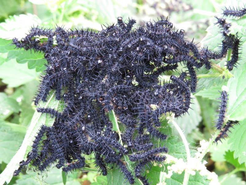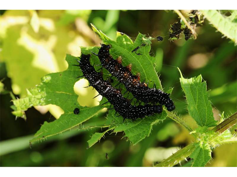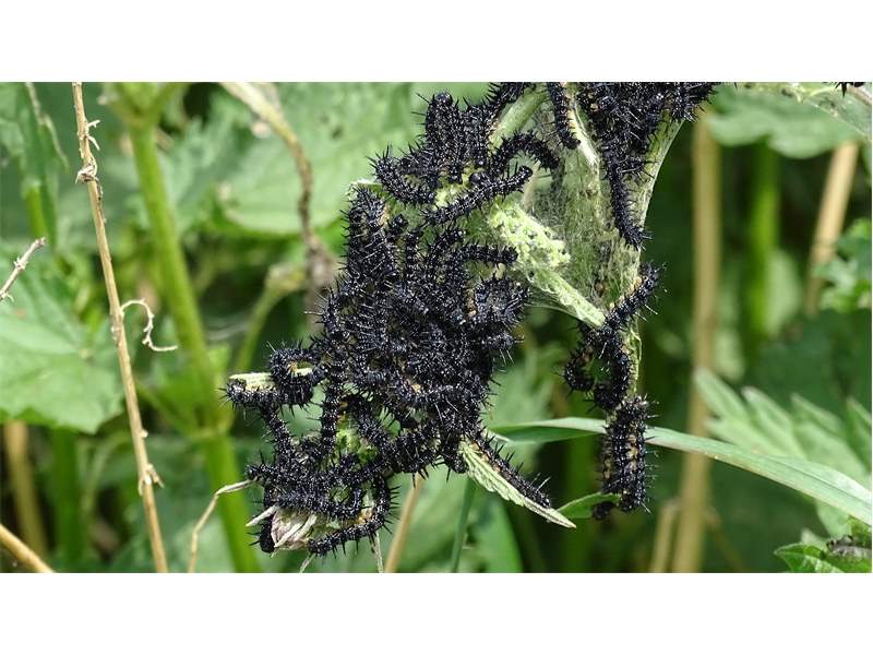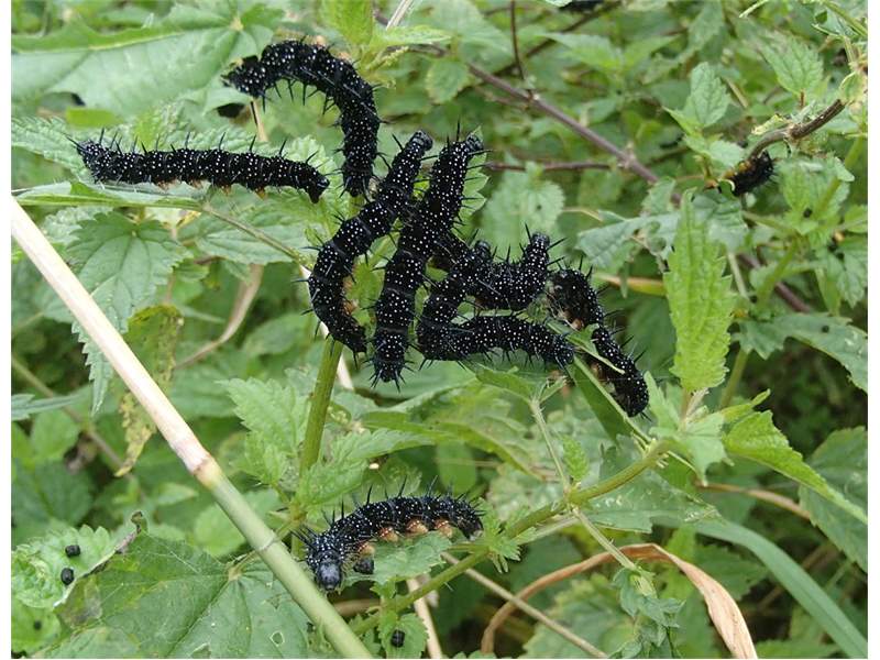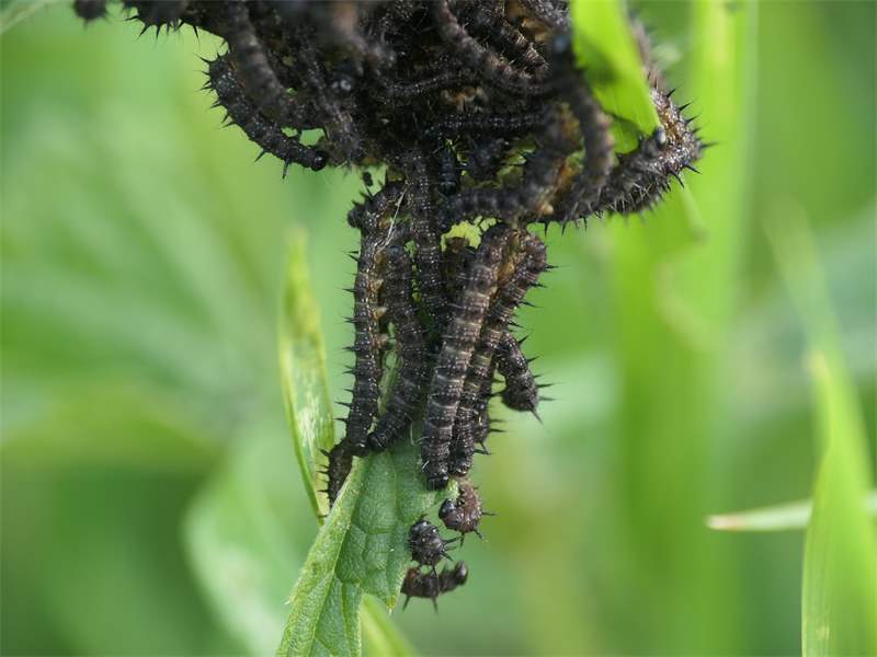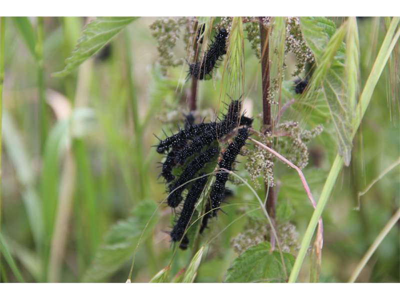 Tagpfauenauge (Aglais io (Linnaeus, 1758)), Larven in verschiedenen Entwicklungsstadien, bei Taubenheim, August 2016. (© Udo Lemke )( Bild vergrößern)