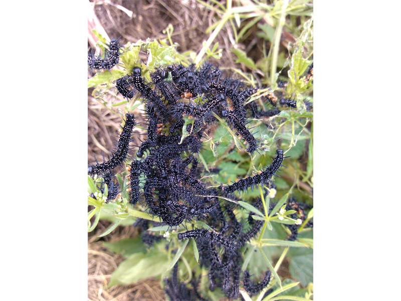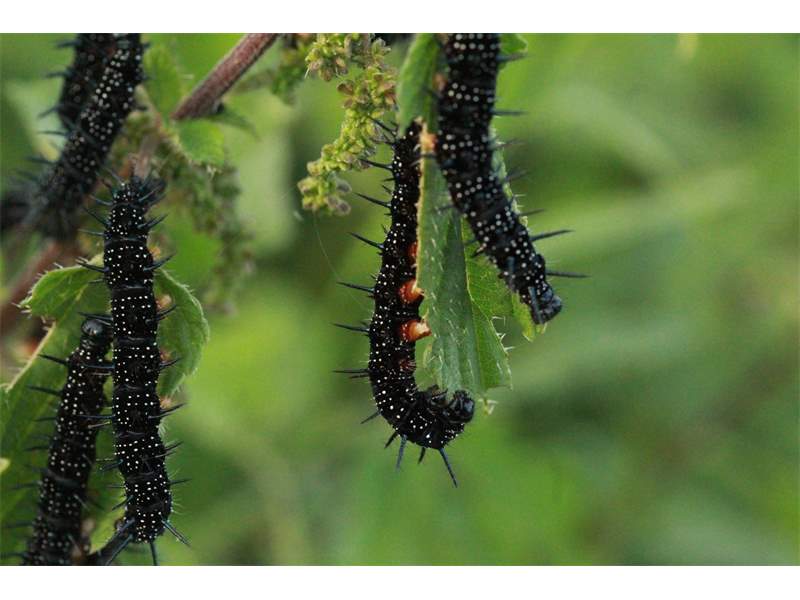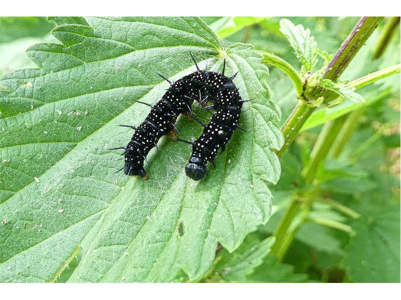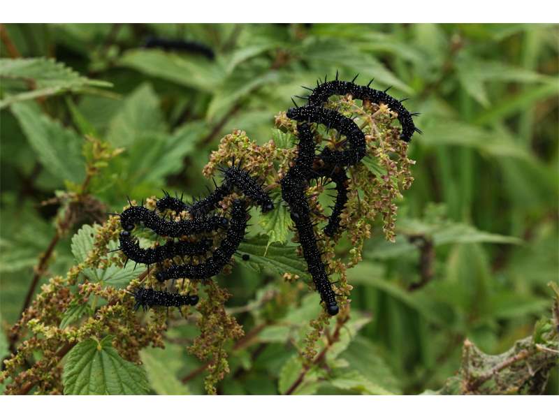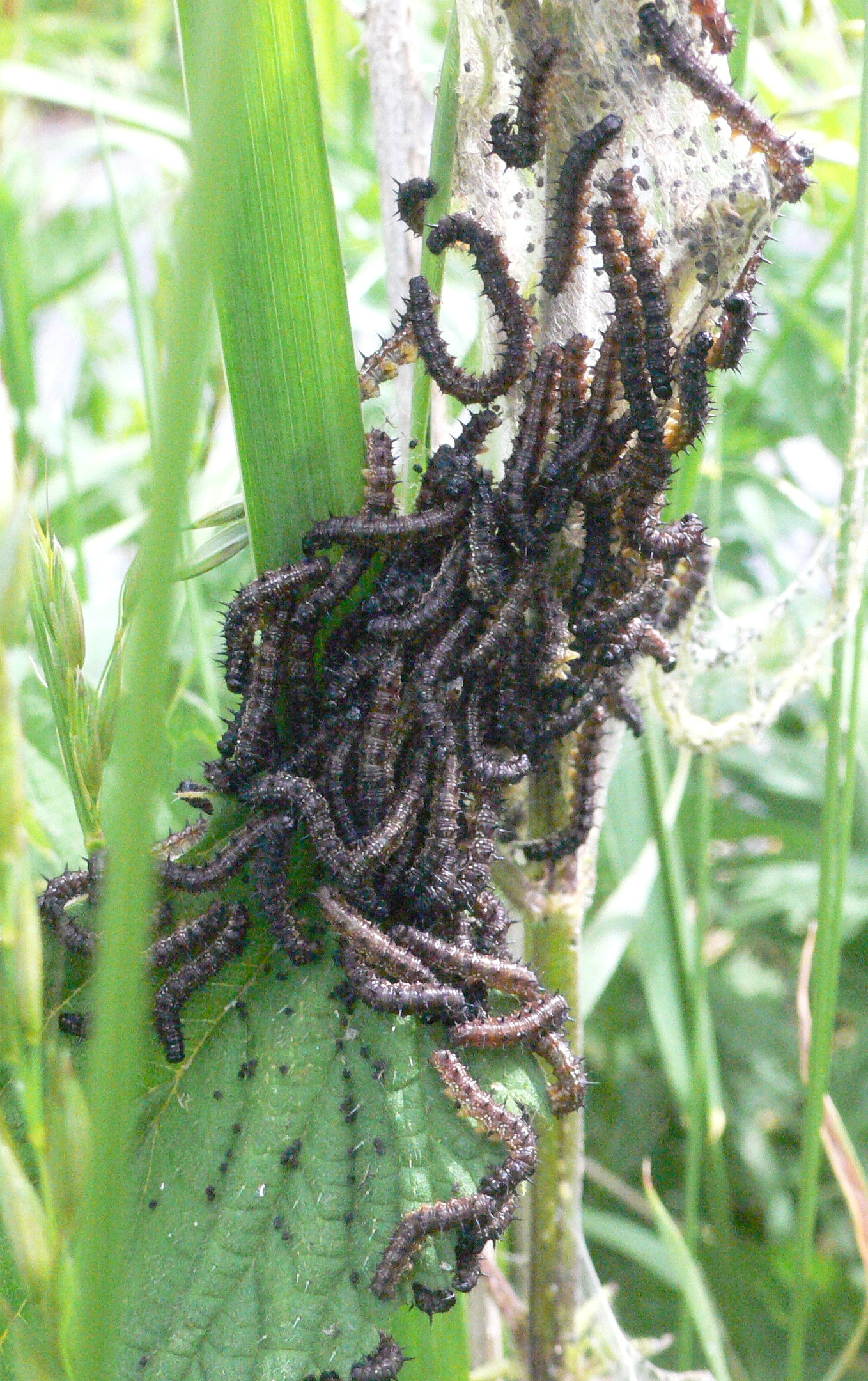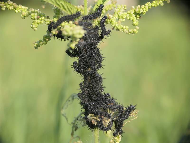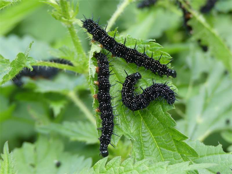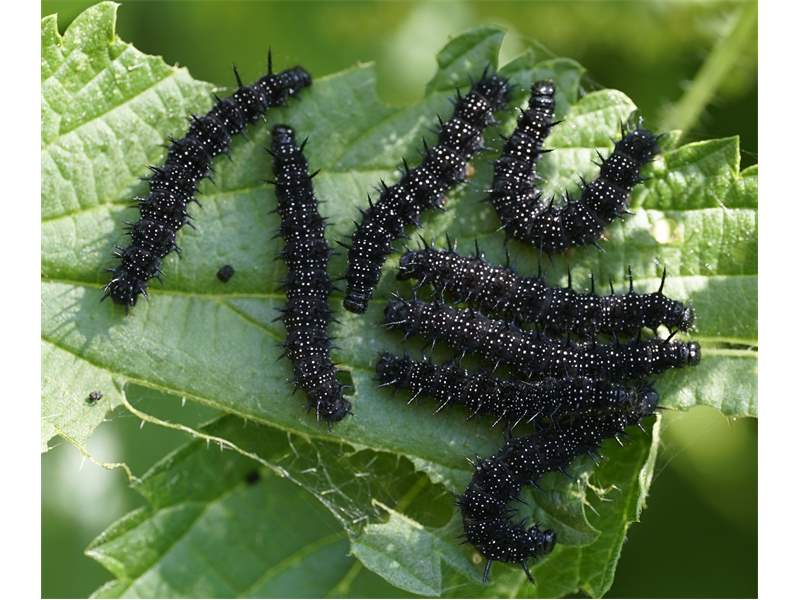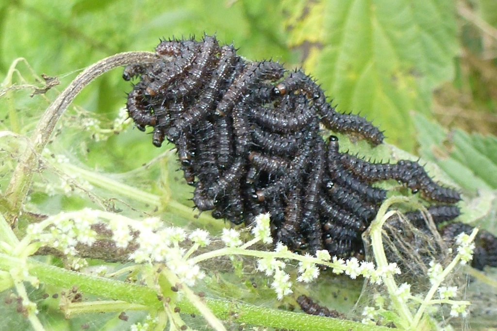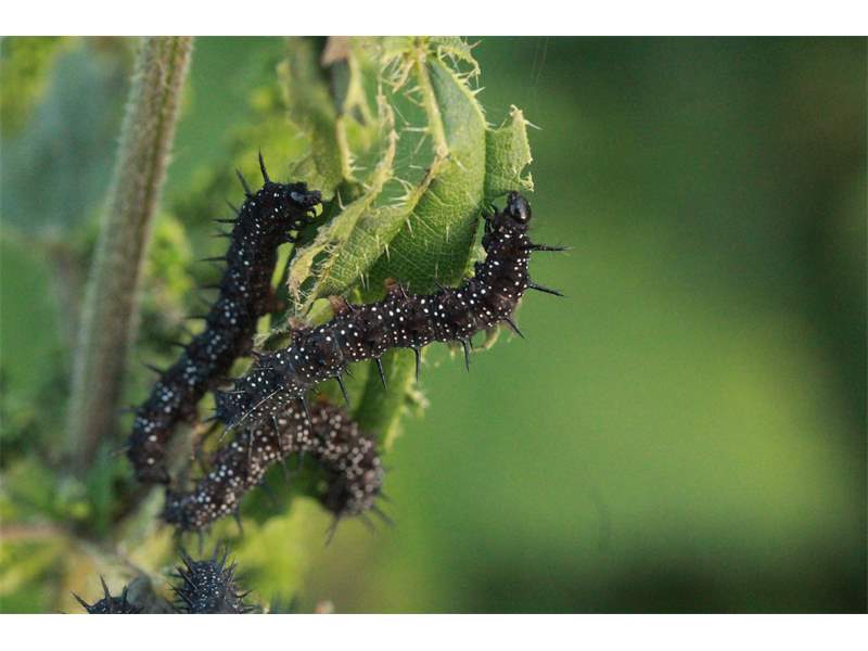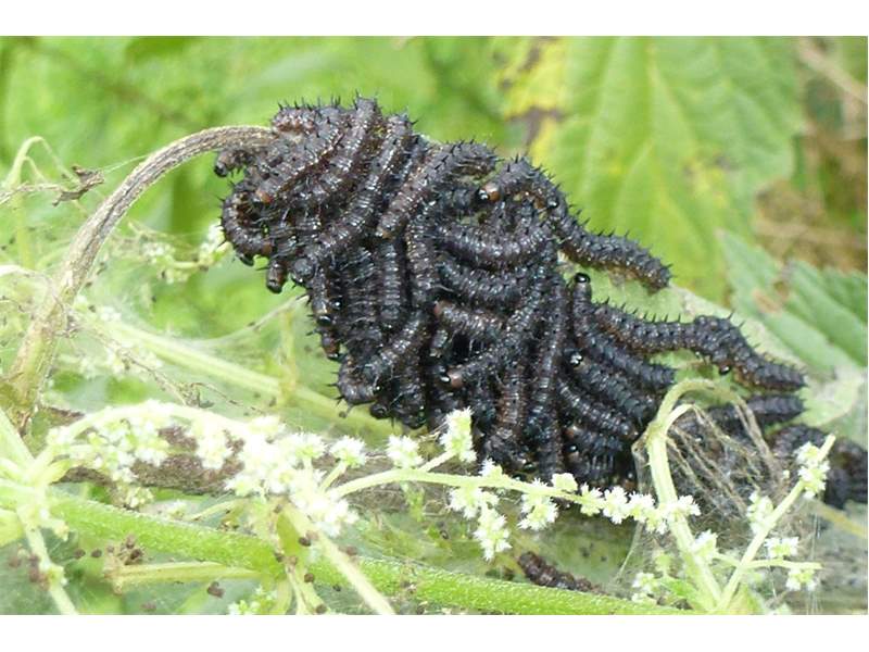 Tagpfauenauge (Aglais io (Linnaeus, 1758)), Larven in verschiedenen Entwicklungsstadien, bei Taubenheim, August 2016. (© Udo Lemke )( Bild vergrößern)