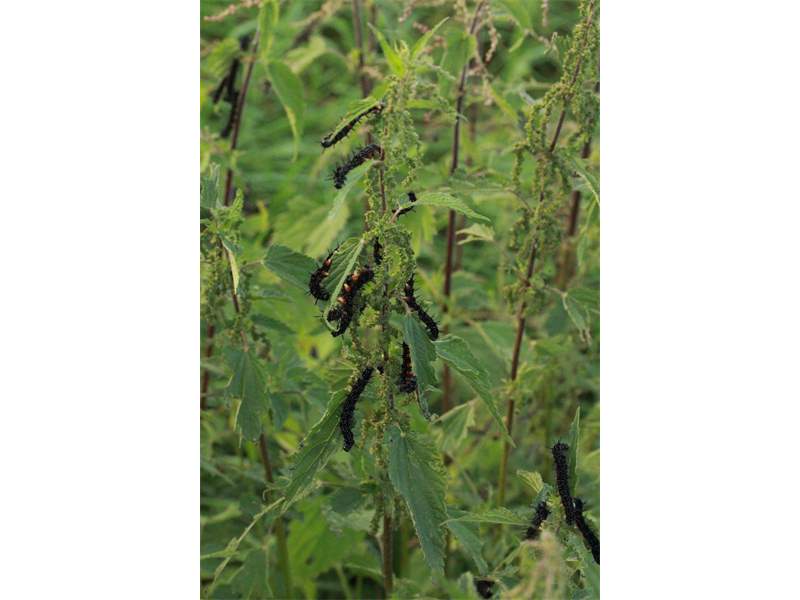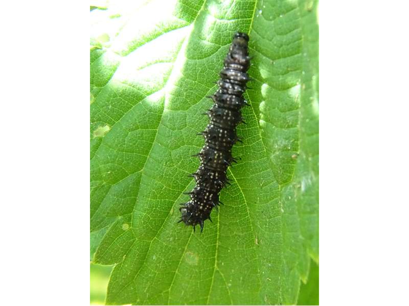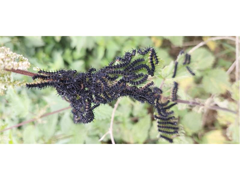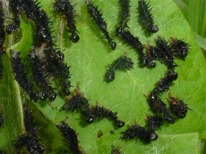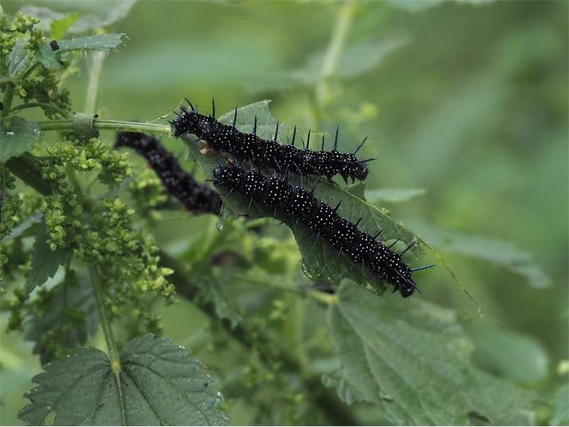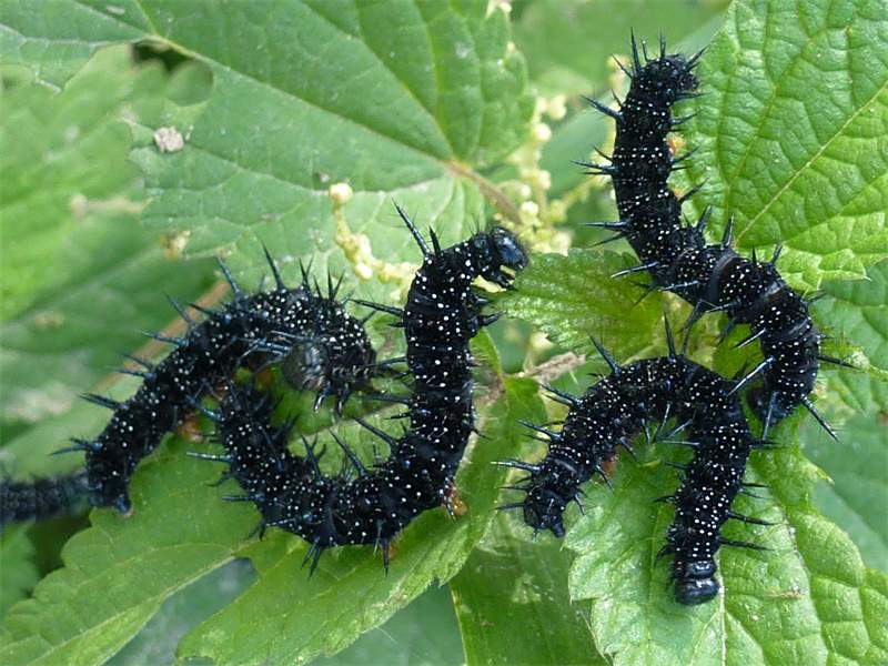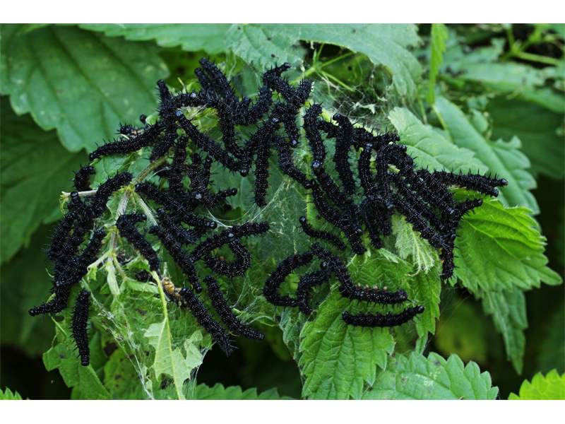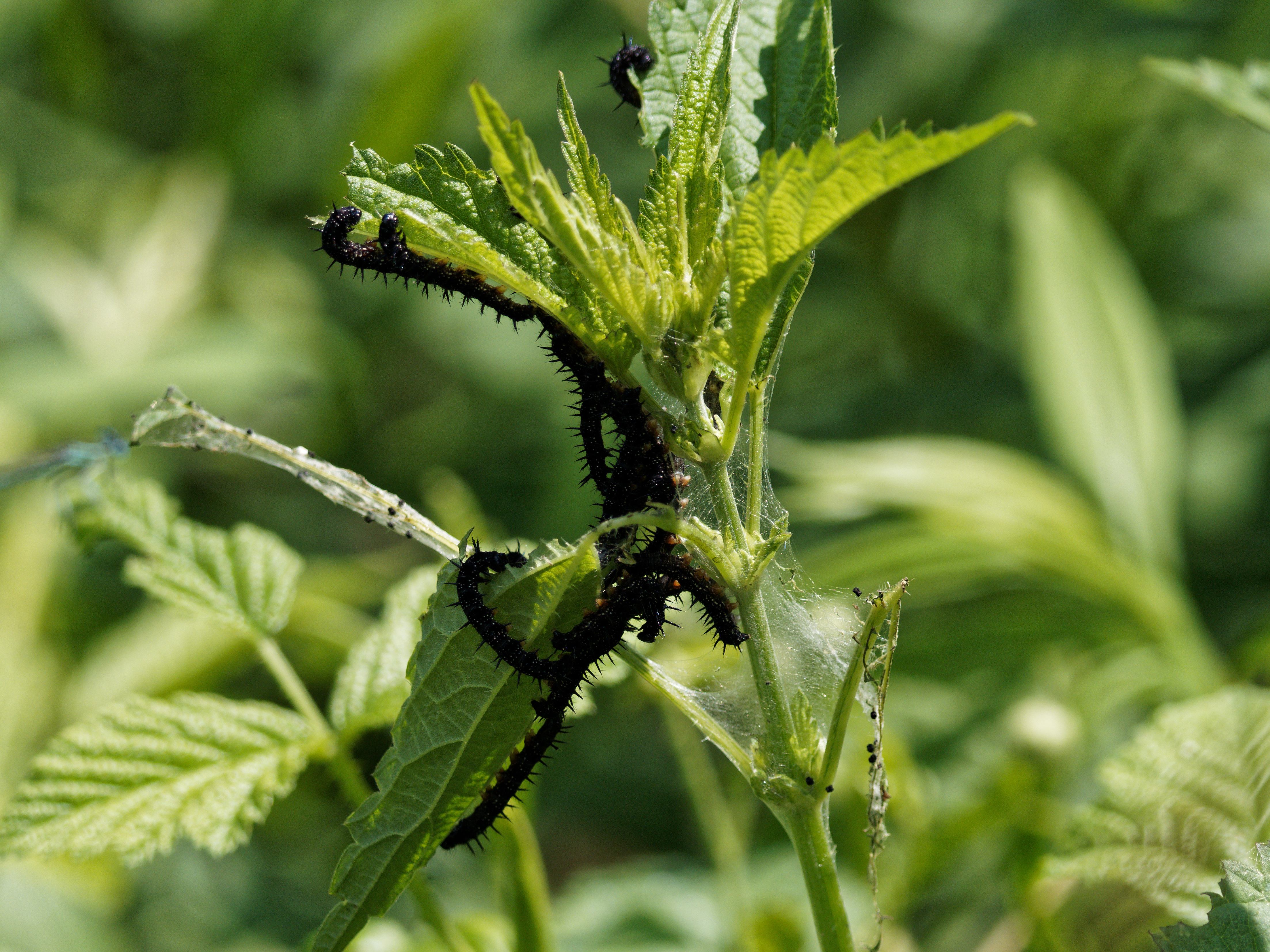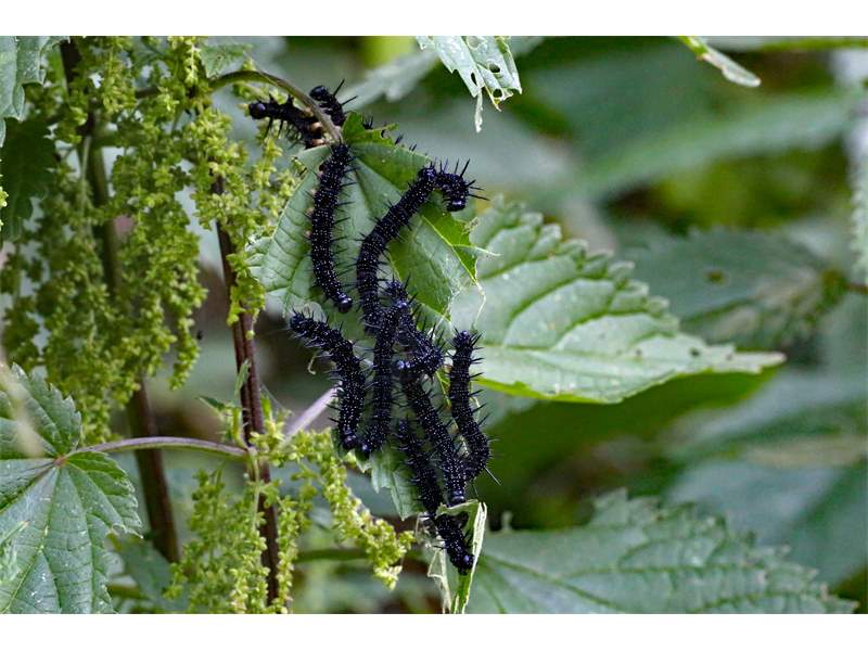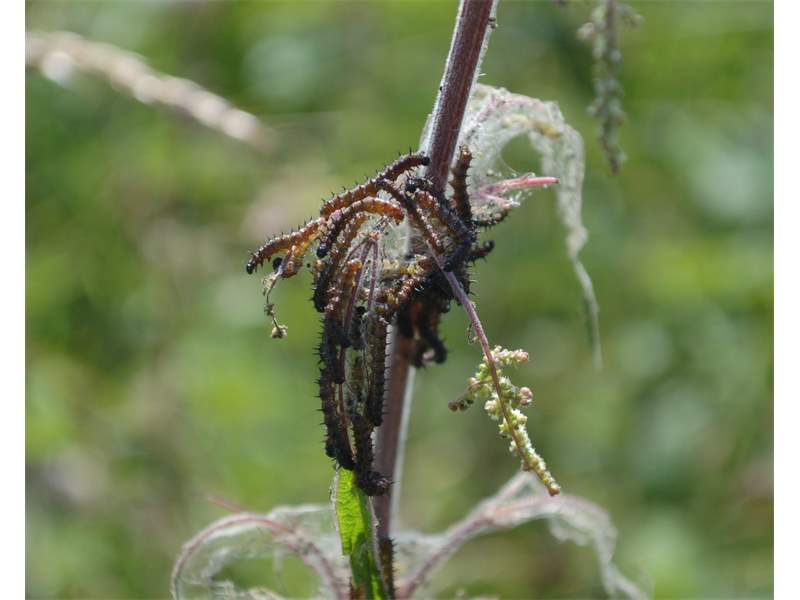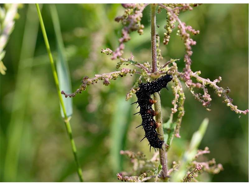 Tagpfauenauge (Aglais io (Linnaeus, 1758)), Larven in verschiedenen Entwicklungsstadien, bei Taubenheim, August 2016. (© Udo Lemke )( Bild vergrößern)