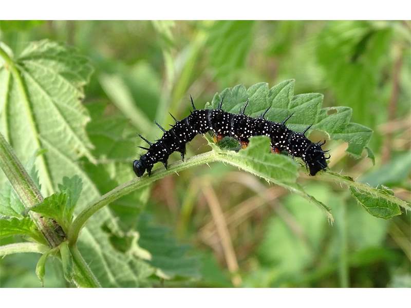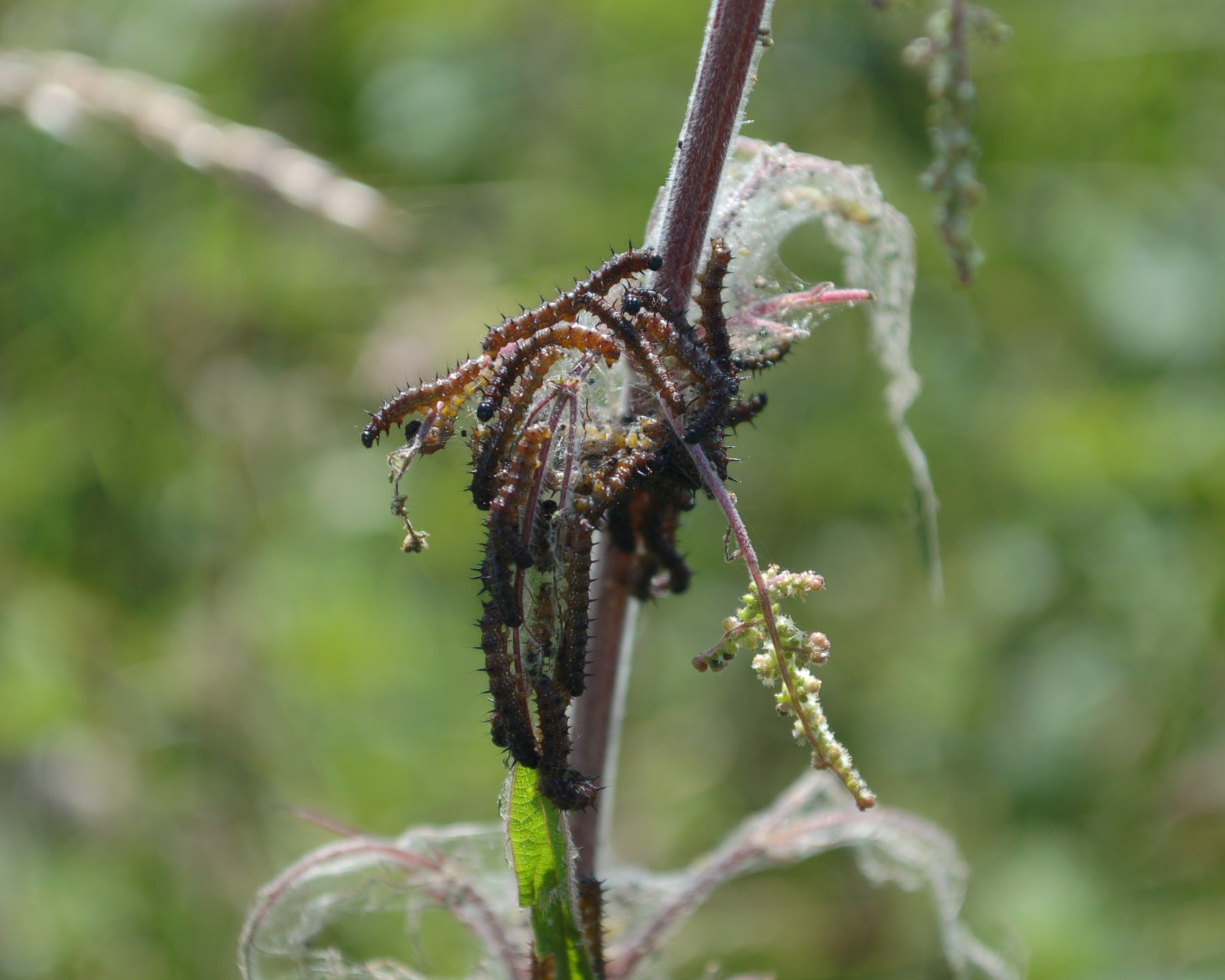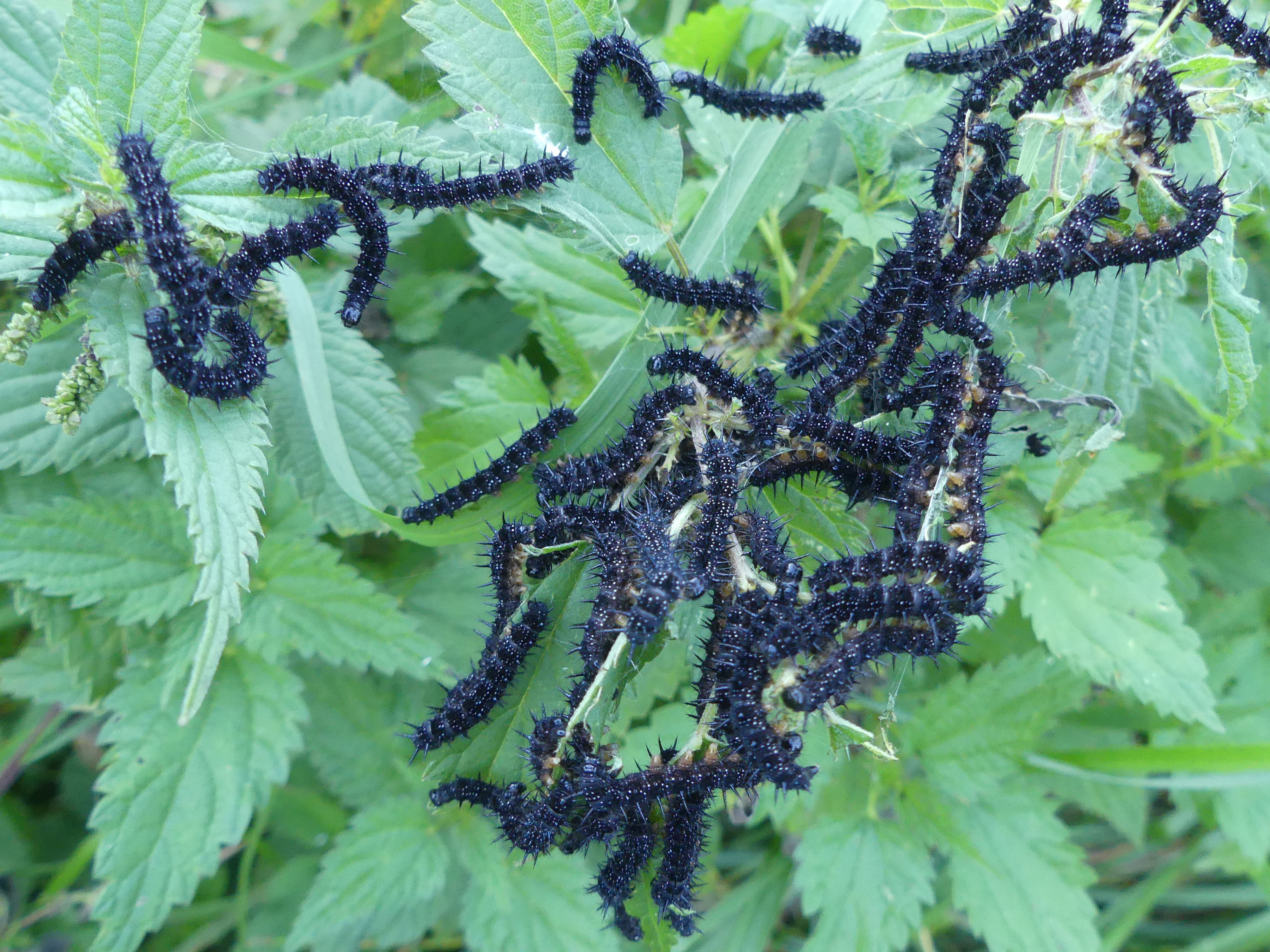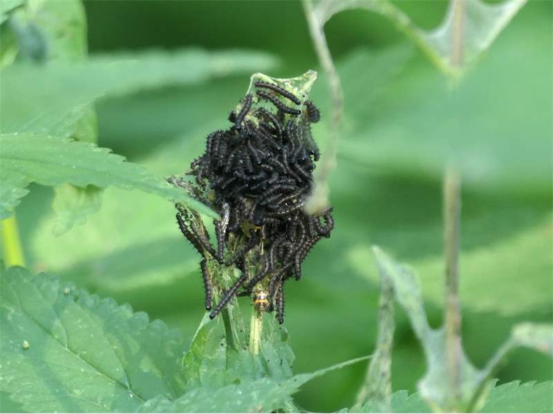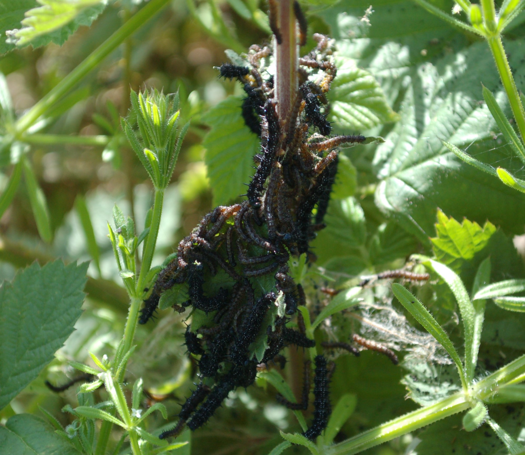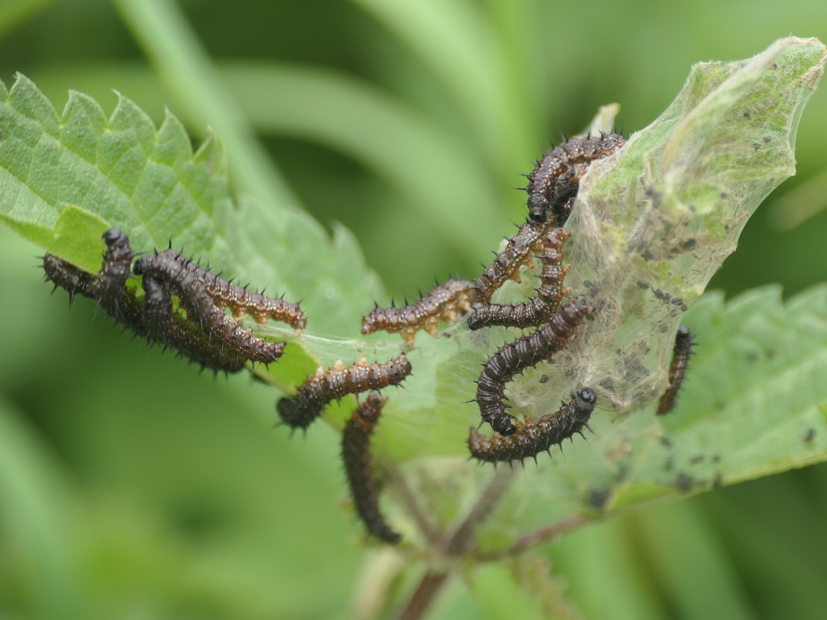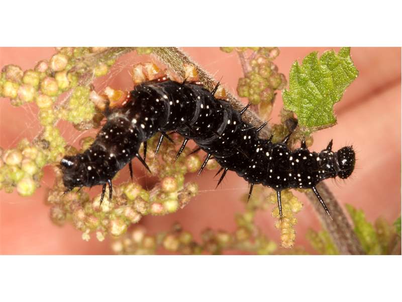 Tagpfauenauge (Aglais io (Linnaeus, 1758)), Larven in verschiedenen Entwicklungsstadien, bei Taubenheim, August 2016. (© Udo Lemke )( Bild vergrößern)