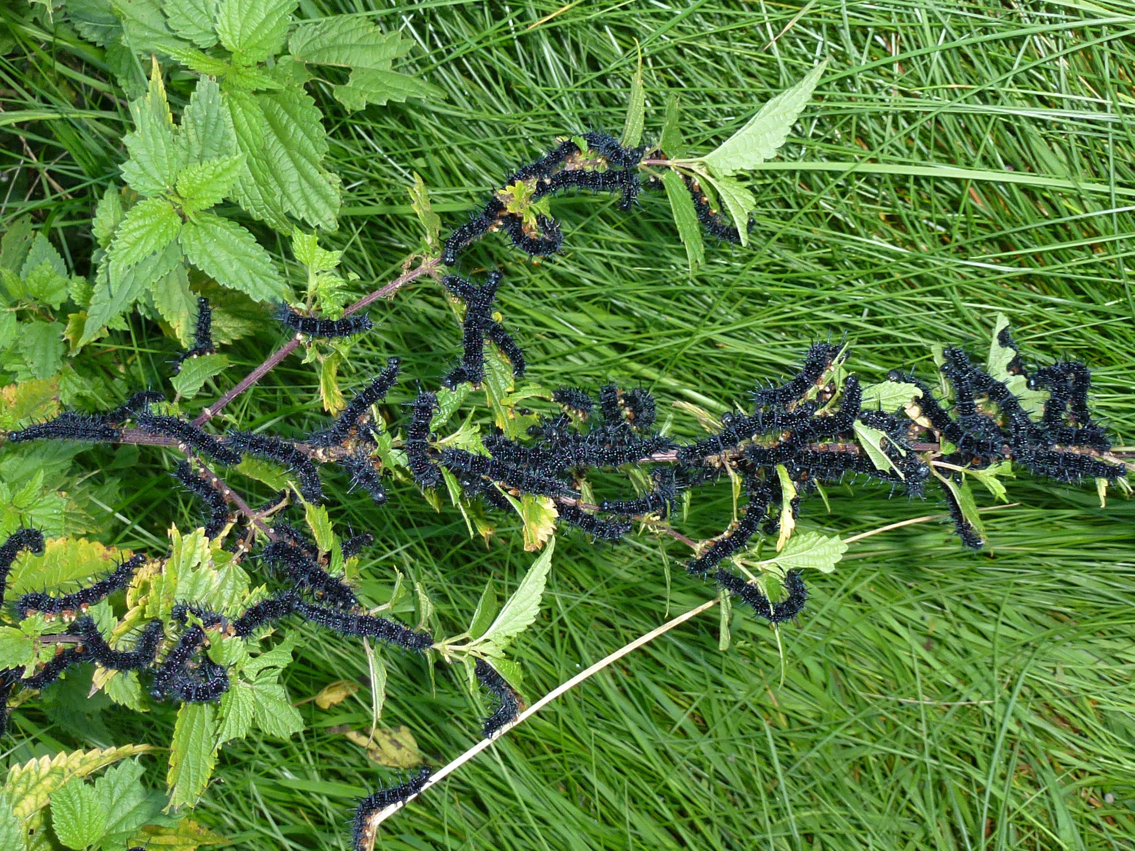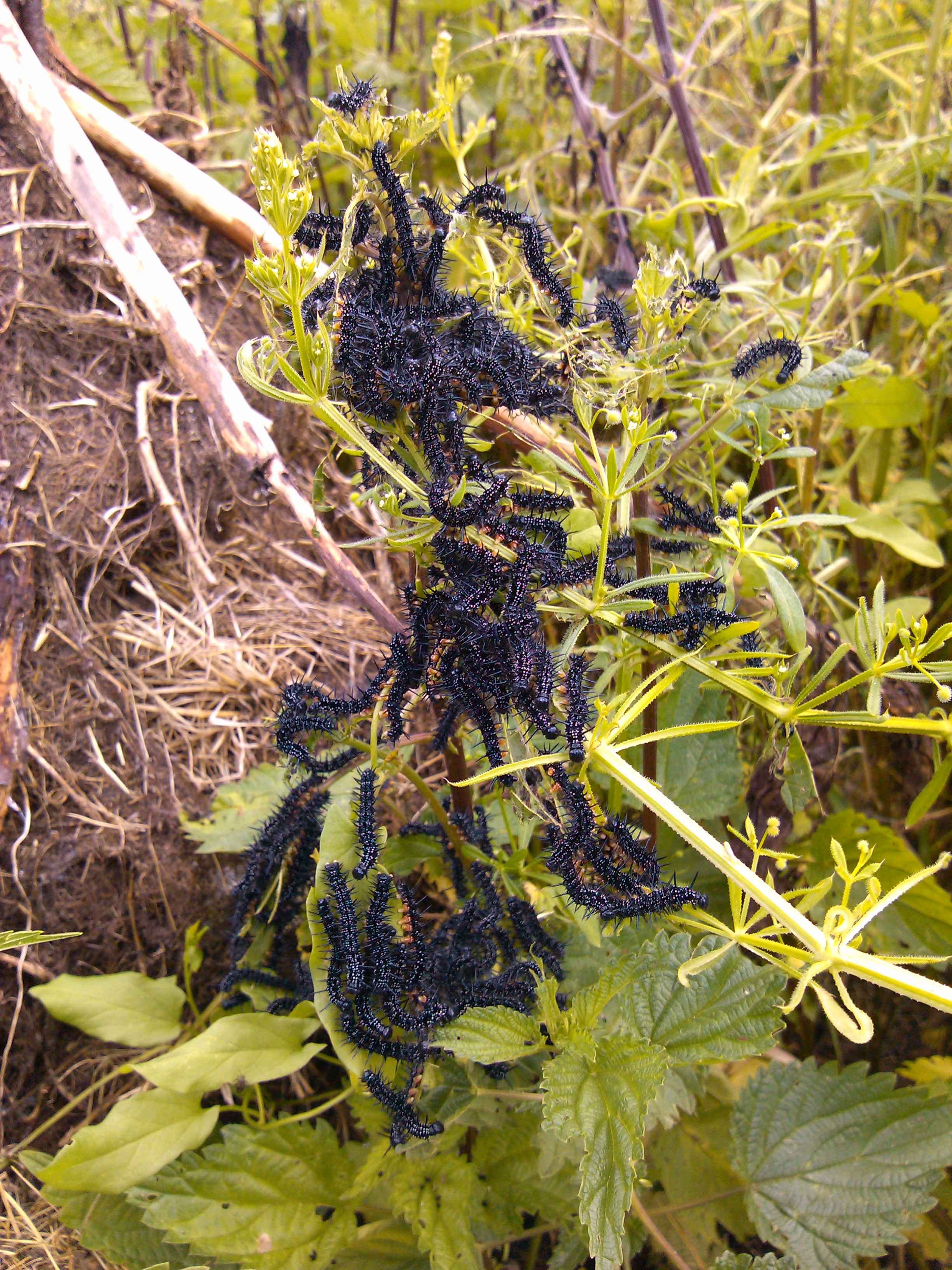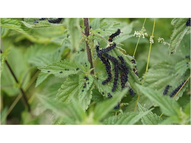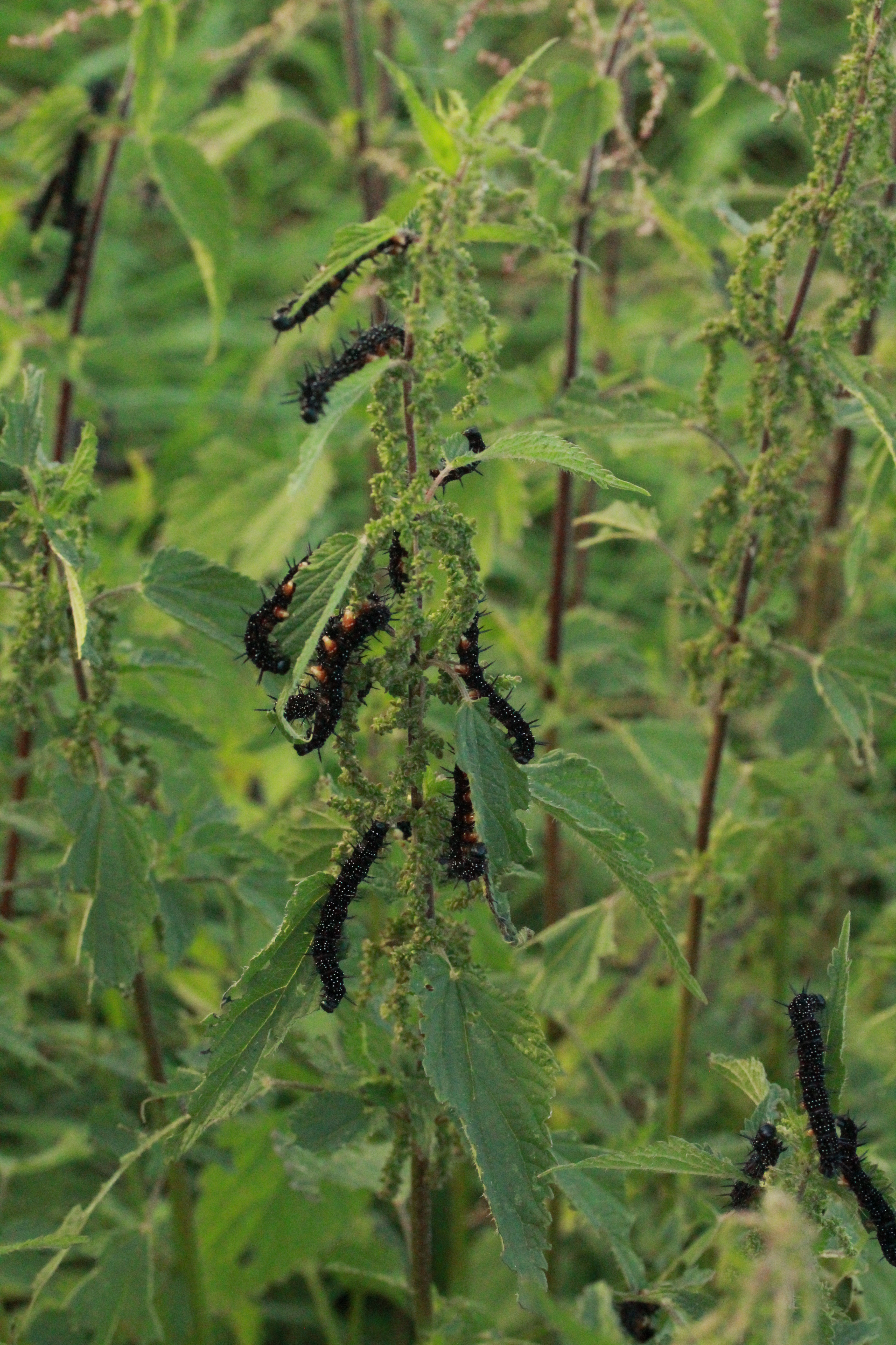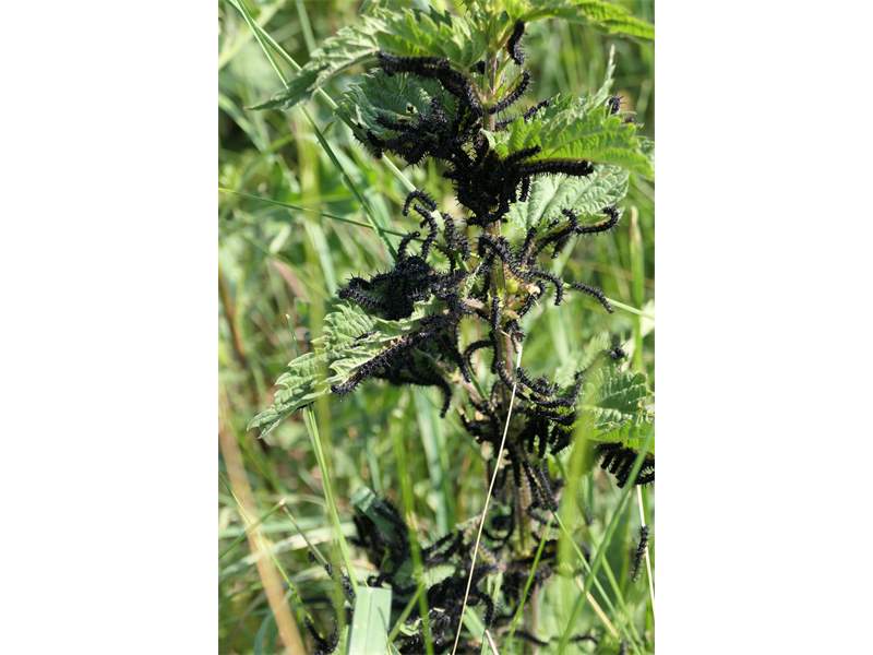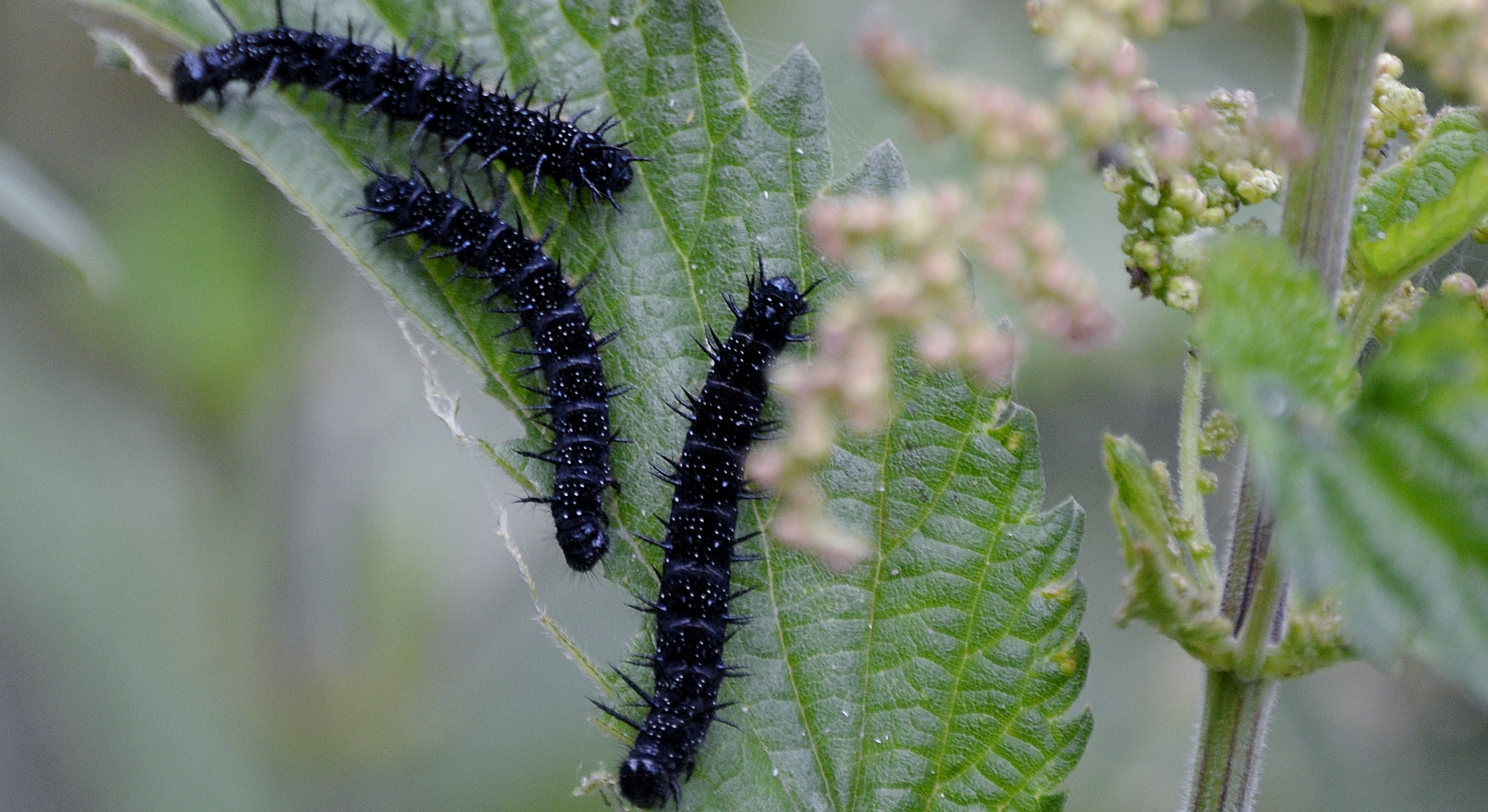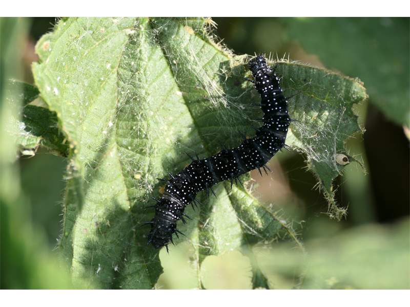 Tagpfauenauge (Aglais io (Linnaeus, 1758)), Larven in verschiedenen Entwicklungsstadien, bei Taubenheim, August 2016. (© Udo Lemke )( Bild vergrößern)