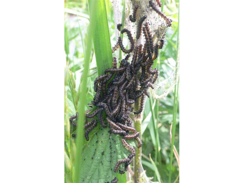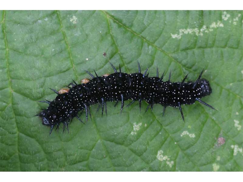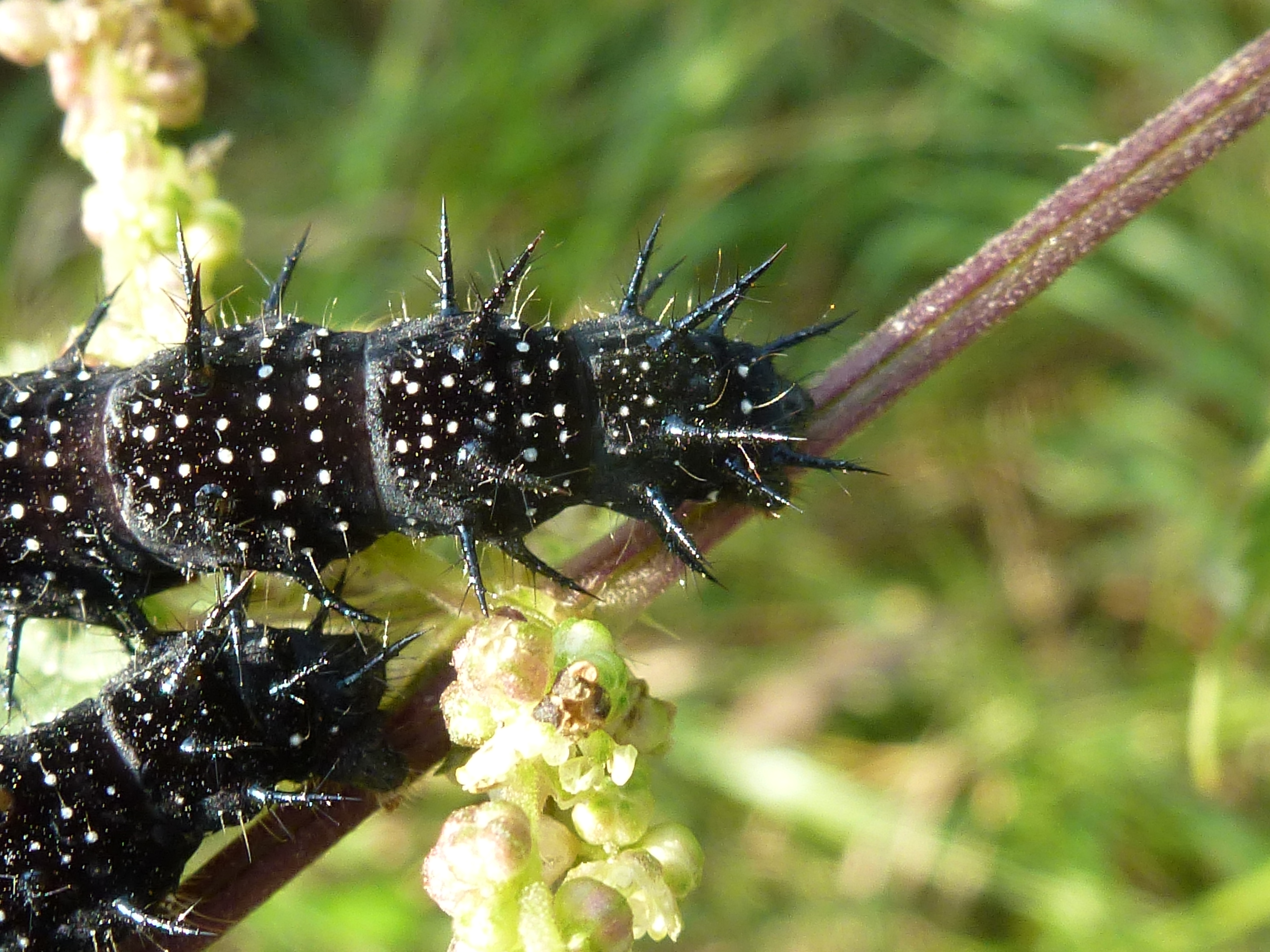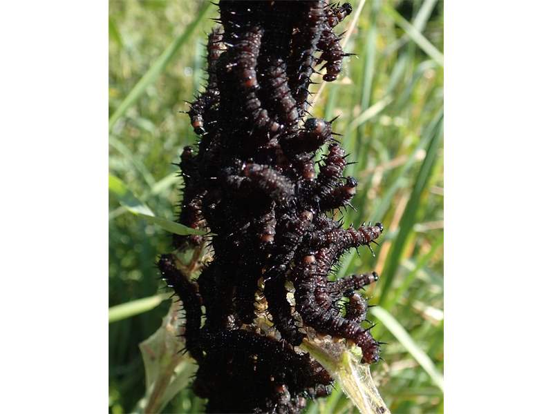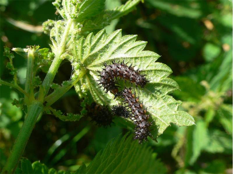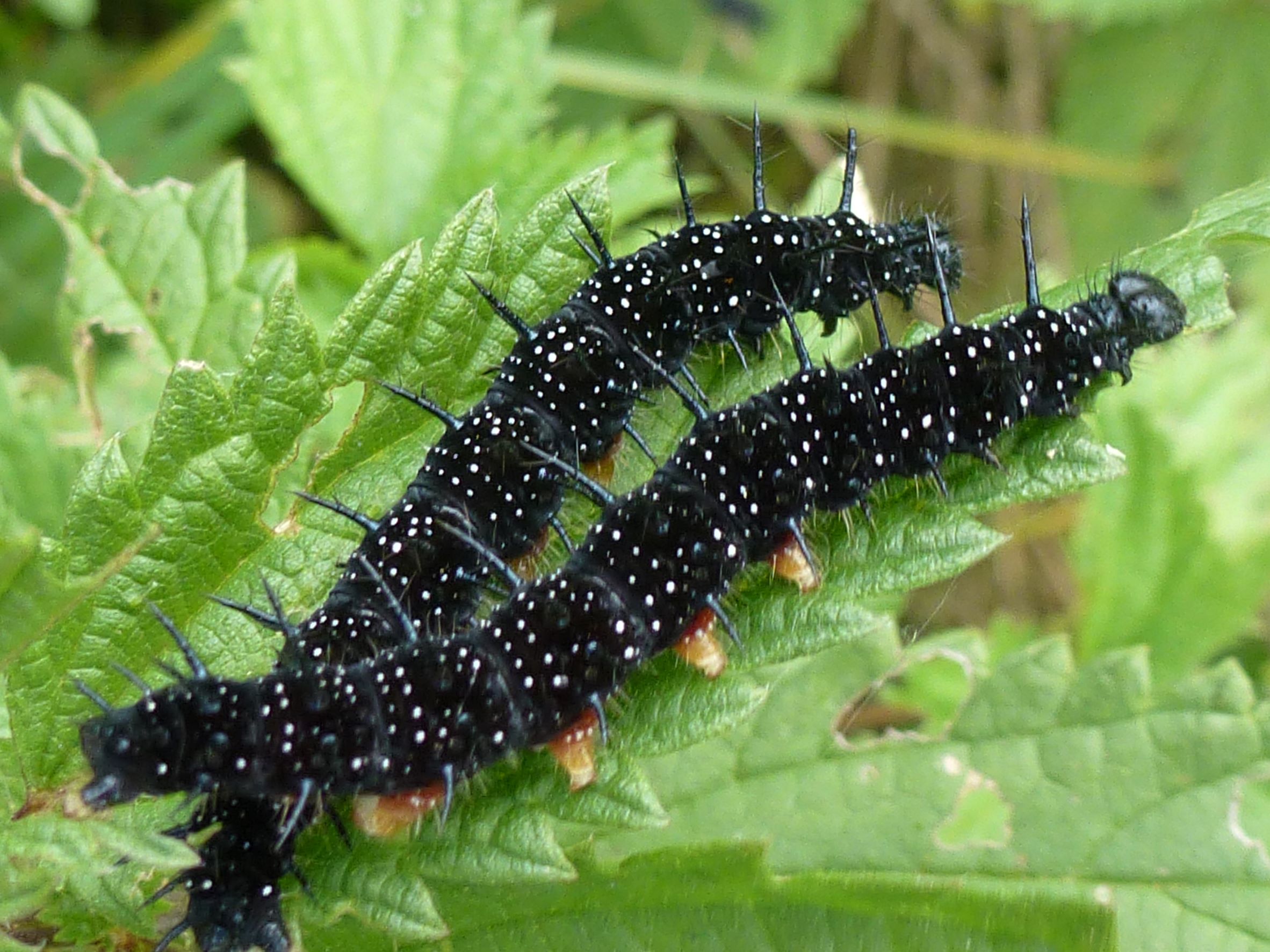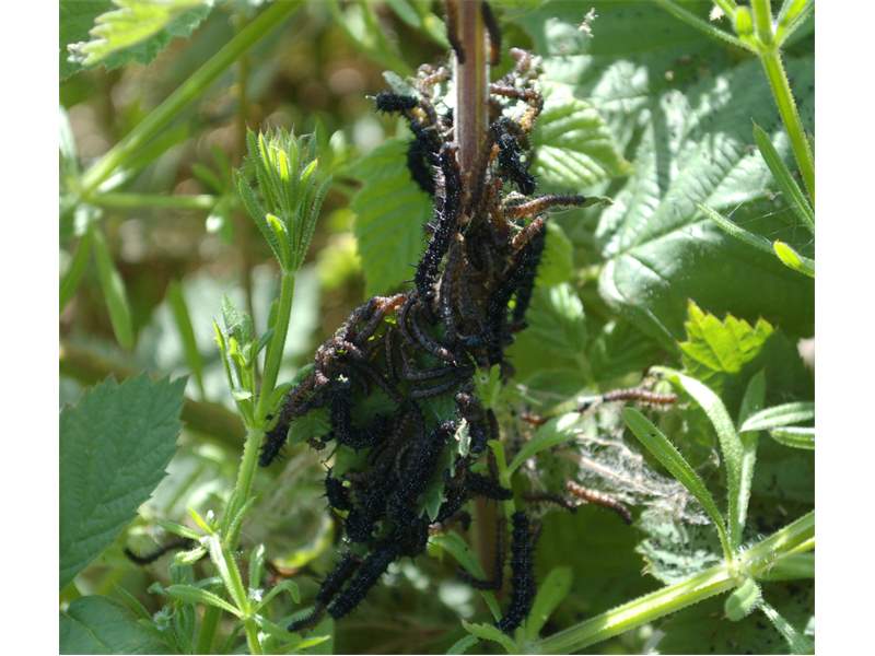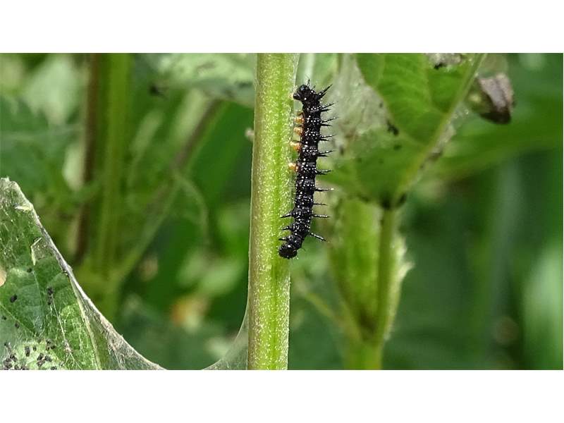 Tagpfauenauge (Aglais io (Linnaeus, 1758)), Larven in verschiedenen Entwicklungsstadien, bei Taubenheim, August 2016. (© Udo Lemke )( Bild vergrößern)