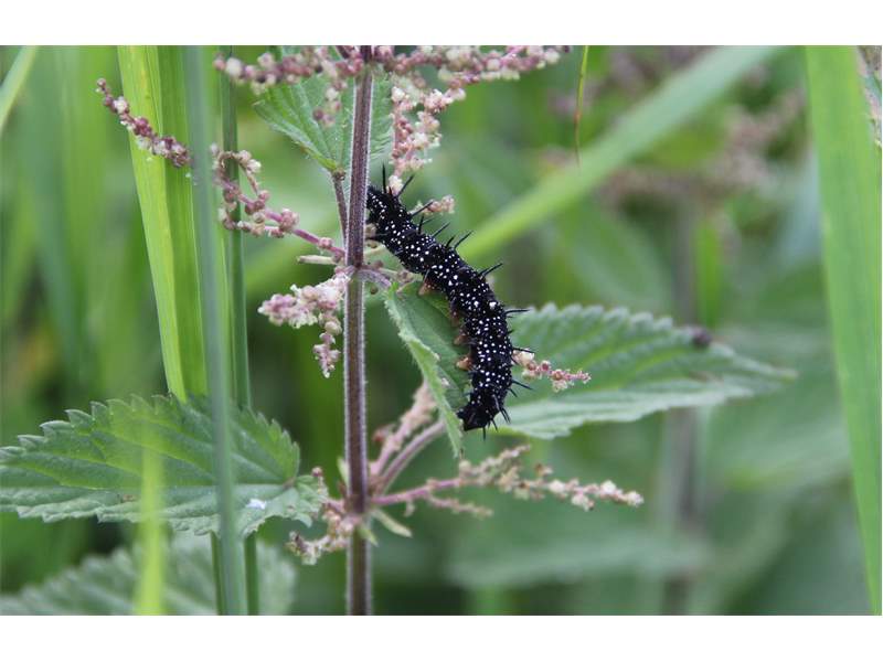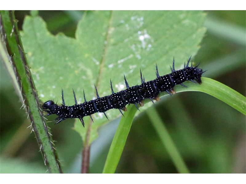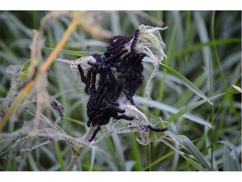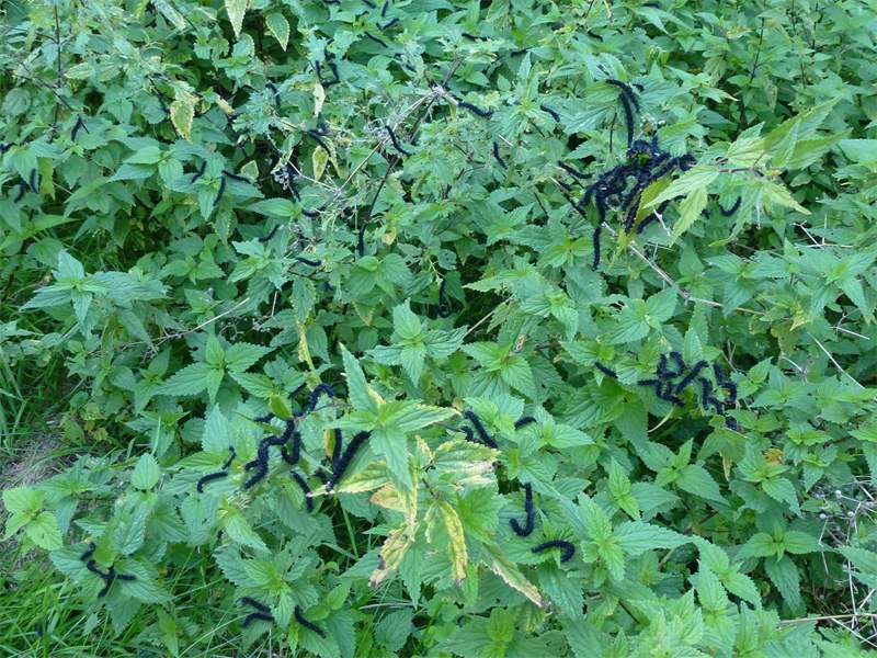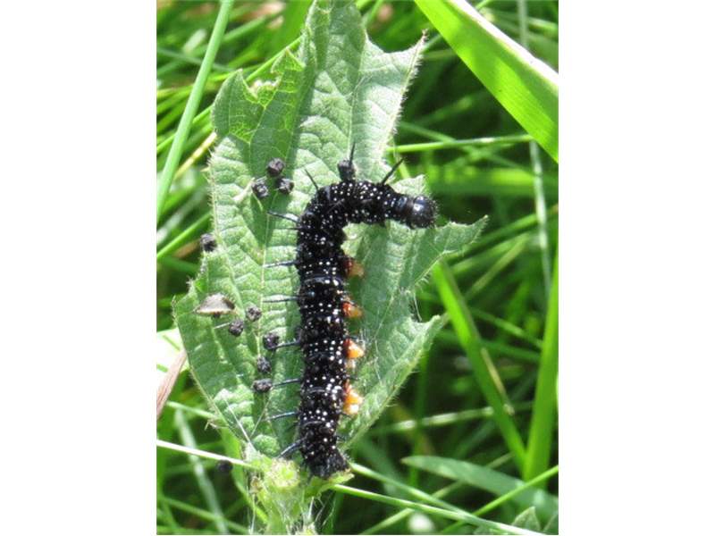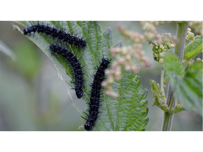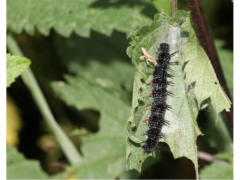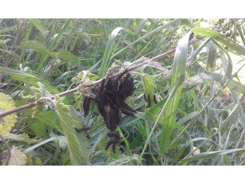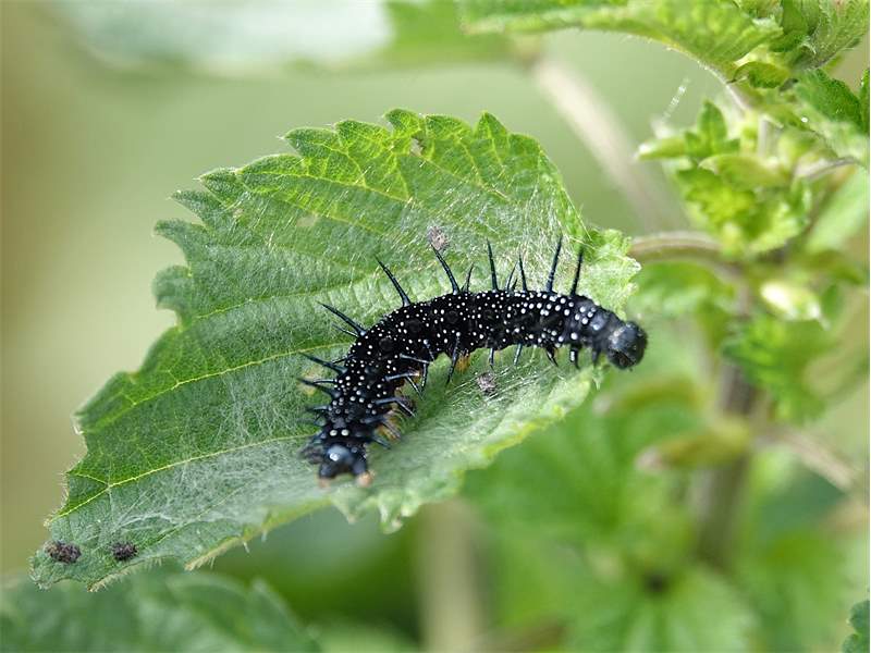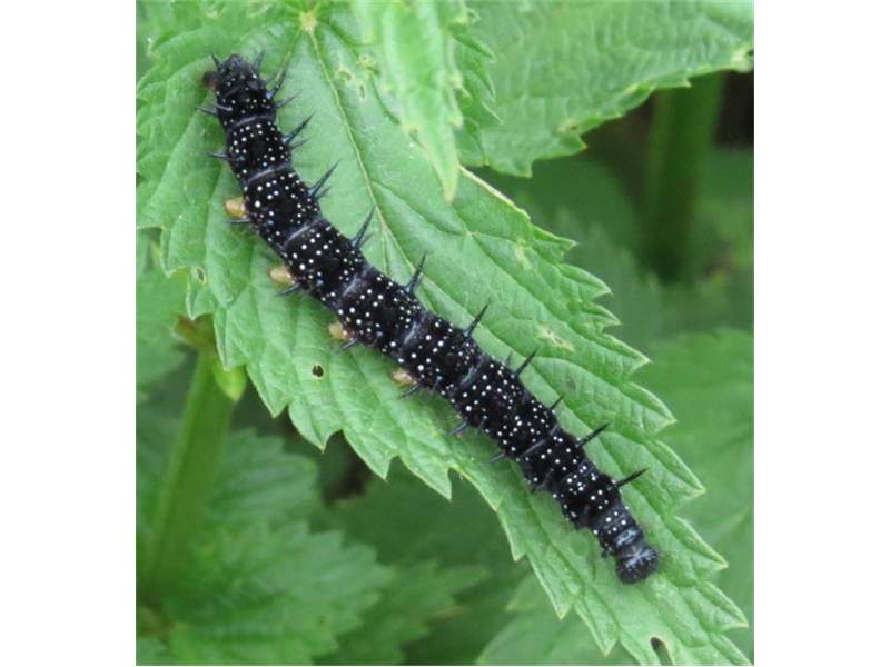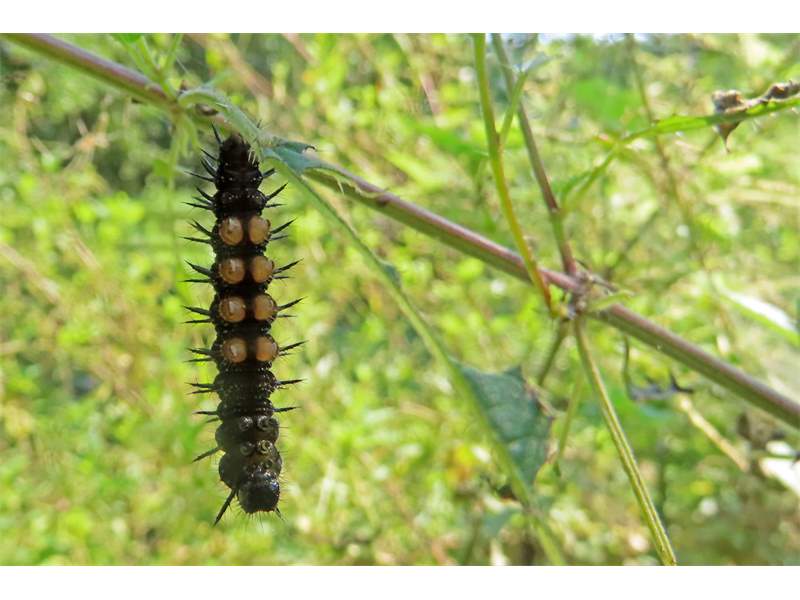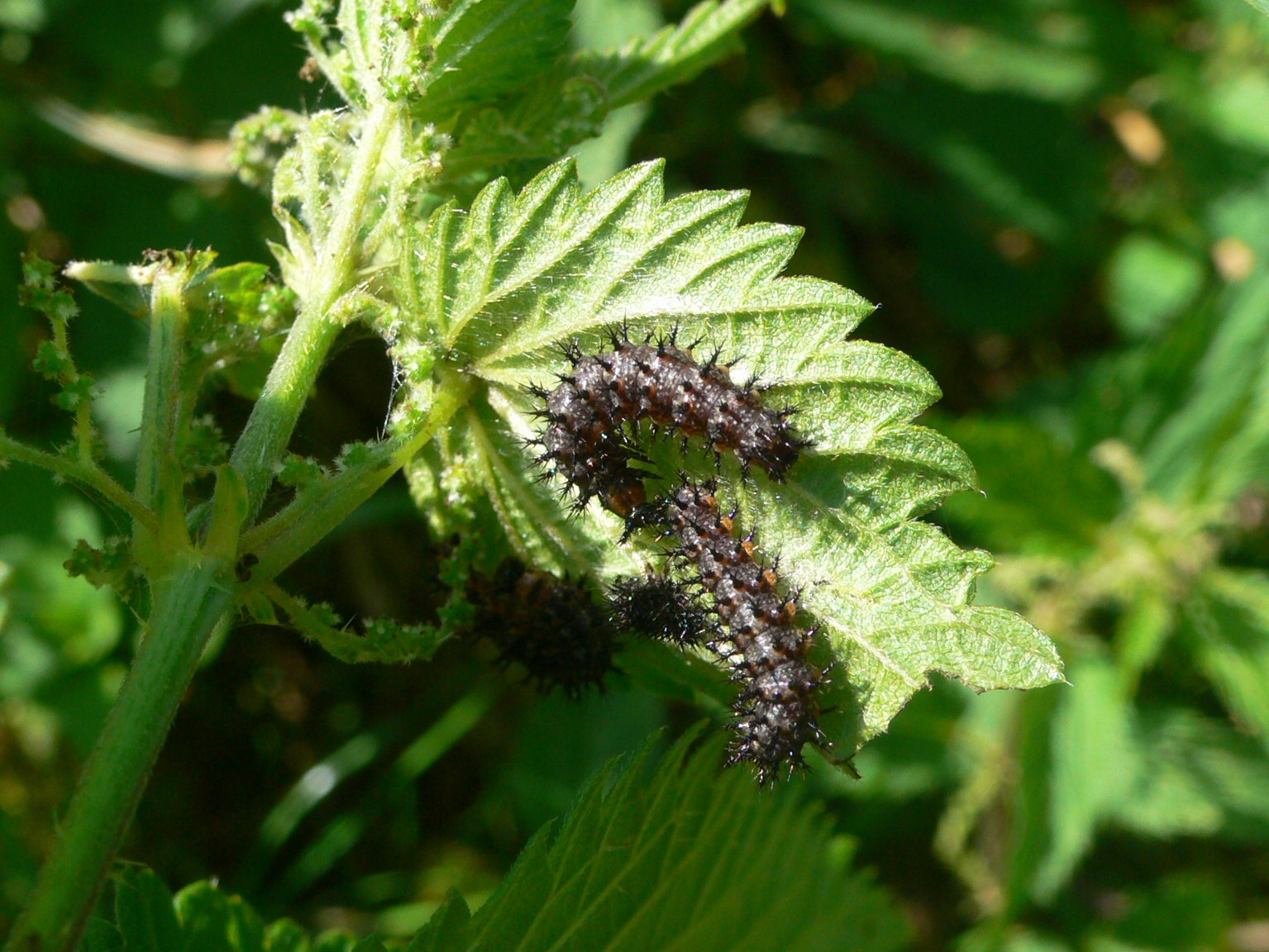Tagpfauenauge (Aglais io (Linnaeus, 1758)), Larven in verschiedenen Entwicklungsstadien, bei Taubenheim, August 2016. (© Udo Lemke )( Bild vergrößern)