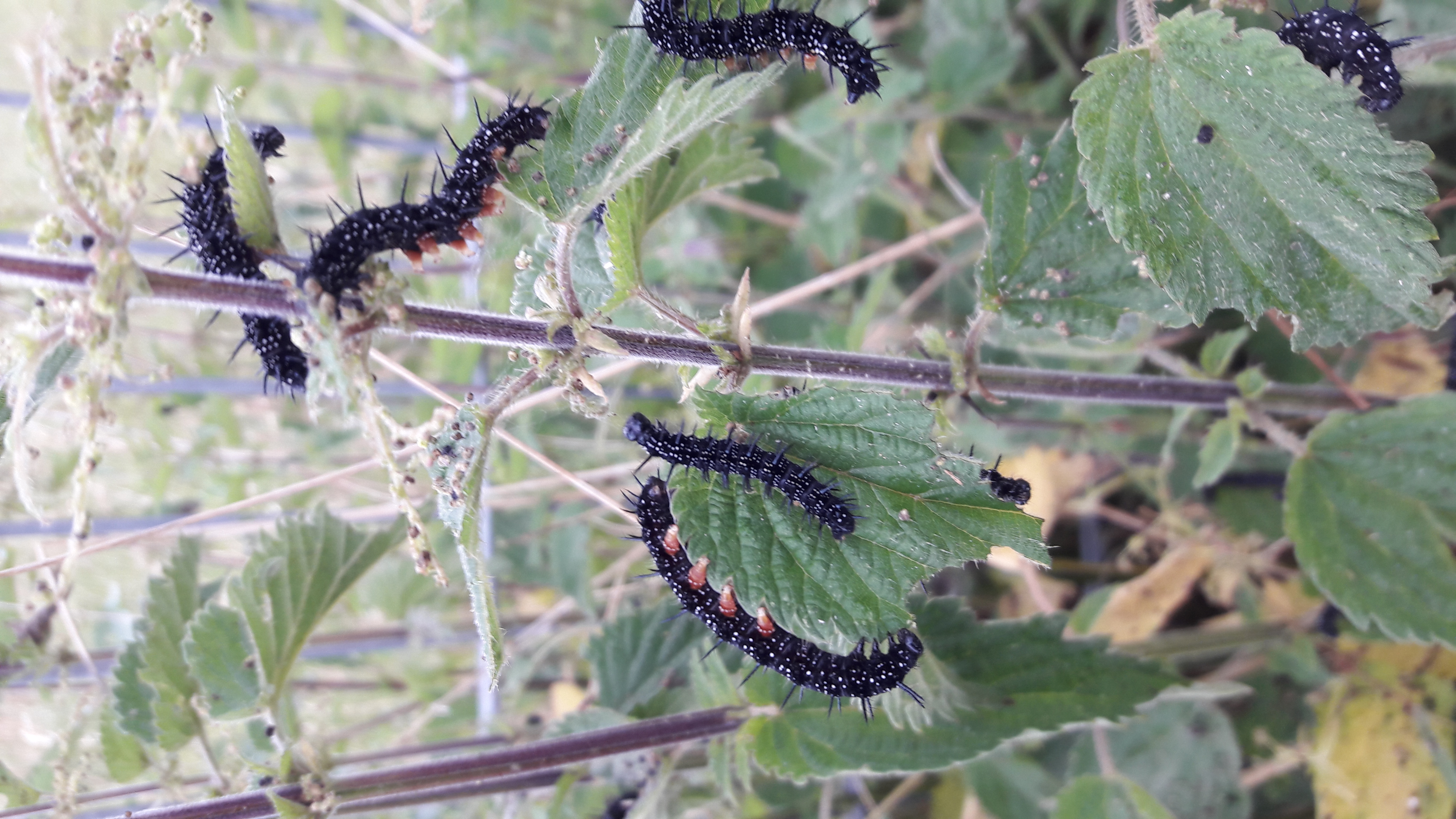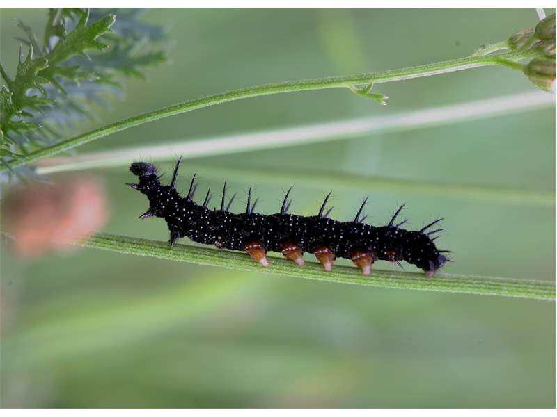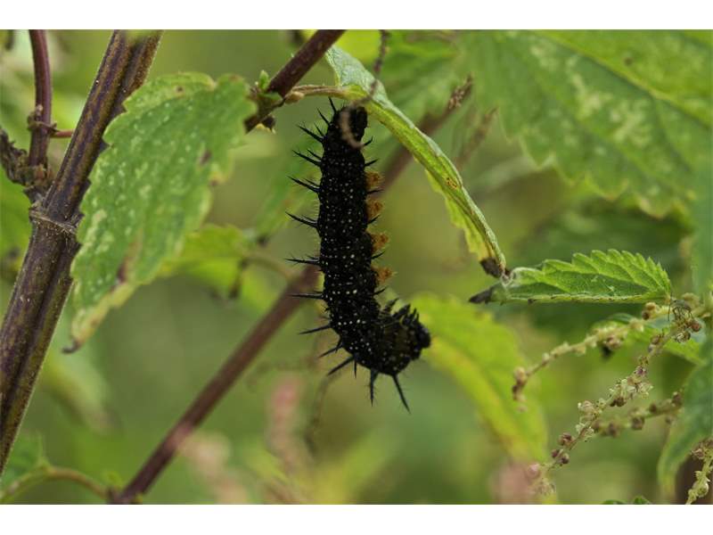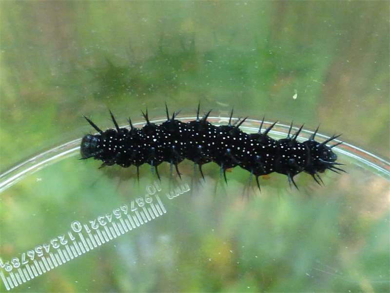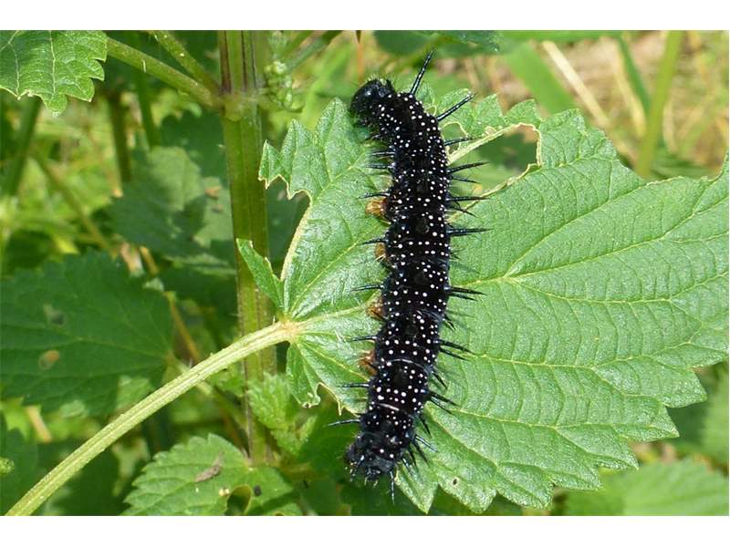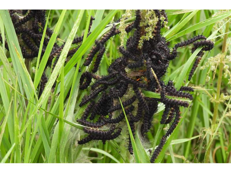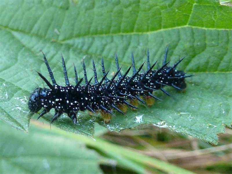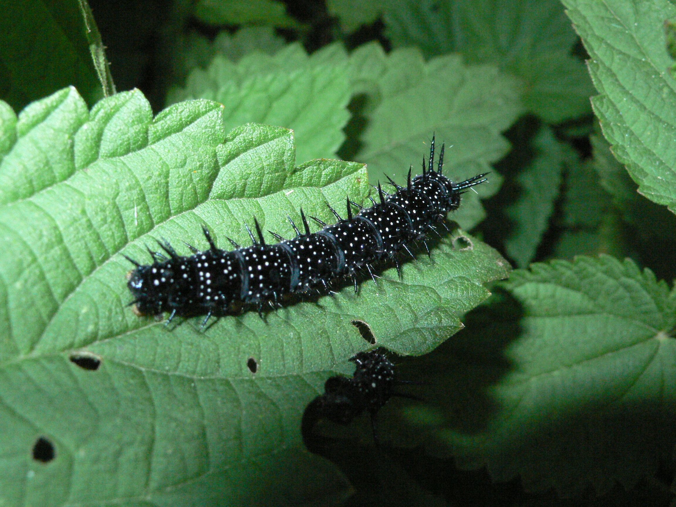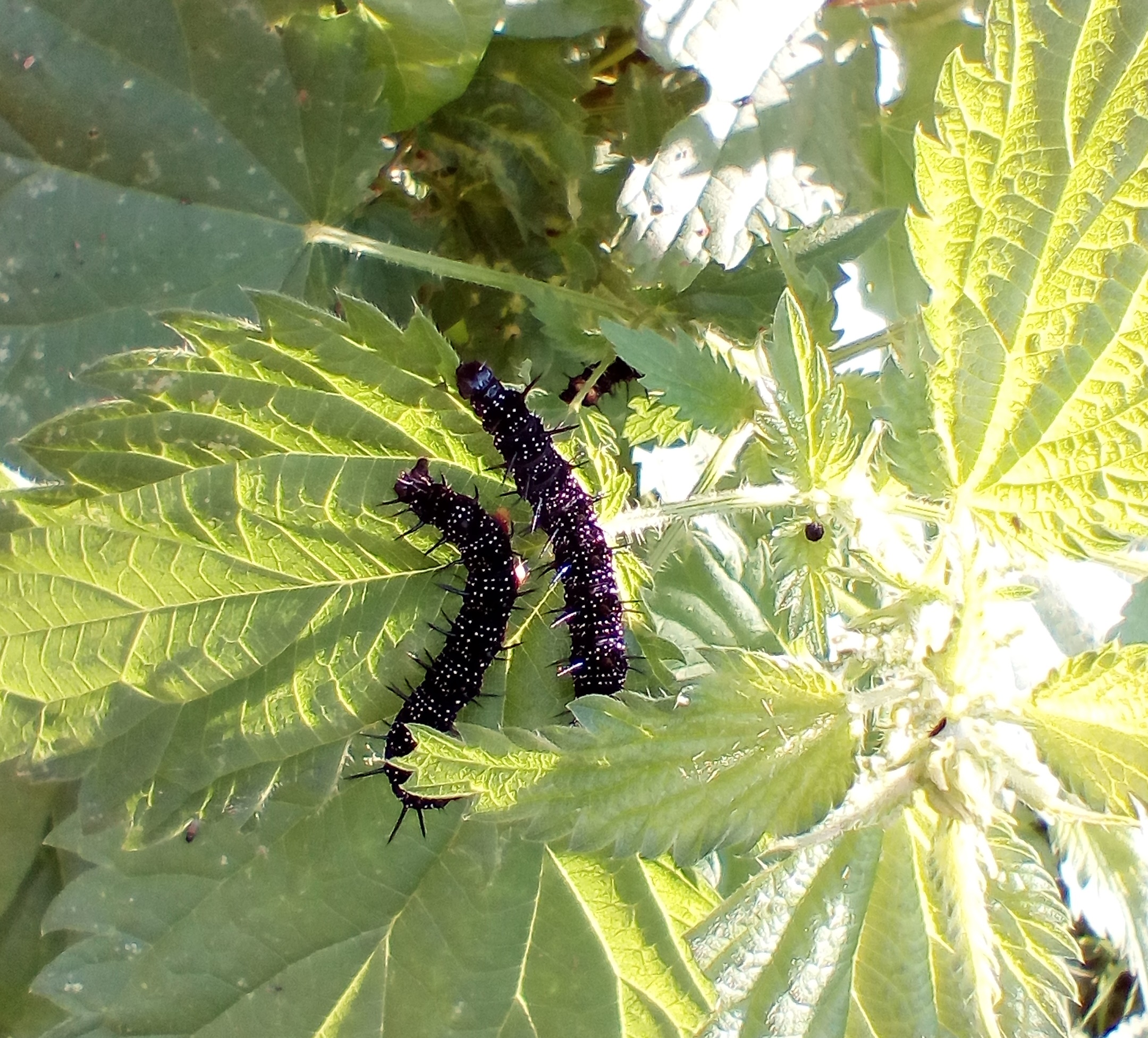 Tagpfauenauge (Aglais io (Linnaeus, 1758)), Larven in verschiedenen Entwicklungsstadien, bei Taubenheim, August 2016. (© Udo Lemke )( Bild vergrößern)
