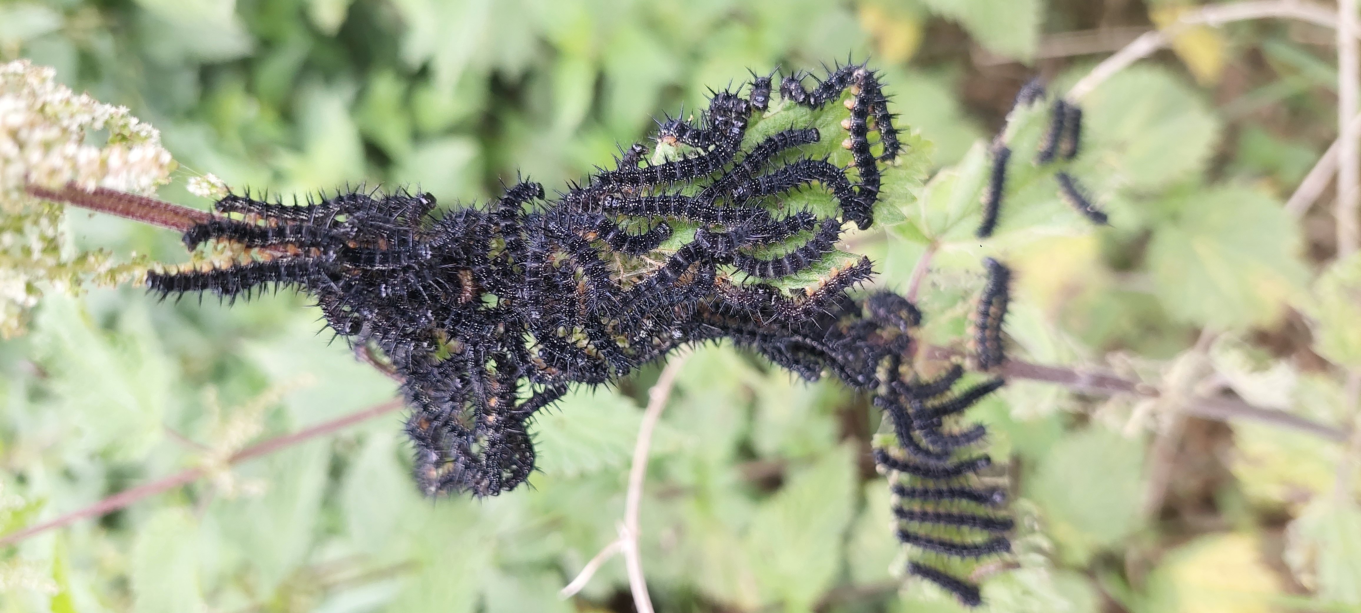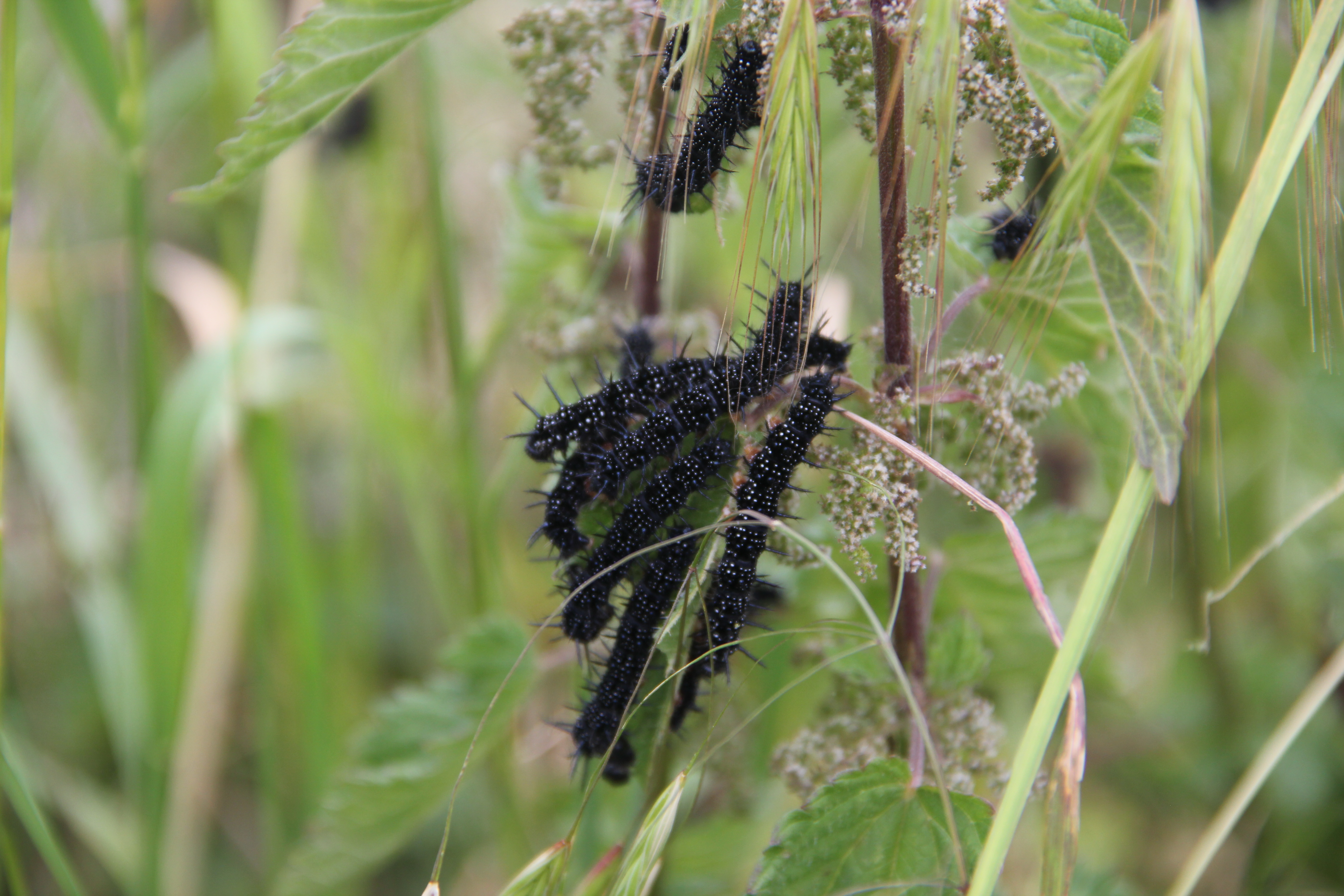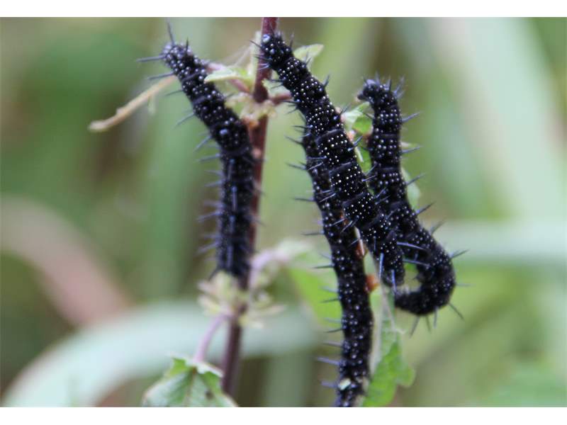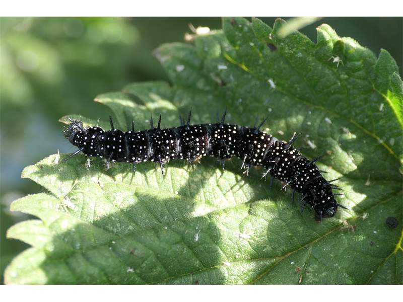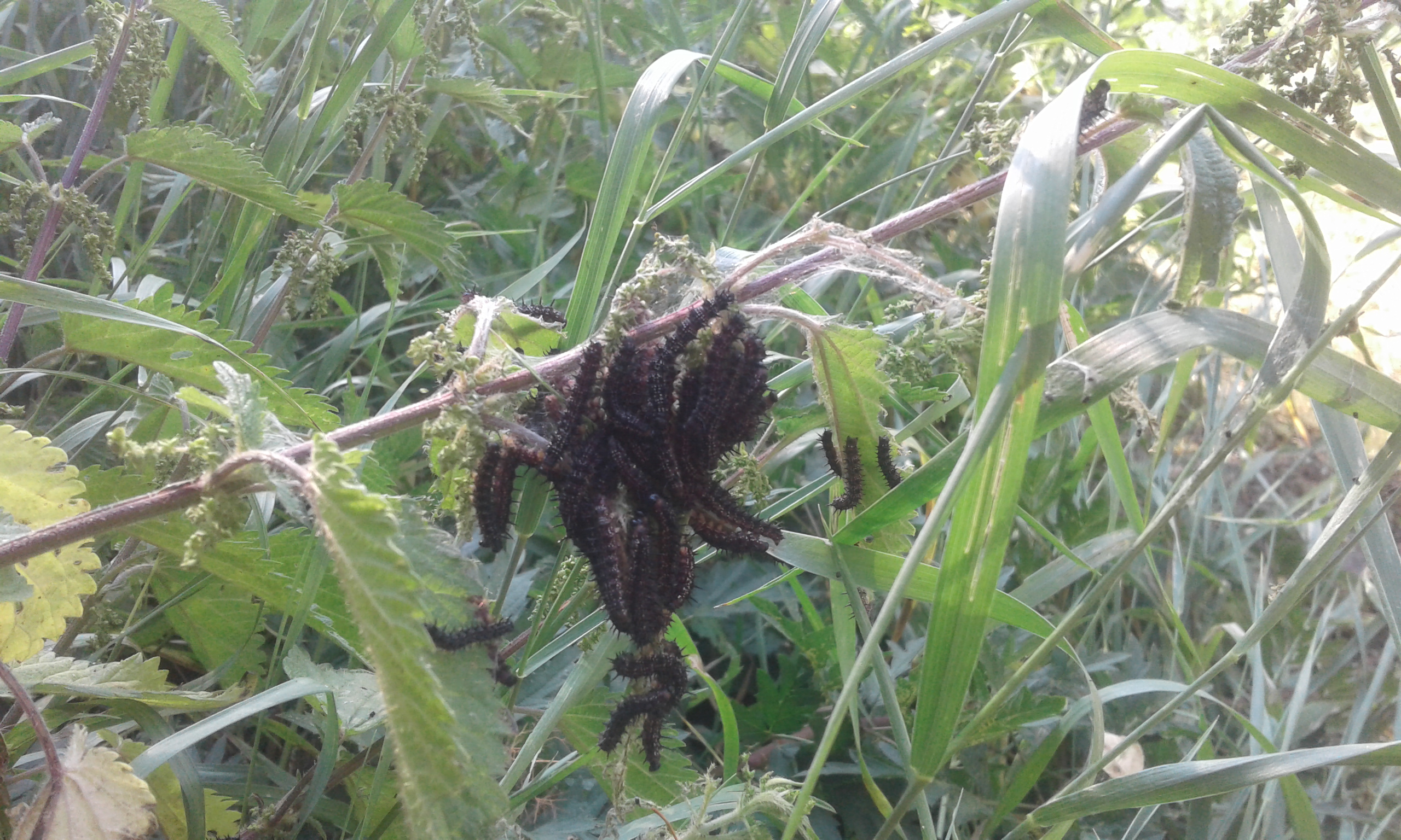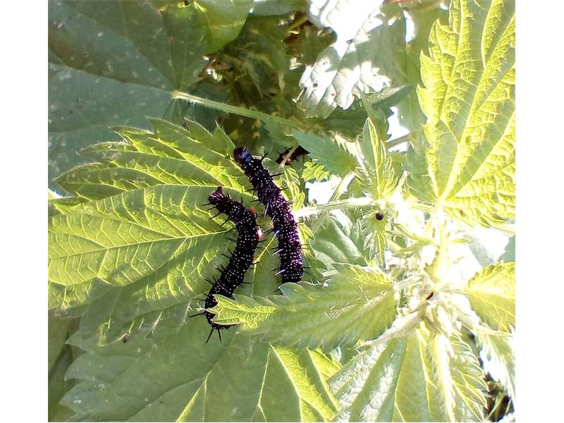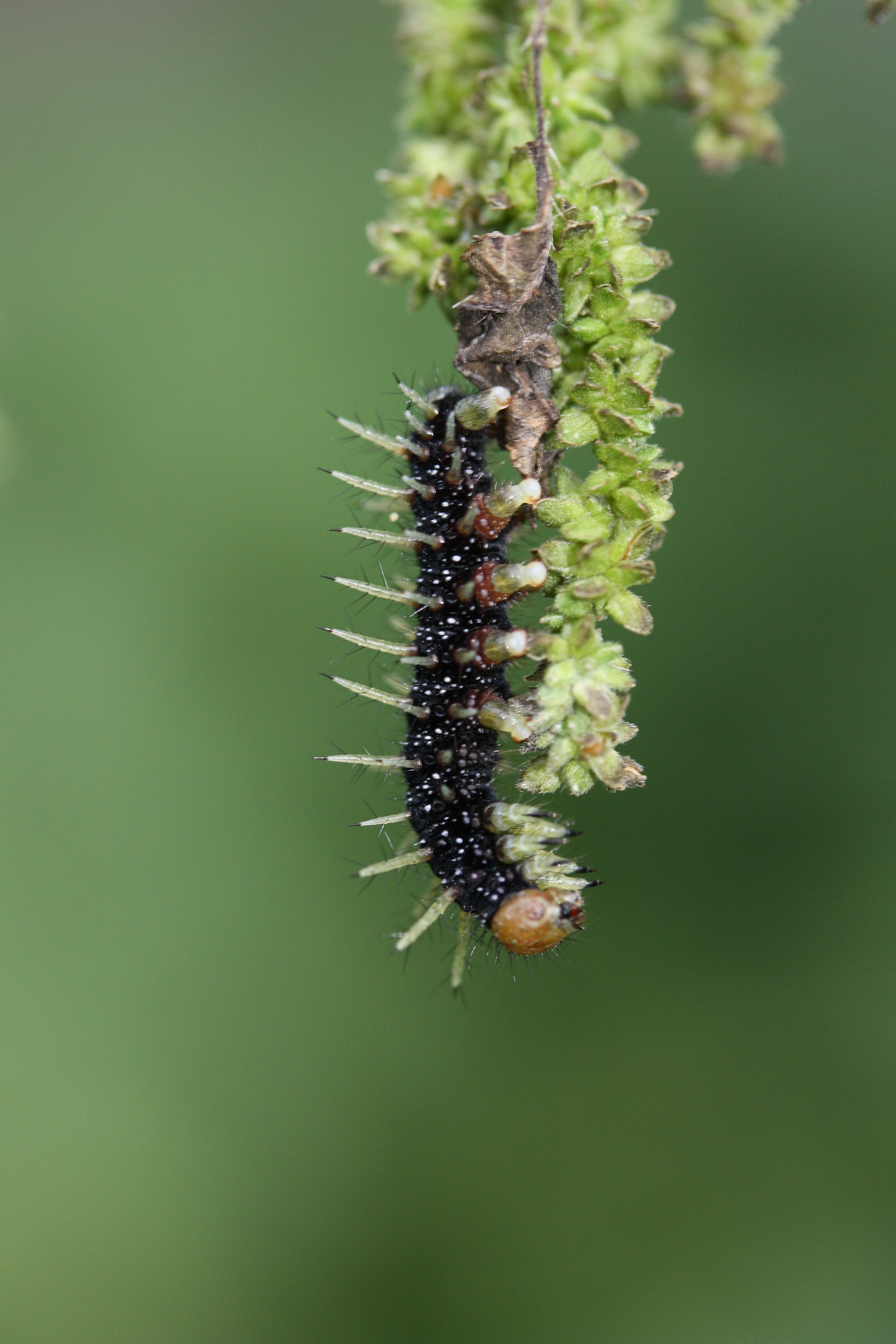 Tagpfauenauge (Aglais io (Linnaeus, 1758)), Larven in verschiedenen Entwicklungsstadien, bei Taubenheim, August 2016. (© Udo Lemke )( Bild vergrößern)