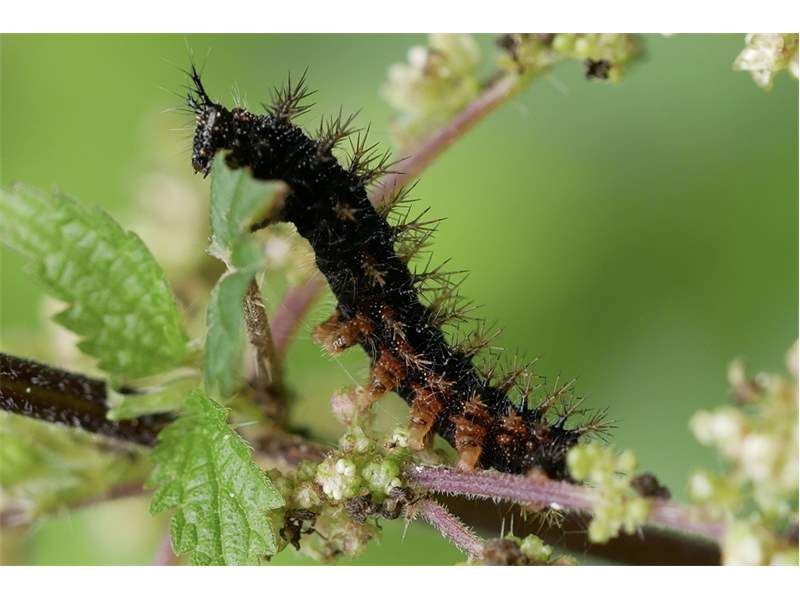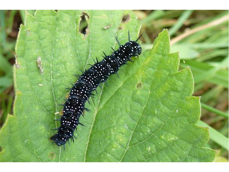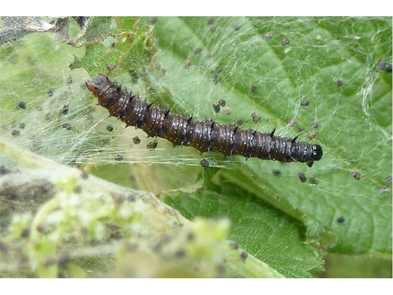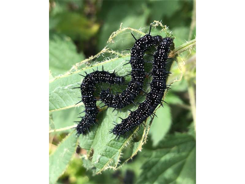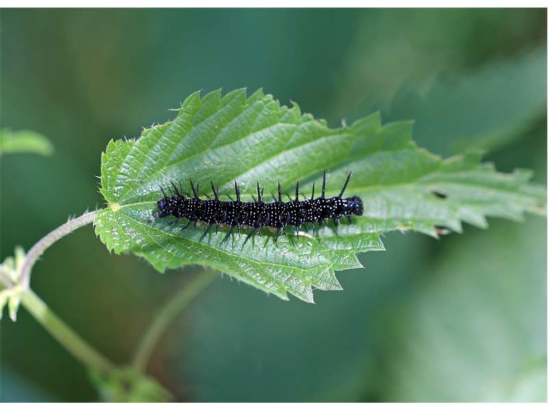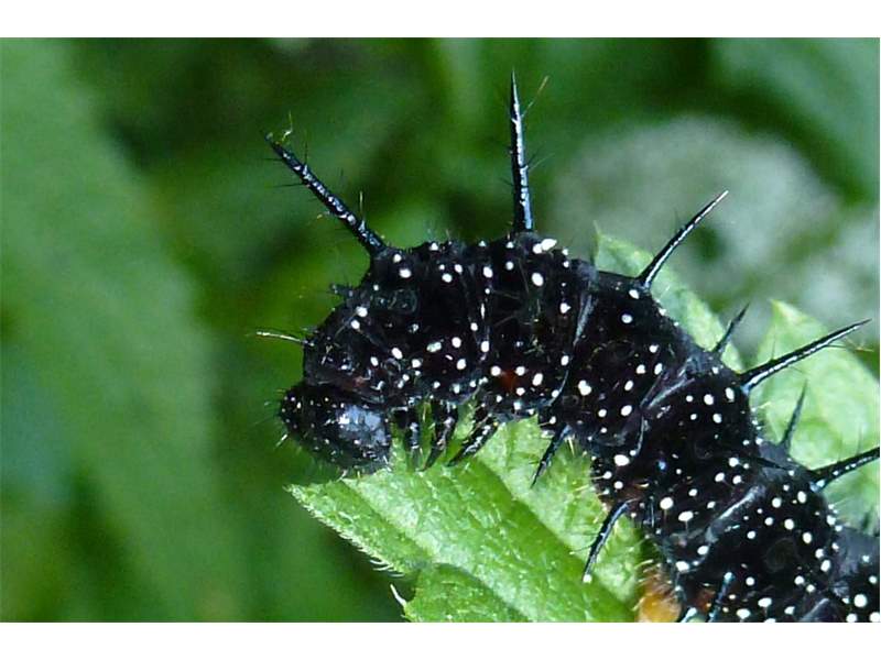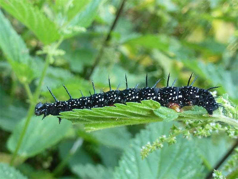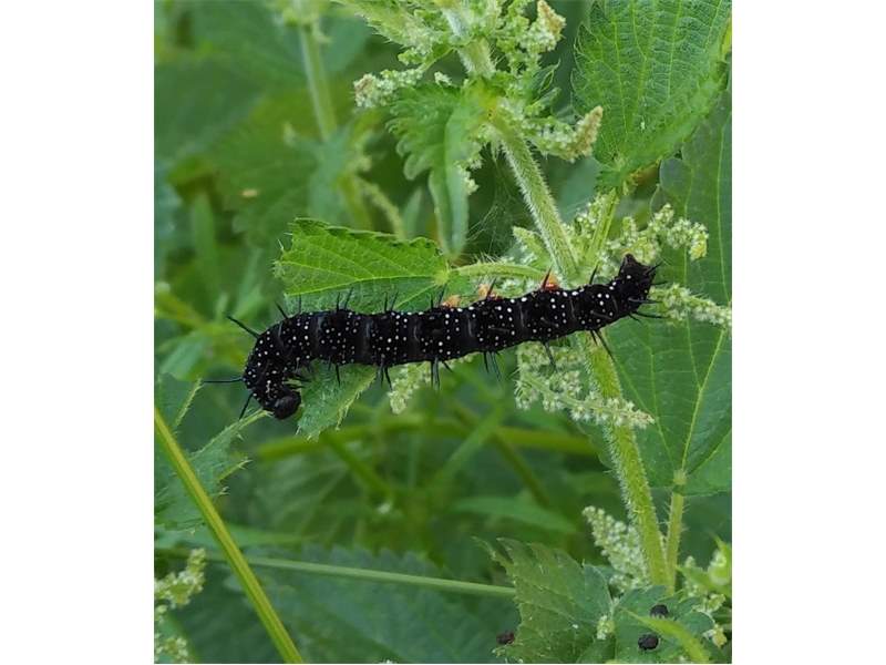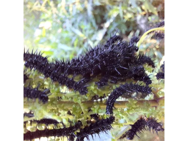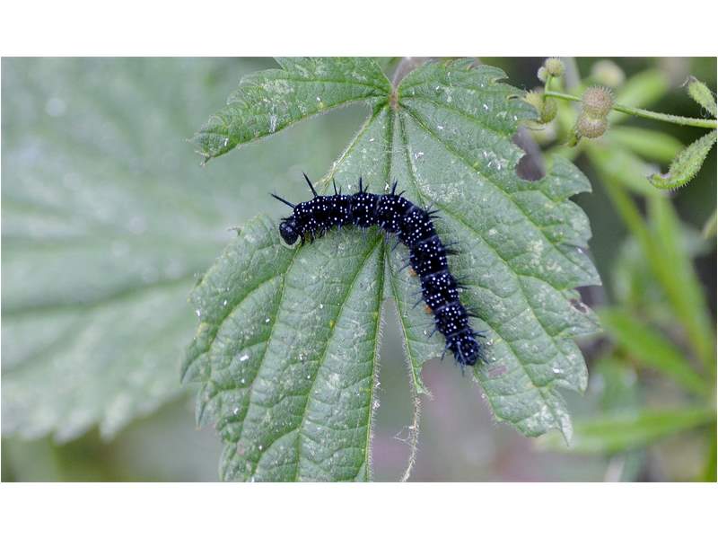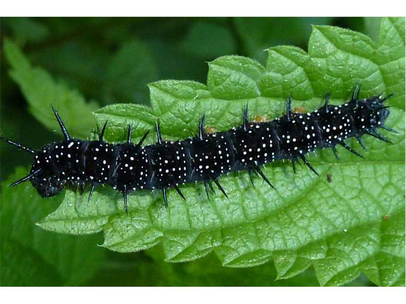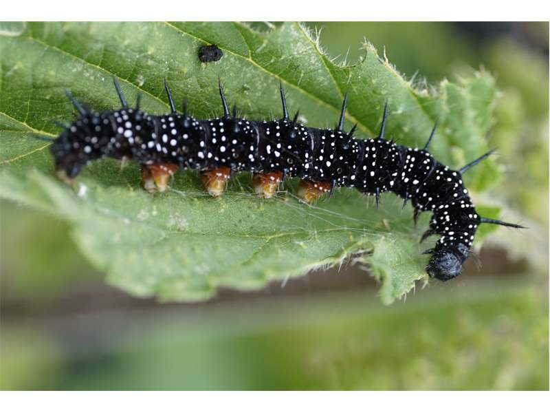 Tagpfauenauge (Aglais io (Linnaeus, 1758)), Larven in verschiedenen Entwicklungsstadien, bei Taubenheim, August 2016. (© Udo Lemke )( Bild vergrößern)