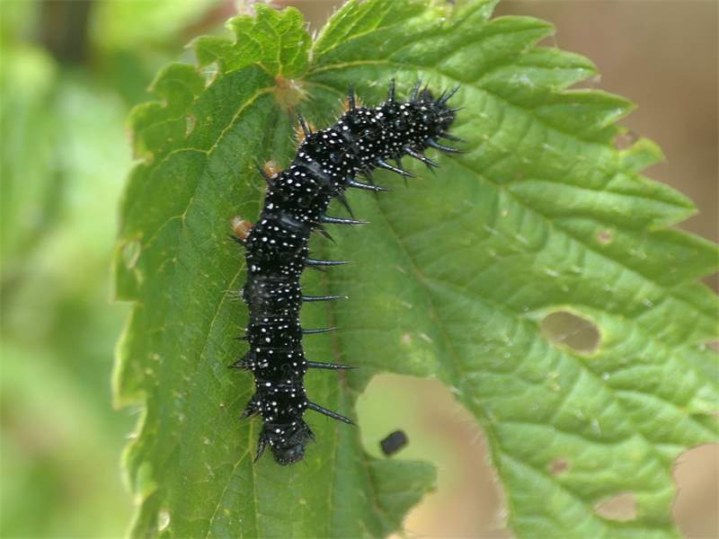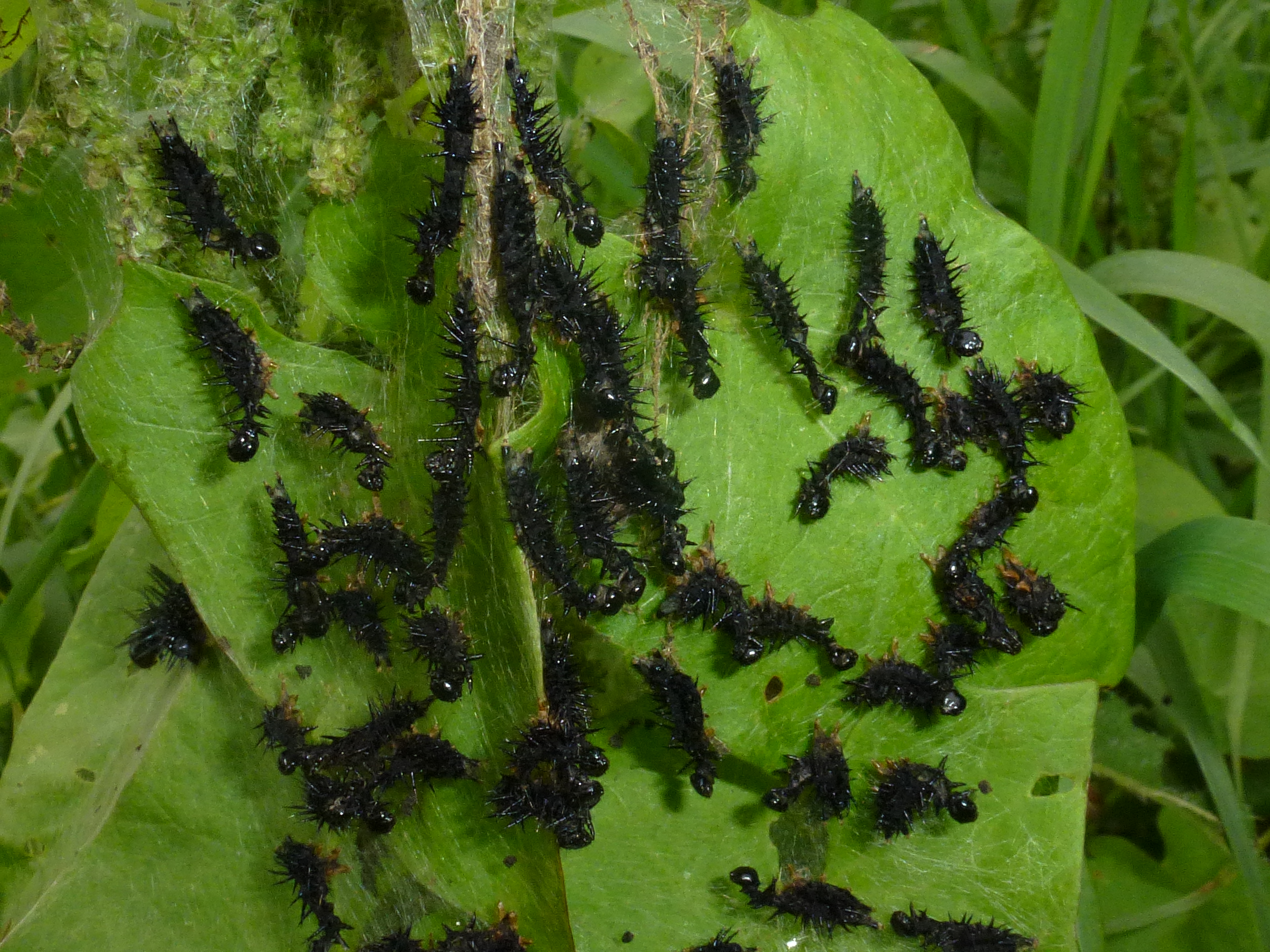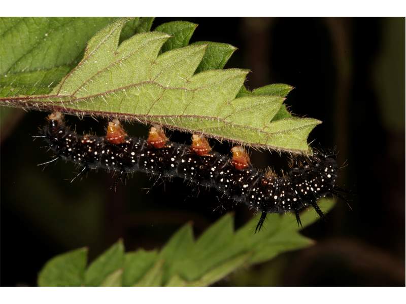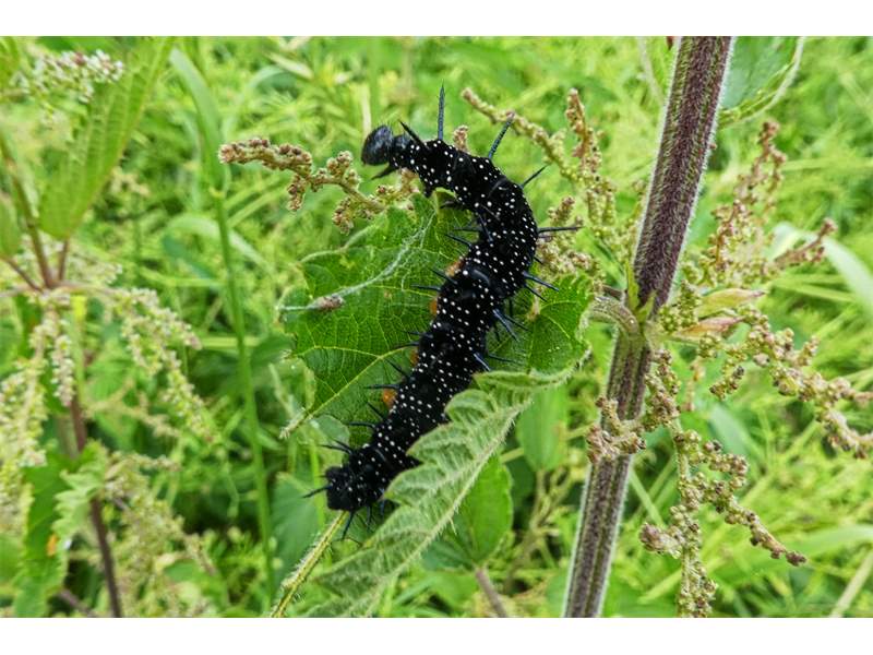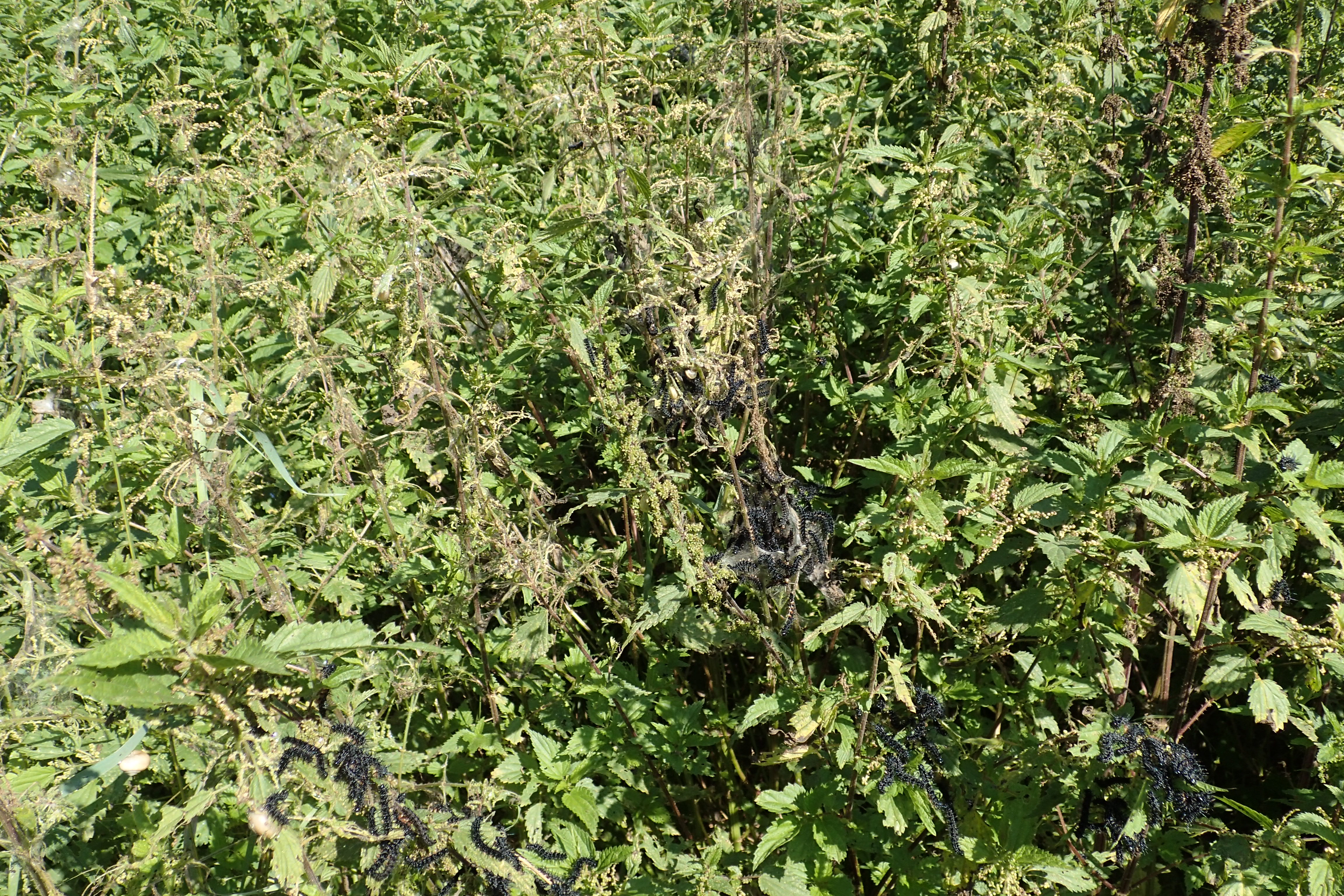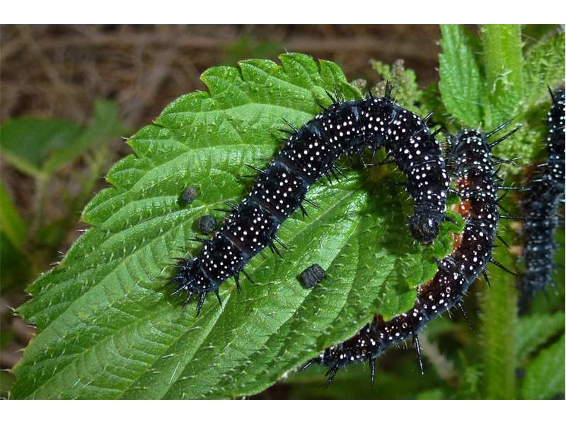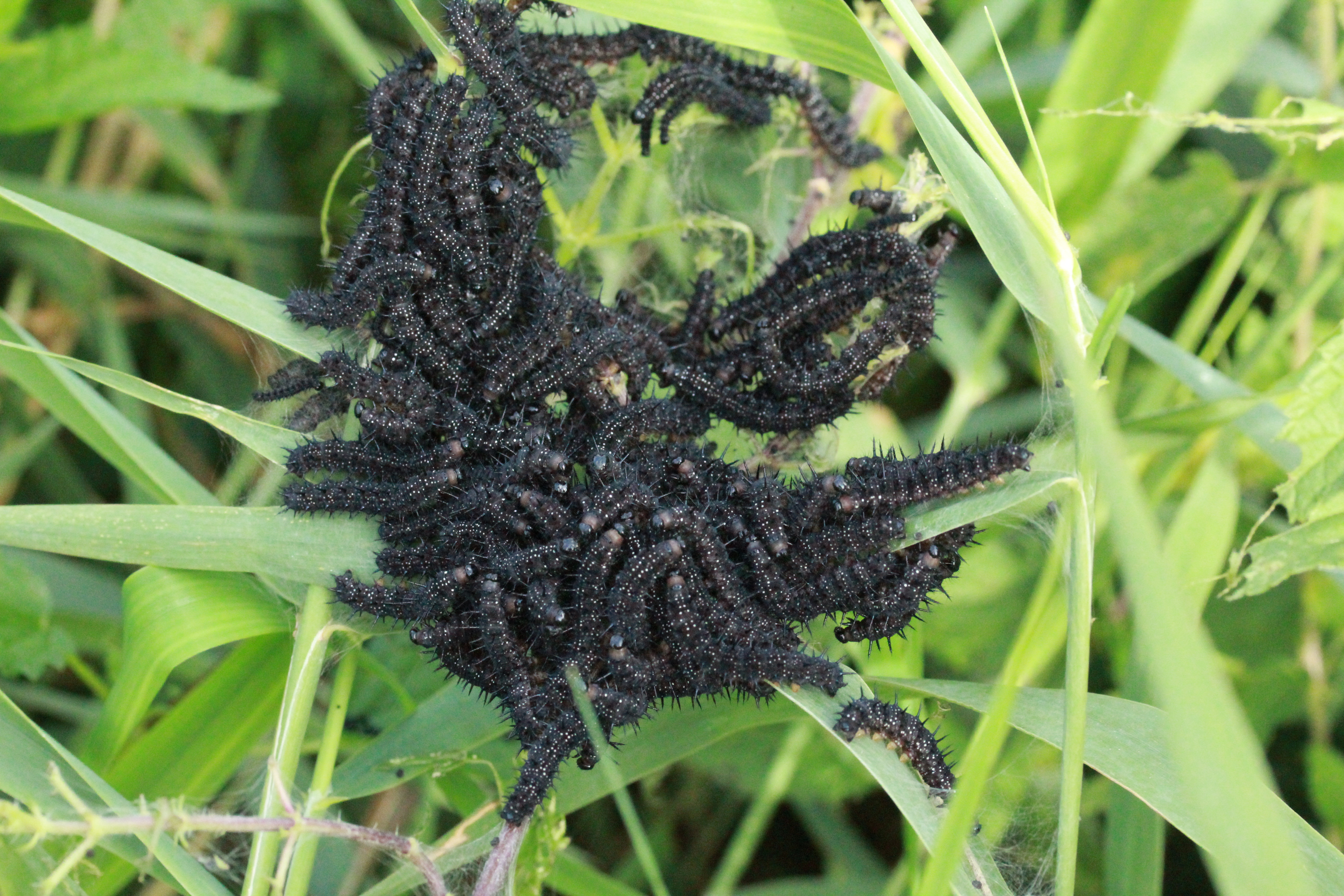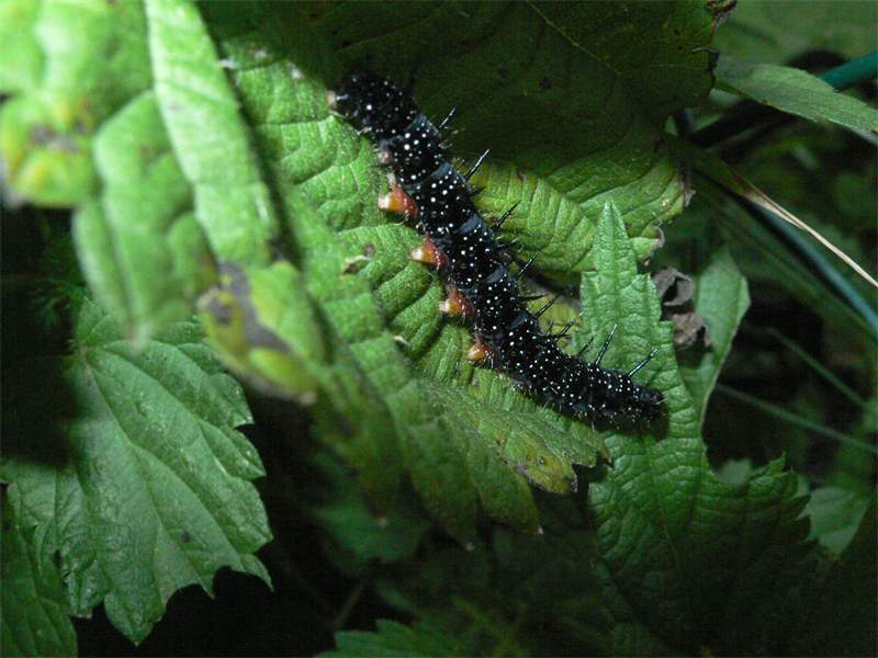 Tagpfauenauge (Aglais io (Linnaeus, 1758)), Larven in verschiedenen Entwicklungsstadien, bei Taubenheim, August 2016. (© Udo Lemke )( Bild vergrößern)