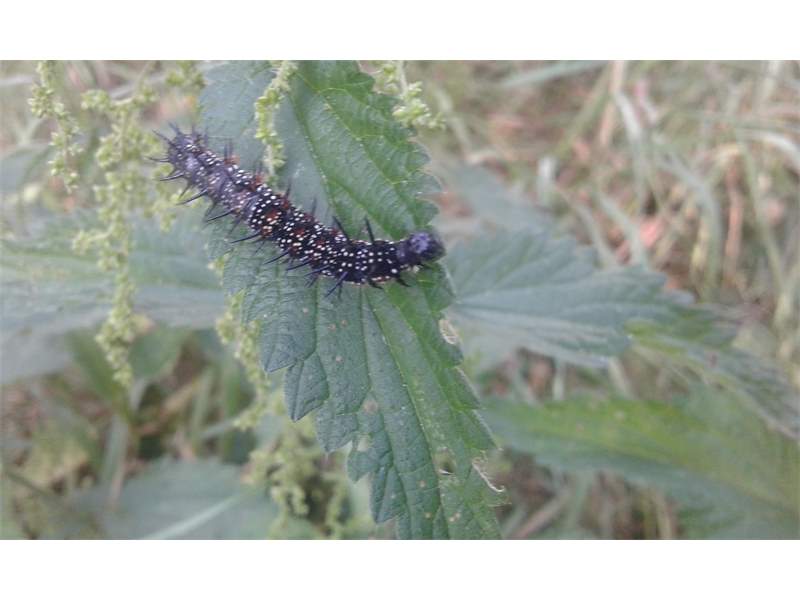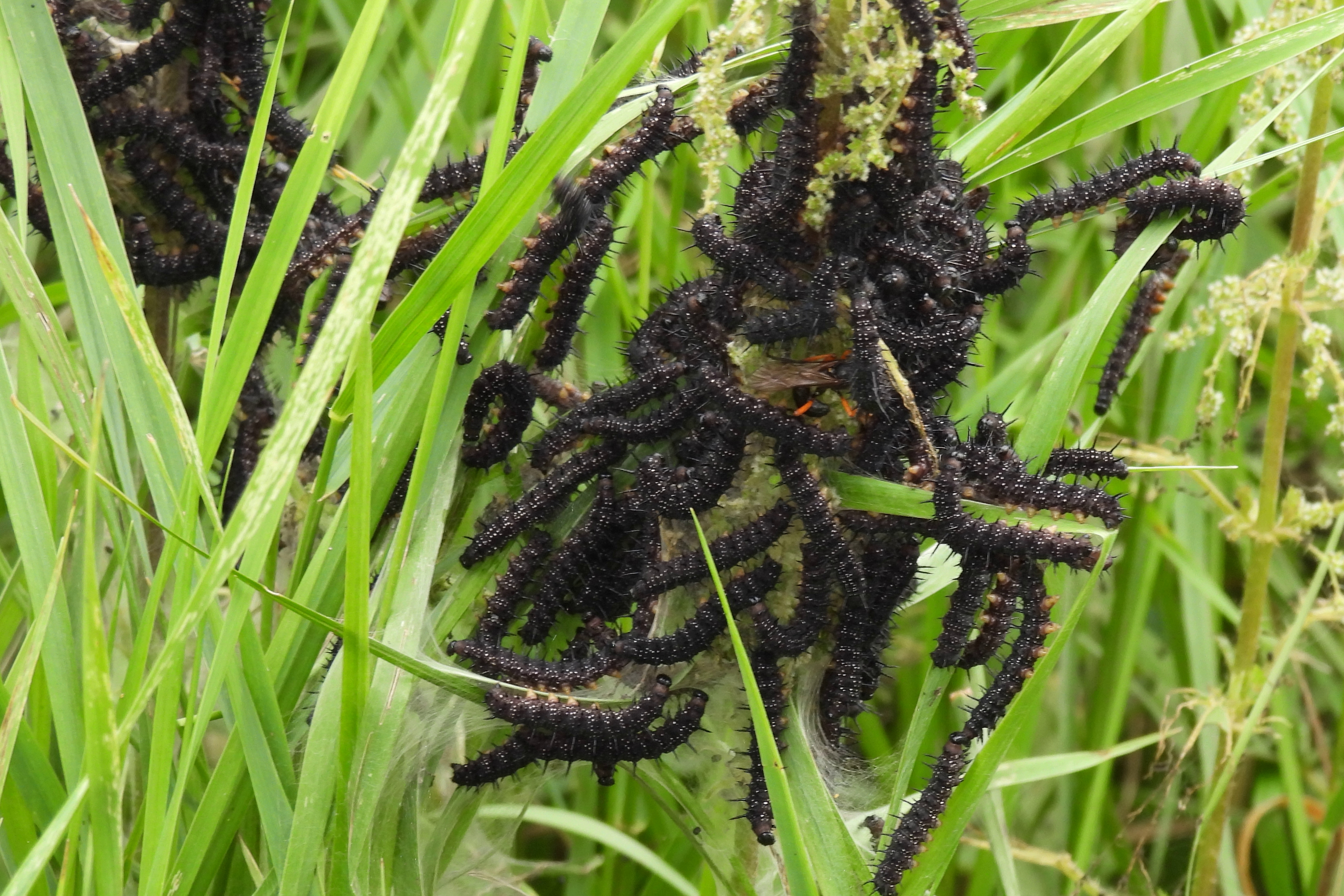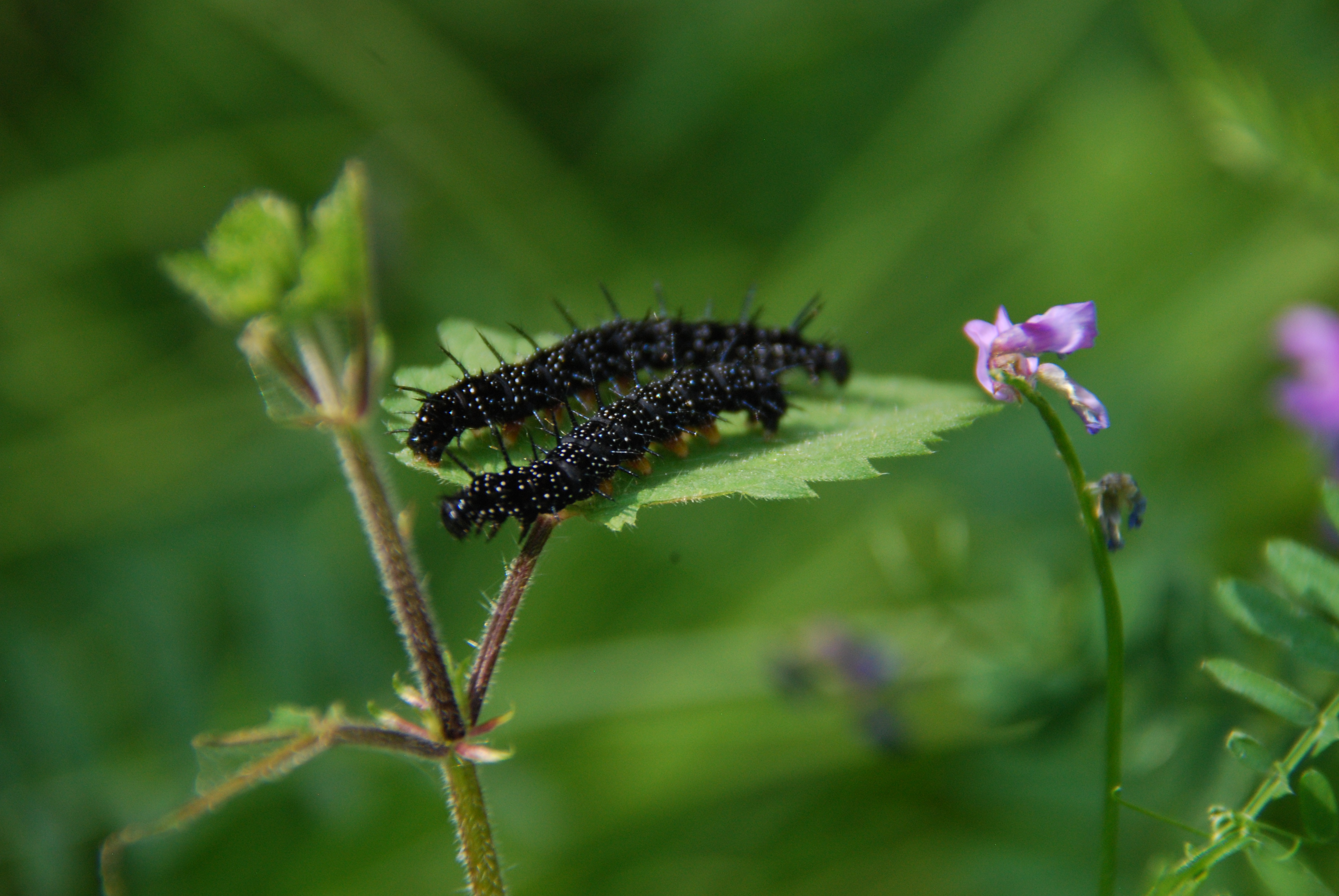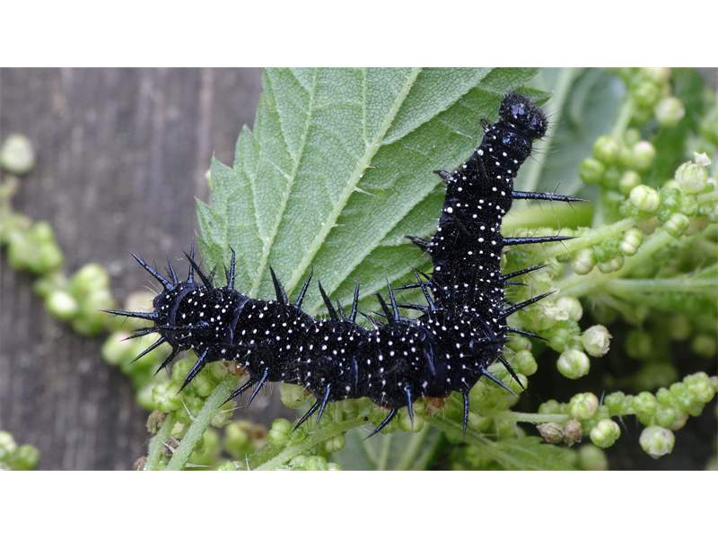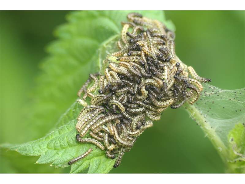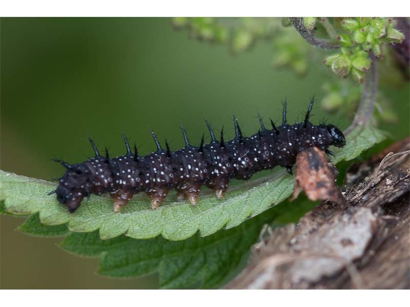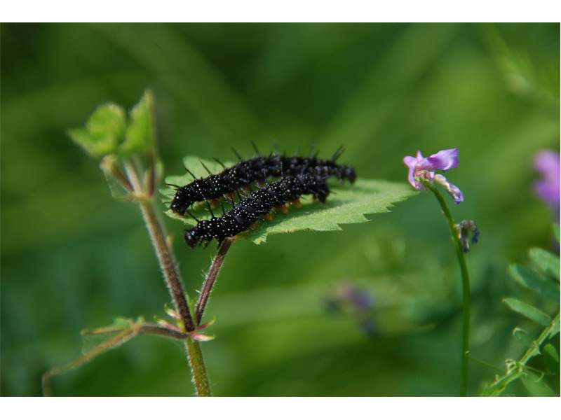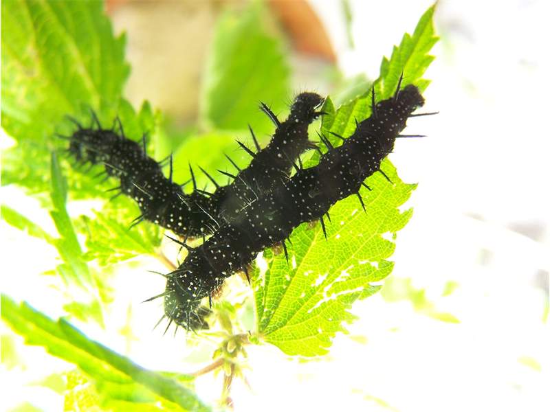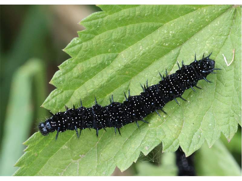 Tagpfauenauge (Aglais io (Linnaeus, 1758)), Larven in verschiedenen Entwicklungsstadien, bei Taubenheim, August 2016. (© Udo Lemke )( Bild vergrößern)