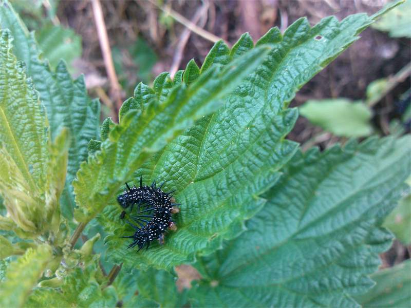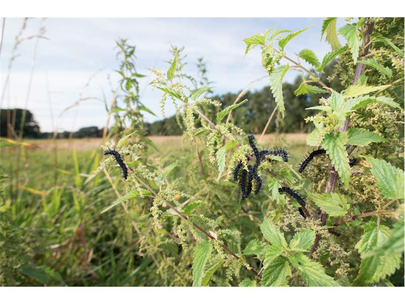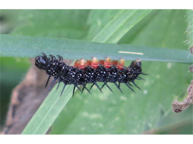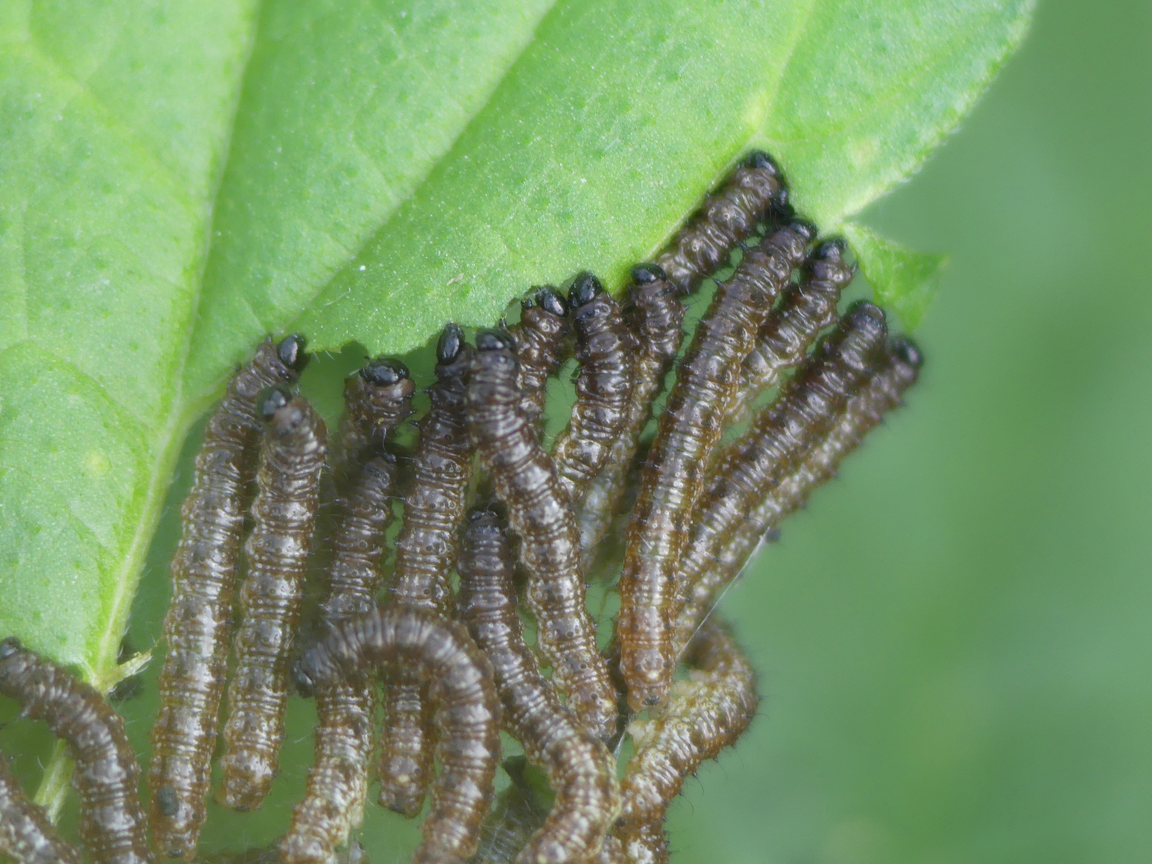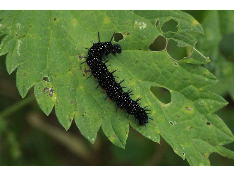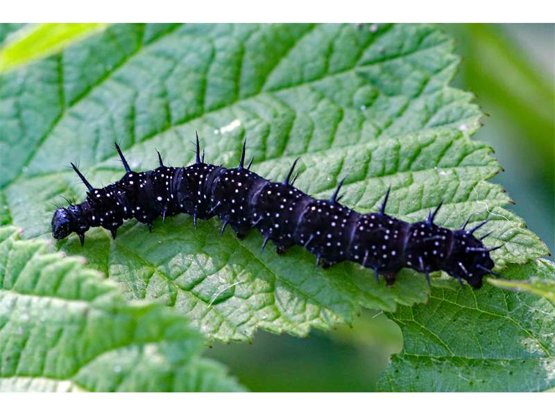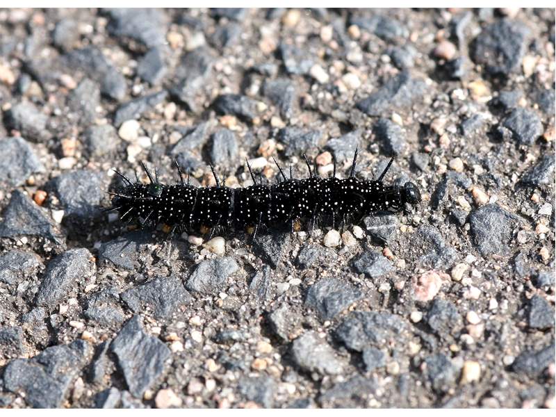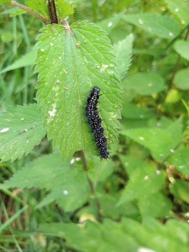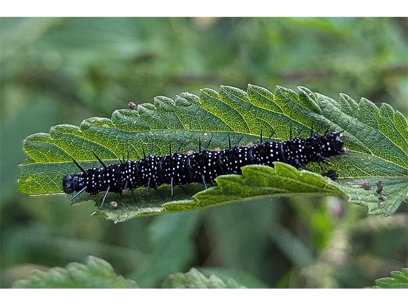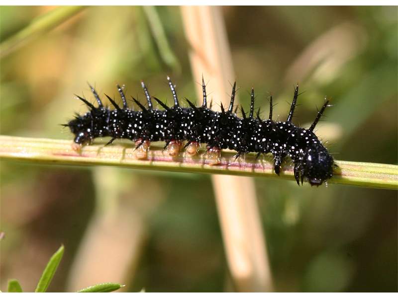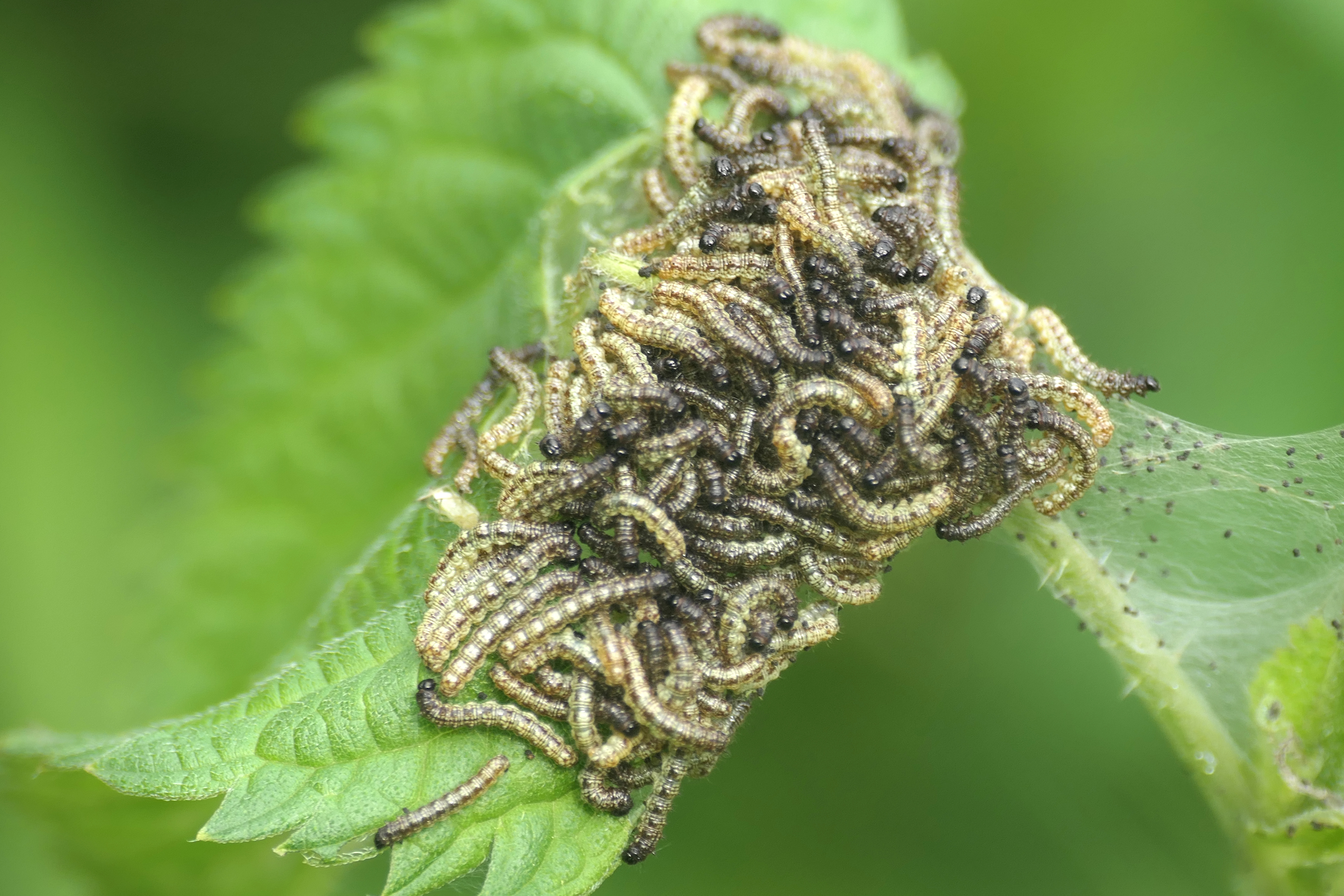 Tagpfauenauge (Aglais io (Linnaeus, 1758)), Larven in verschiedenen Entwicklungsstadien, bei Taubenheim, August 2016. (© Udo Lemke )( Bild vergrößern)
