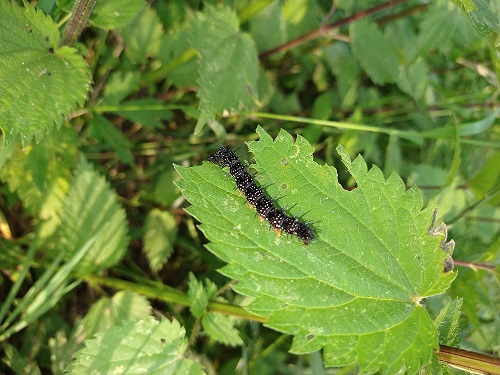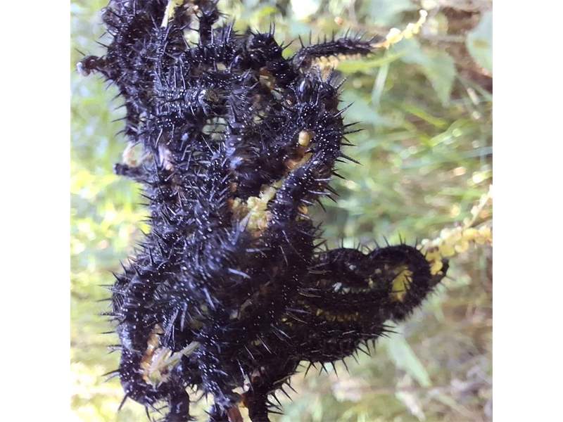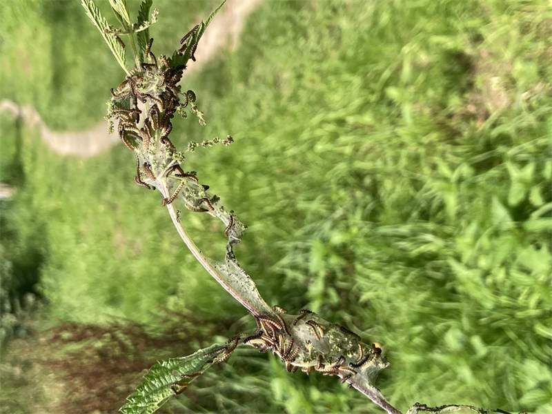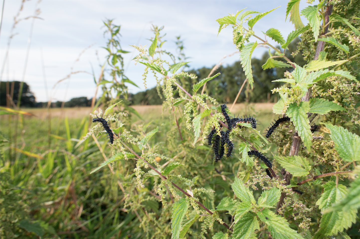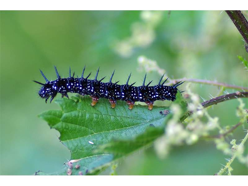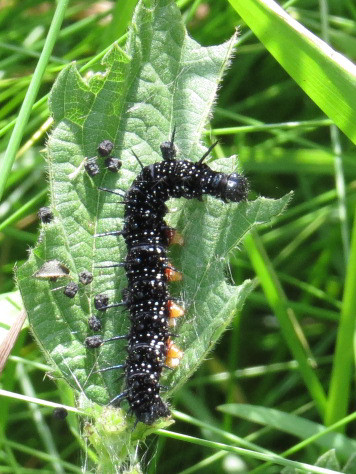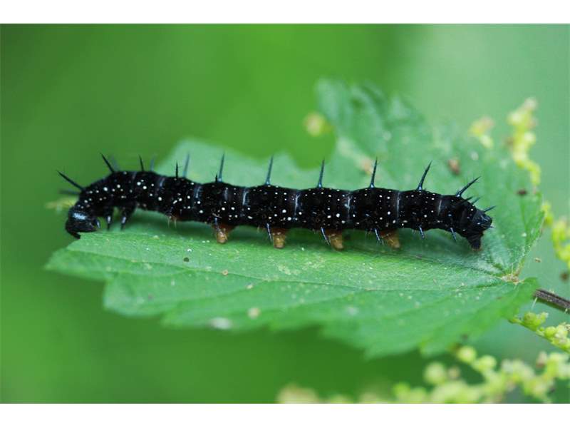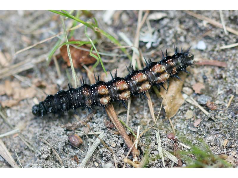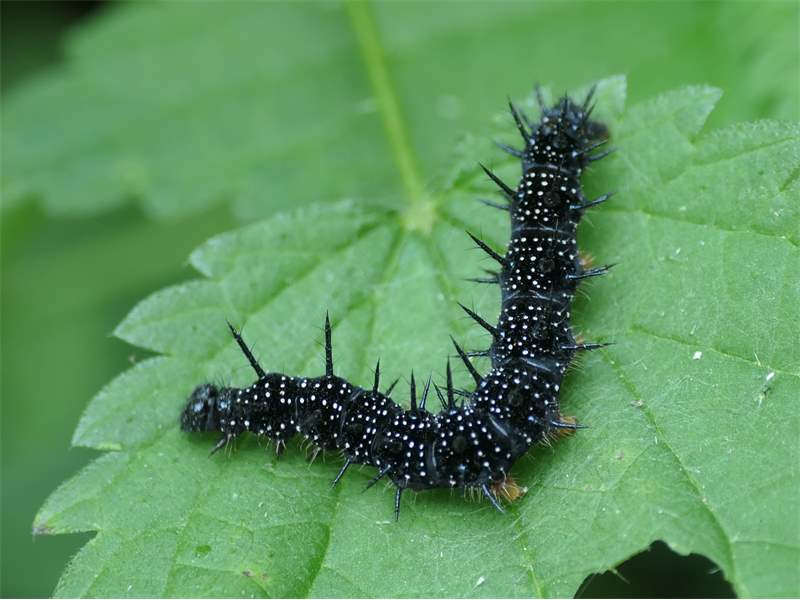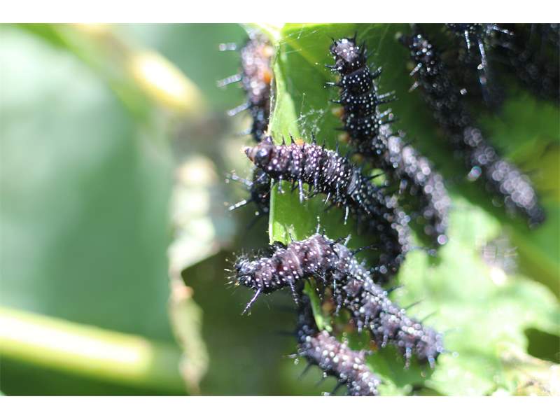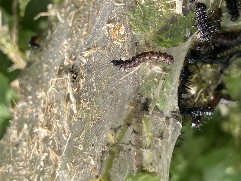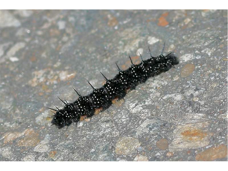Tagpfauenauge (Aglais io (Linnaeus, 1758)), Larven in verschiedenen Entwicklungsstadien, bei Taubenheim, August 2016. (© Udo Lemke )( Bild vergrößern)