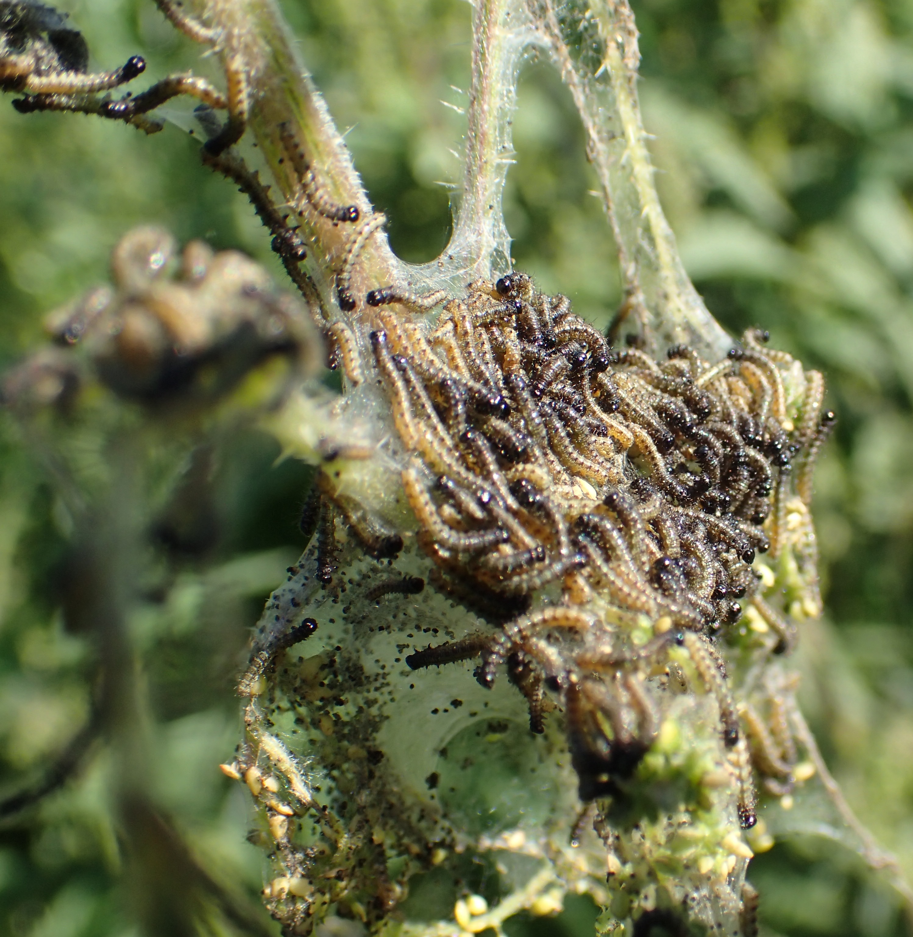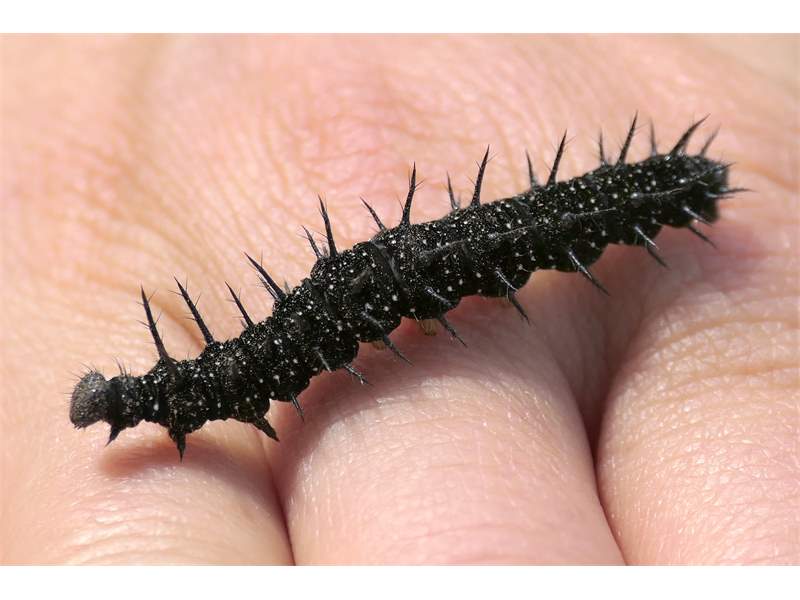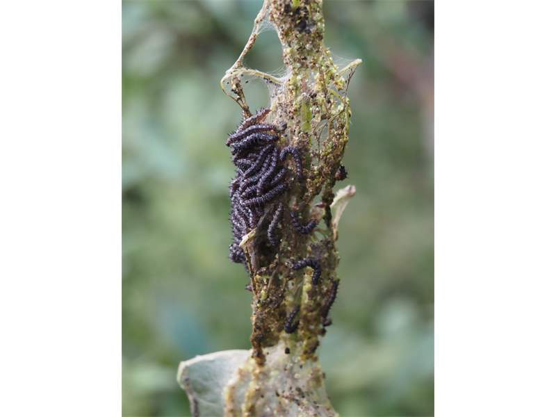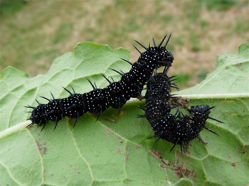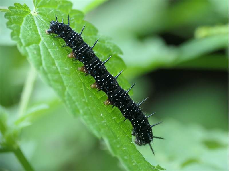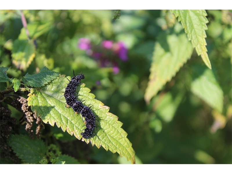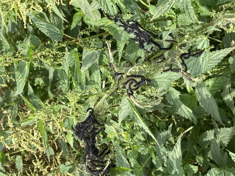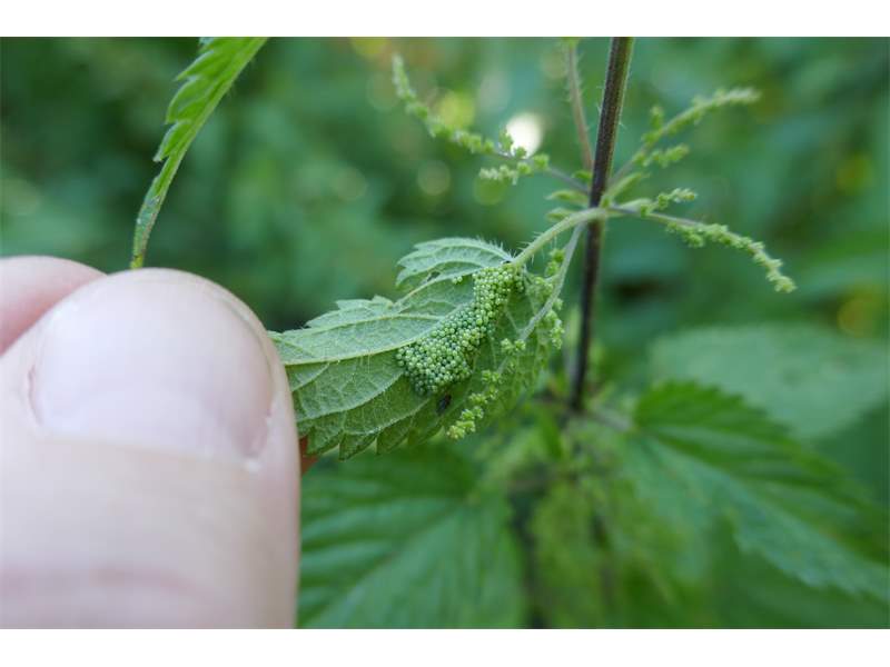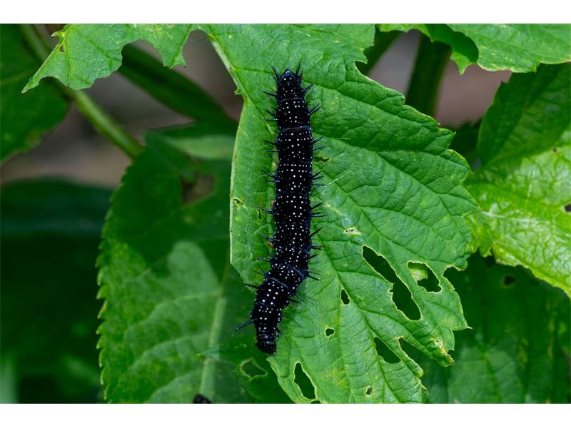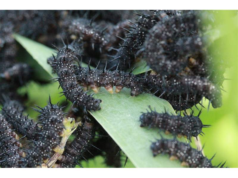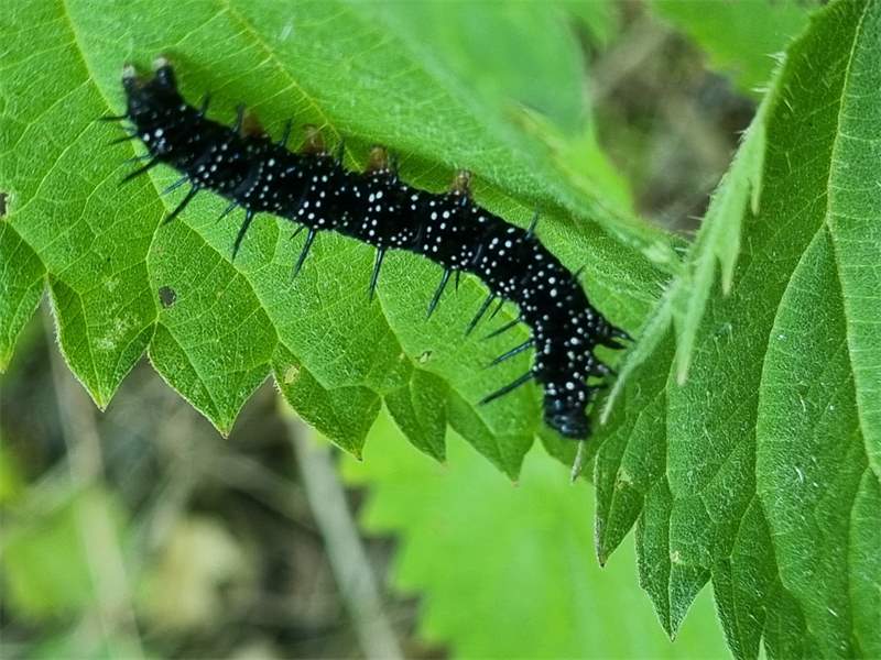 Tagpfauenauge (Aglais io (Linnaeus, 1758)), Larven in verschiedenen Entwicklungsstadien, bei Taubenheim, August 2016. (© Udo Lemke )( Bild vergrößern)
