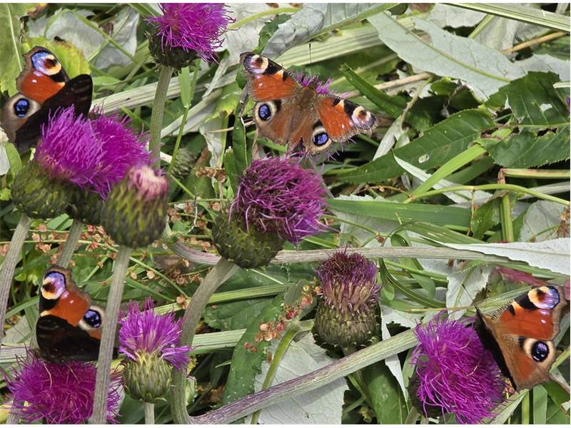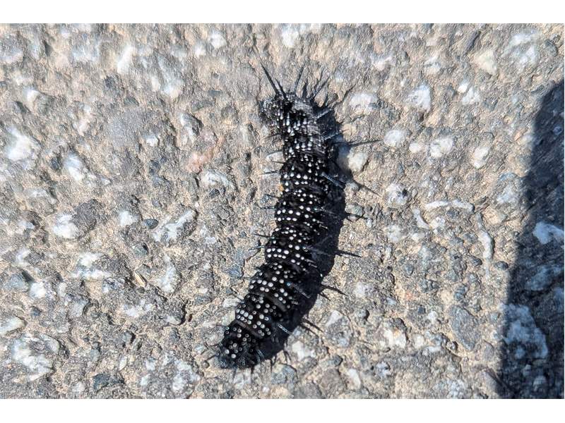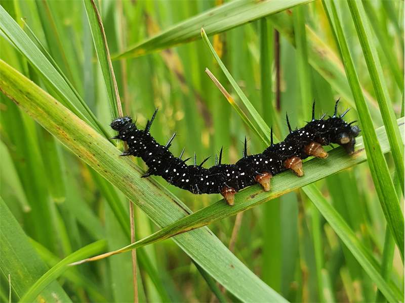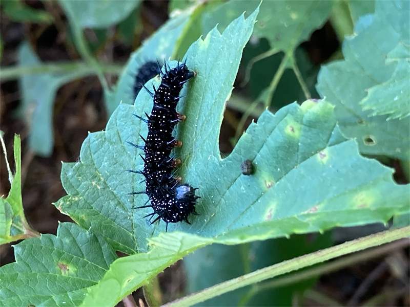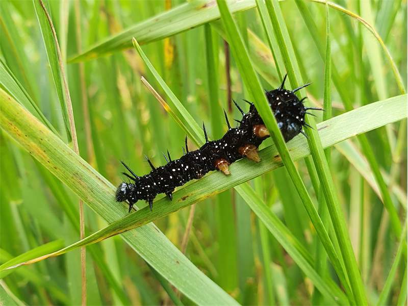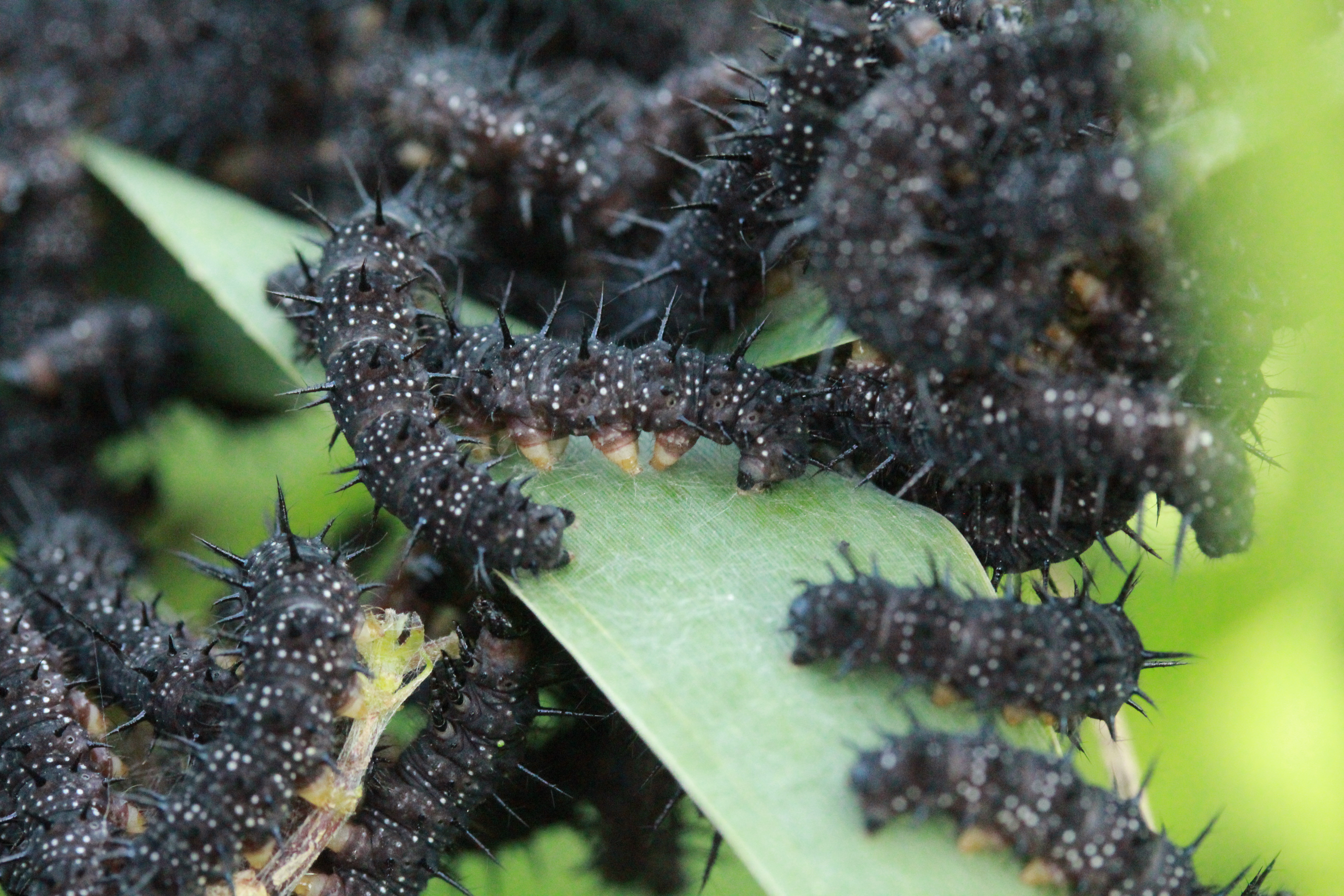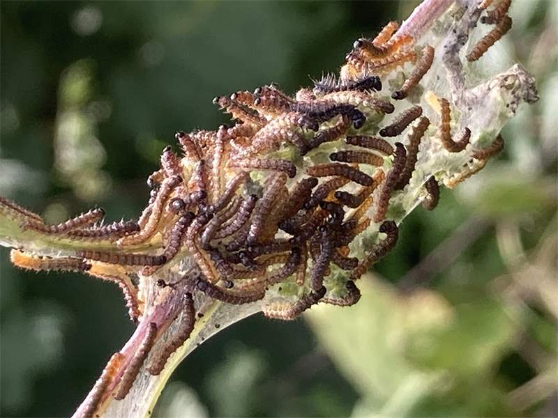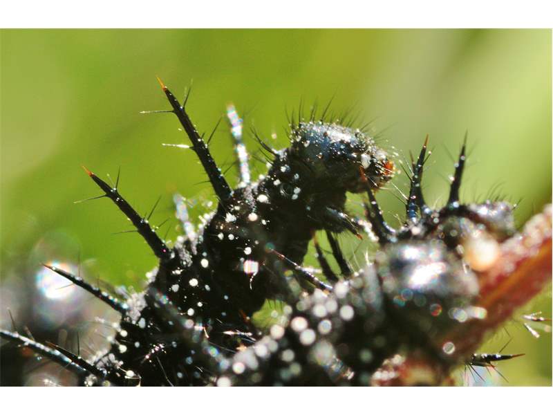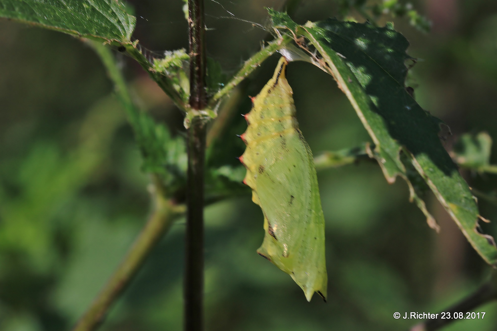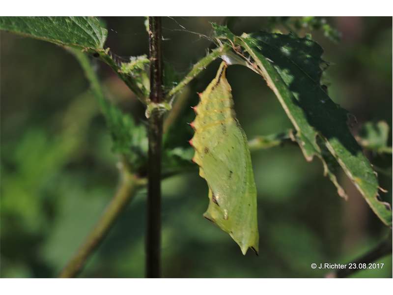 Tagpfauenauge (Aglais io (Linnaeus, 1758)), Larven in verschiedenen Entwicklungsstadien, bei Taubenheim, August 2016. (© Udo Lemke )( Bild vergrößern)
