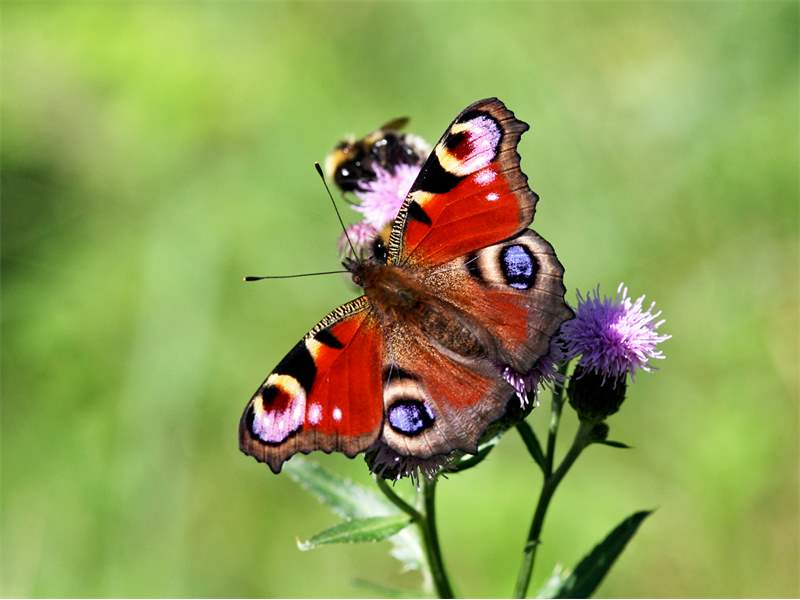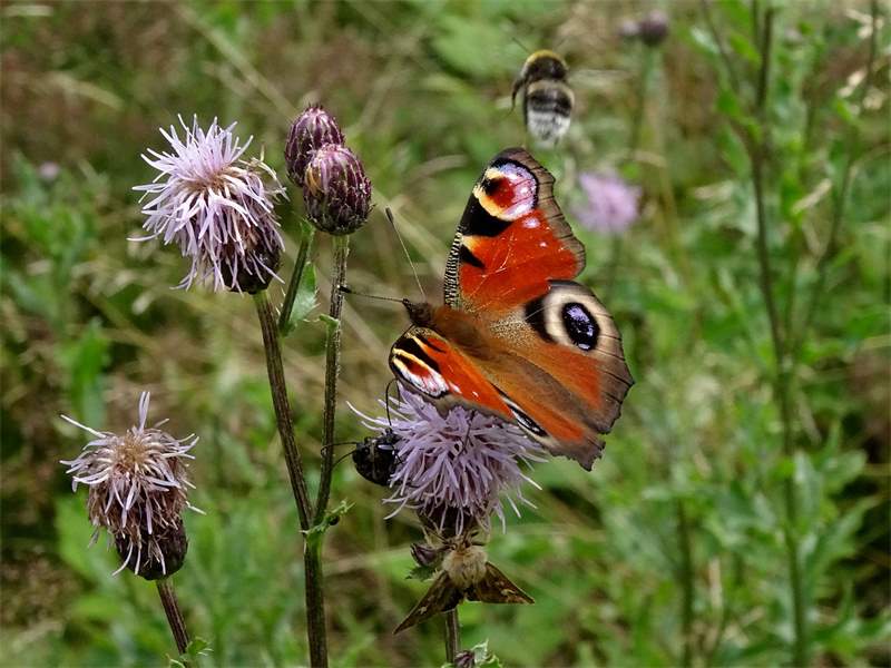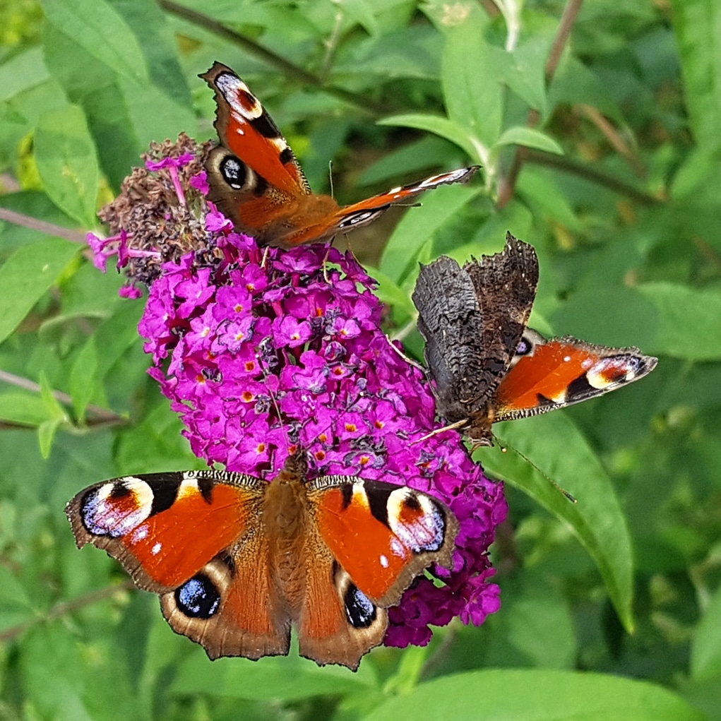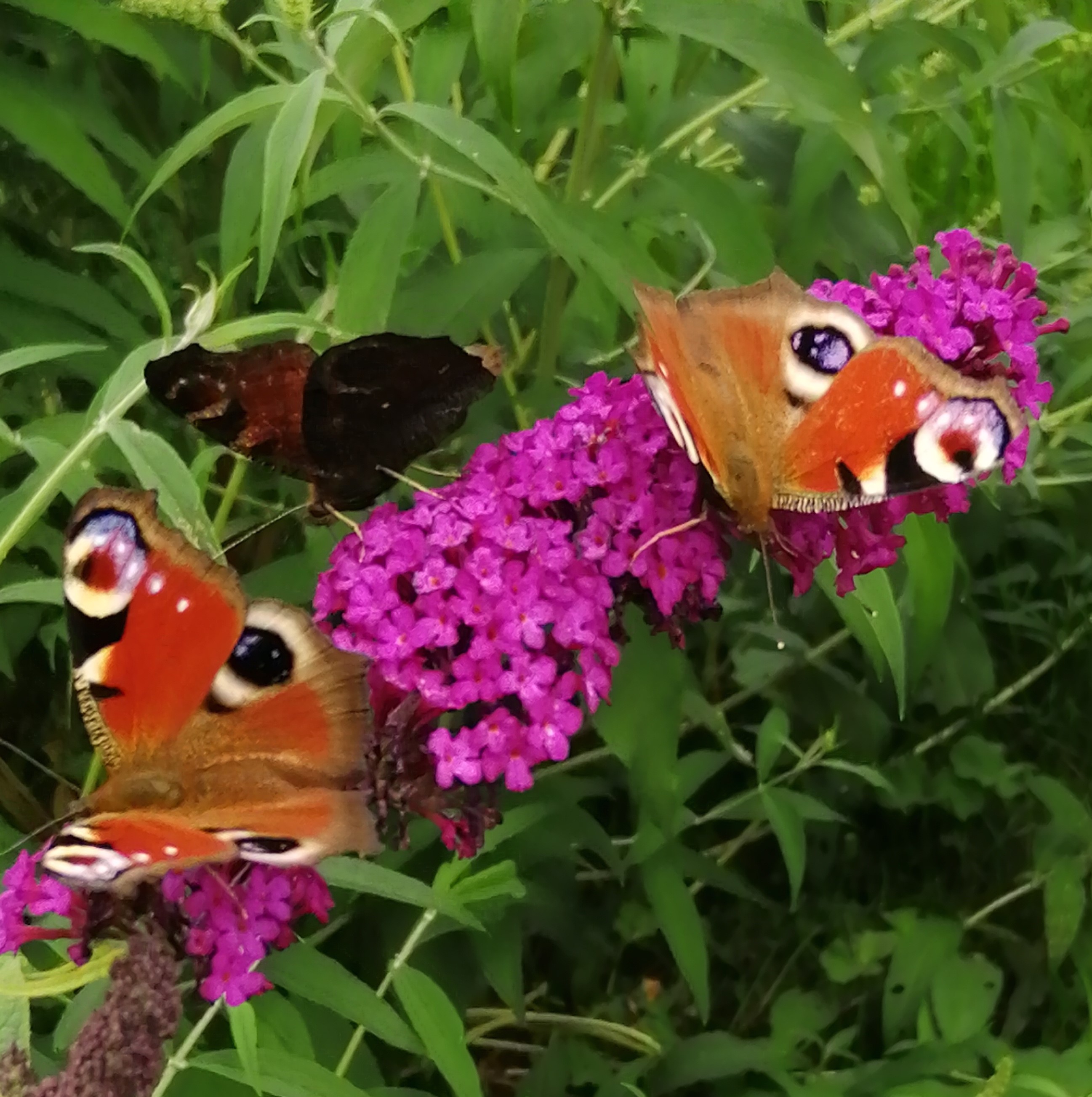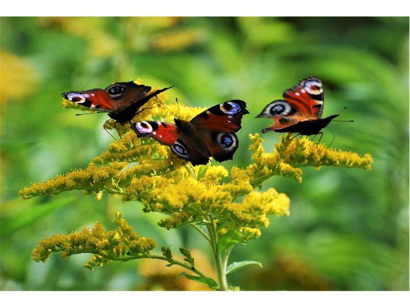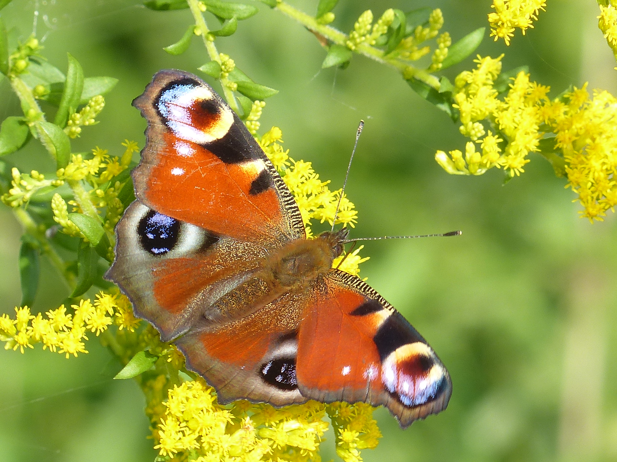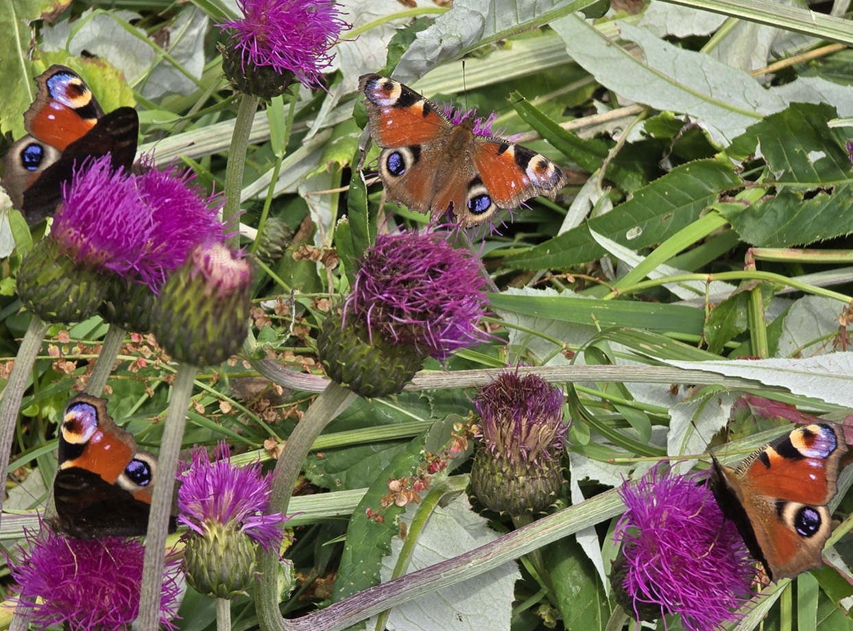 Tagpfauenauge (Aglais io (Linnaeus, 1758)), Larven in verschiedenen Entwicklungsstadien, bei Taubenheim, August 2016. (© Udo Lemke )( Bild vergrößern)