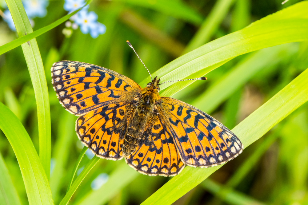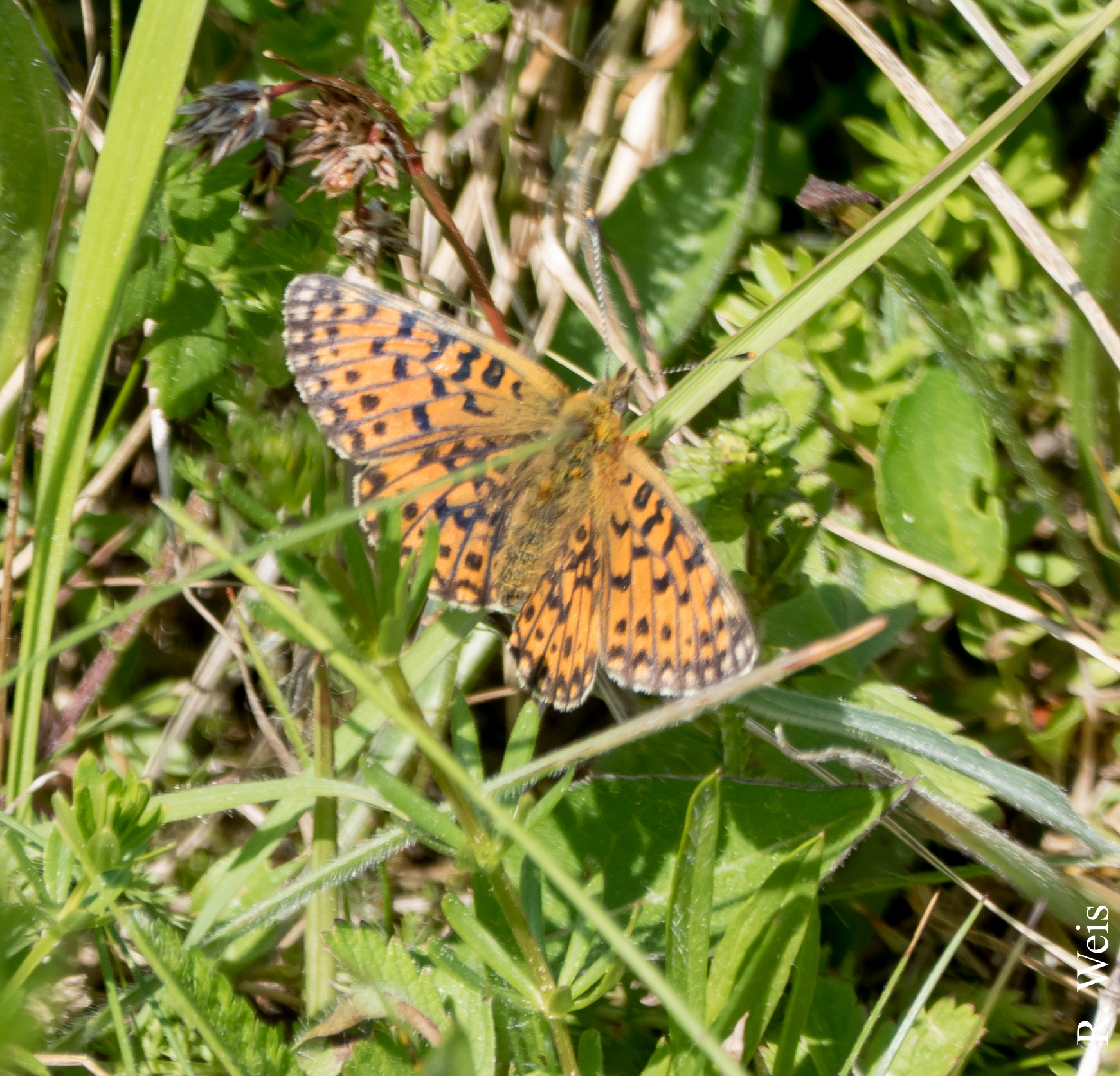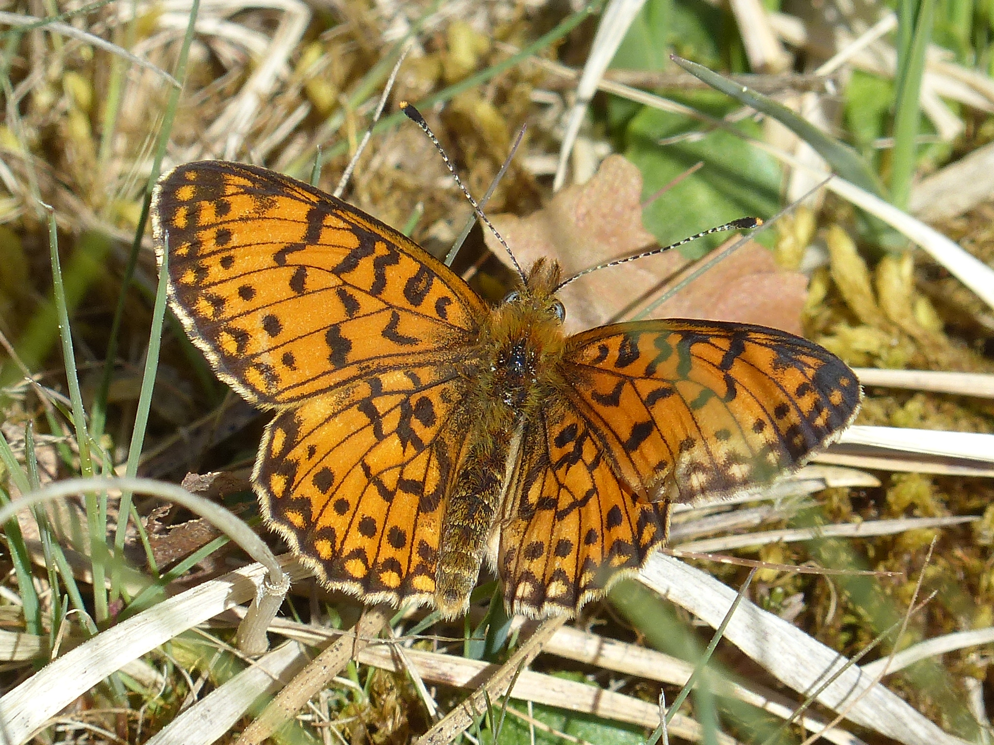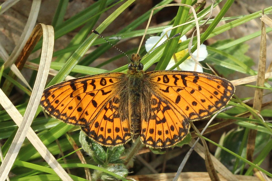 Sumpfwiesen-Perlmuttfalter (Boloria selene (Denis & Schiffermüller, 1775)), im Ainringer Moos, einem Hochmoor bei Ainring, Berchtesgadener Land, Mai 2007