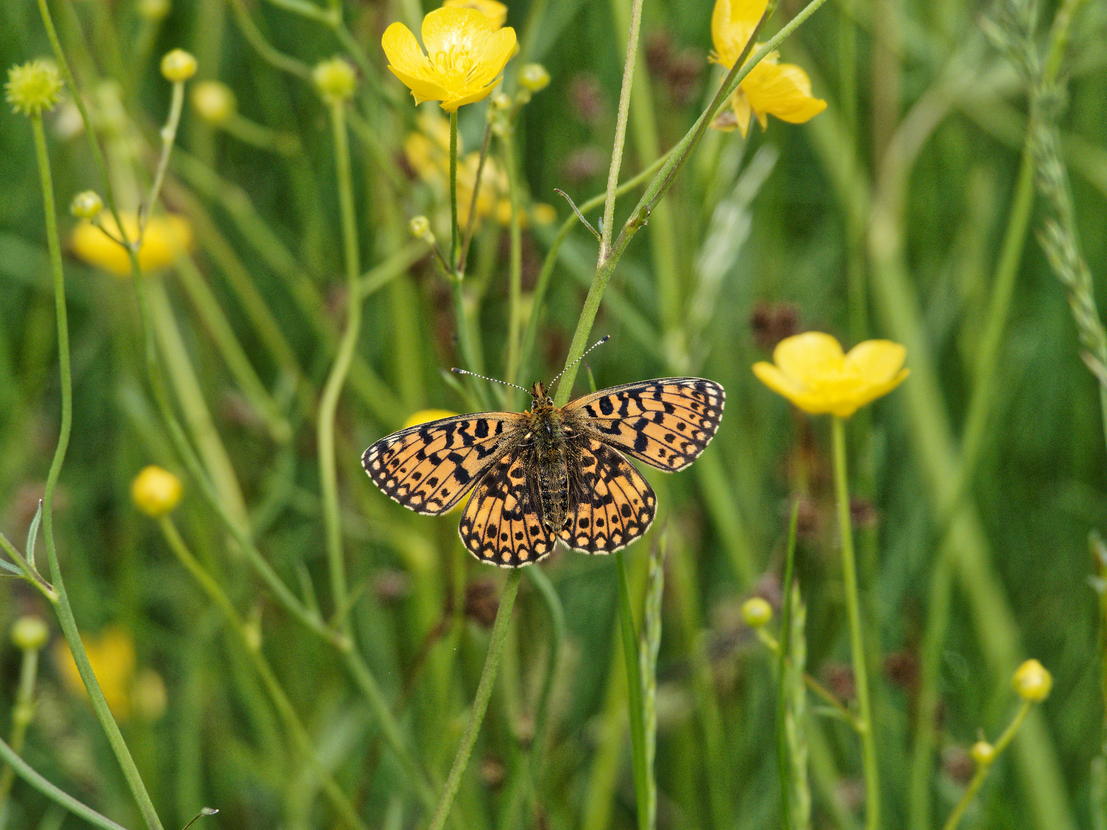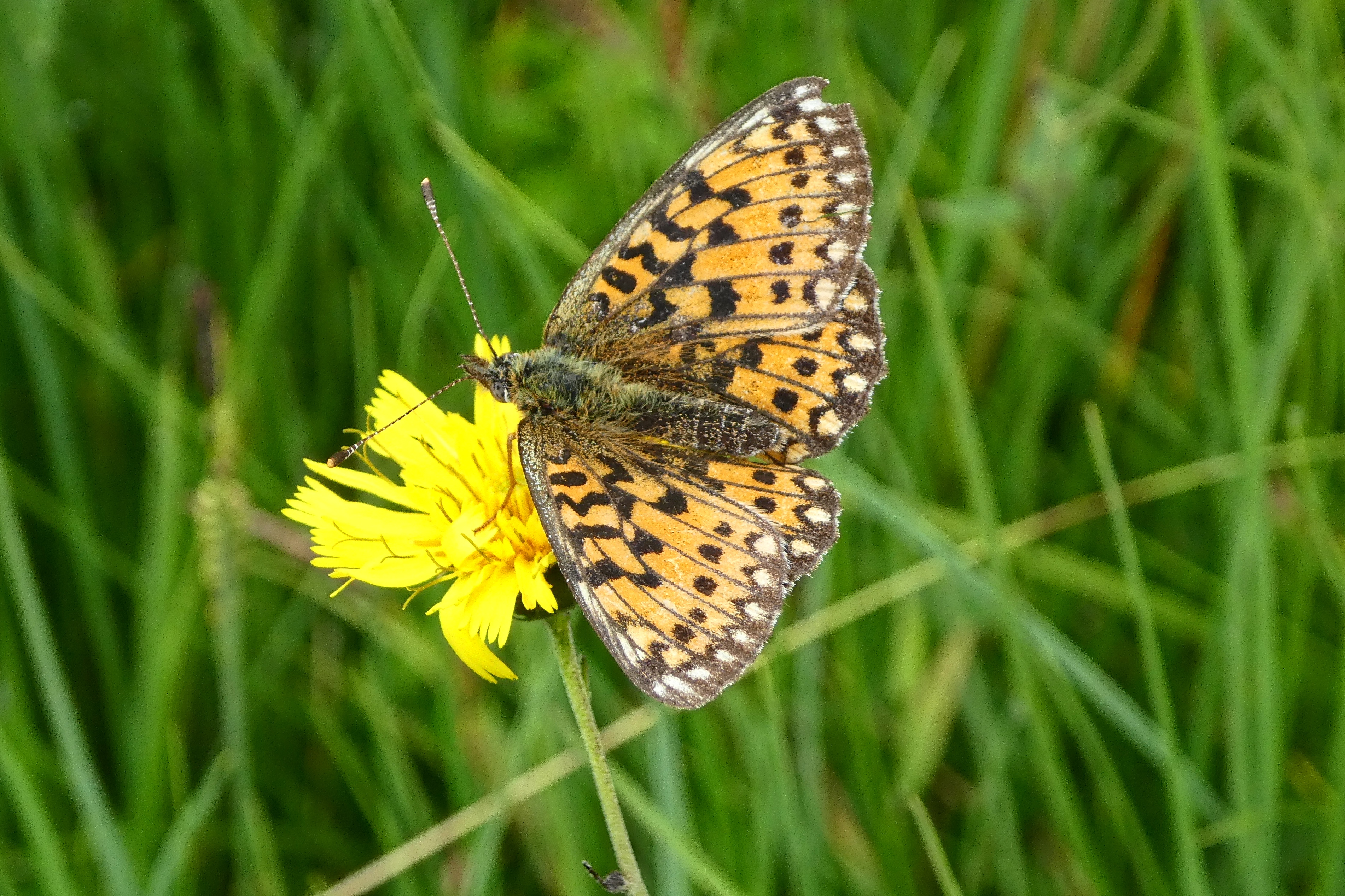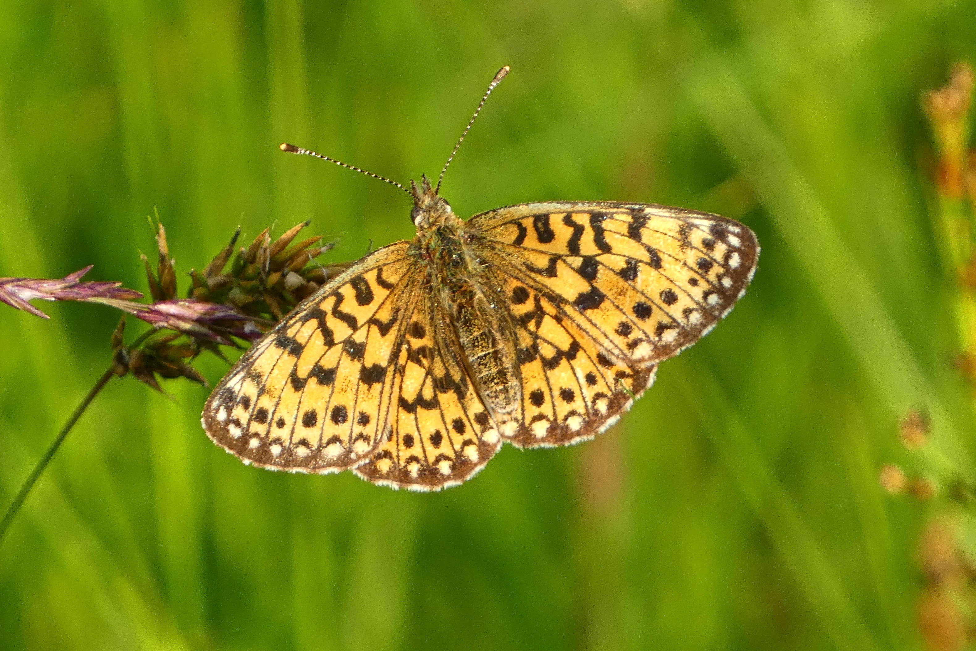 Sumpfwiesen-Perlmuttfalter (Boloria selene (Denis & Schiffermüller, 1775)), im Ainringer Moos, einem Hochmoor bei Ainring, Berchtesgadener Land, Mai 2007