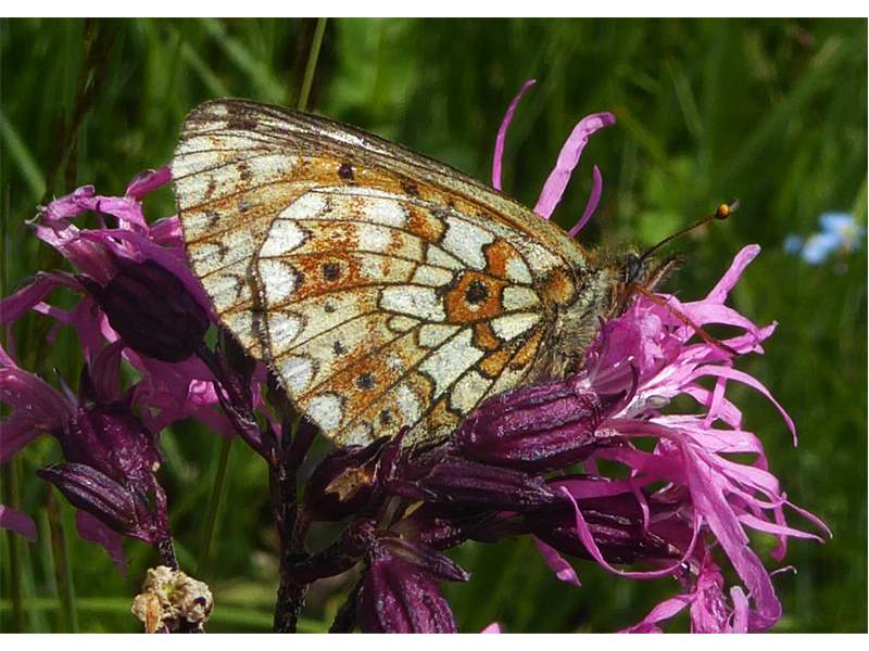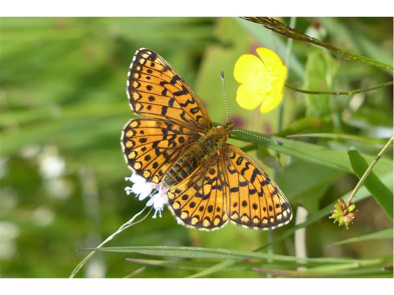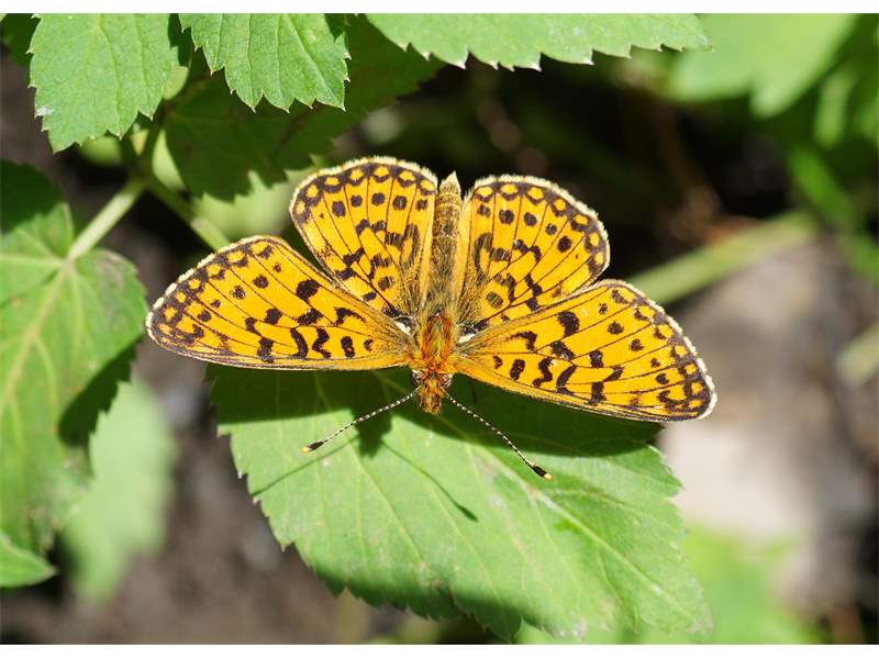 Sumpfwiesen-Perlmuttfalter (Boloria selene (Denis & Schiffermüller, 1775)), im Ainringer Moos, einem Hochmoor bei Ainring, Berchtesgadener Land, Mai 2007 (© Bernd Garbe)( Bild vergrößern)