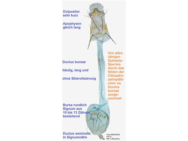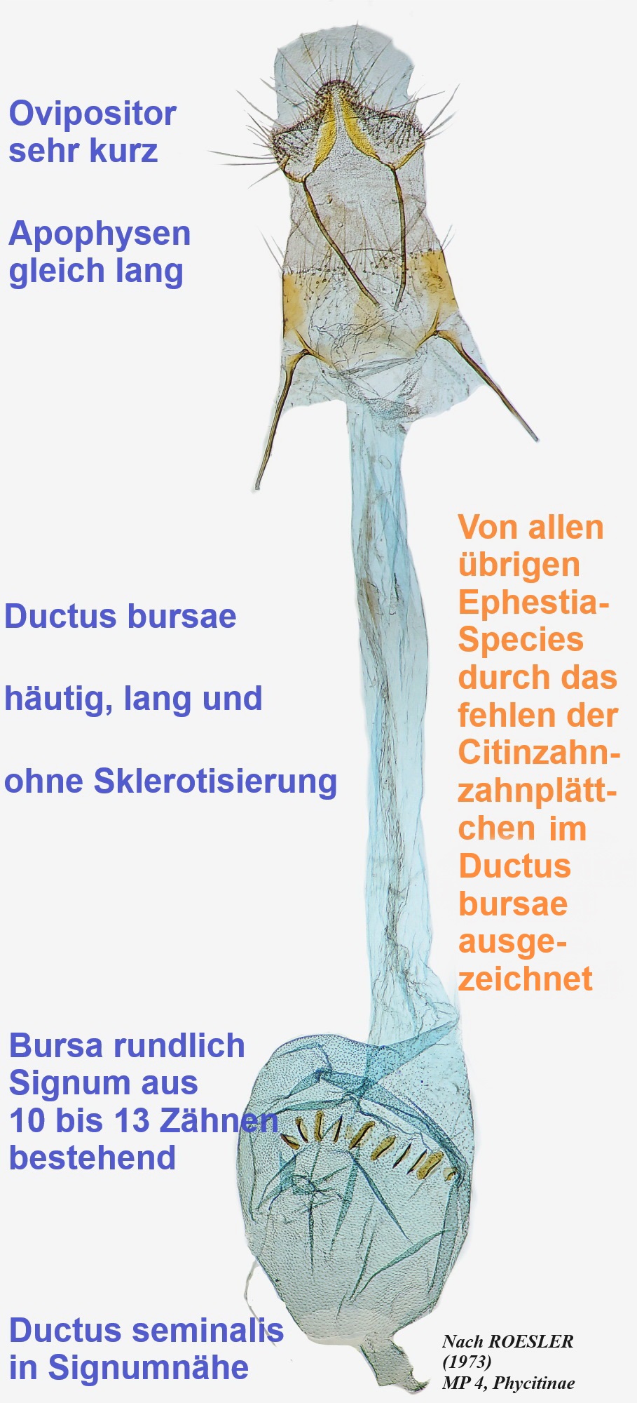 Ähnliche Arten: Ephestia welseriella, deren schwarzbrauner Saum entlang der inneren Querlinie breiter ist und deren Mittelfeld in der vorderen Flügelhälfte weißgrau ist. Ephestia kuehniella besitzt eine deutlich stärker gezackte innere Querlinie. Ephestia unicolorella, Ephestia elutella und Cadra-Arten sind sehr ähnlich, sodass eine Genitaluntersuchung zur Bestätigung der Artbestimmung erfolgen sollte.