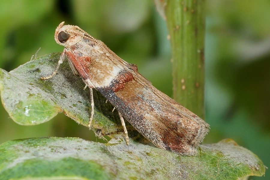 Männchen: Kopf dorsal mit weißer Beschuppung (Melzer 2014, Lepiforum).