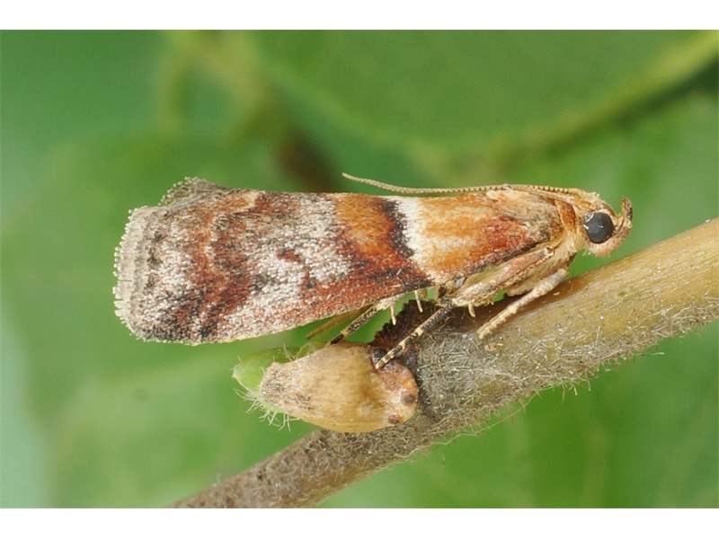 Ähnliche Arten: Acrobasis tumidana, die ein Band aufgewölbter Schuppen besitzt und deren distale Querbinde im Basalfeld ockerfarben ist. Acrobasis sodalella und Acrobasis consociella, deren Querbinde im Basalfeld ockerfarben, gelbbraun oder graugrün und nicht rotbraun gefärbt ist.