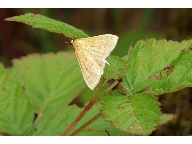 Vorderflügel hellgelb; bei 1/4 und 3/4 jeweils eine hellbraune, schwach gezackte Querlinie; äußere Querlinie verläuft S-förmig und trifft bei 1/2 auf den Flügelhinterrand;