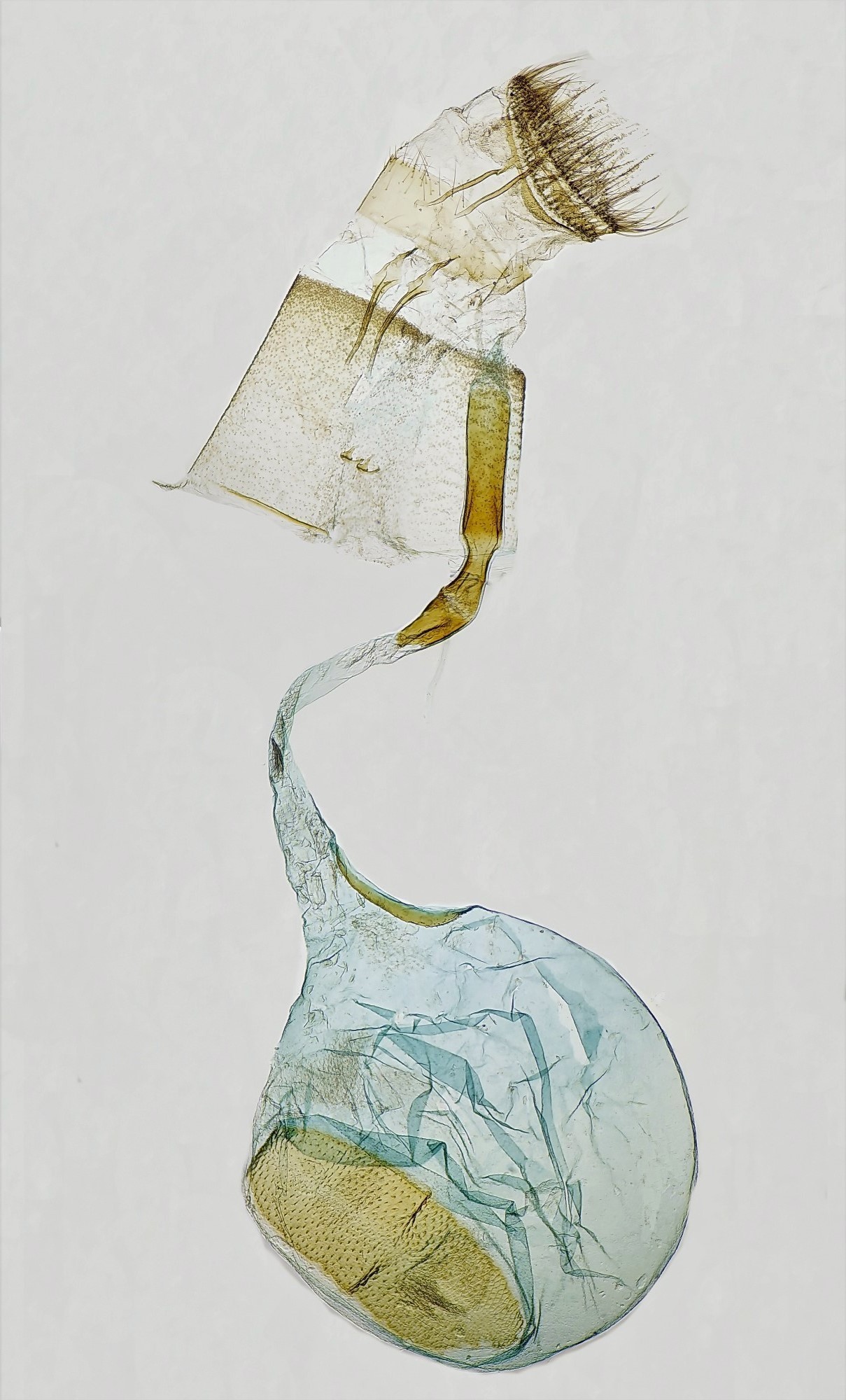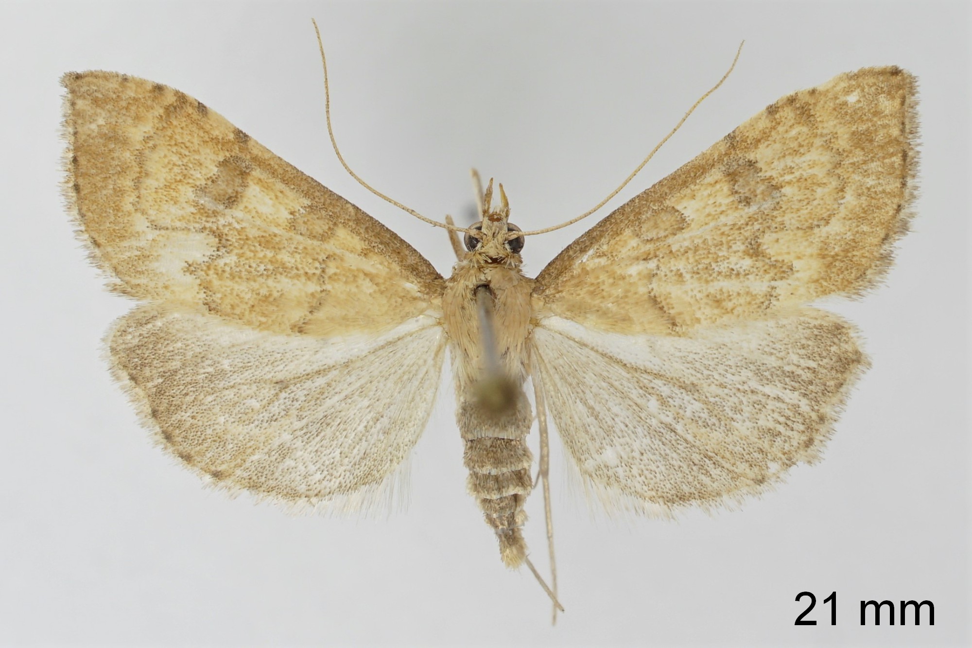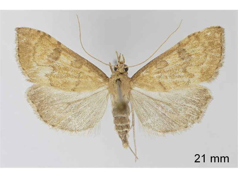 Vorderflügel X–Y mm lang; hellgelbbraun; bei 1/5 und 3/4 jeweils eine gezackte braune Querlinie; Mittelfeld mit dunkelbraun gesäumtem, hellbraun gefülltem Ring- und Nierenmakel; Bereich zwischen den Makeln oft hellgelb; Außenfeld braun und mit hellgelbem Saum entlang der äußeren Querlinie; Marginalflecken klein und schwarz; Fransensaum graubraun.