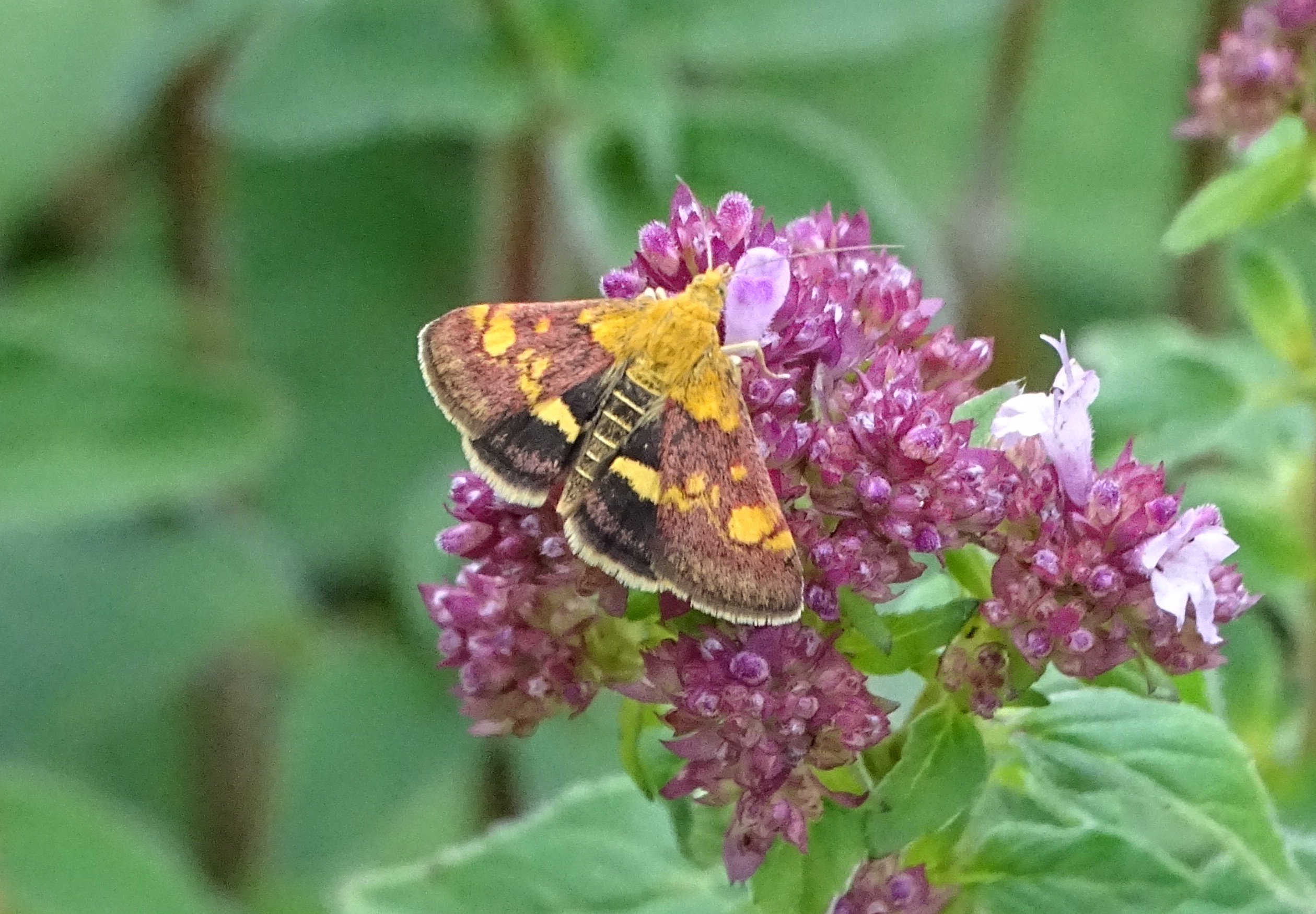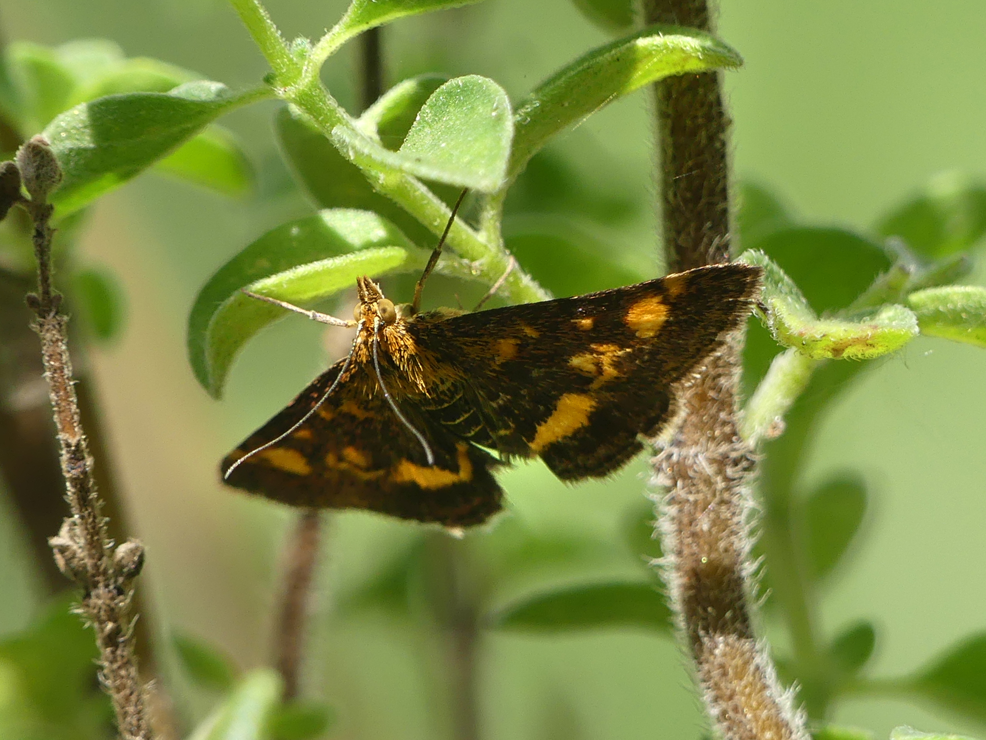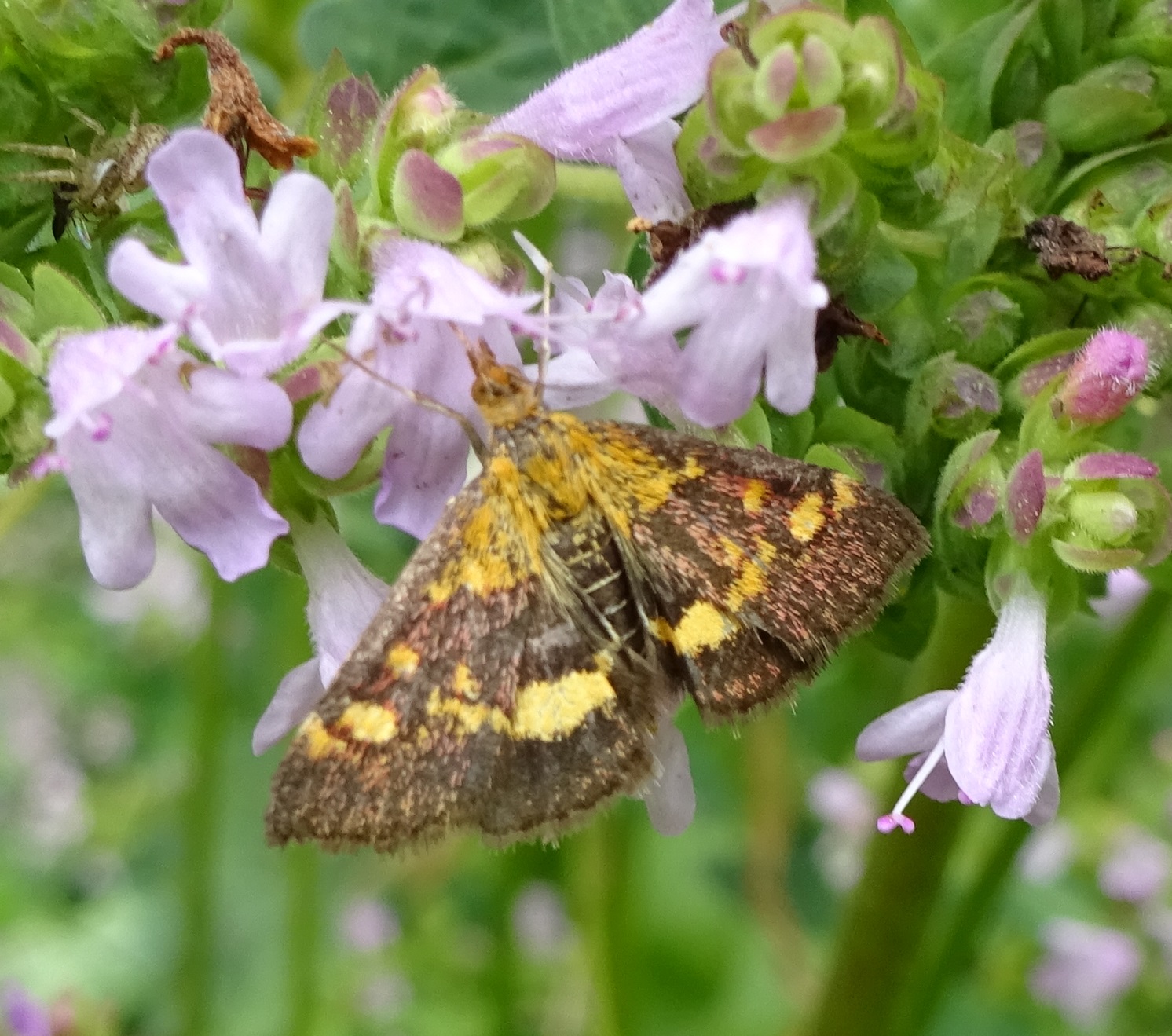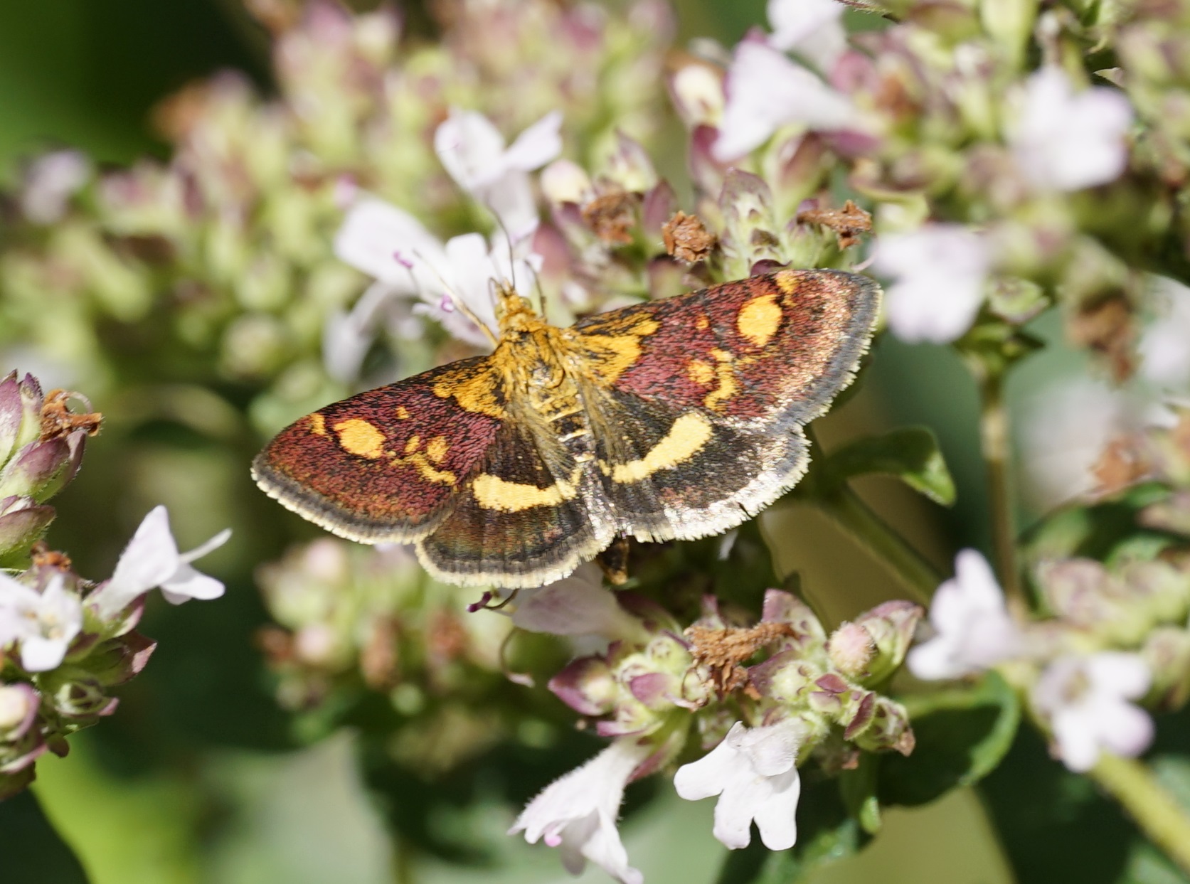 Pyrausta aurata, in Hoyerswerda, Klein Neida, Tagfund, Garten, Mitte Juli 2017